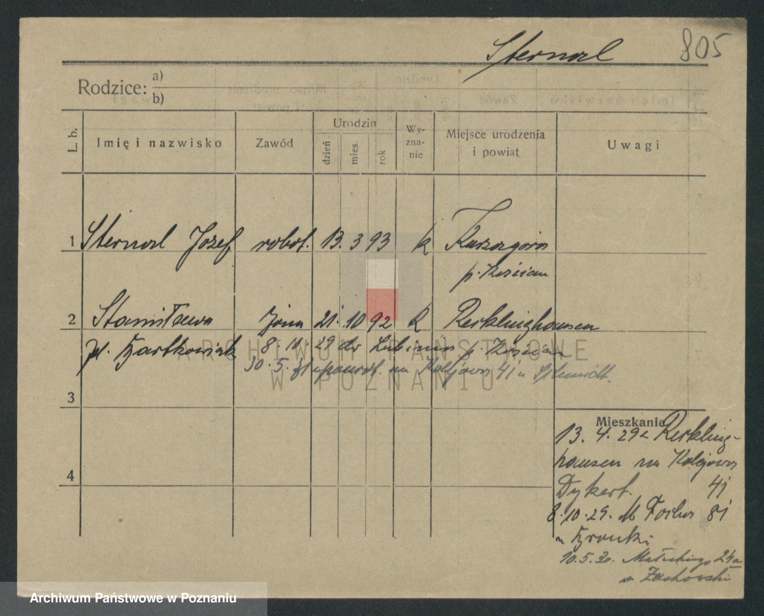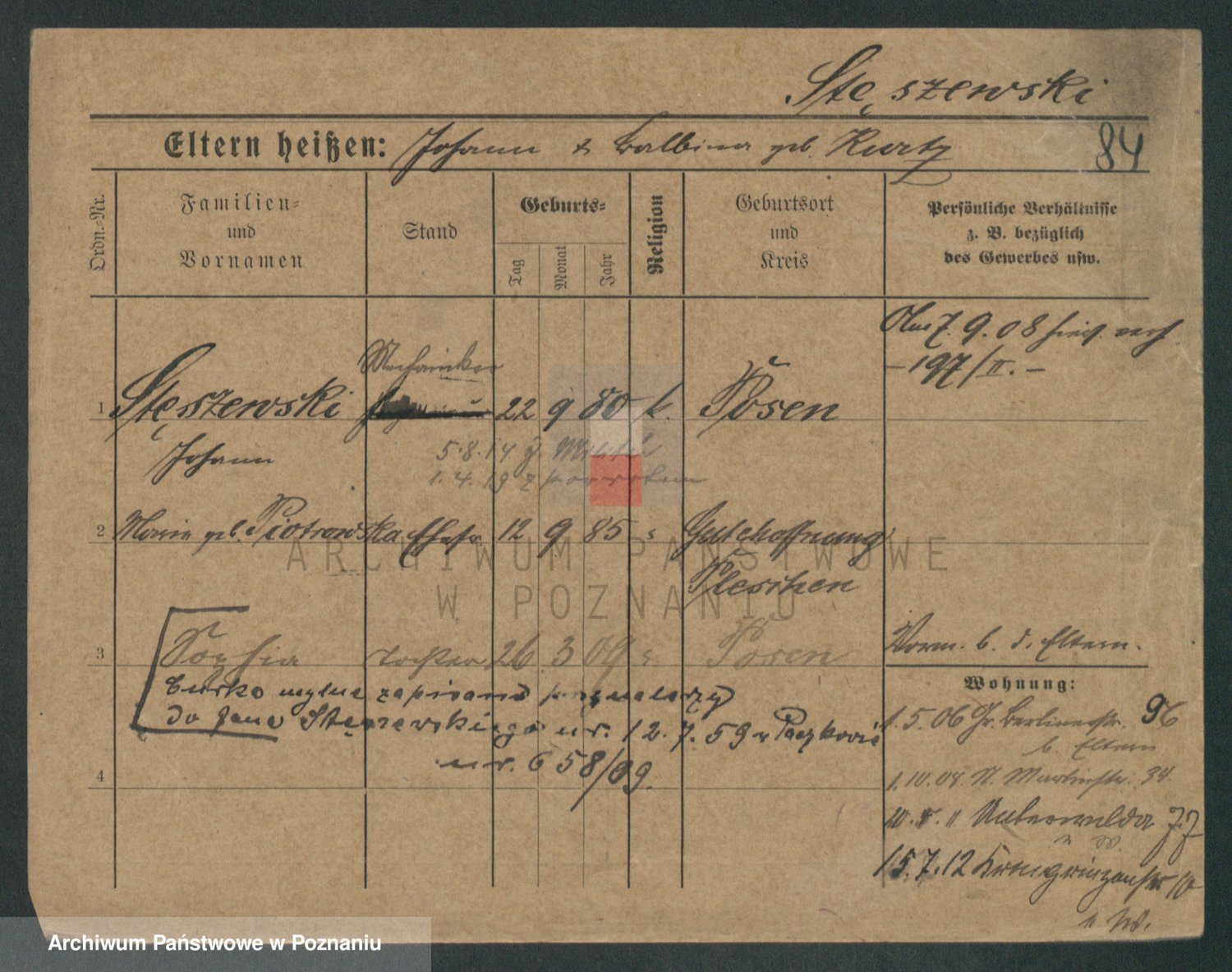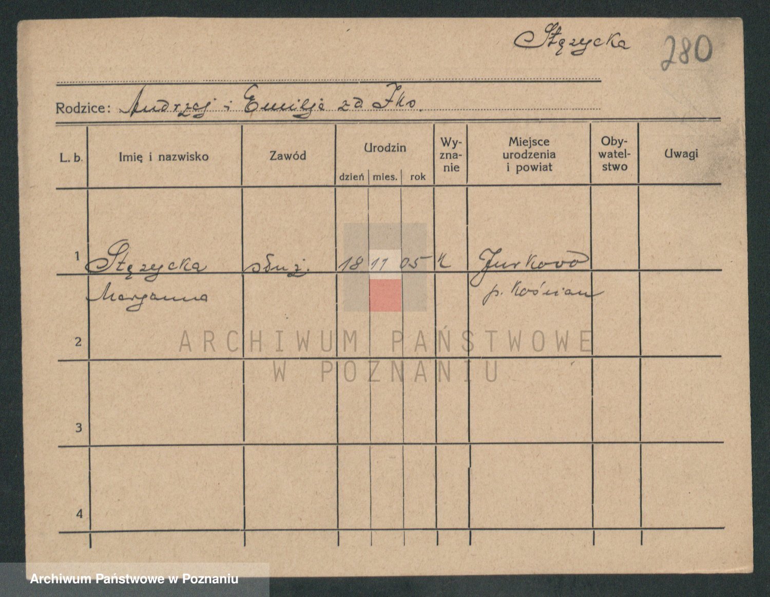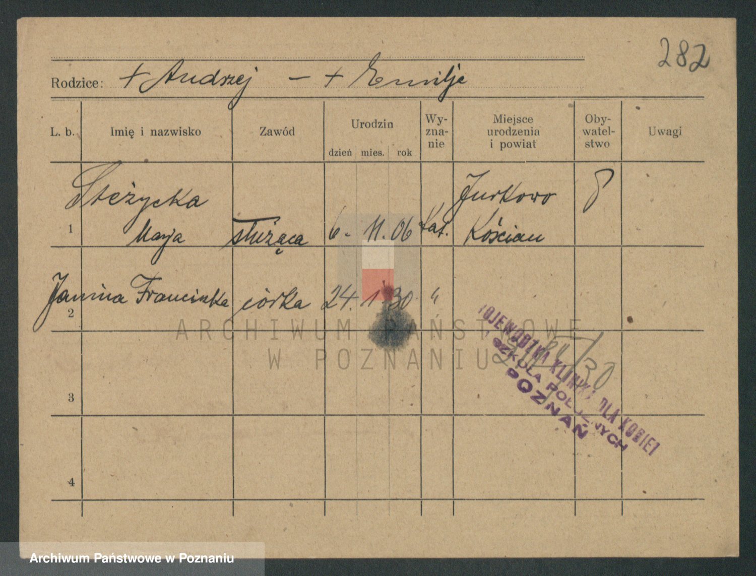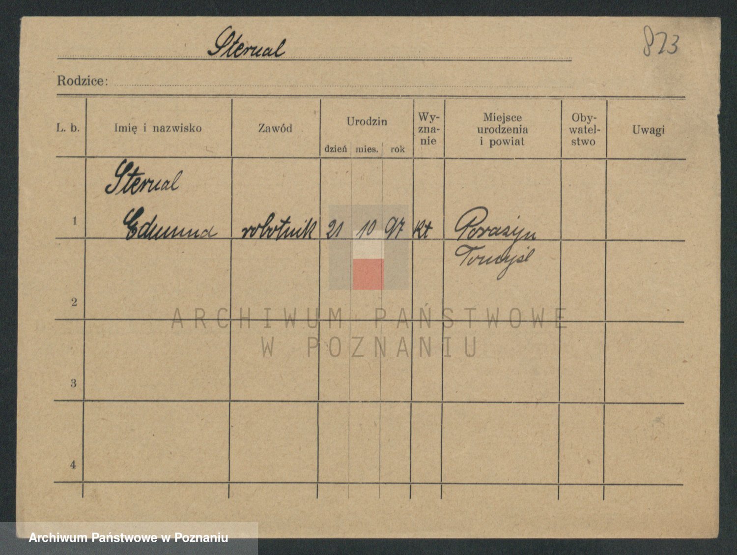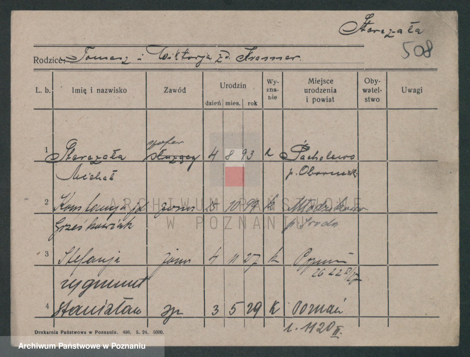 Podgląd karty osobowej dostępny jest po kliknięciu na nazwisko lub ikonkę karty. Można dokonywać powiększenia (ikony na górze) lub przechodzić między kolejnymi skanami (strzałki po bokach).