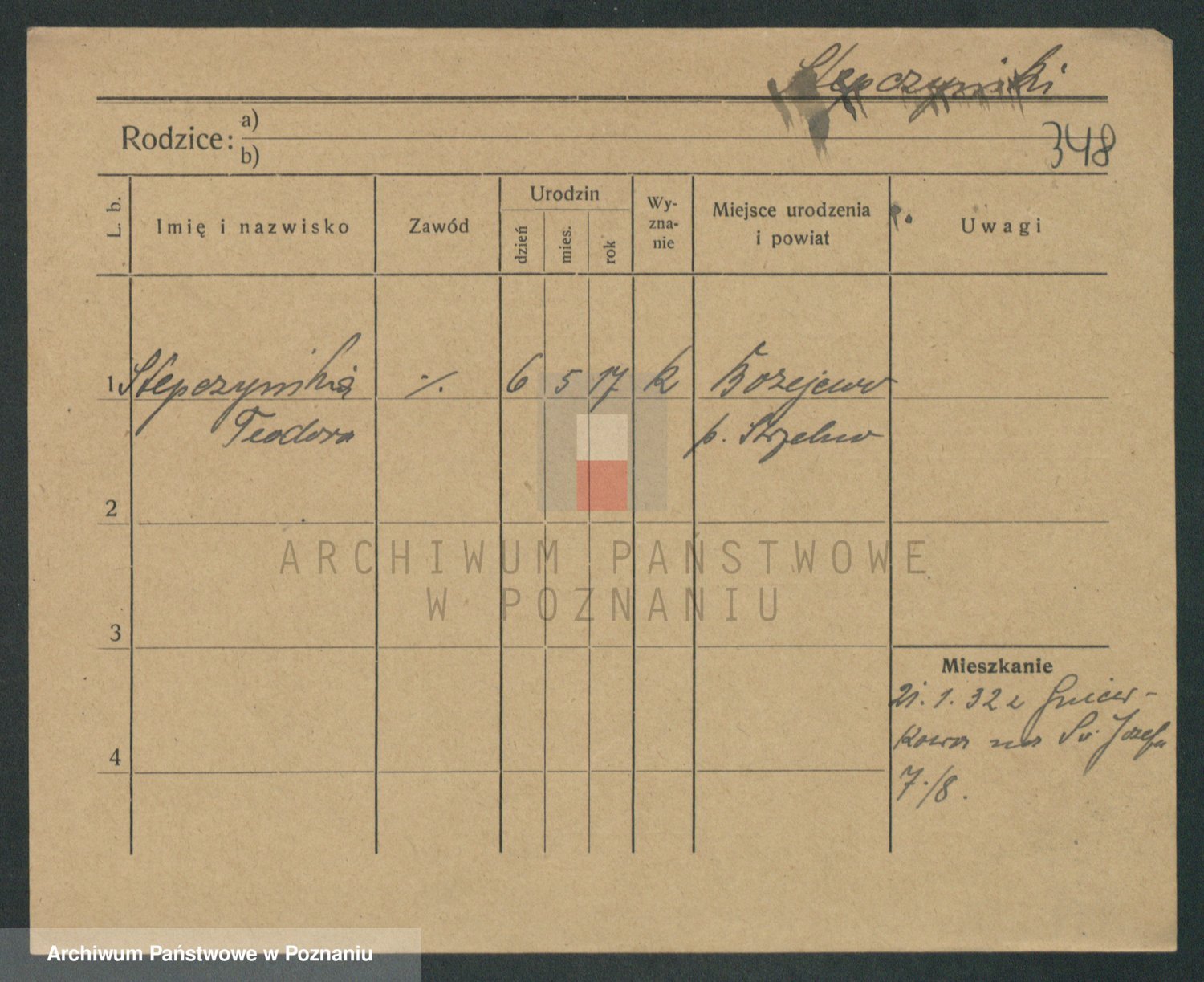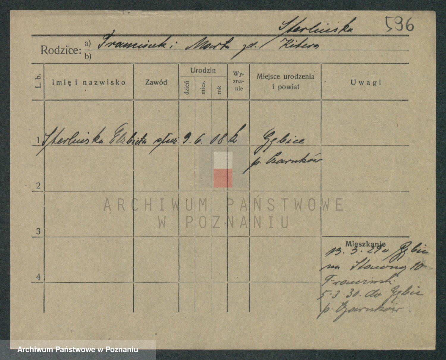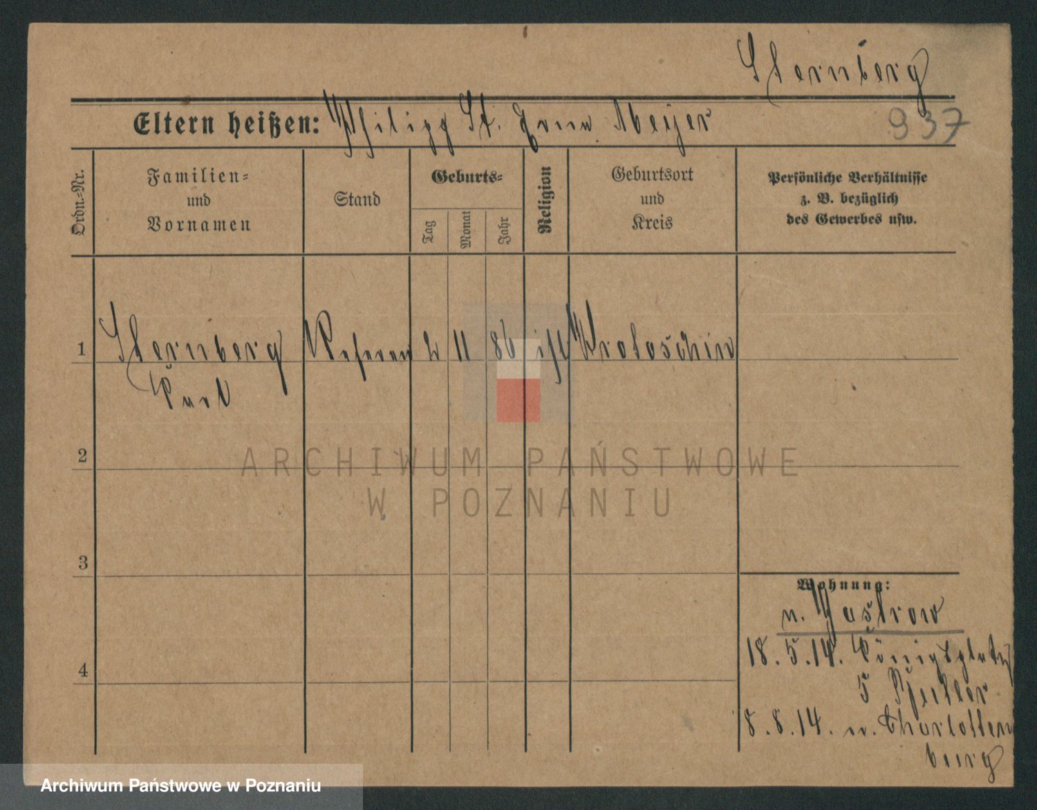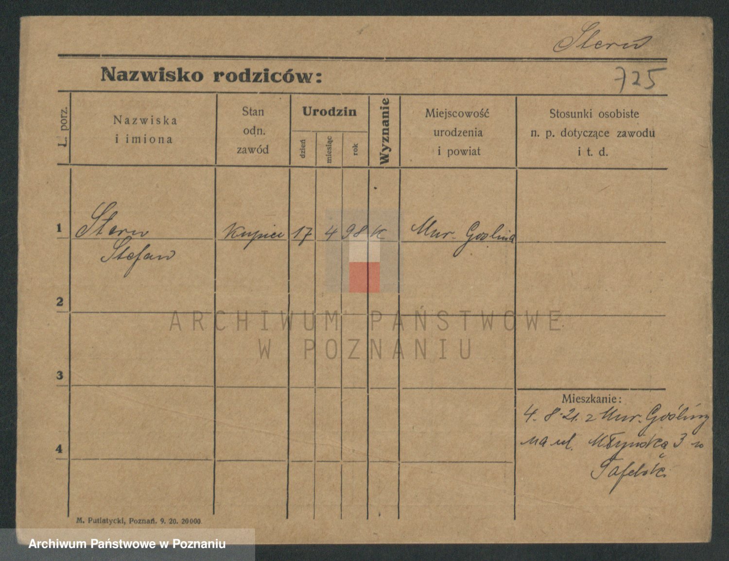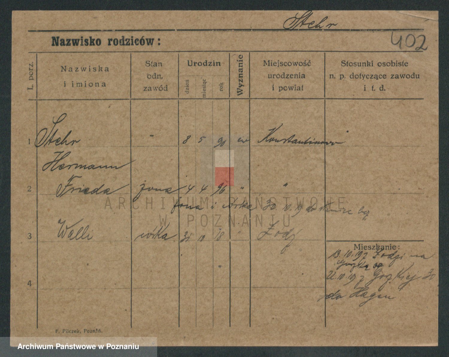 Podgląd karty osobowej dostępny jest po kliknięciu na nazwisko lub ikonkę karty. Można dokonywać powiększenia (ikony na górze) lub przechodzić między kolejnymi skanami (strzałki po bokach).
