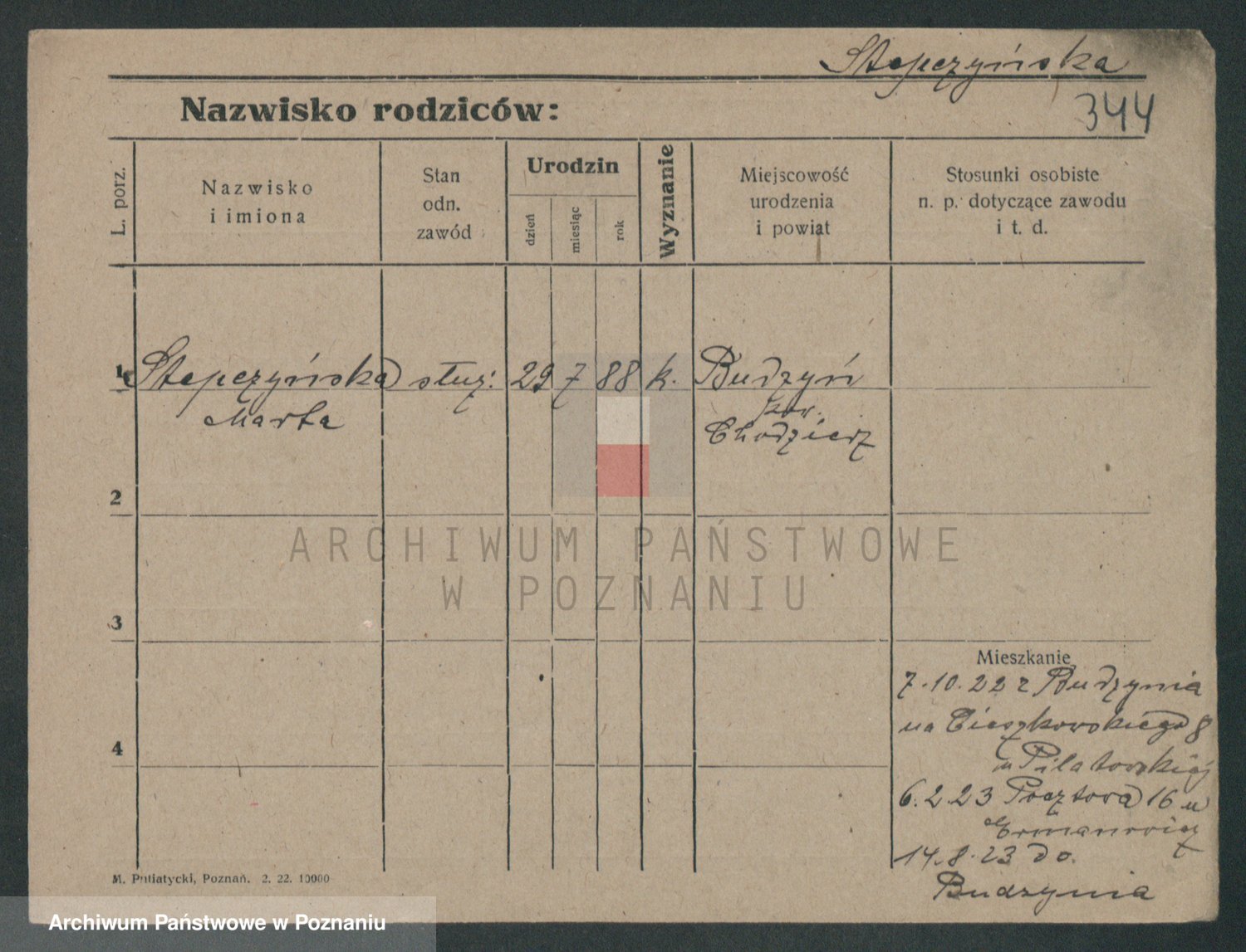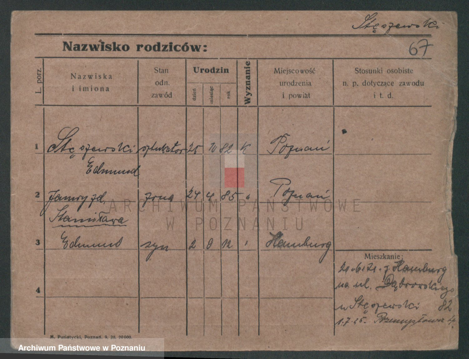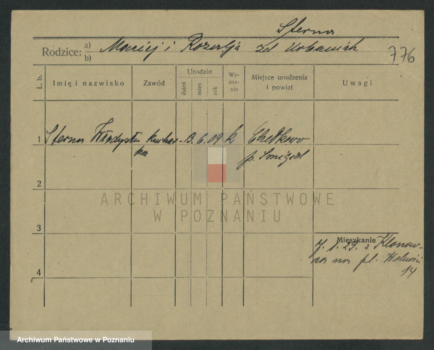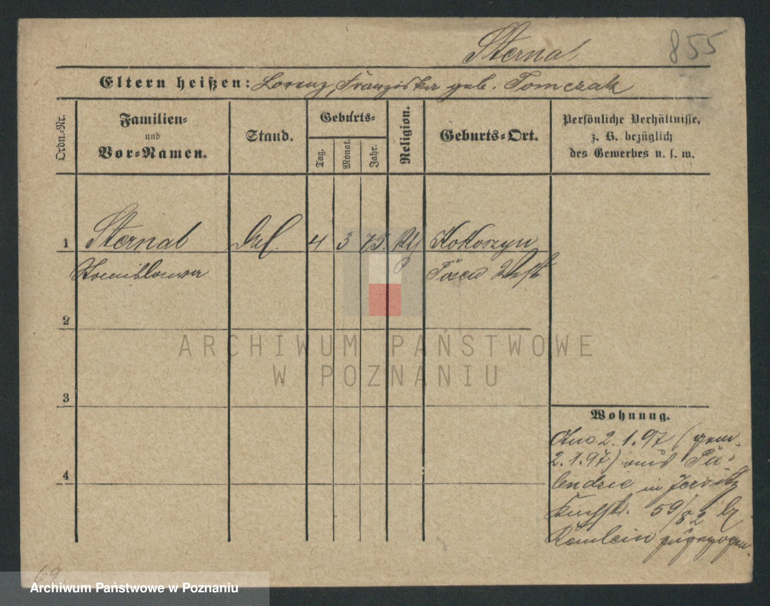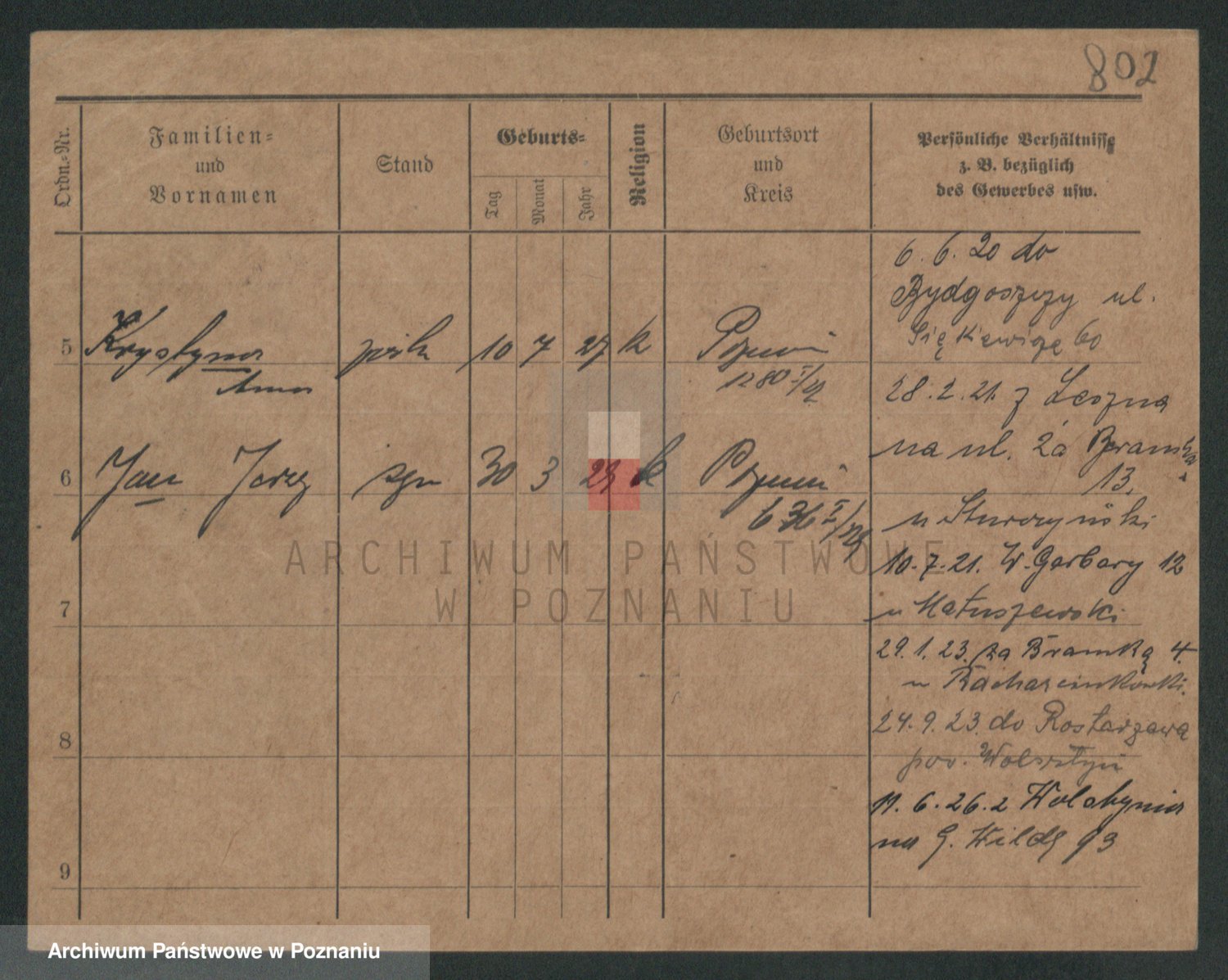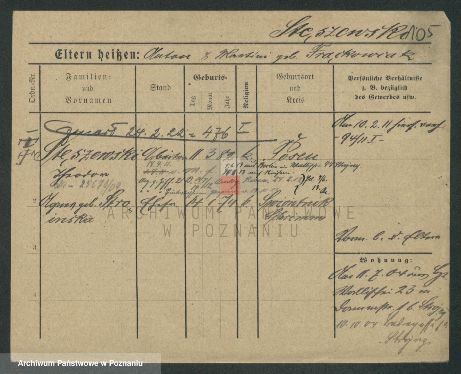 Podgląd karty osobowej dostępny jest po kliknięciu na nazwisko lub ikonkę karty. Można dokonywać powiększenia (ikony na górze) lub przechodzić między kolejnymi skanami (strzałki po bokach).