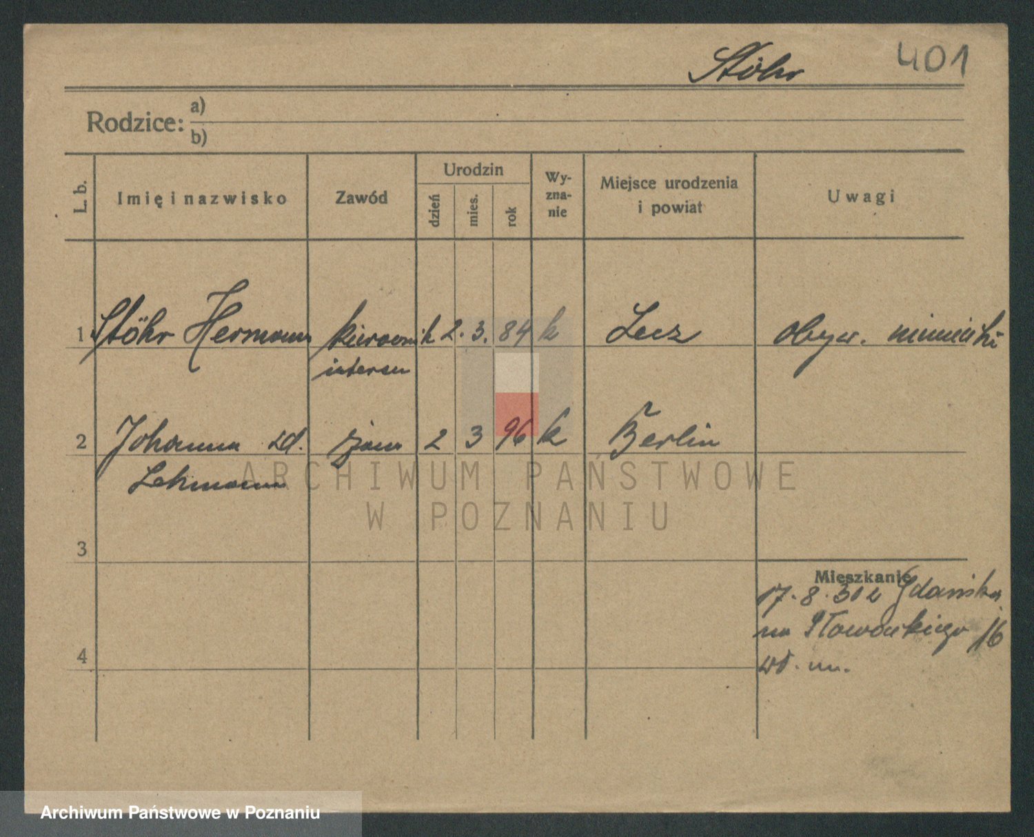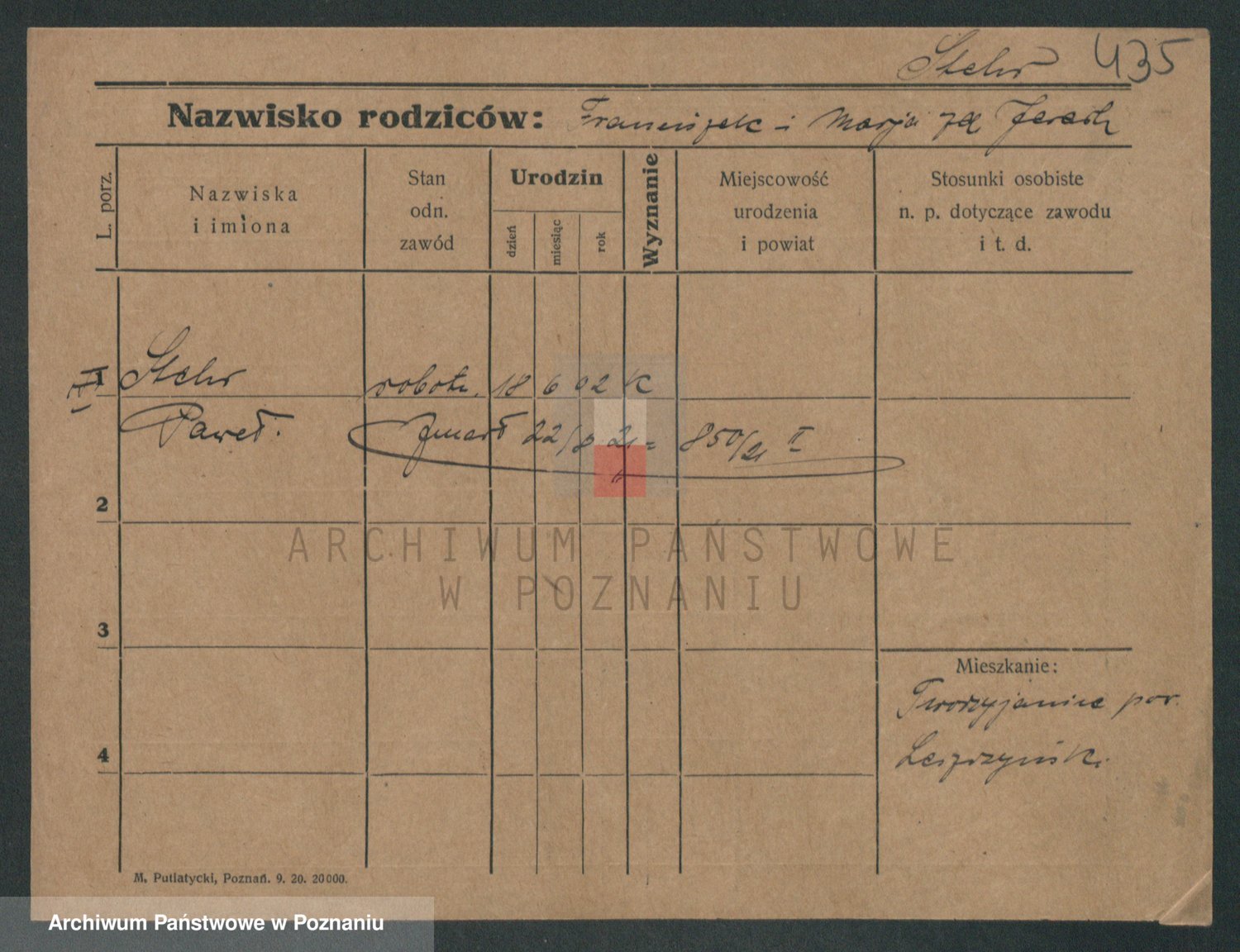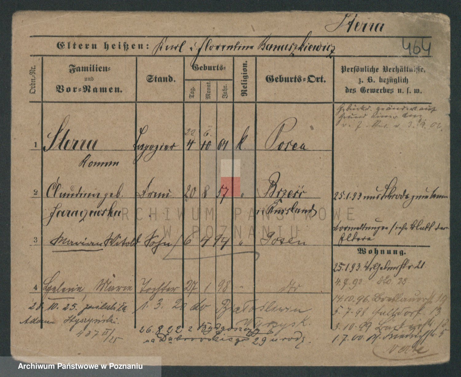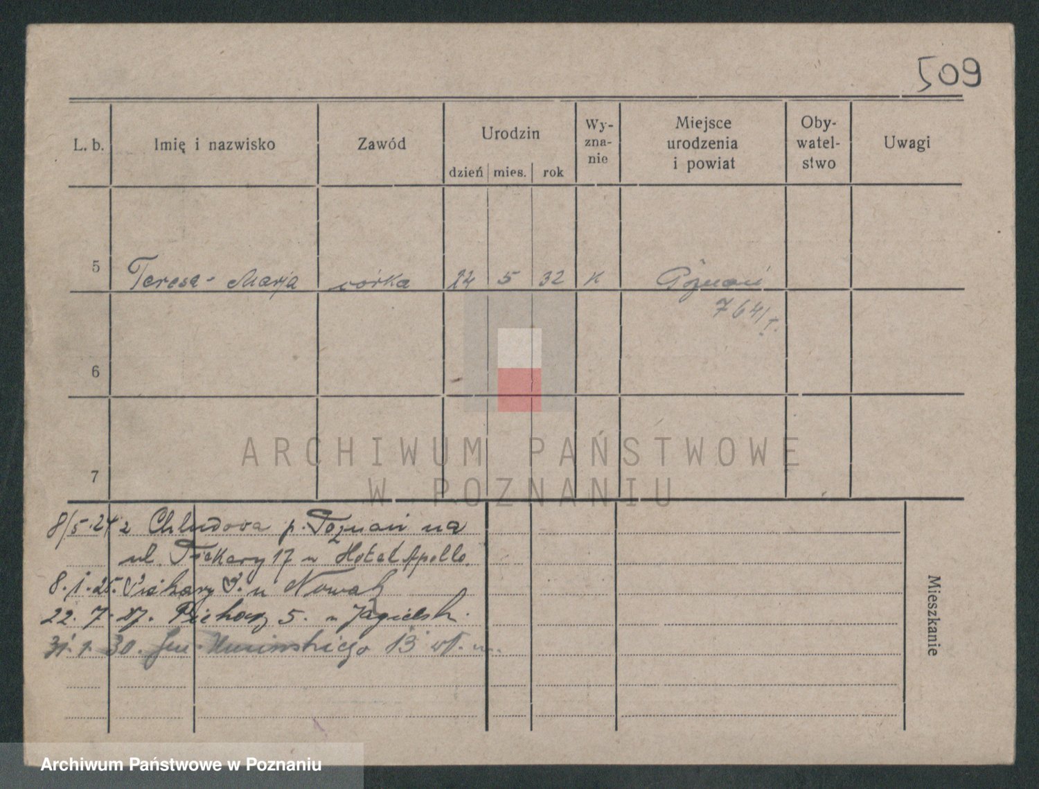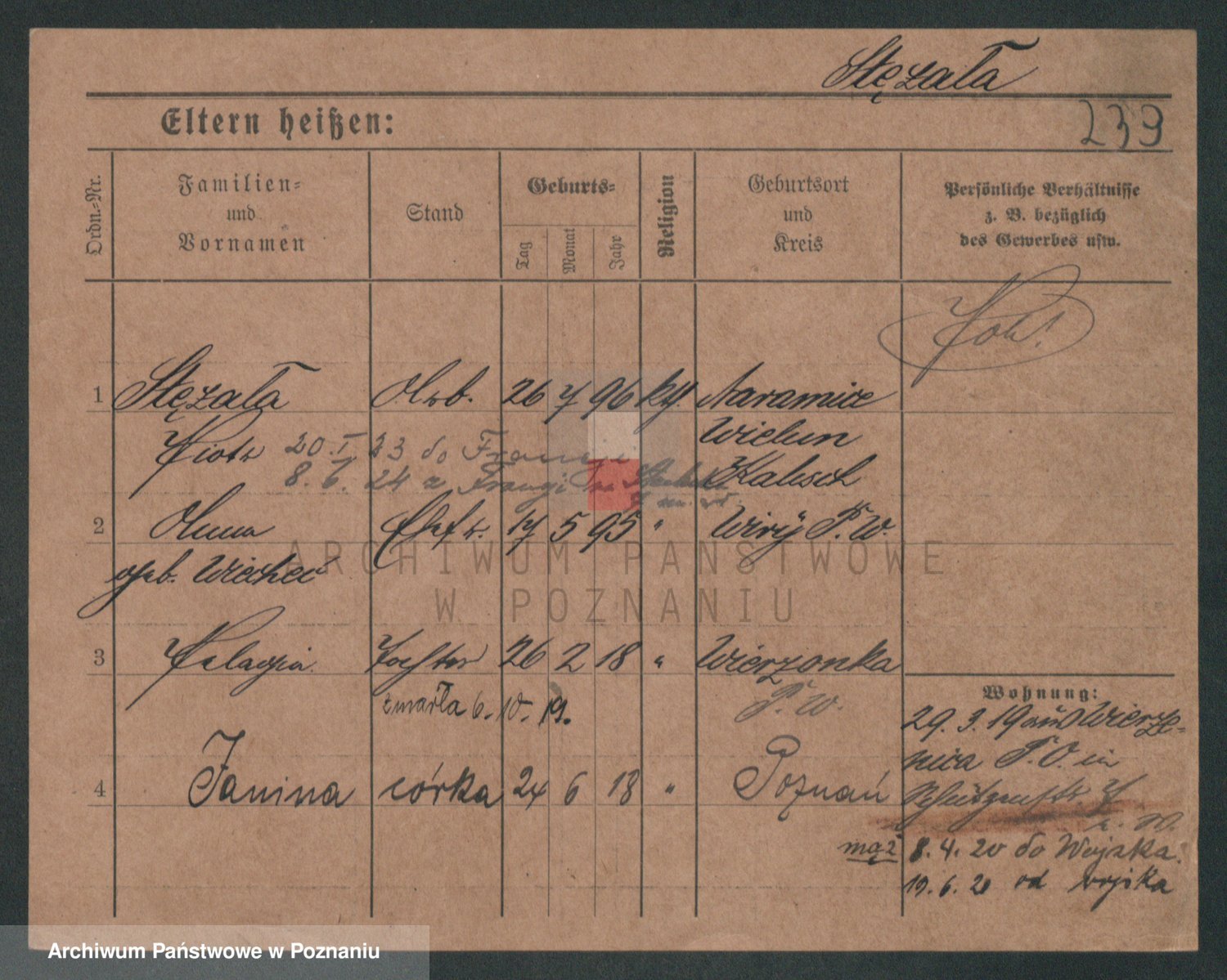 Podgląd karty osobowej dostępny jest po kliknięciu na nazwisko lub ikonkę karty. Można dokonywać powiększenia (ikony na górze) lub przechodzić między kolejnymi skanami (strzałki po bokach).