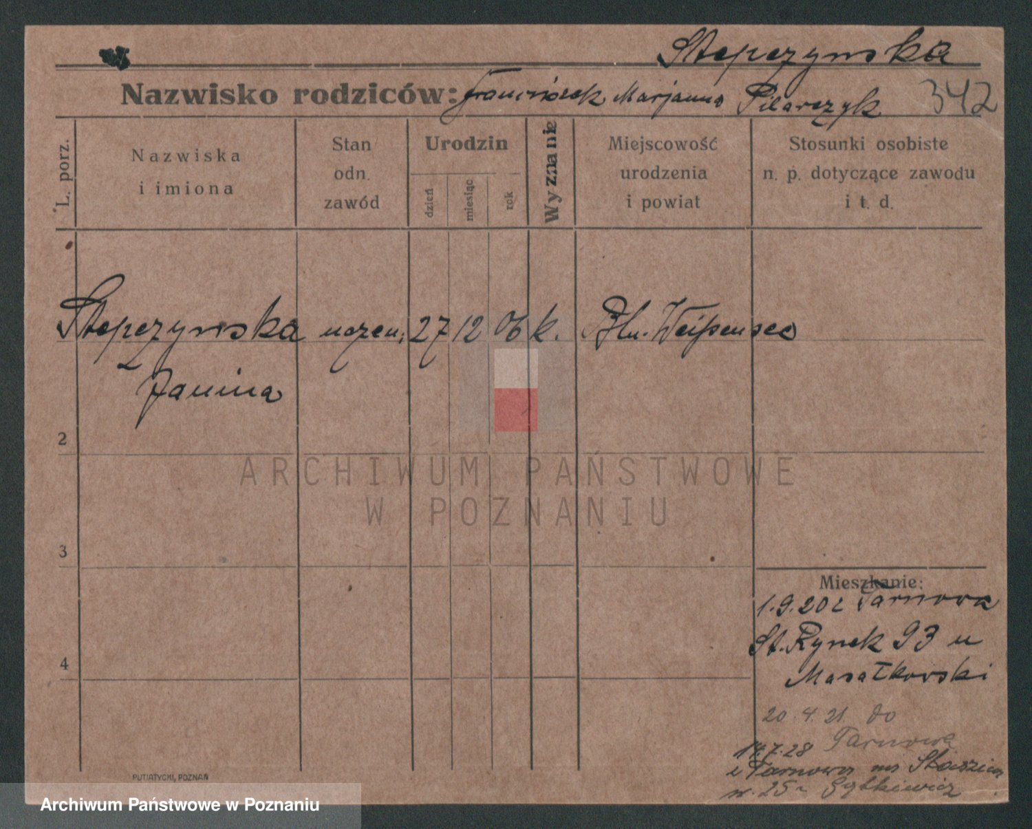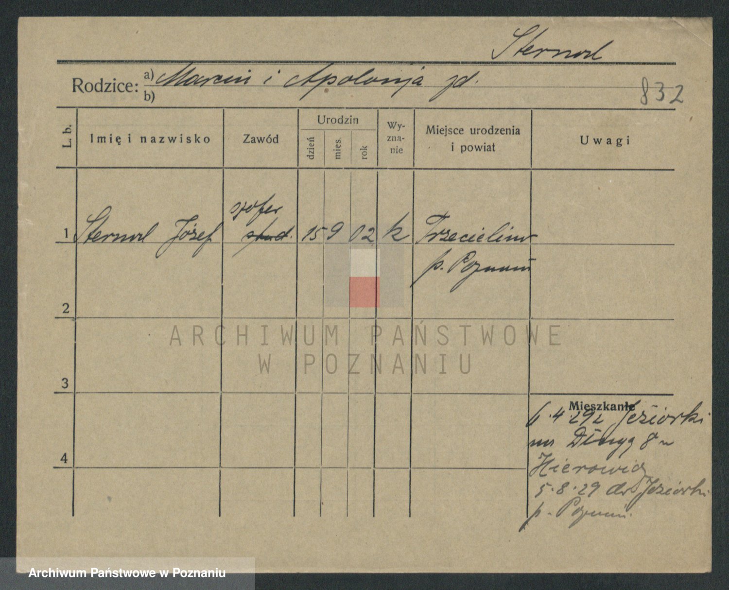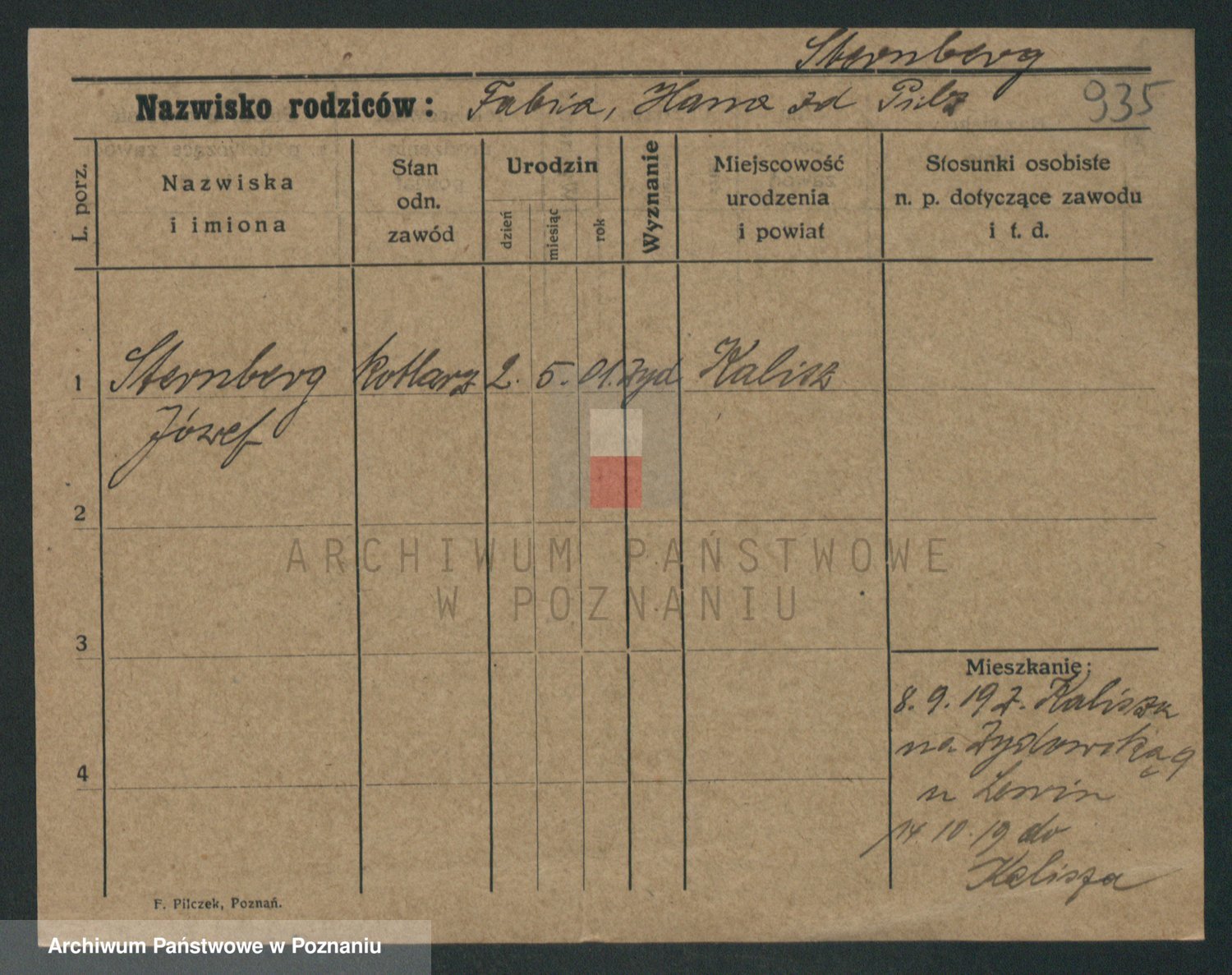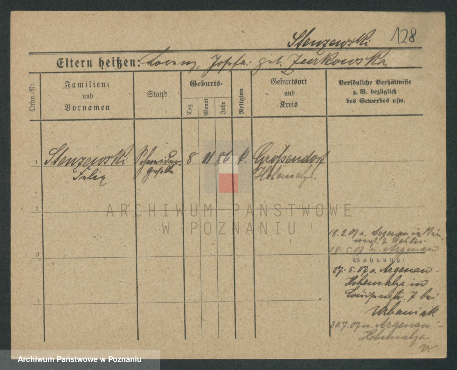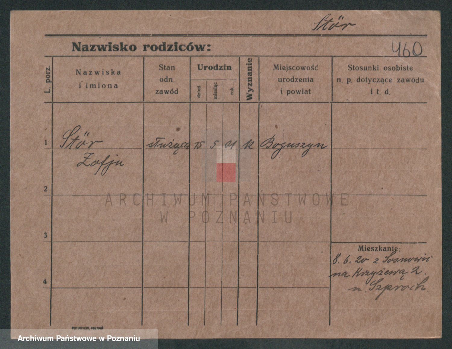 Podgląd karty osobowej dostępny jest po kliknięciu na nazwisko lub ikonkę karty. Można dokonywać powiększenia (ikony na górze) lub przechodzić między kolejnymi skanami (strzałki po bokach).