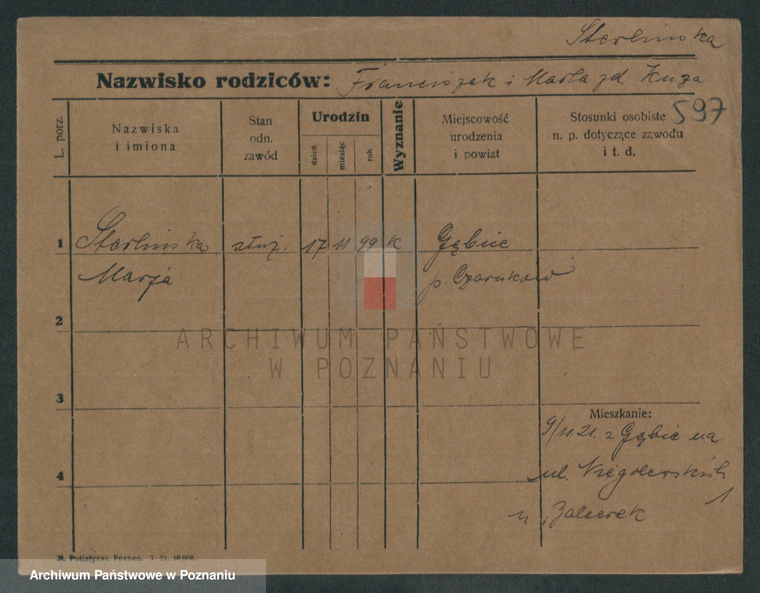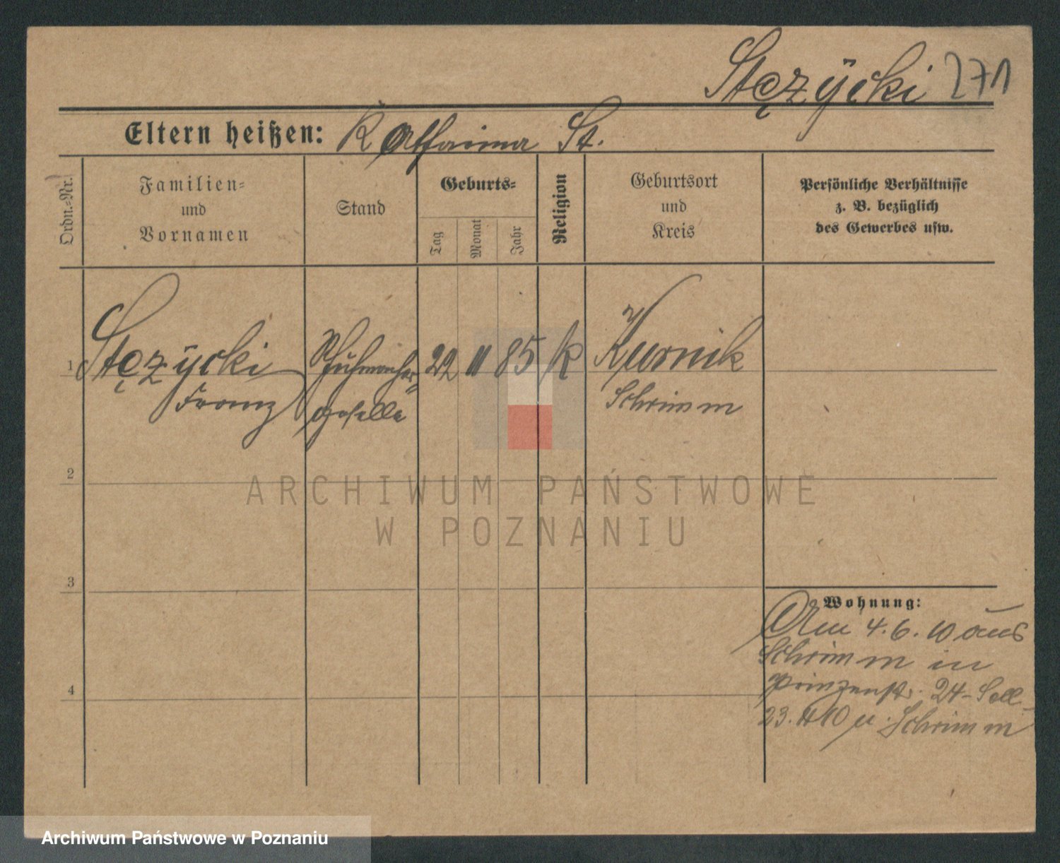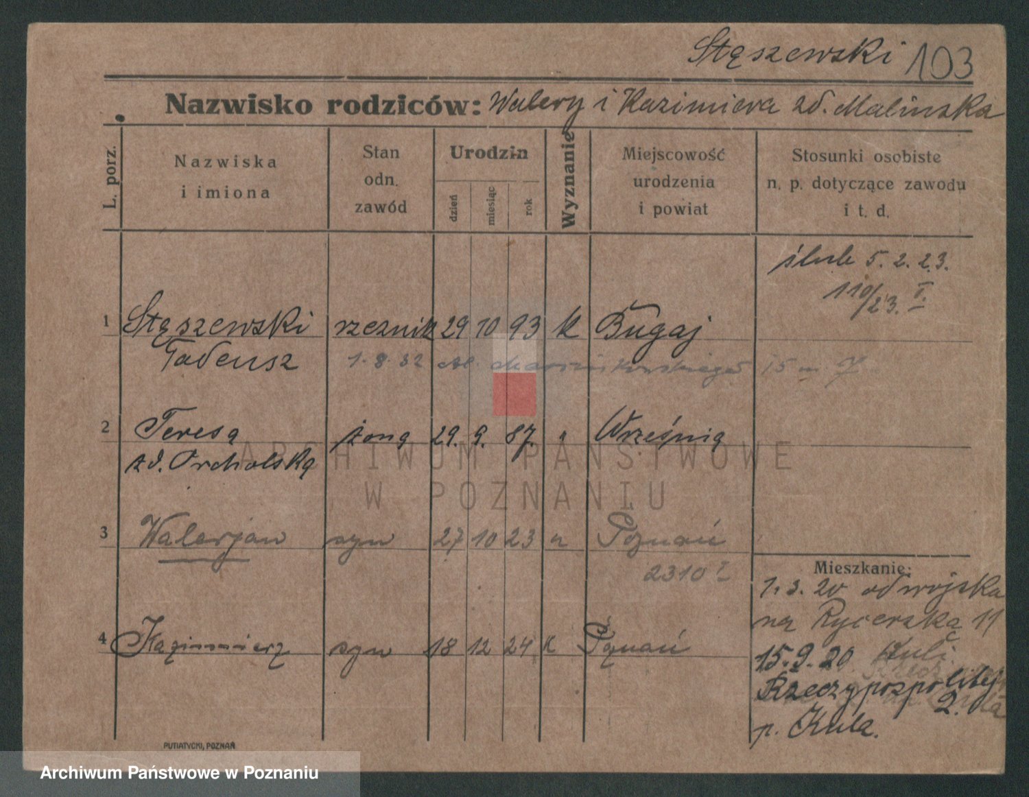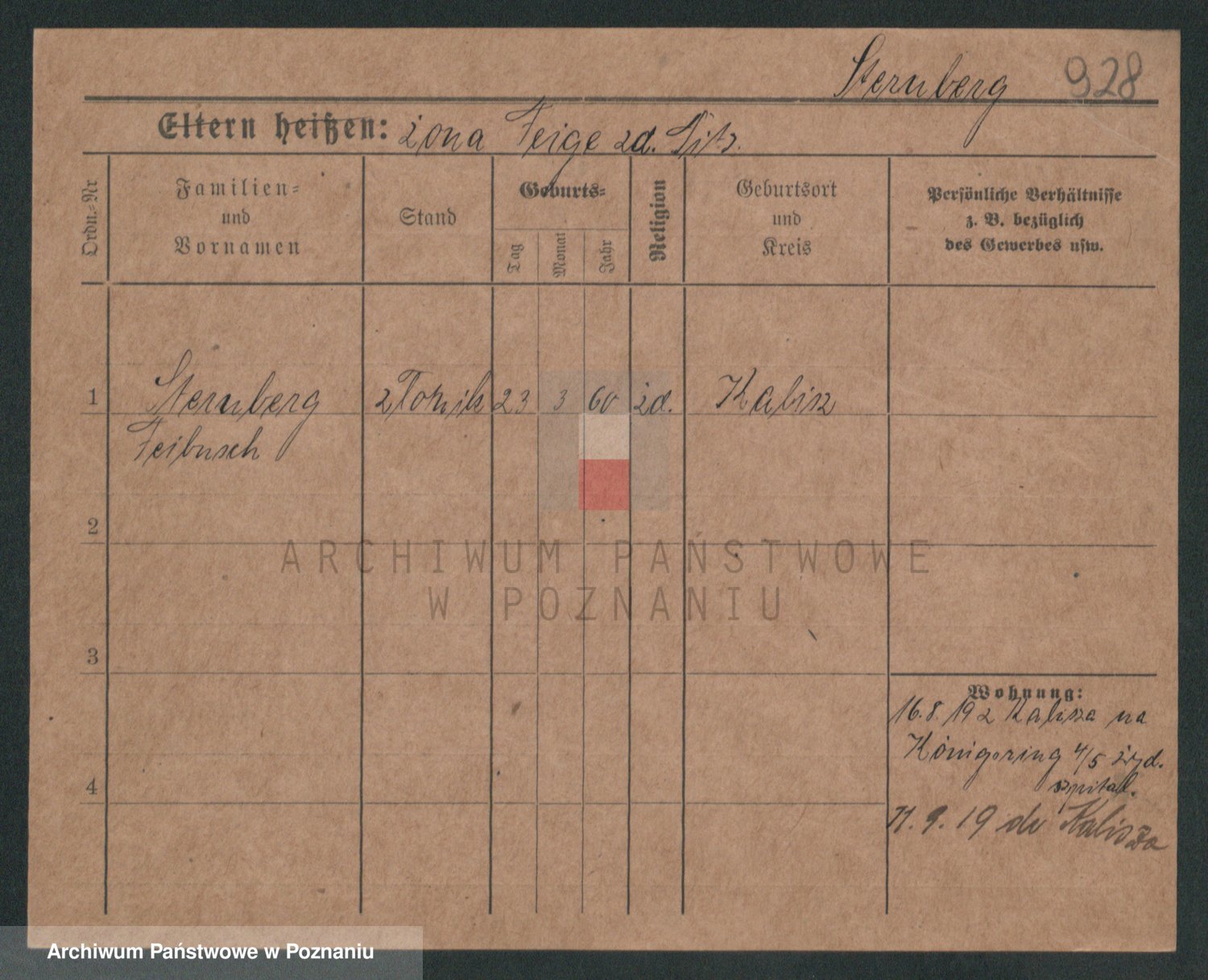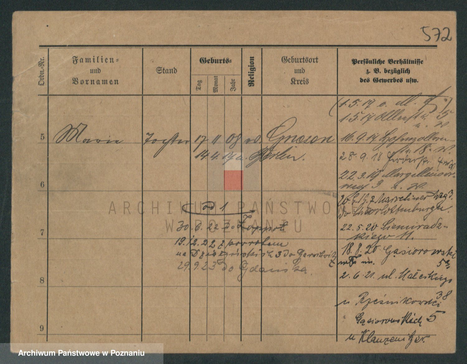 Podgląd karty osobowej dostępny jest po kliknięciu na nazwisko lub ikonkę karty. Można dokonywać powiększenia (ikony na górze) lub przechodzić między kolejnymi skanami (strzałki po bokach).