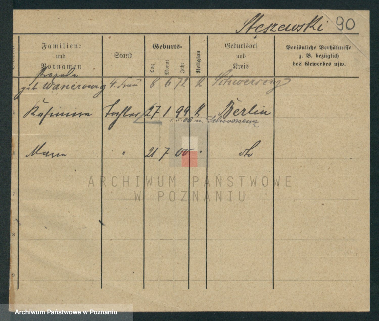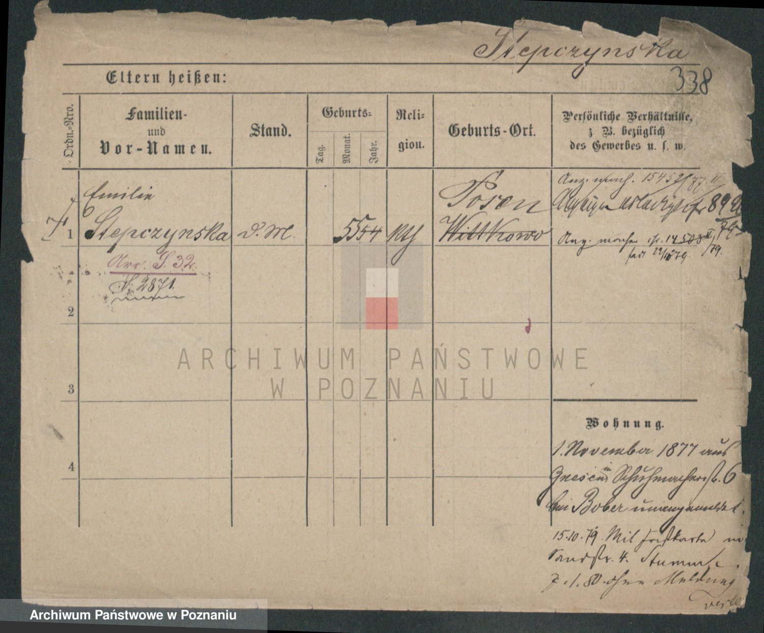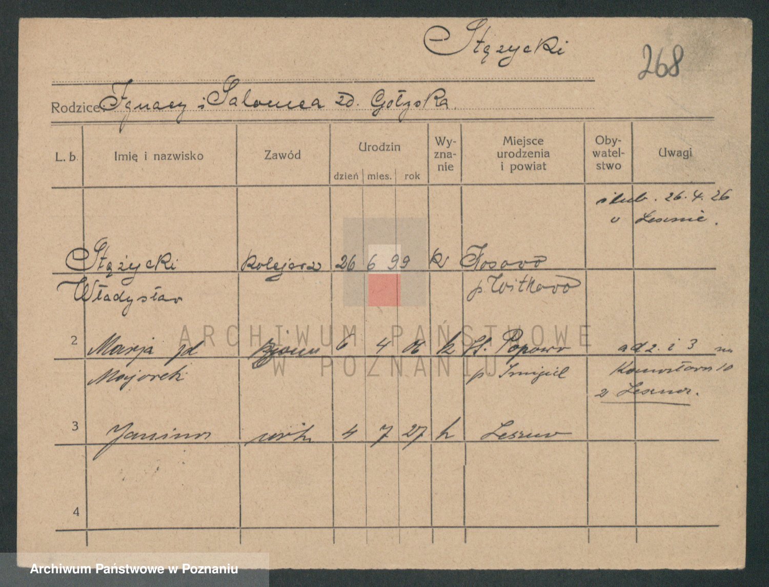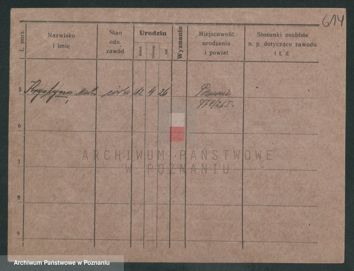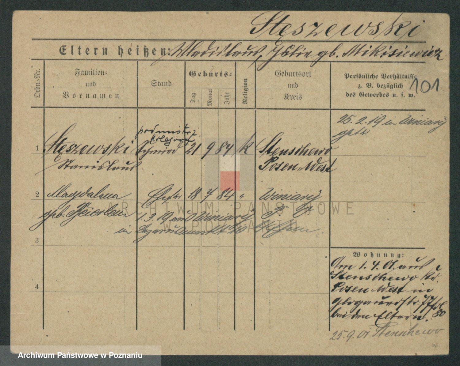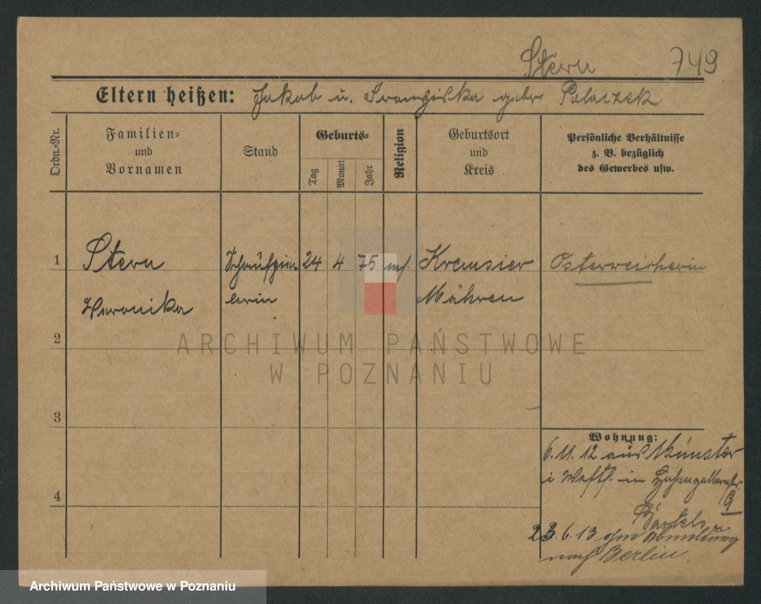 Podgląd karty osobowej dostępny jest po kliknięciu na nazwisko lub ikonkę karty. Można dokonywać powiększenia (ikony na górze) lub przechodzić między kolejnymi skanami (strzałki po bokach).