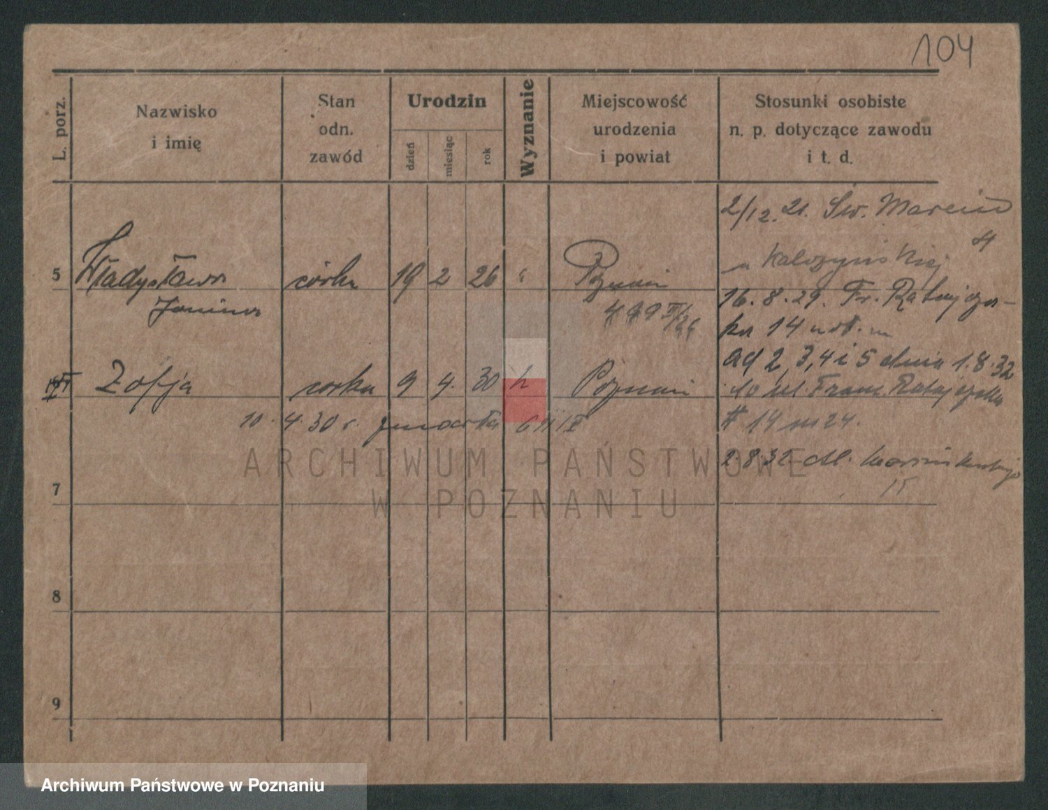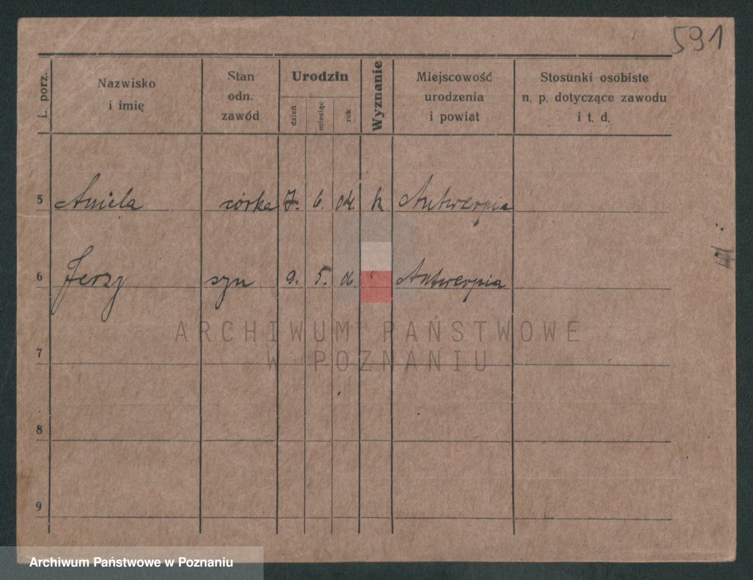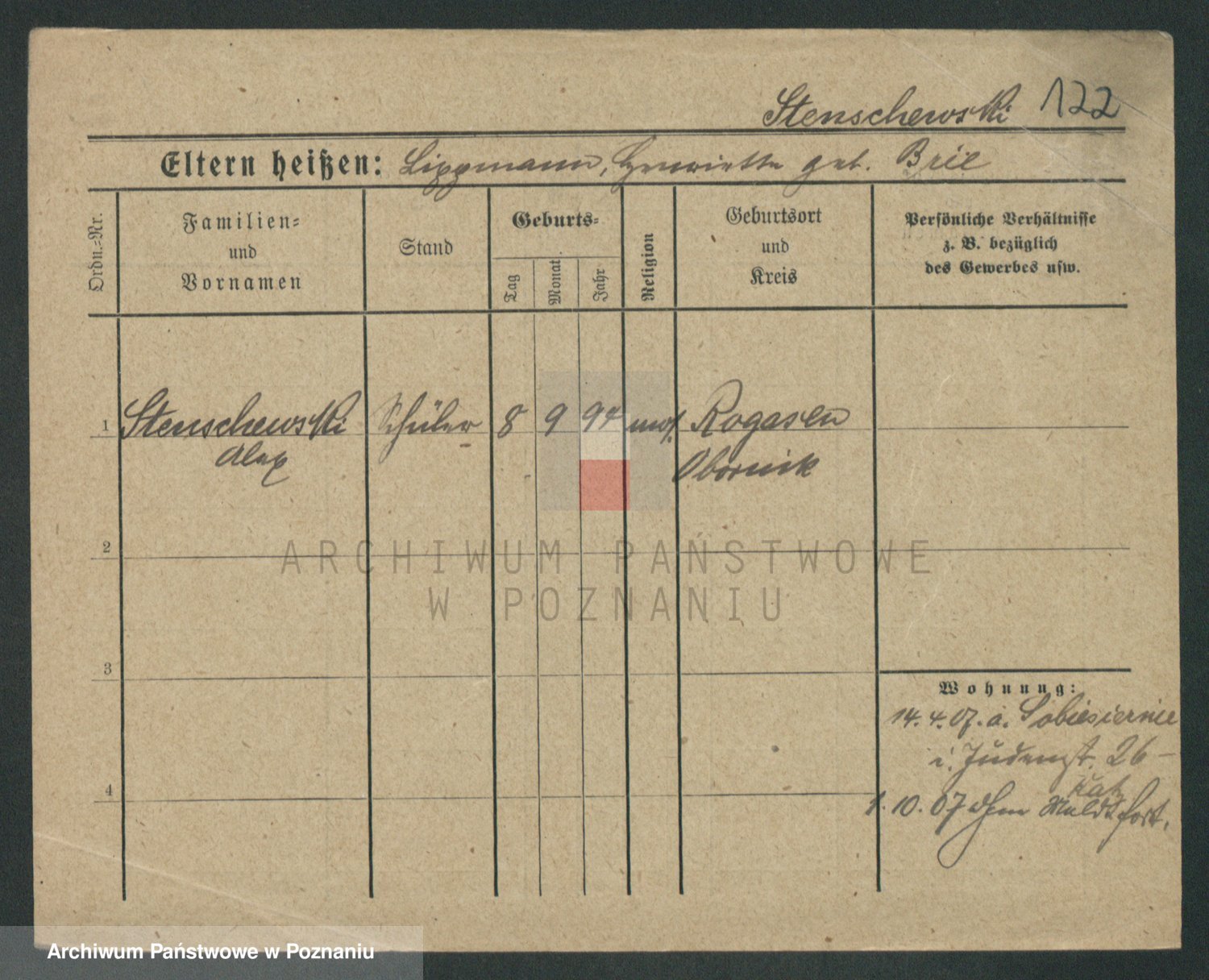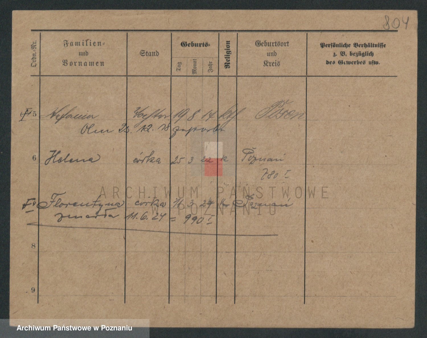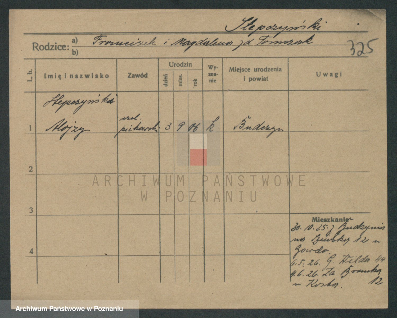Podgląd karty osobowej dostępny jest po kliknięciu na nazwisko lub ikonkę karty. Można dokonywać powiększenia (ikony na górze) lub przechodzić między kolejnymi skanami (strzałki po bokach).