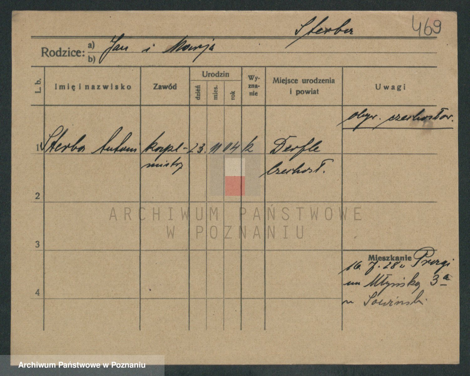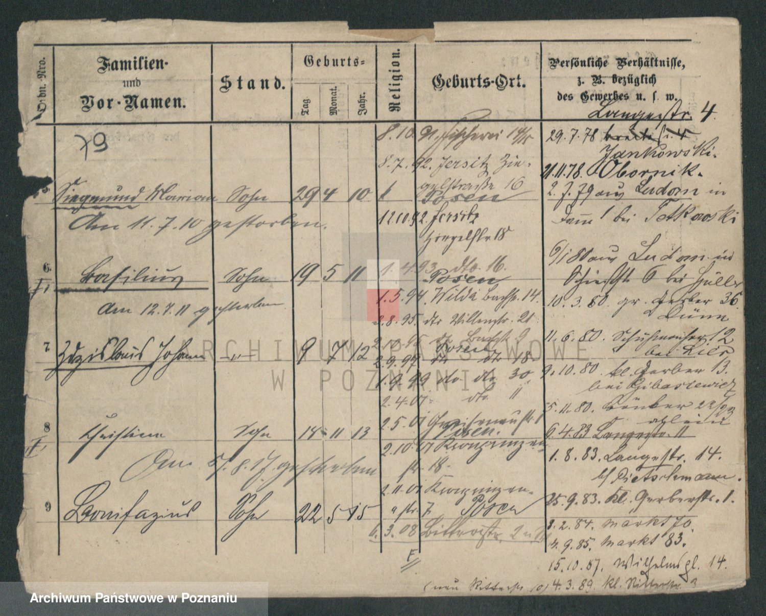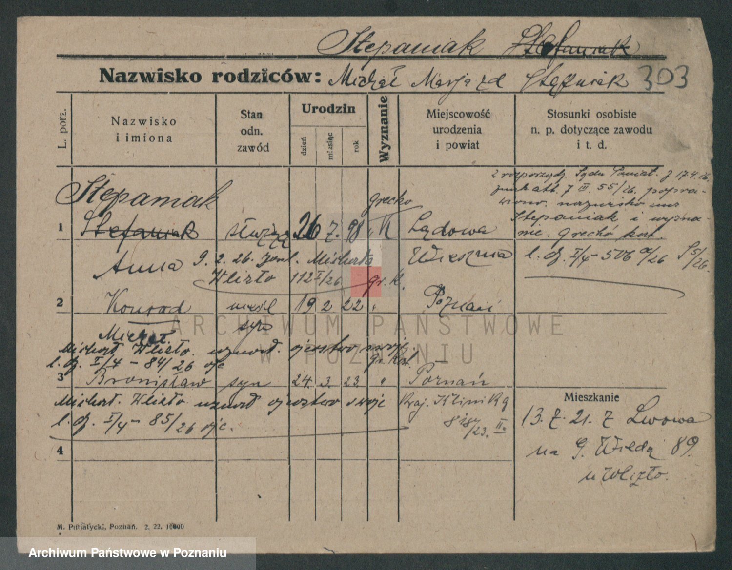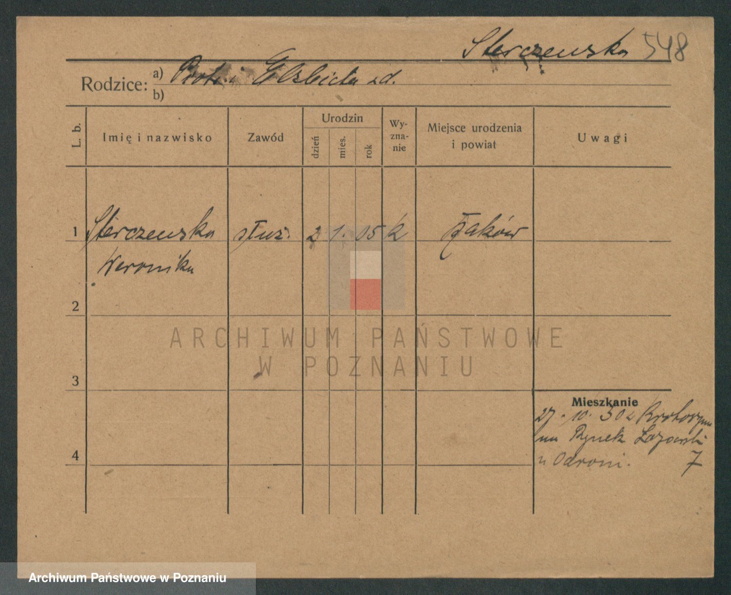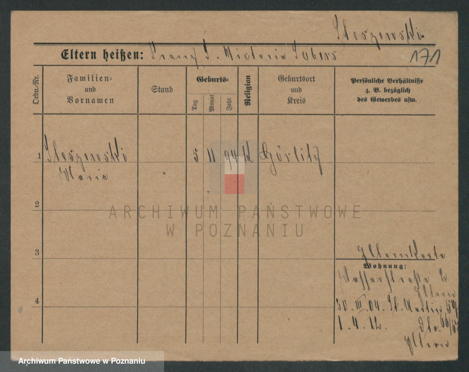 Podgląd karty osobowej dostępny jest po kliknięciu na nazwisko lub ikonkę karty. Można dokonywać powiększenia (ikony na górze) lub przechodzić między kolejnymi skanami (strzałki po bokach).