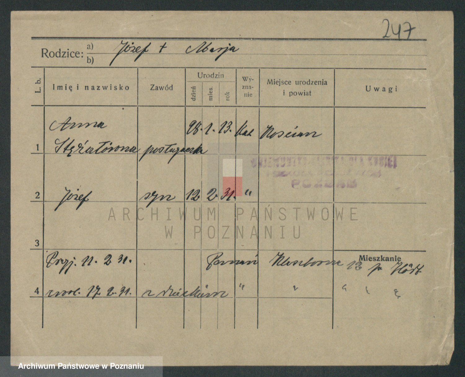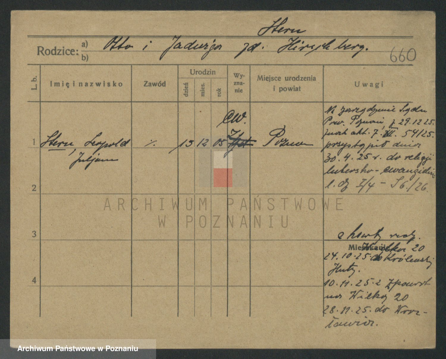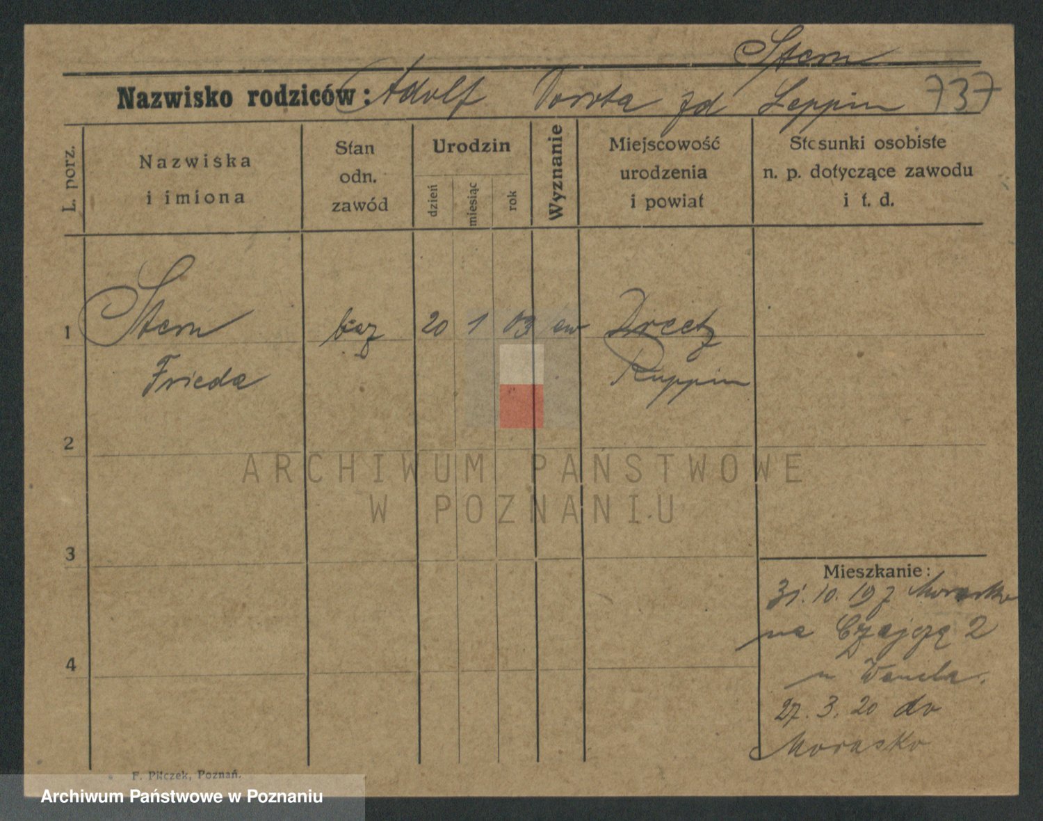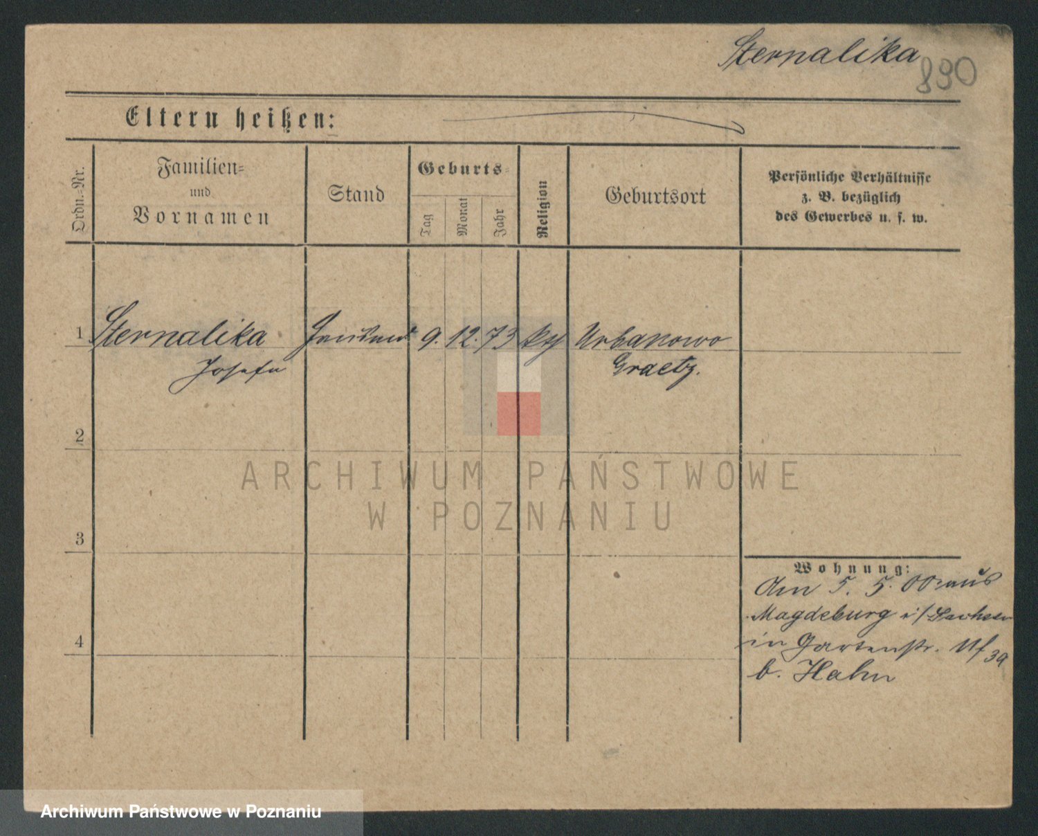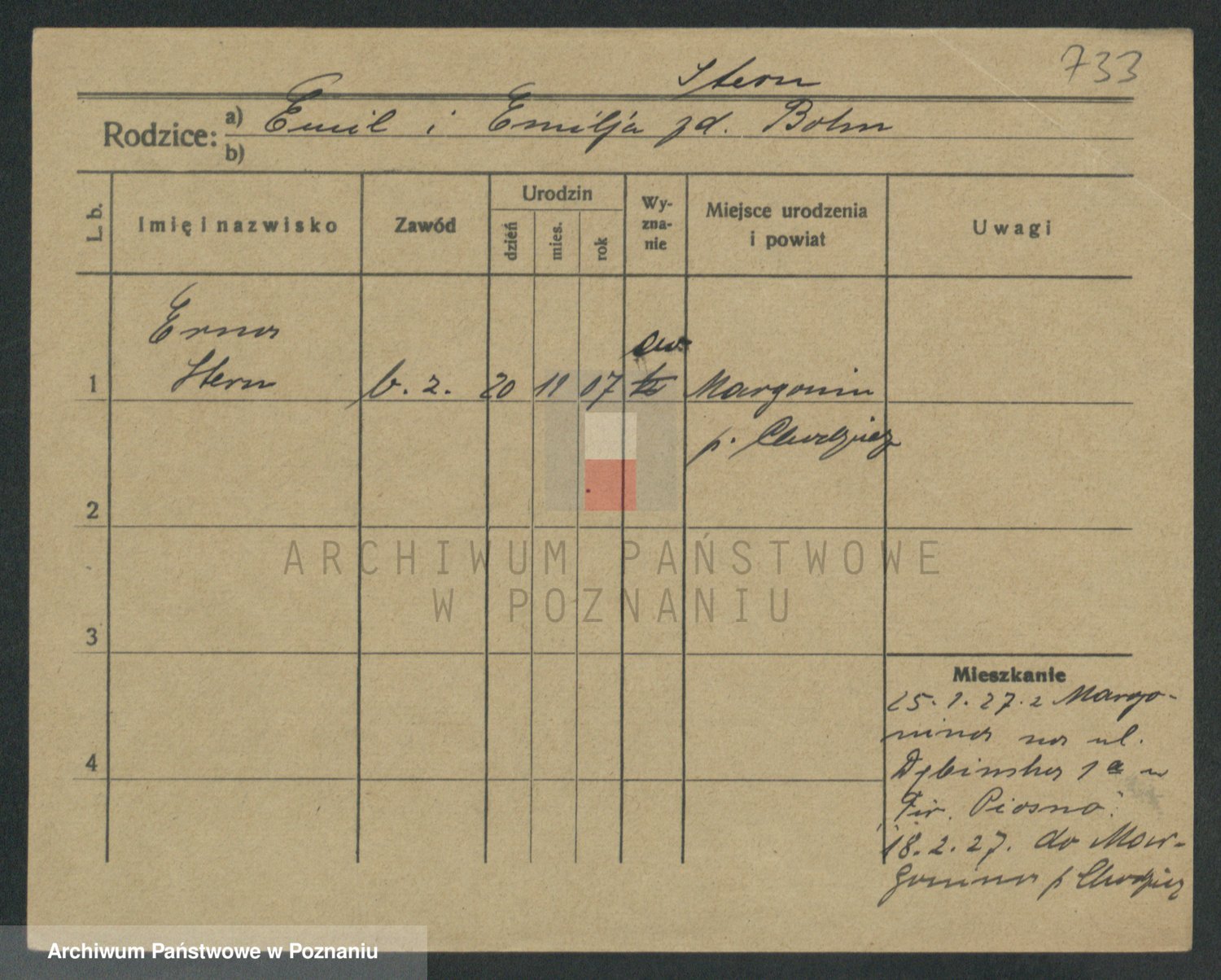 Podgląd karty osobowej dostępny jest po kliknięciu na nazwisko lub ikonkę karty. Można dokonywać powiększenia (ikony na górze) lub przechodzić między kolejnymi skanami (strzałki po bokach).