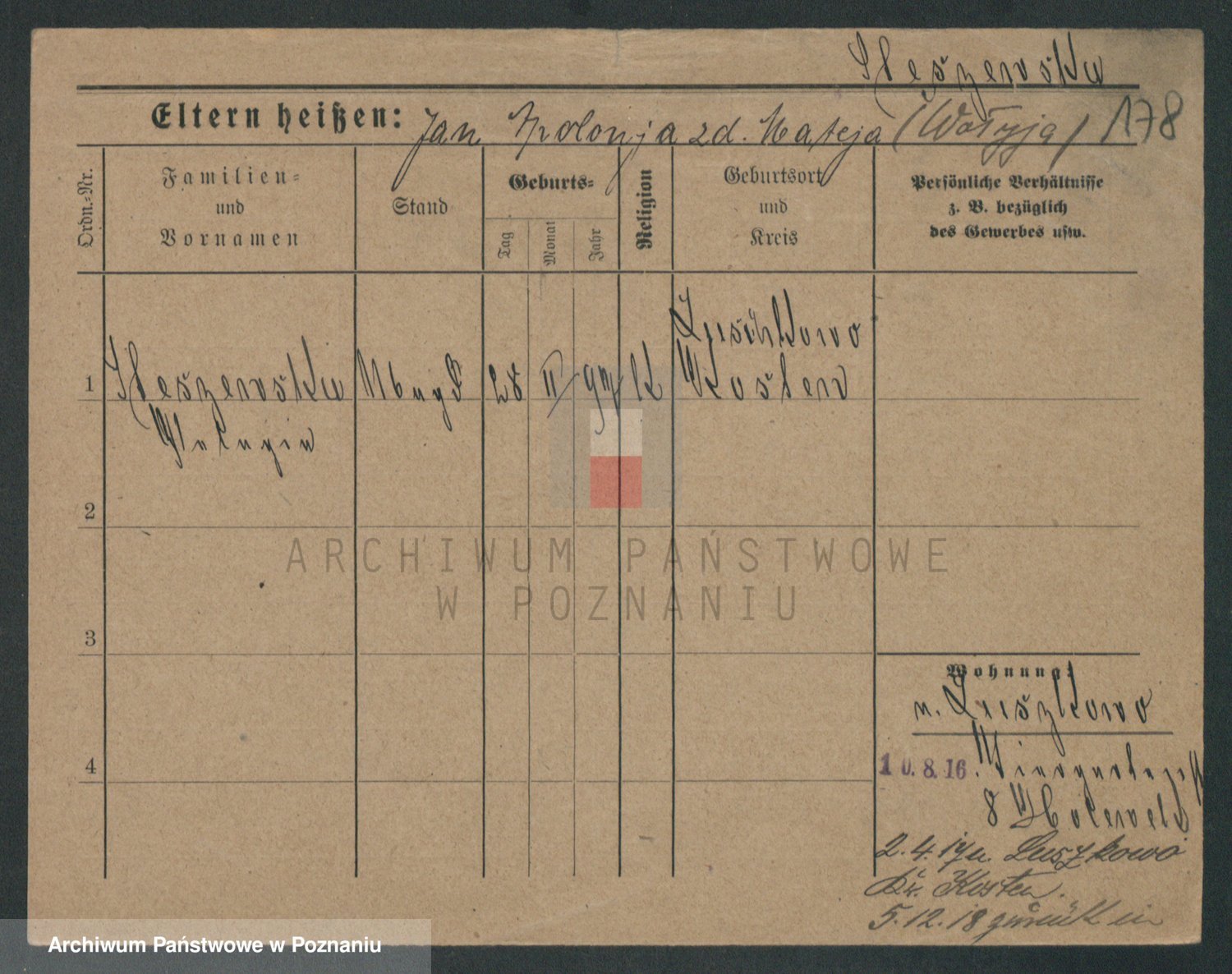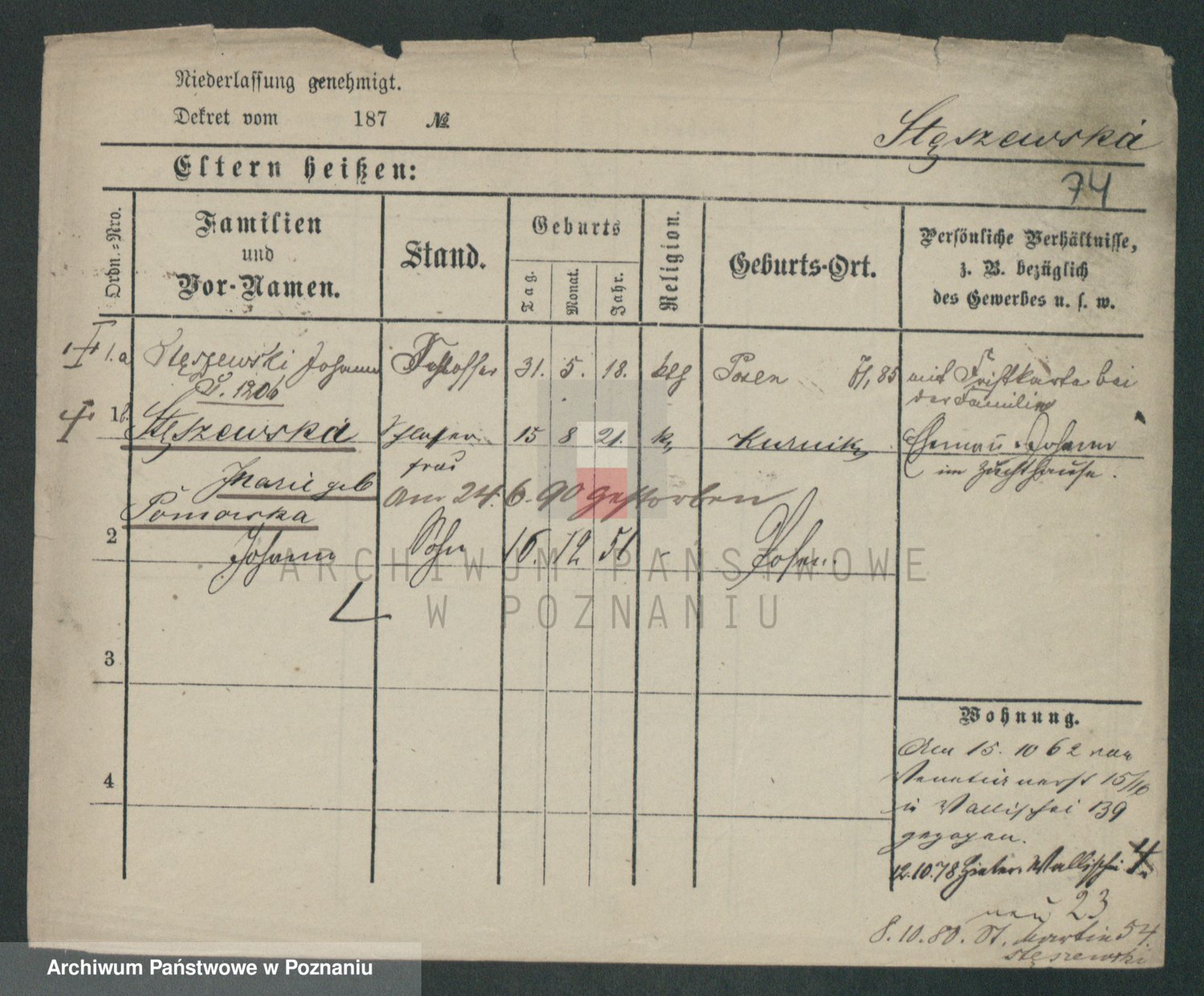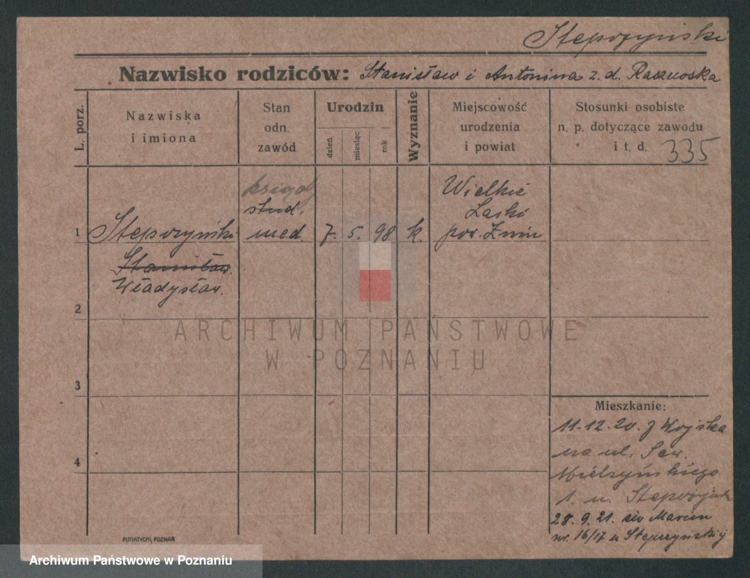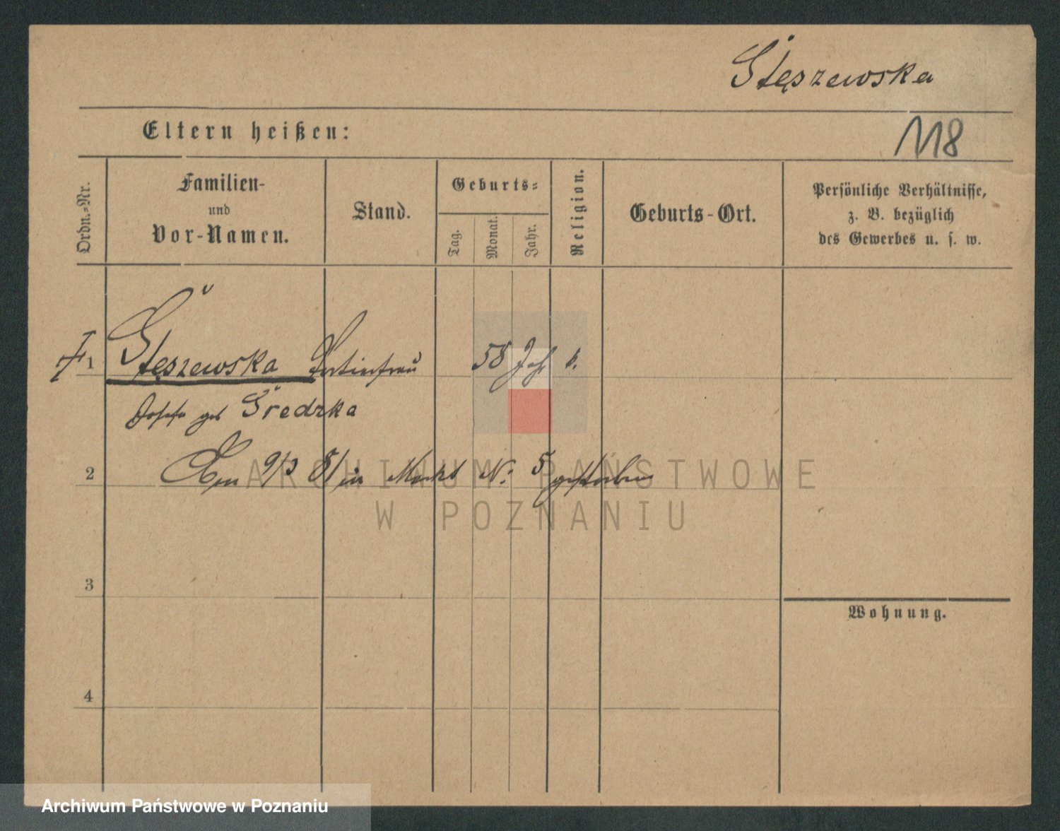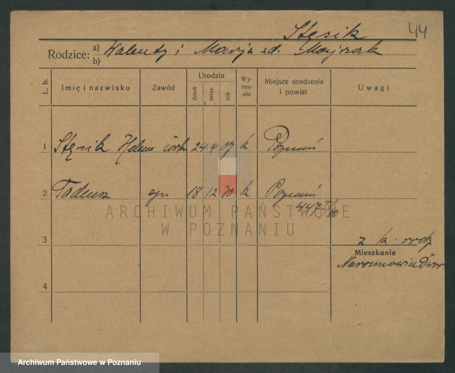 Podgląd karty osobowej dostępny jest po kliknięciu na nazwisko lub ikonkę karty. Można dokonywać powiększenia (ikony na górze) lub przechodzić między kolejnymi skanami (strzałki po bokach).