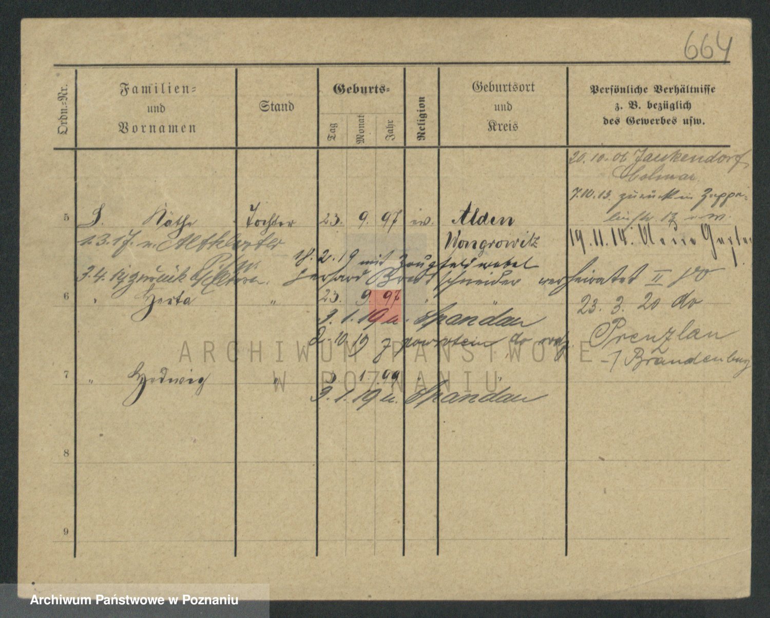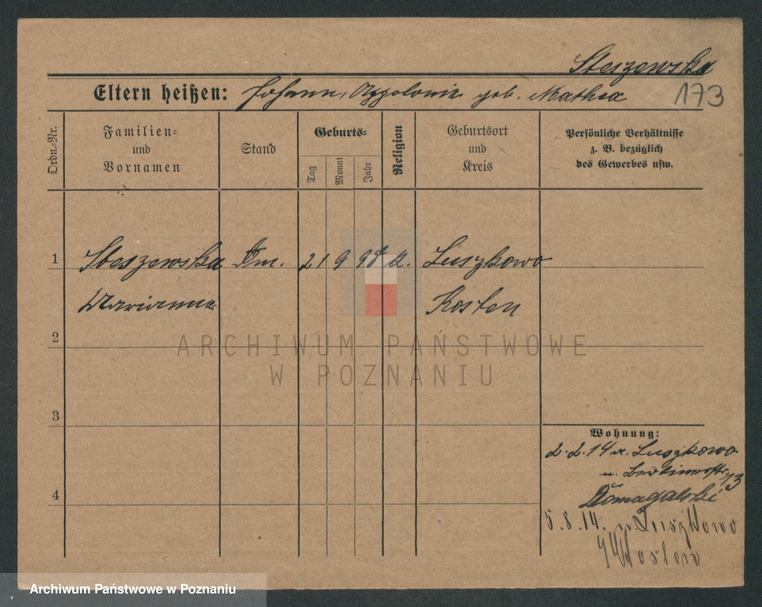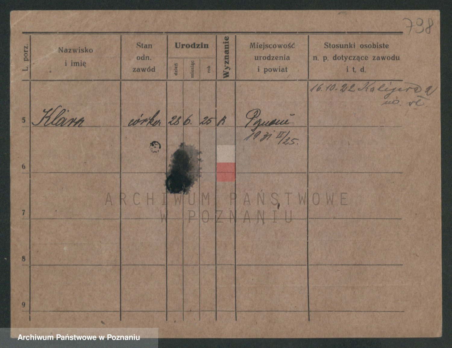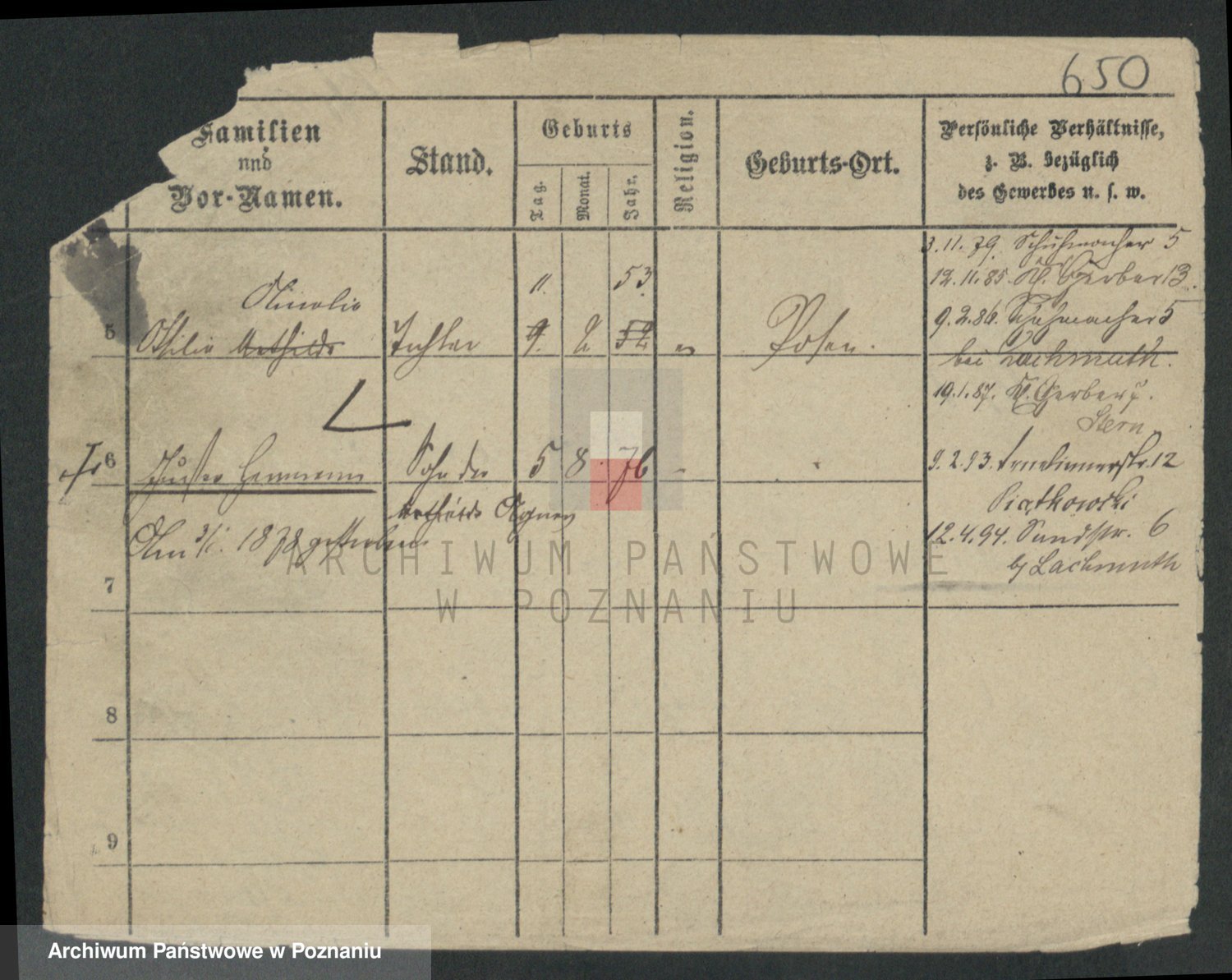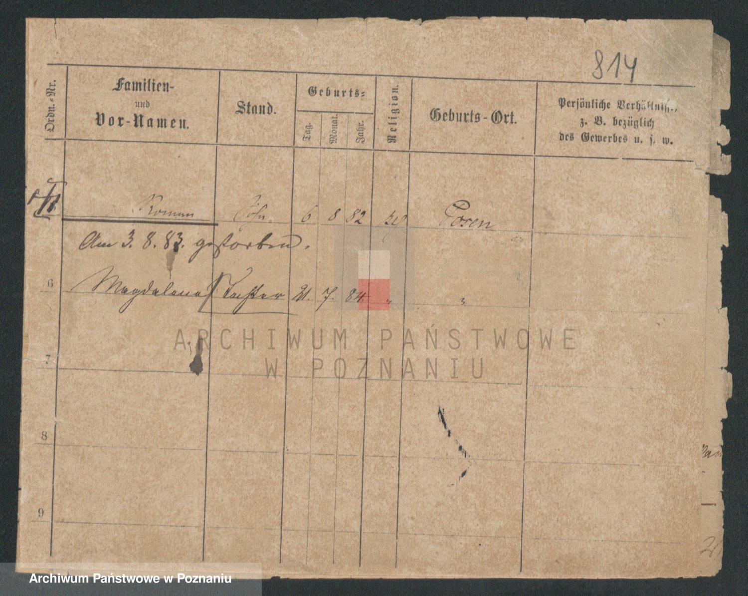 Podgląd karty osobowej dostępny jest po kliknięciu na nazwisko lub ikonkę karty. Można dokonywać powiększenia (ikony na górze) lub przechodzić między kolejnymi skanami (strzałki po bokach).