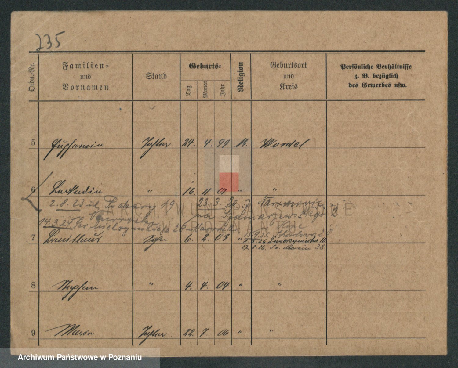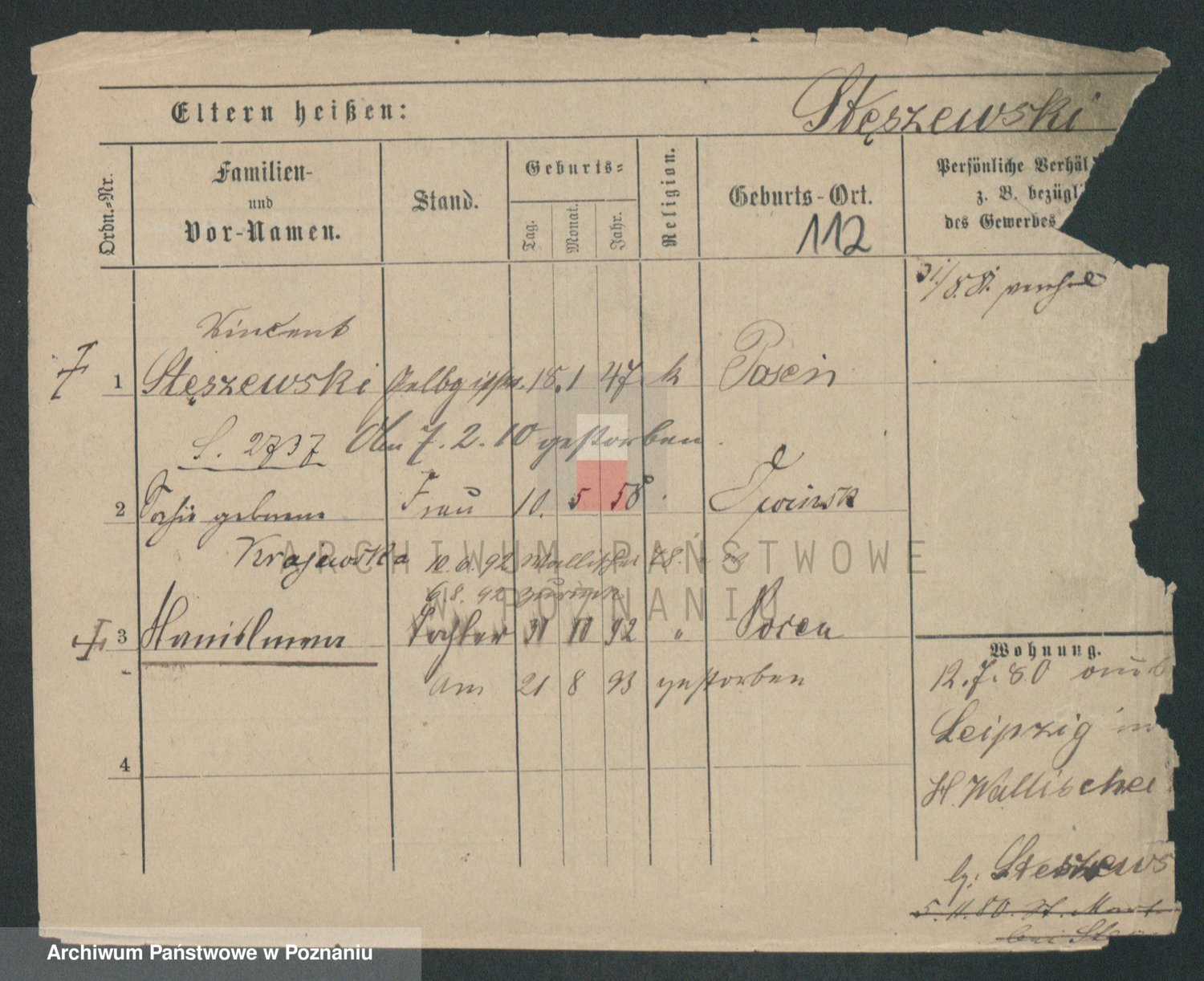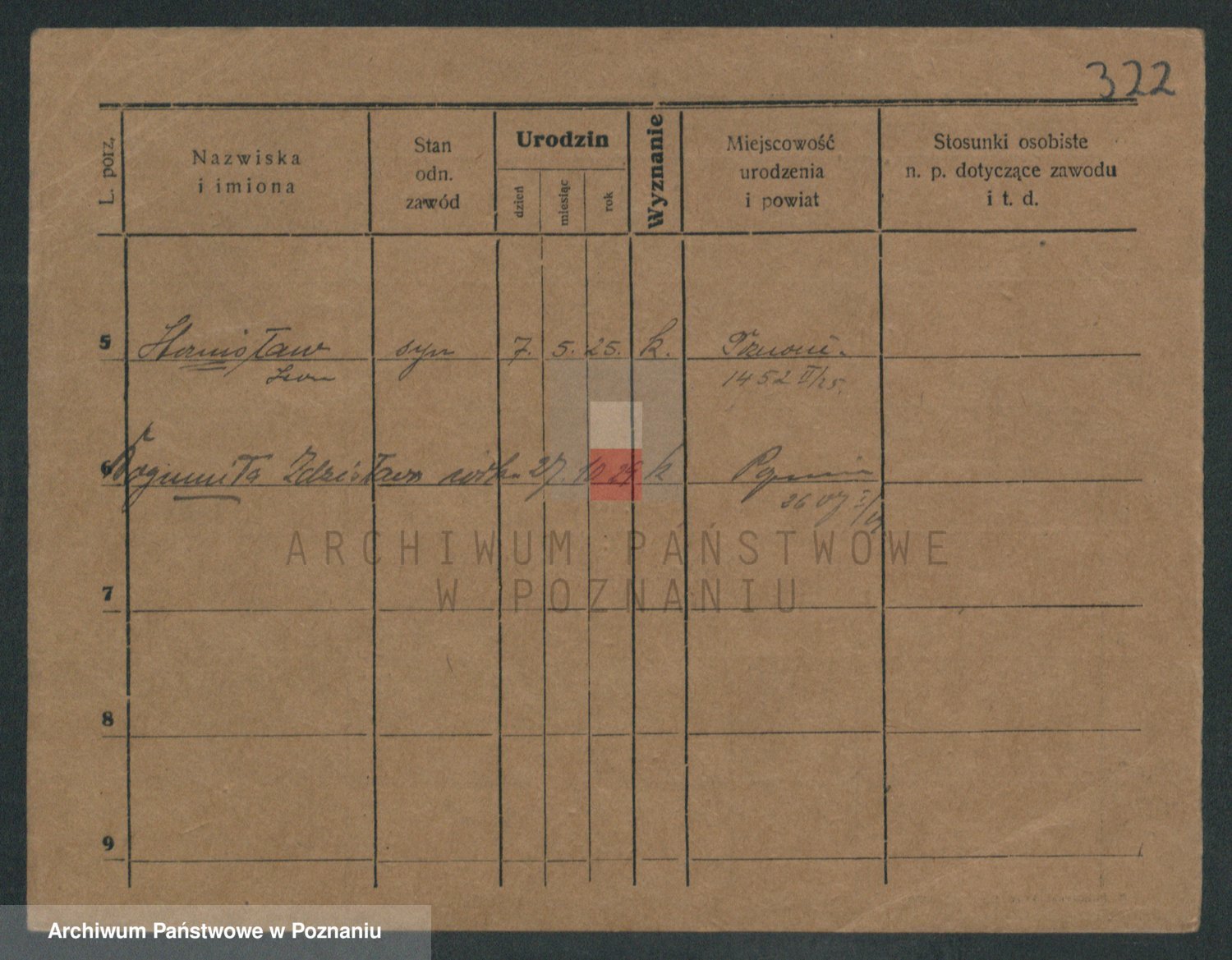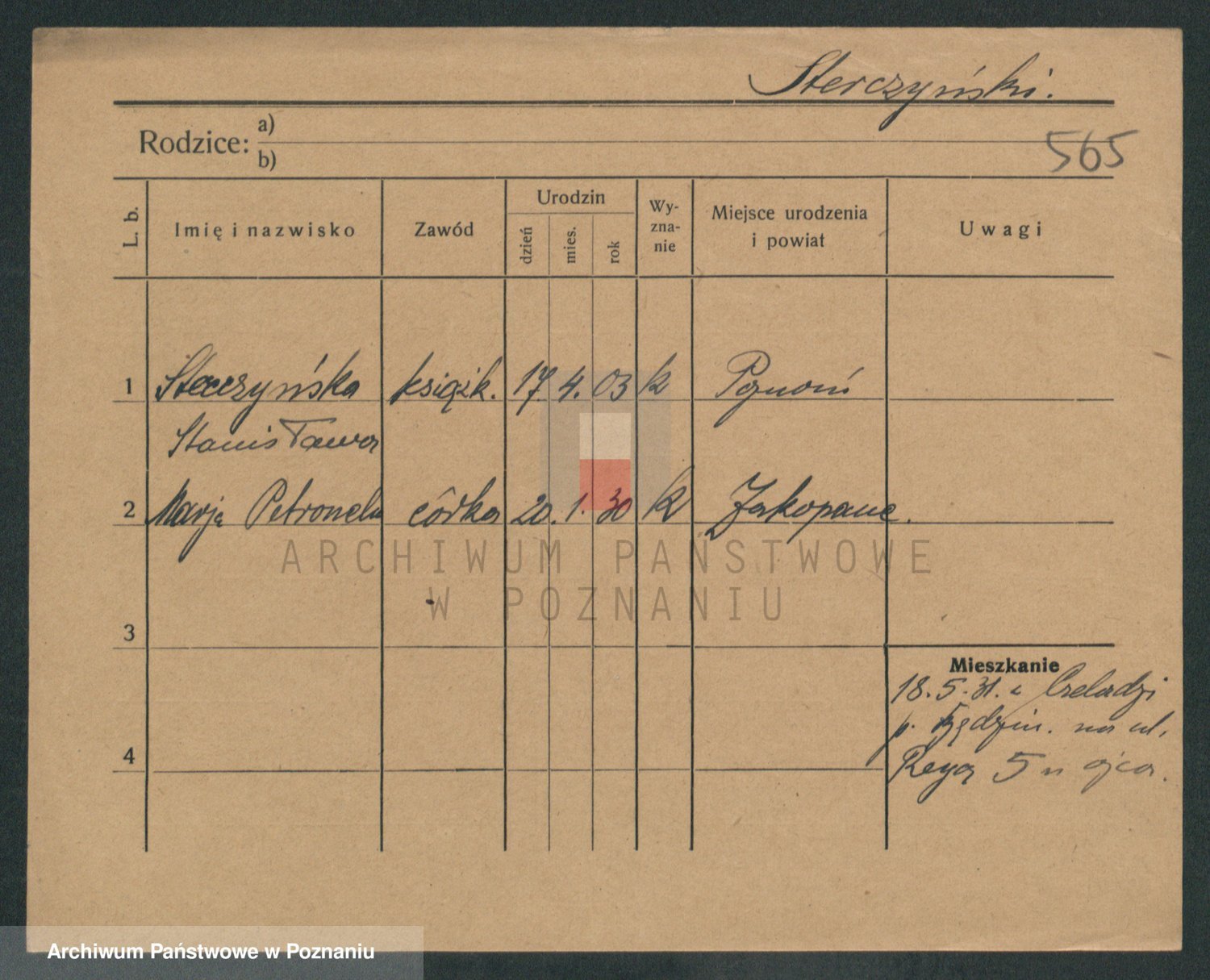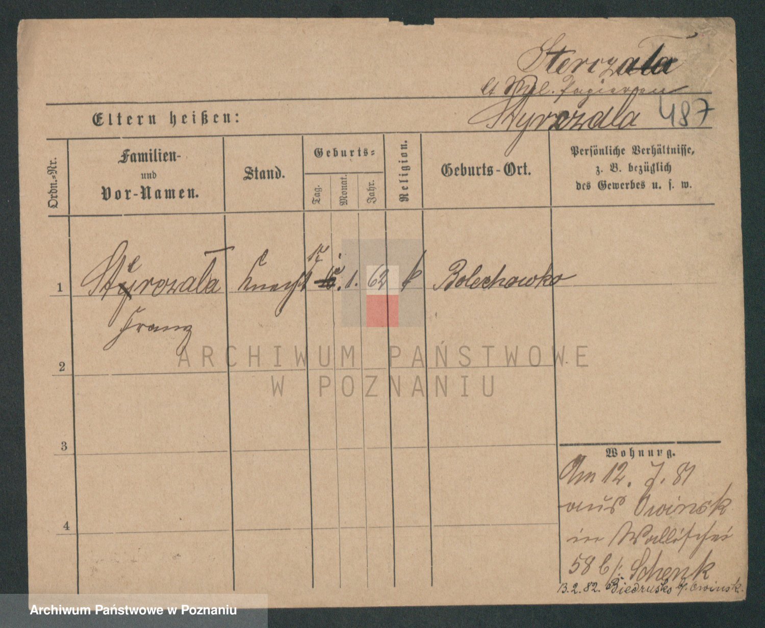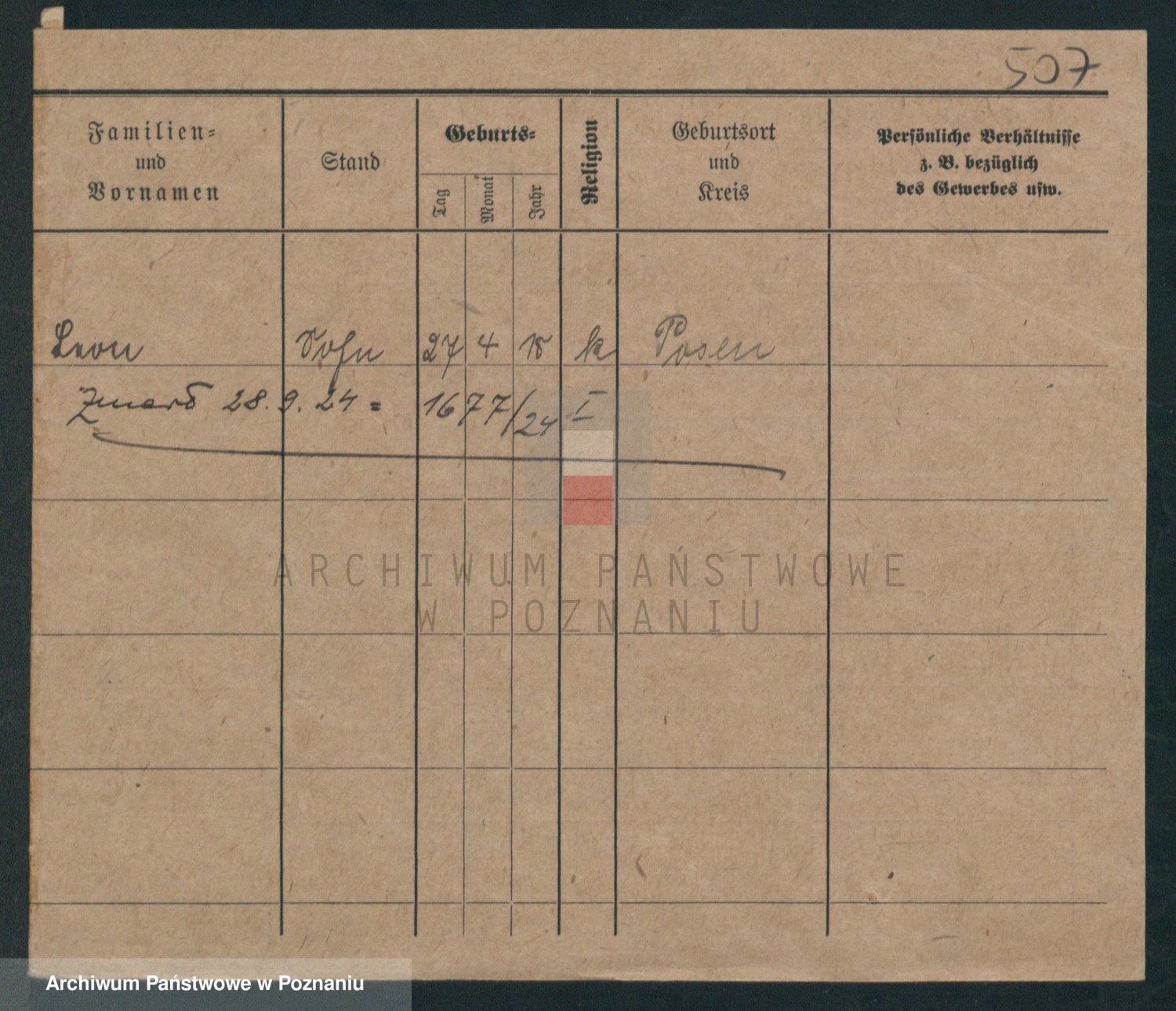 Podgląd karty osobowej dostępny jest po kliknięciu na nazwisko lub ikonkę karty. Można dokonywać powiększenia (ikony na górze) lub przechodzić między kolejnymi skanami (strzałki po bokach).