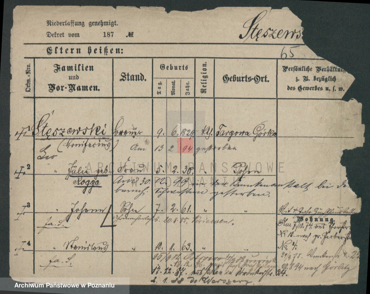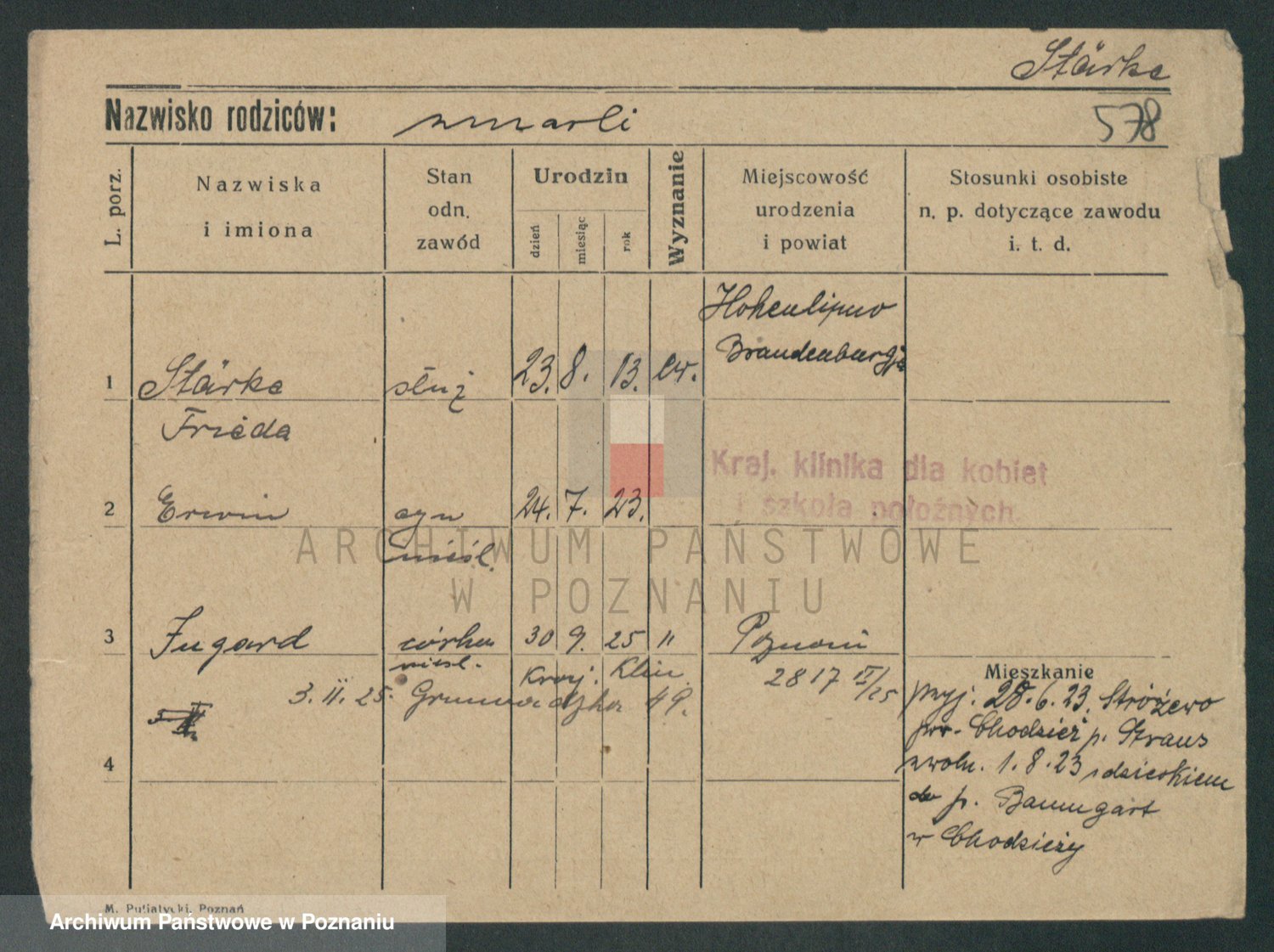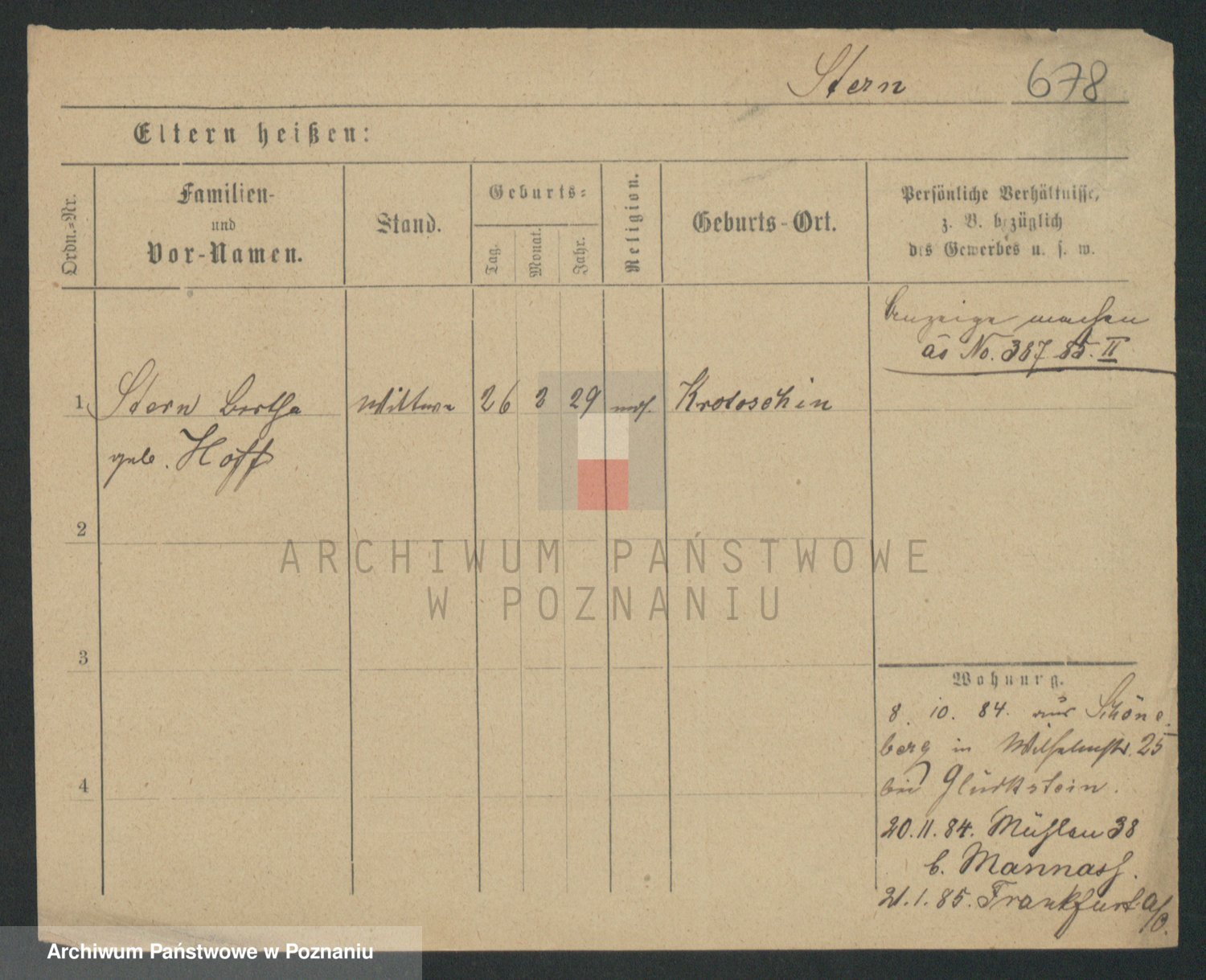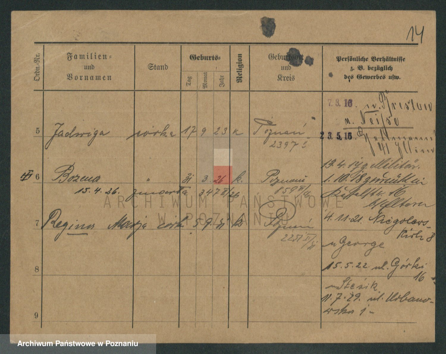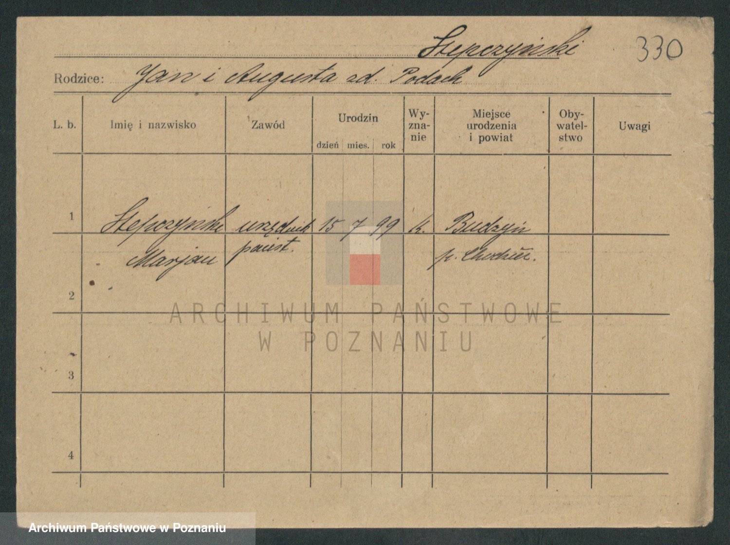 Podgląd karty osobowej dostępny jest po kliknięciu na nazwisko lub ikonkę karty. Można dokonywać powiększenia (ikony na górze) lub przechodzić między kolejnymi skanami (strzałki po bokach).
