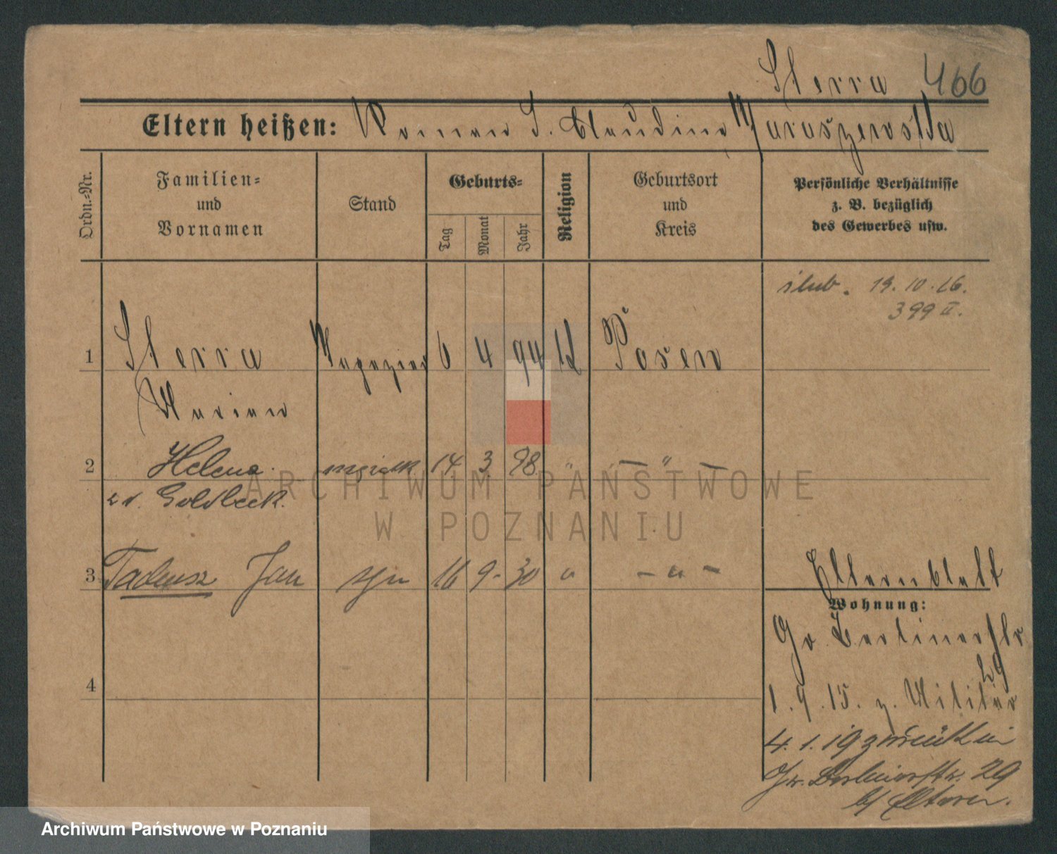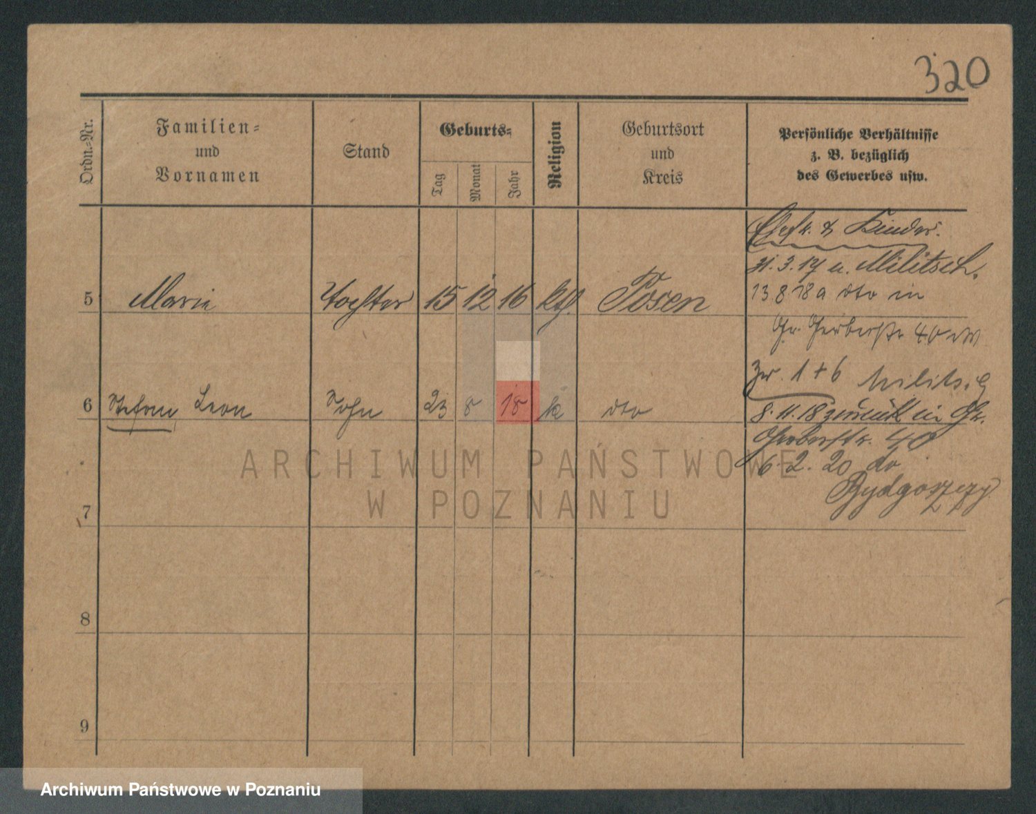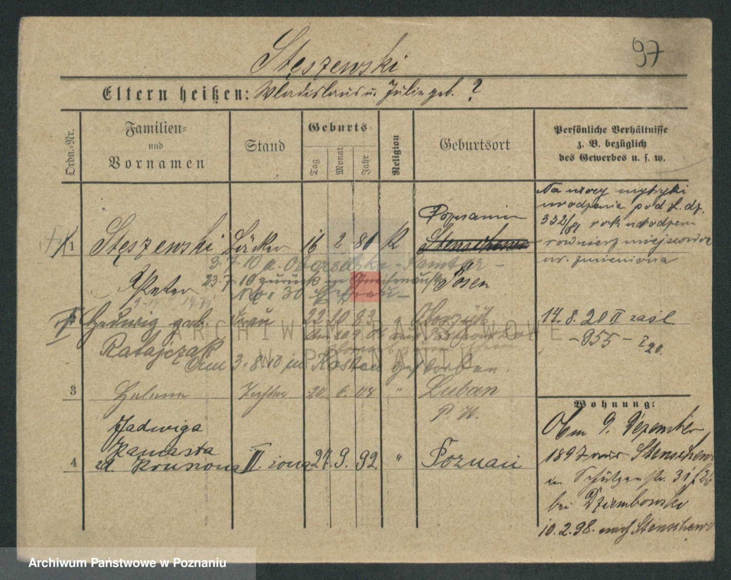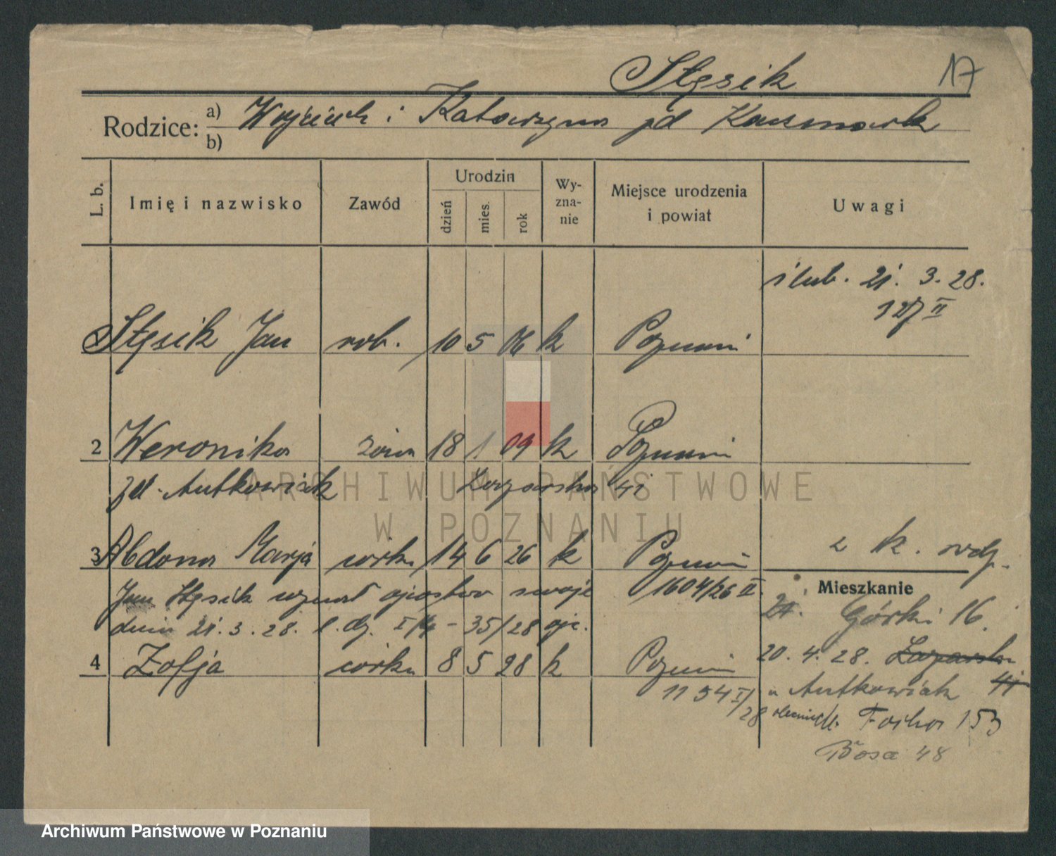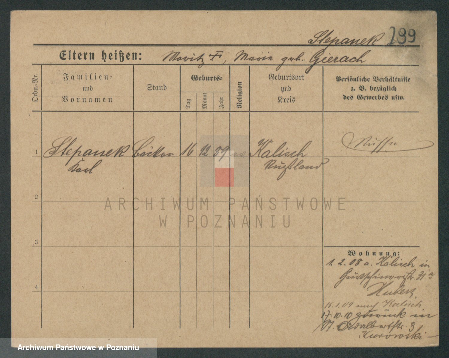 Podgląd karty osobowej dostępny jest po kliknięciu na nazwisko lub ikonkę karty. Można dokonywać powiększenia (ikony na górze) lub przechodzić między kolejnymi skanami (strzałki po bokach).