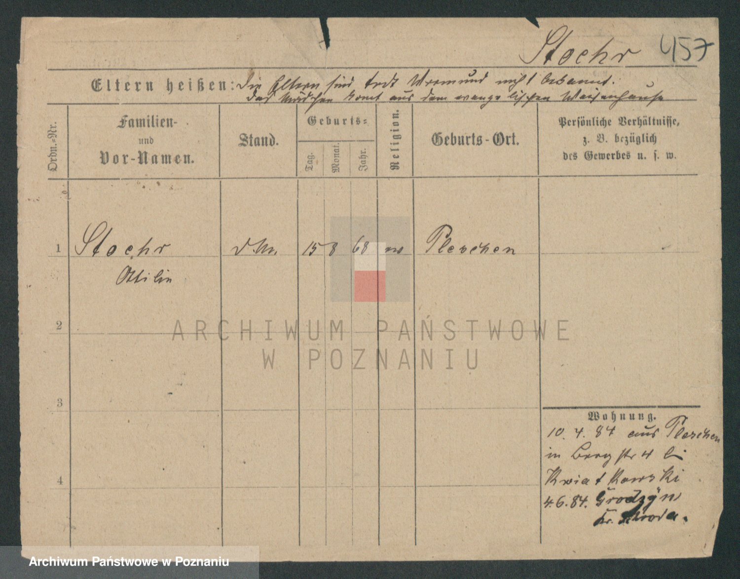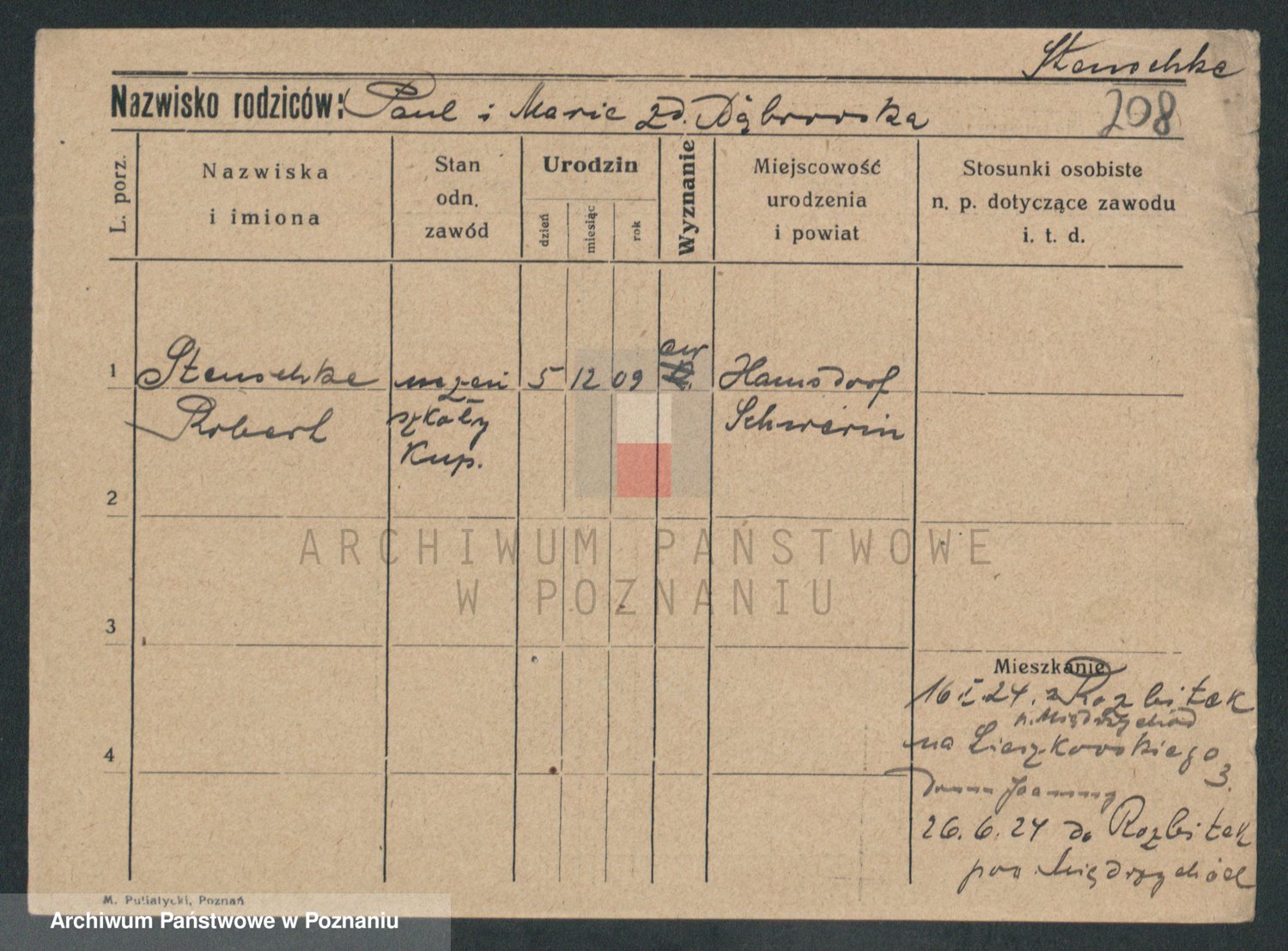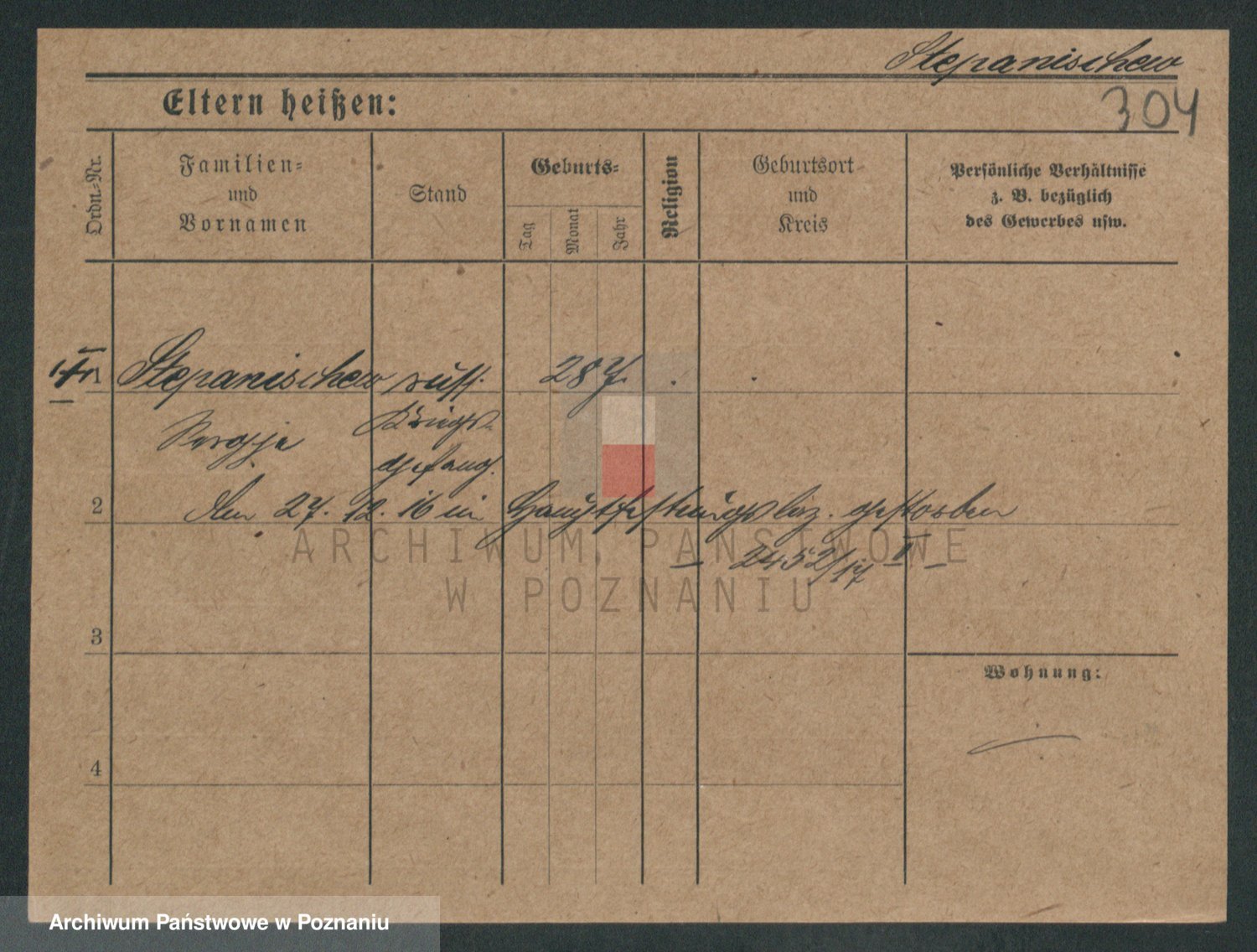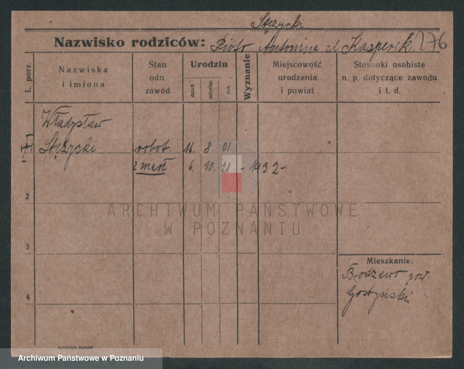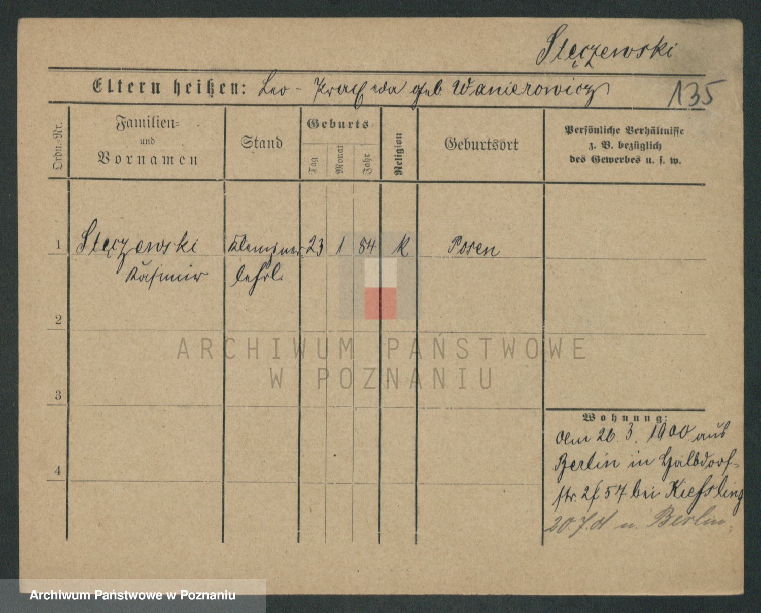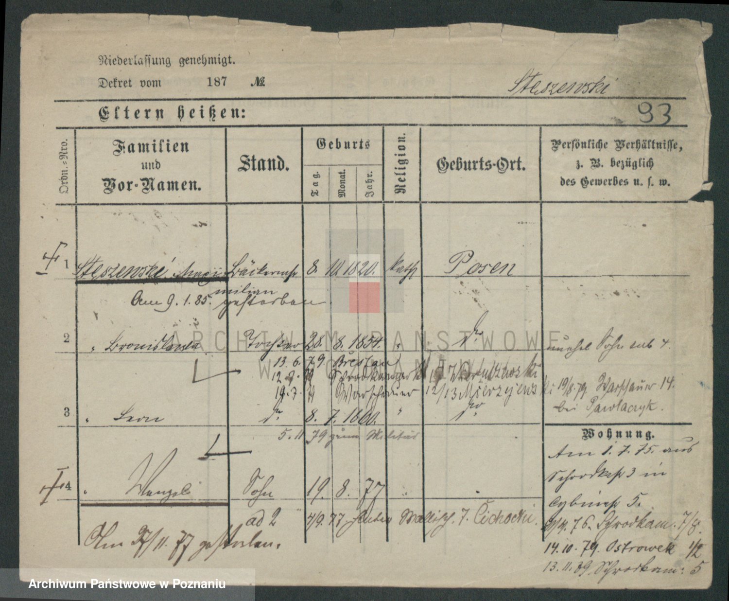 Podgląd karty osobowej dostępny jest po kliknięciu na nazwisko lub ikonkę karty. Można dokonywać powiększenia (ikony na górze) lub przechodzić między kolejnymi skanami (strzałki po bokach).