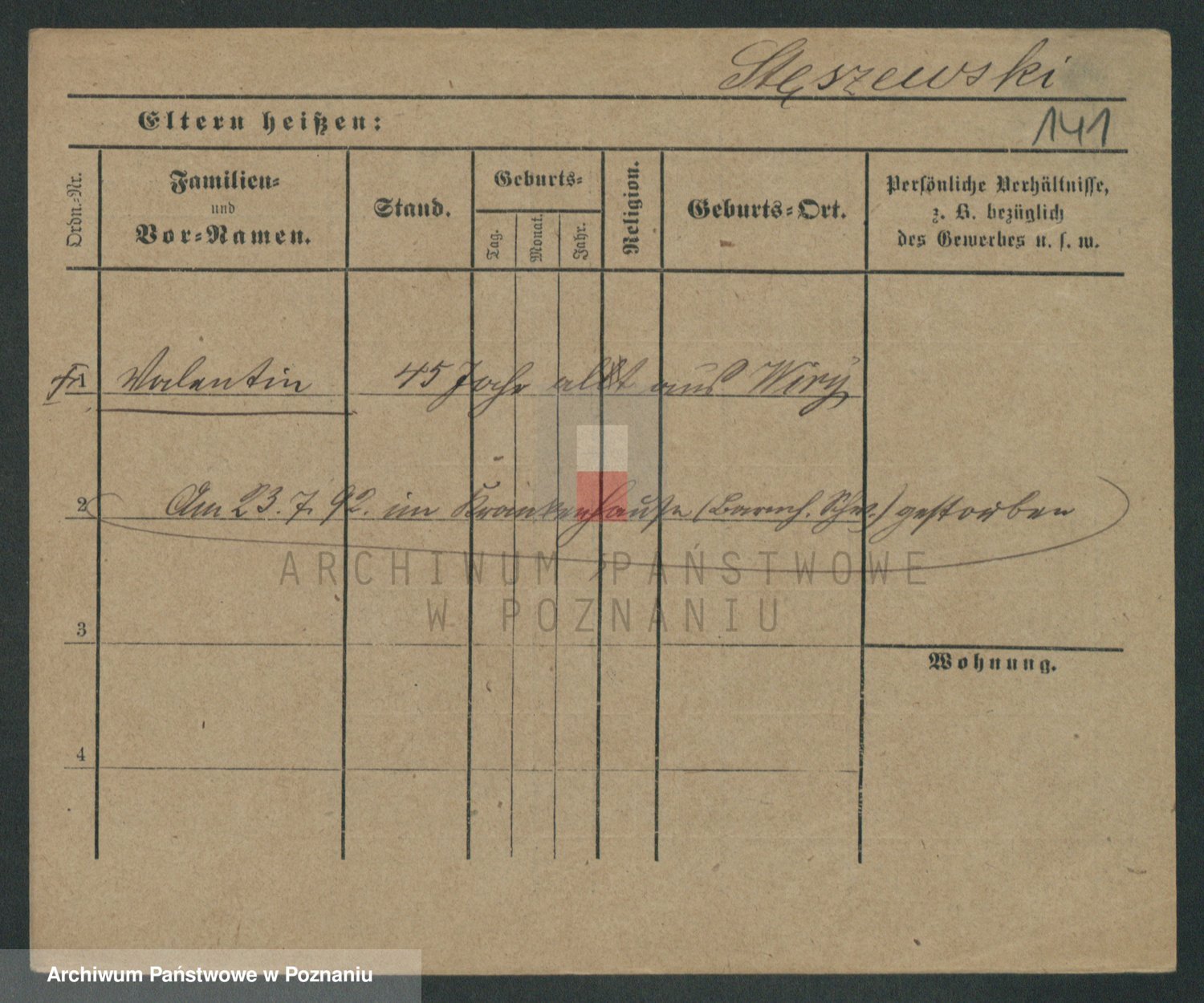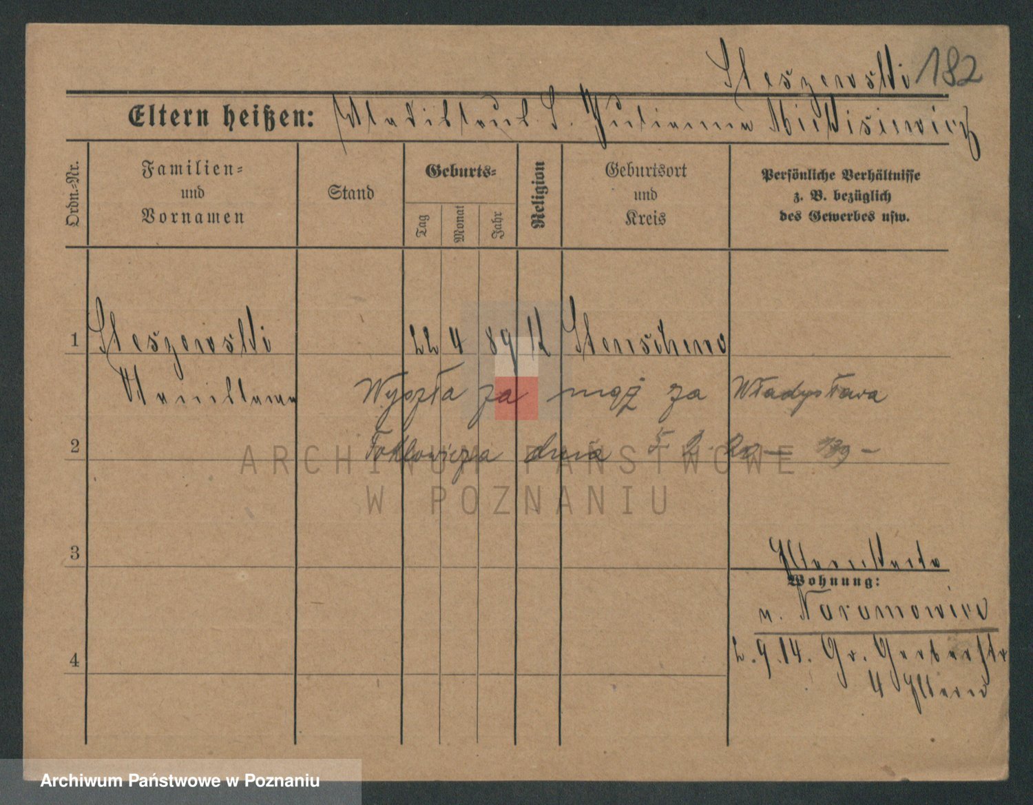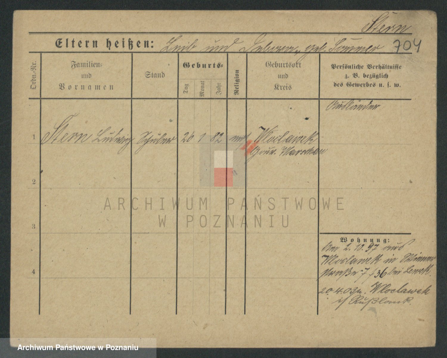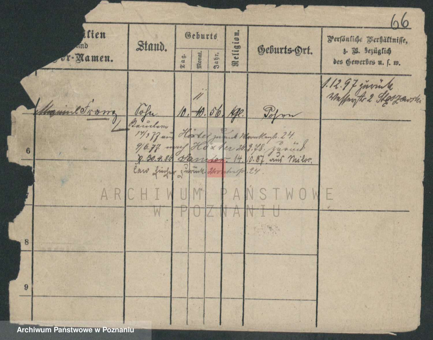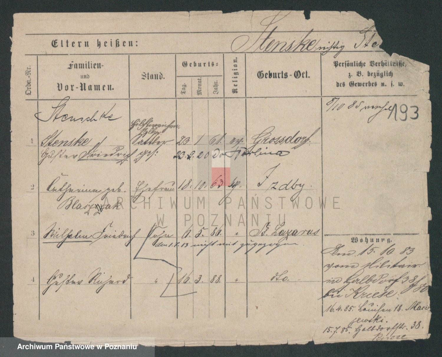 Podgląd karty osobowej dostępny jest po kliknięciu na nazwisko lub ikonkę karty. Można dokonywać powiększenia (ikony na górze) lub przechodzić między kolejnymi skanami (strzałki po bokach).