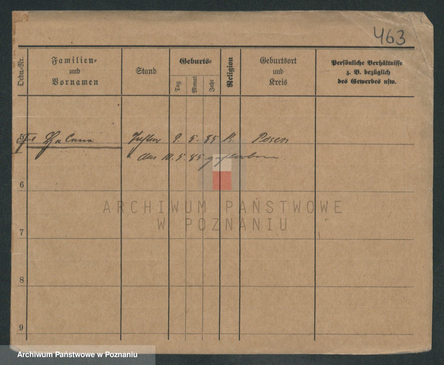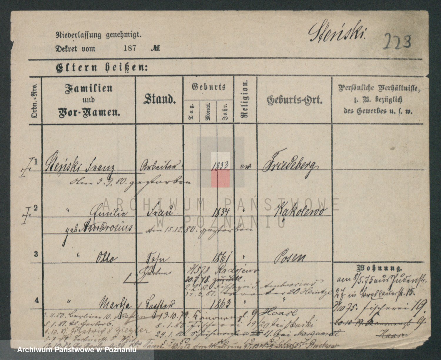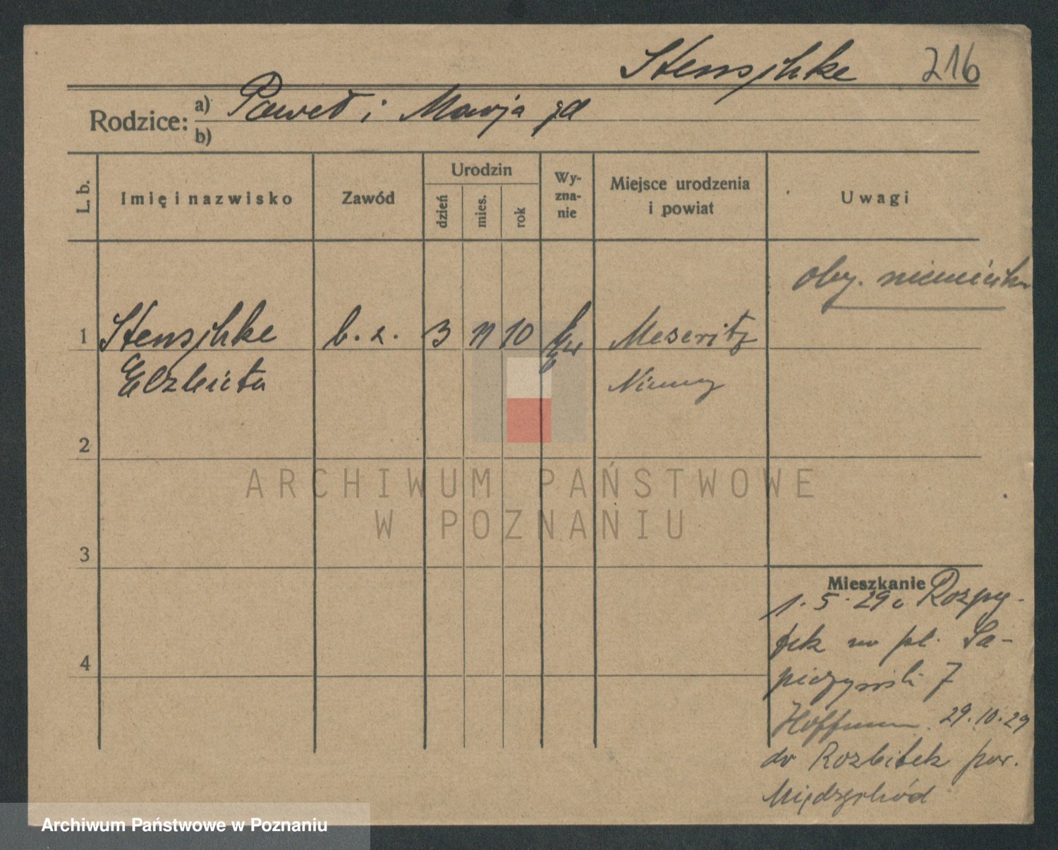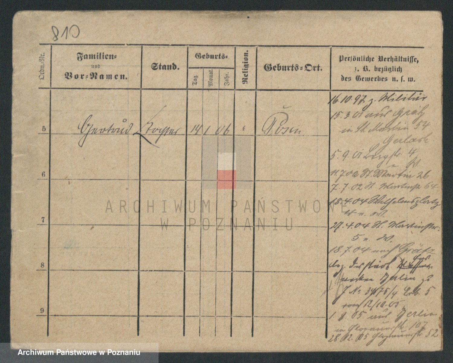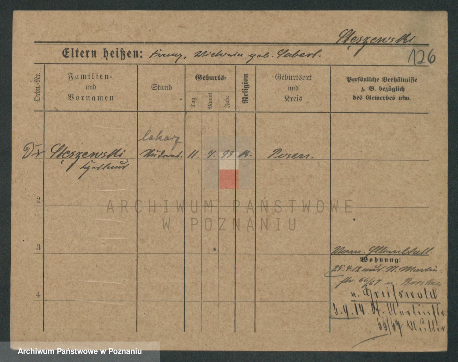 Podgląd karty osobowej dostępny jest po kliknięciu na nazwisko lub ikonkę karty. Można dokonywać powiększenia (ikony na górze) lub przechodzić między kolejnymi skanami (strzałki po bokach).