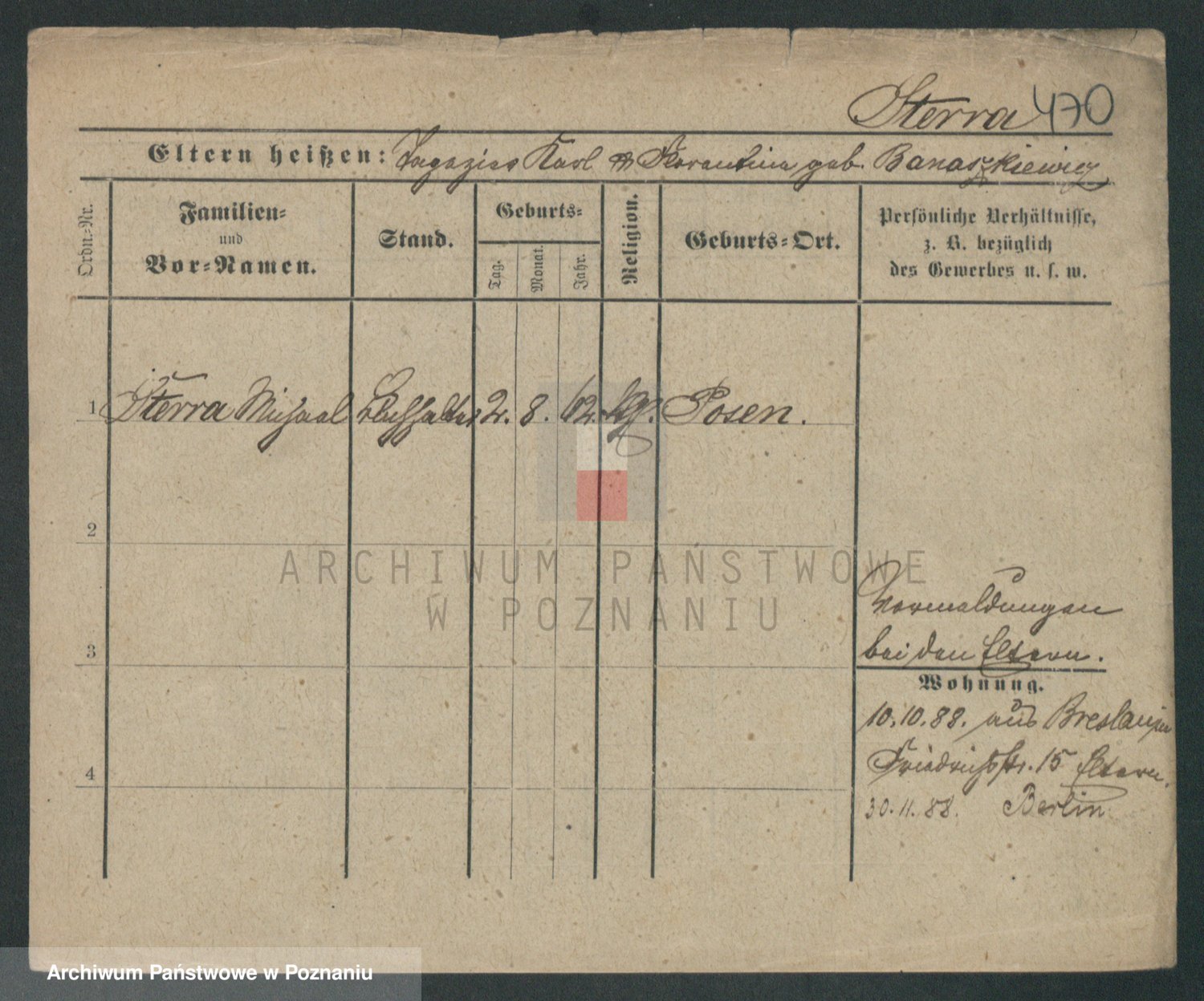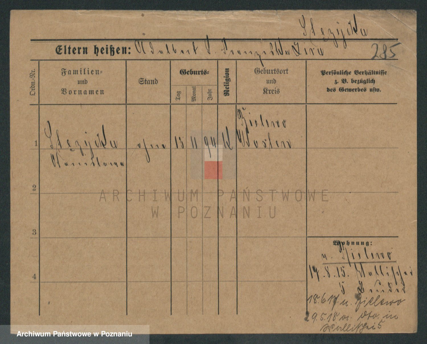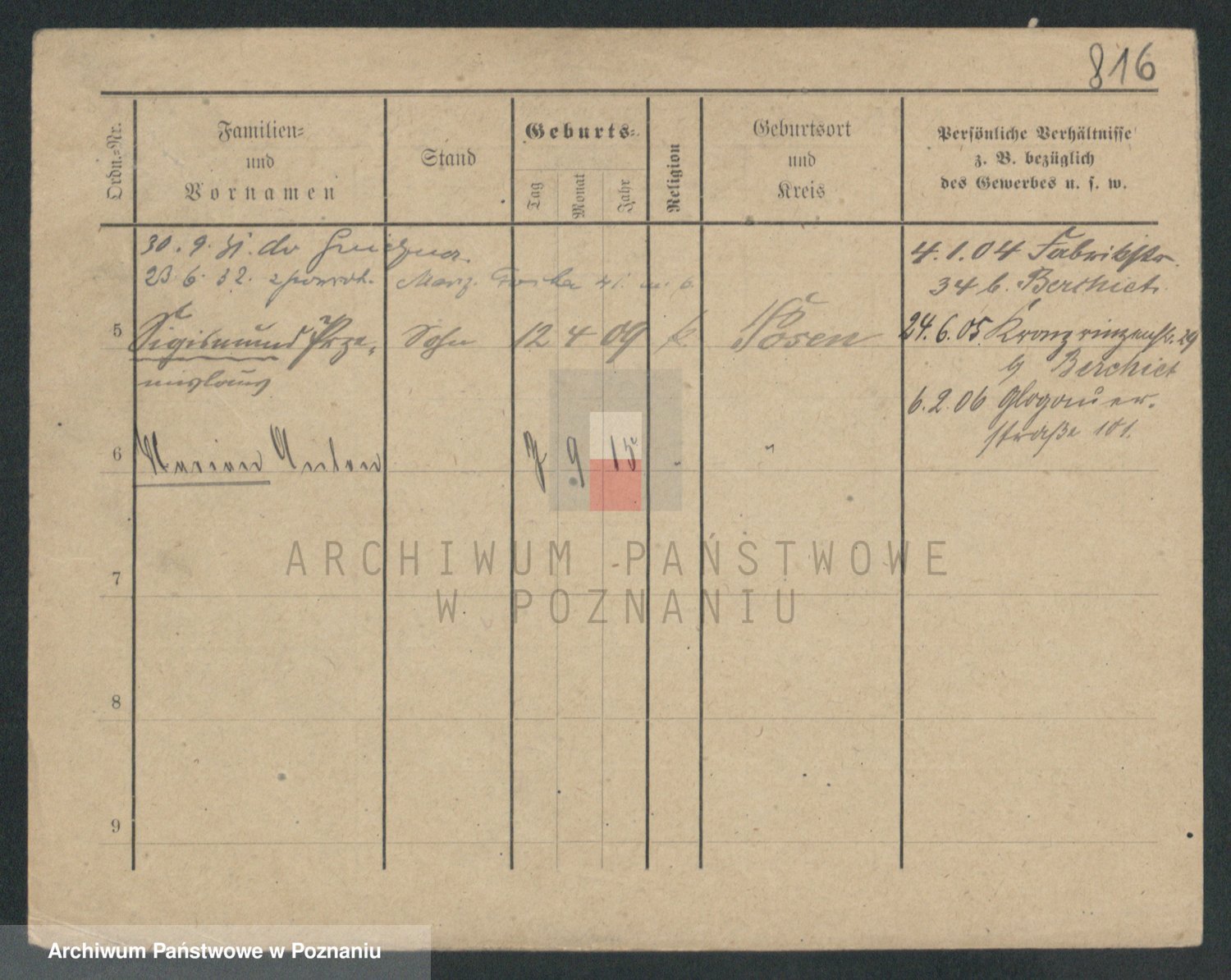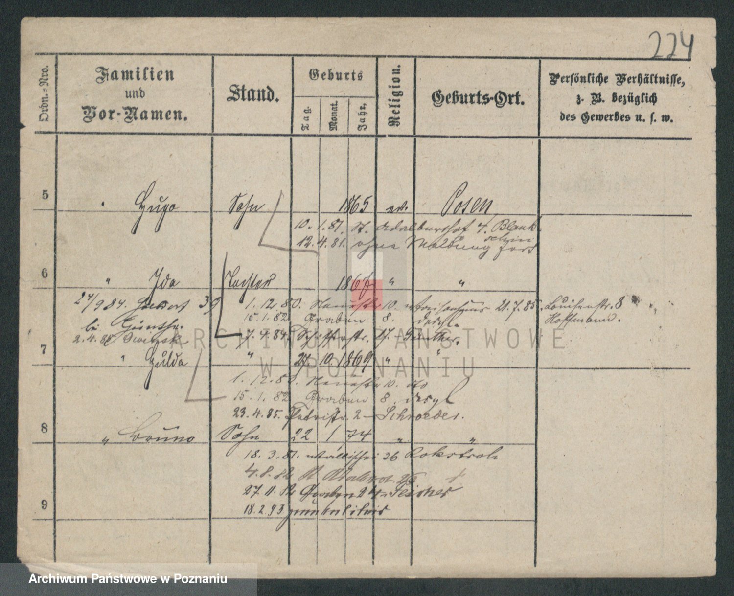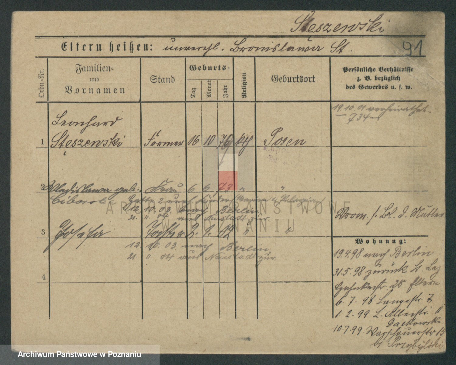 Podgląd karty osobowej dostępny jest po kliknięciu na nazwisko lub ikonkę karty. Można dokonywać powiększenia (ikony na górze) lub przechodzić między kolejnymi skanami (strzałki po bokach).