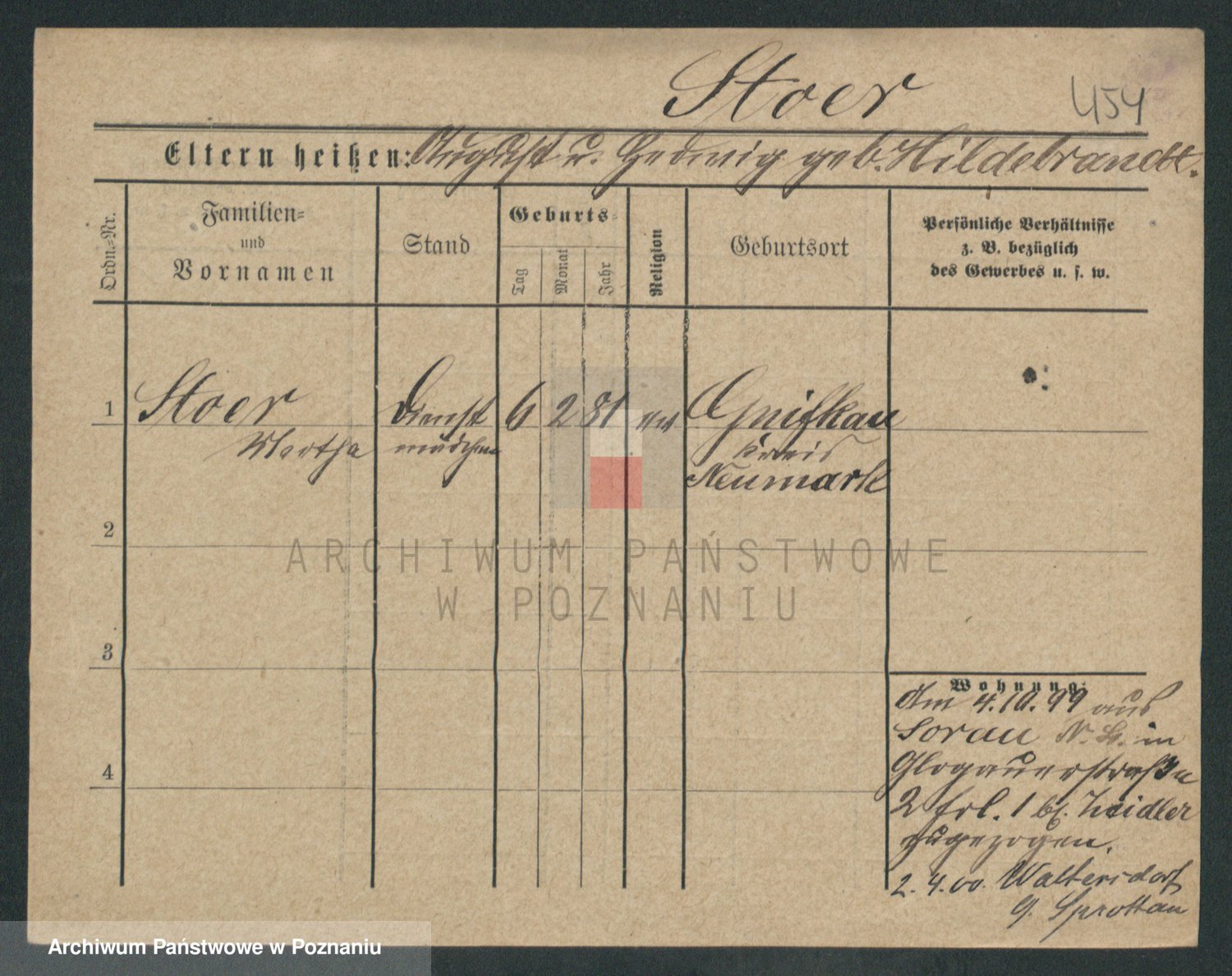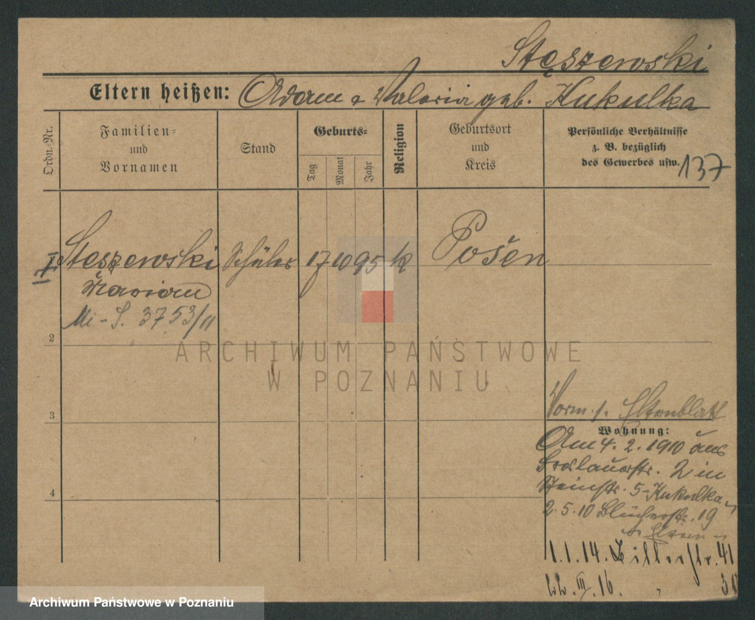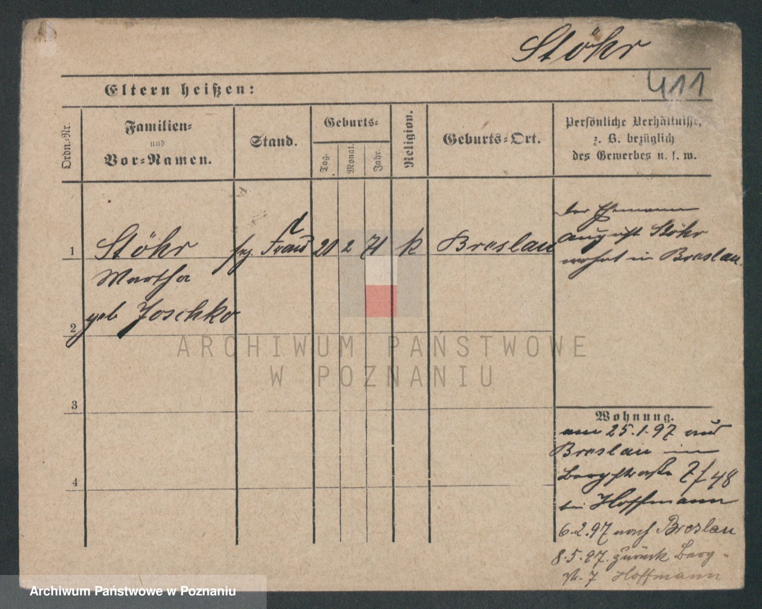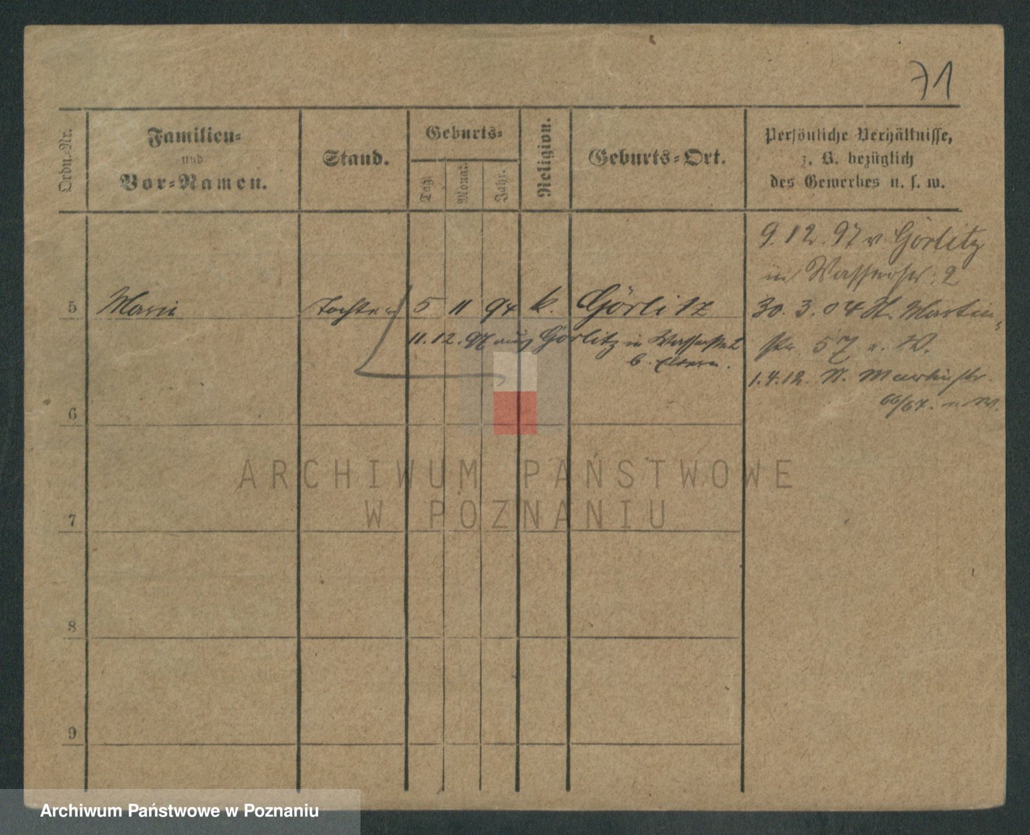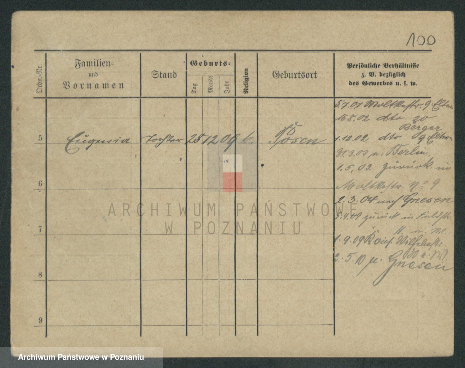 Podgląd karty osobowej dostępny jest po kliknięciu na nazwisko lub ikonkę karty. Można dokonywać powiększenia (ikony na górze) lub przechodzić między kolejnymi skanami (strzałki po bokach).