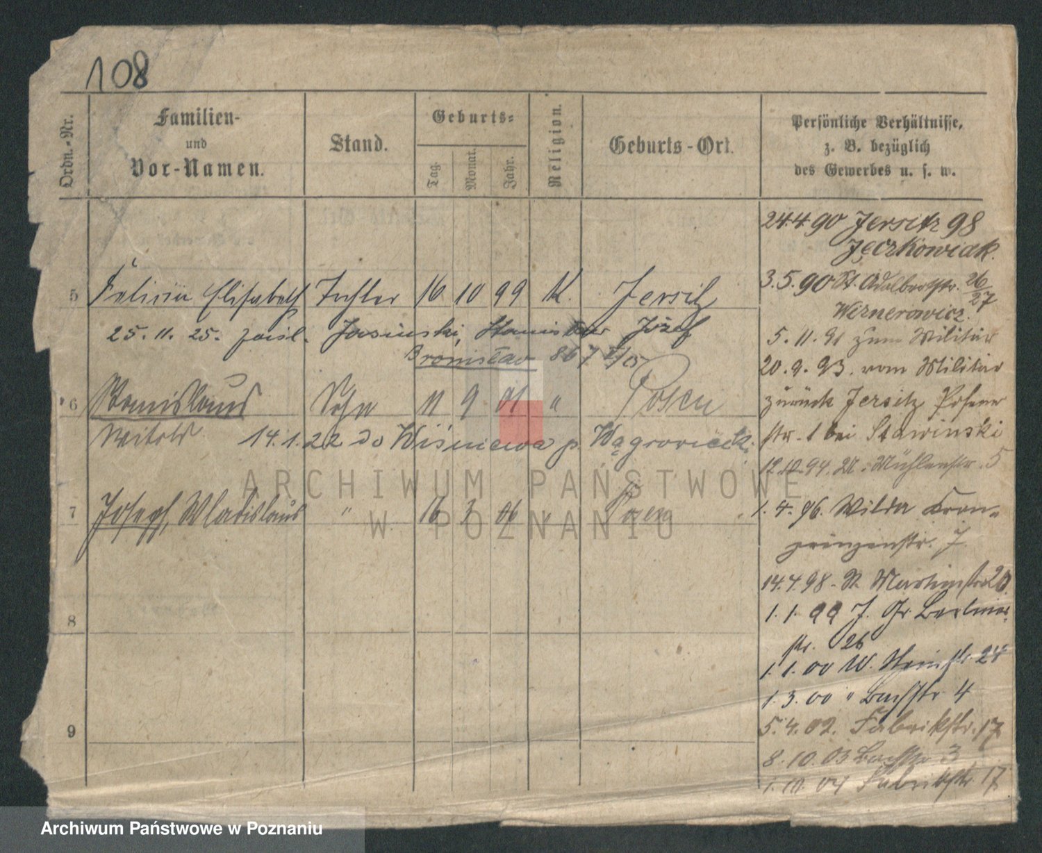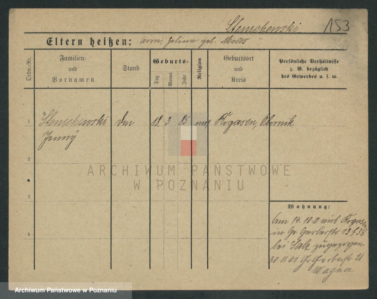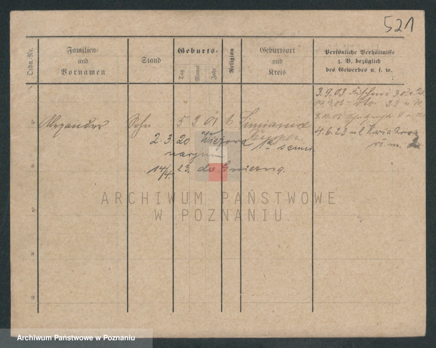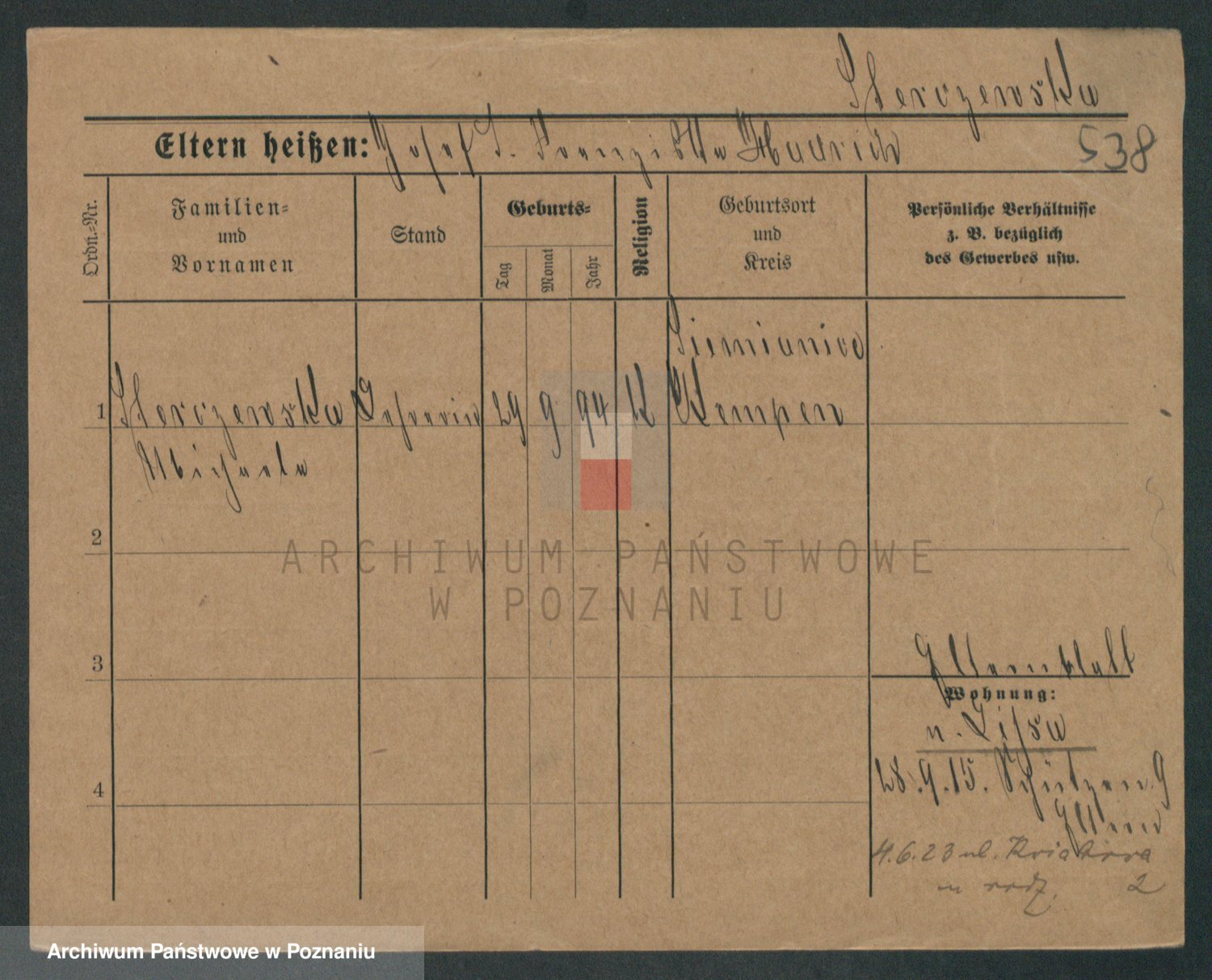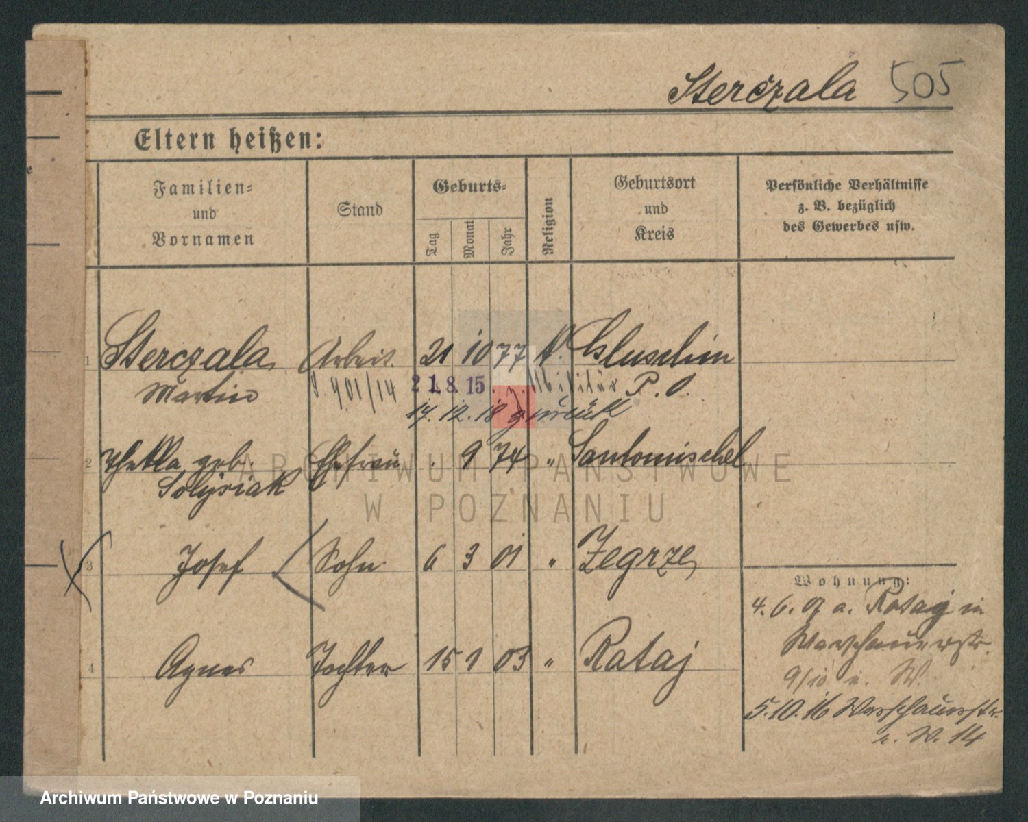 Podgląd karty osobowej dostępny jest po kliknięciu na nazwisko lub ikonkę karty. Można dokonywać powiększenia (ikony na górze) lub przechodzić między kolejnymi skanami (strzałki po bokach).