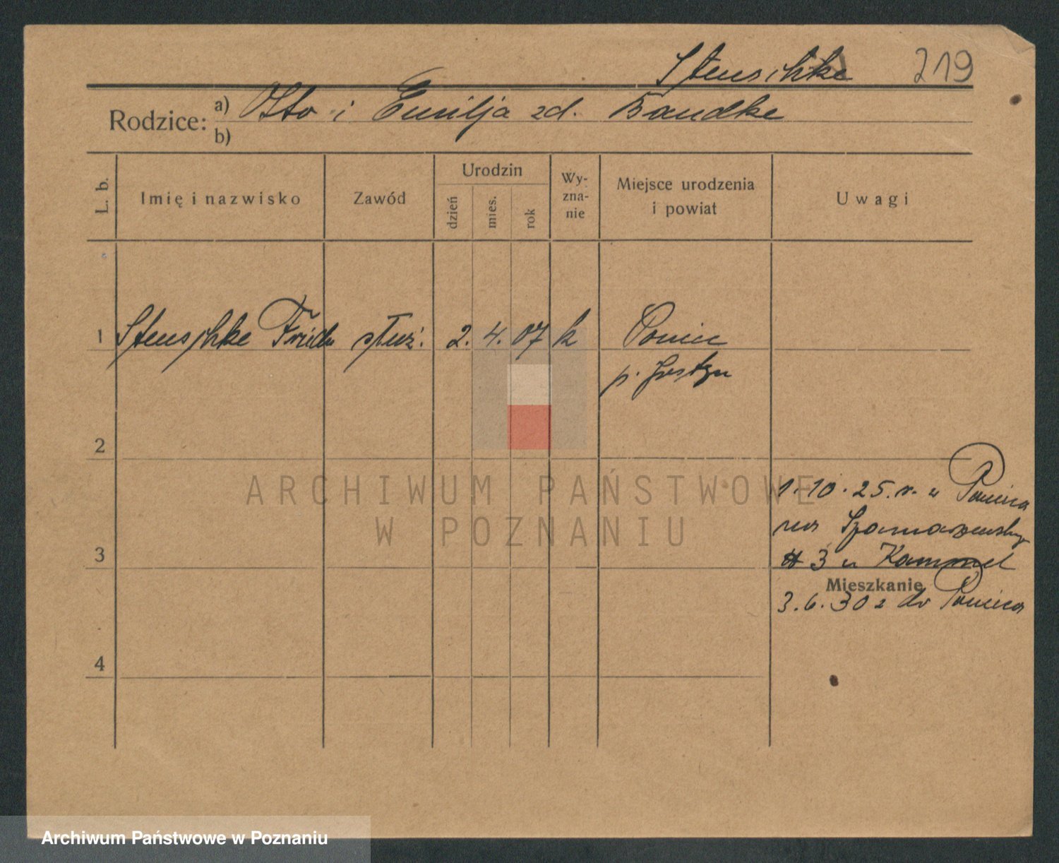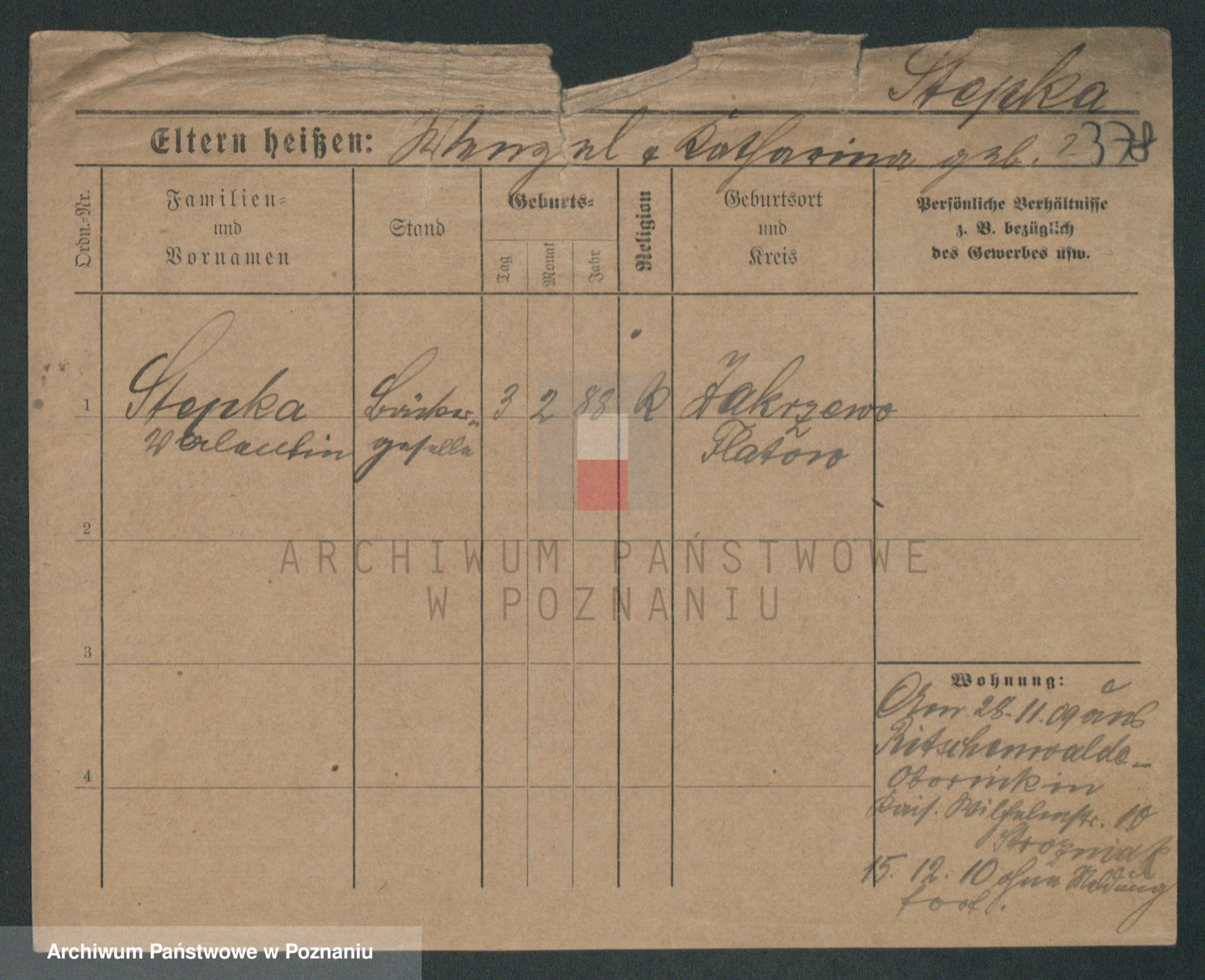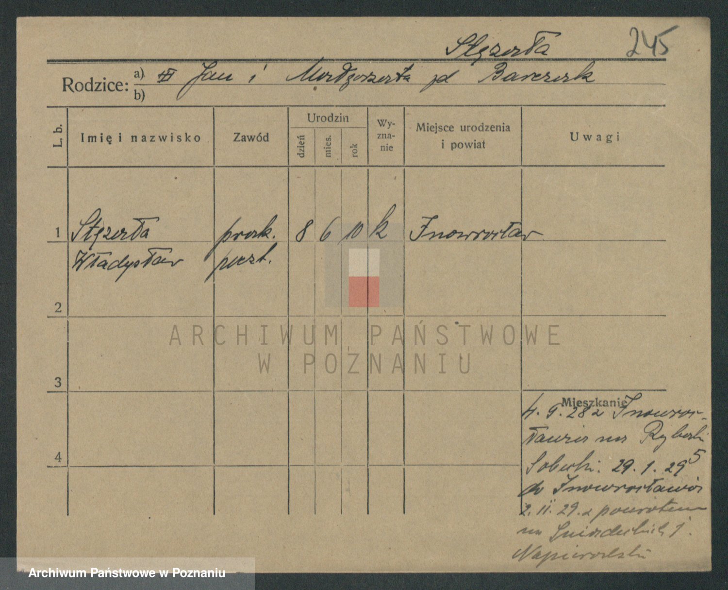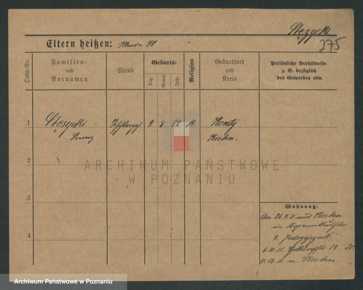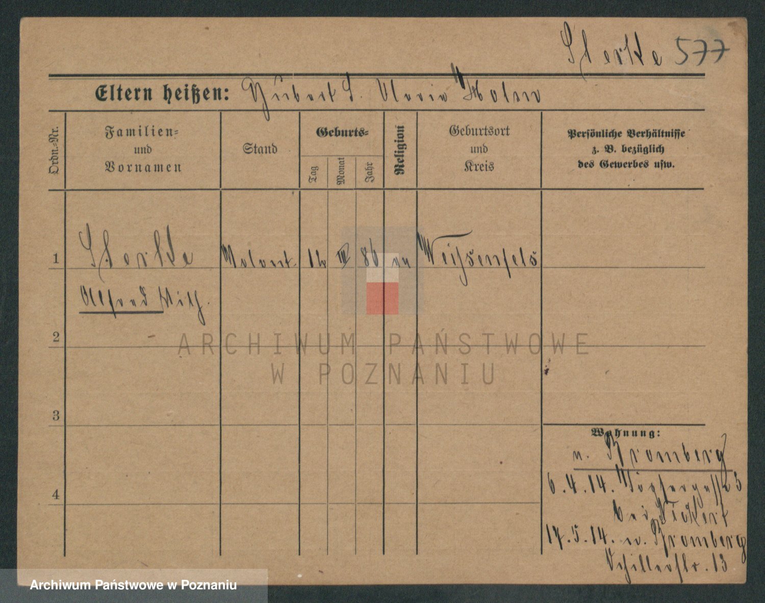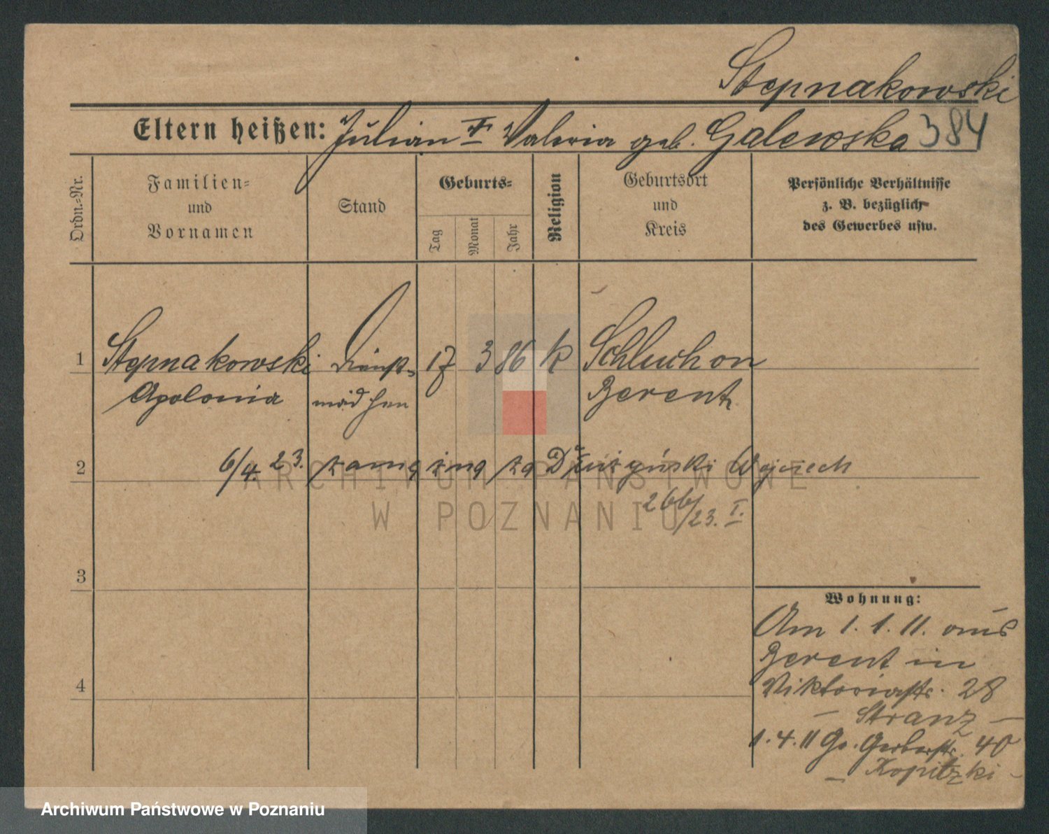 Podgląd karty osobowej dostępny jest po kliknięciu na nazwisko lub ikonkę karty. Można dokonywać powiększenia (ikony na górze) lub przechodzić między kolejnymi skanami (strzałki po bokach).