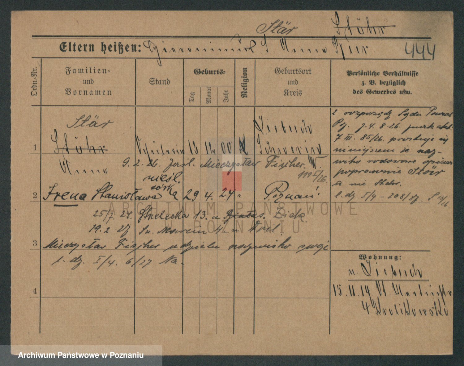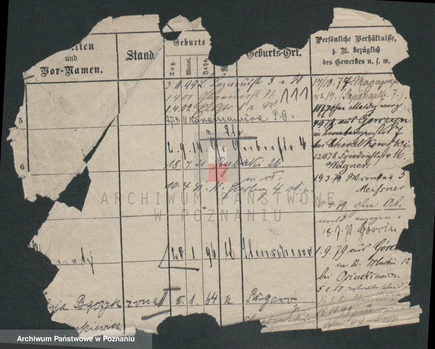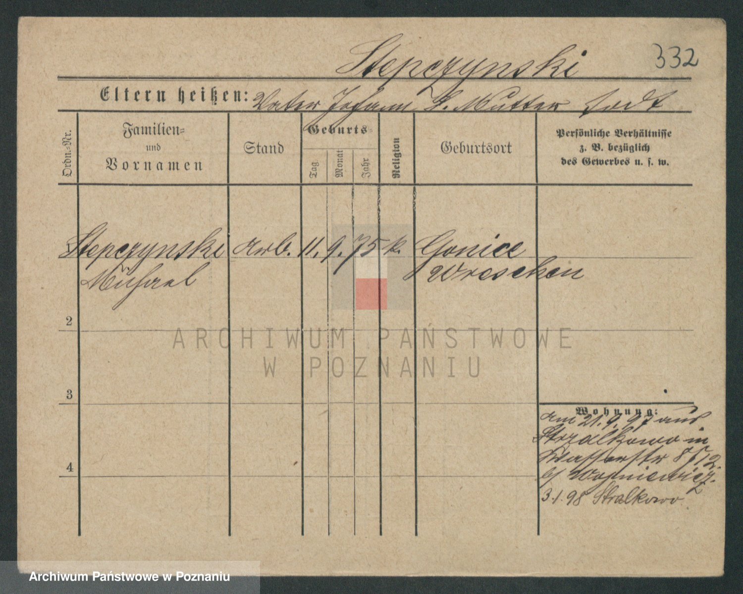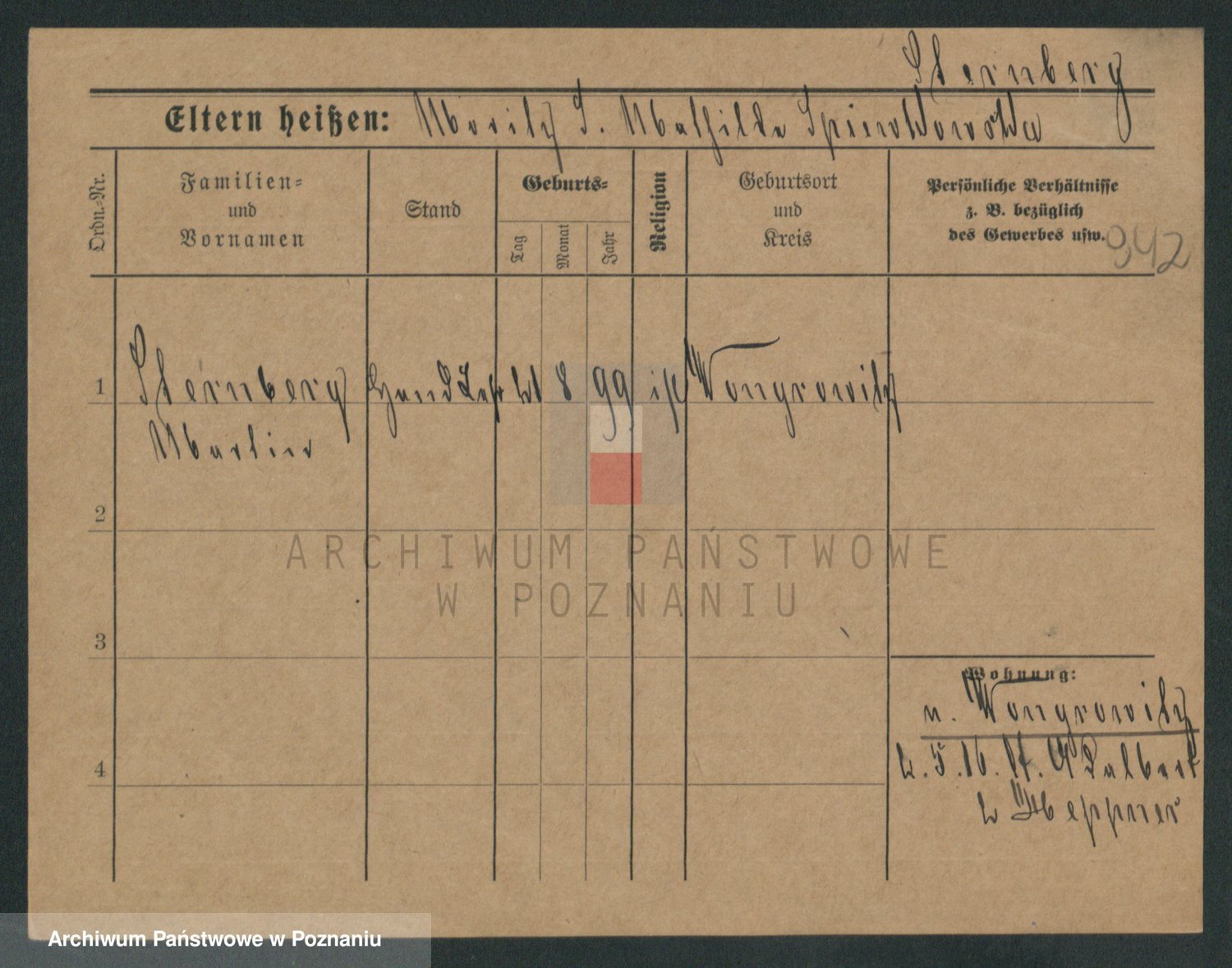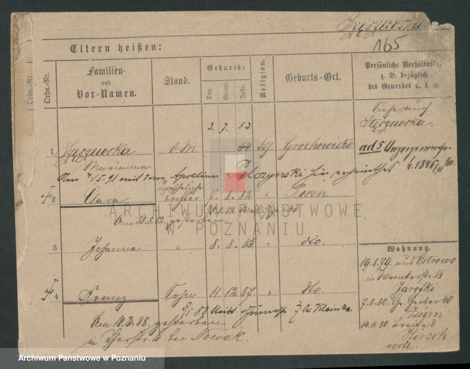 Podgląd karty osobowej dostępny jest po kliknięciu na nazwisko lub ikonkę karty. Można dokonywać powiększenia (ikony na górze) lub przechodzić między kolejnymi skanami (strzałki po bokach).
