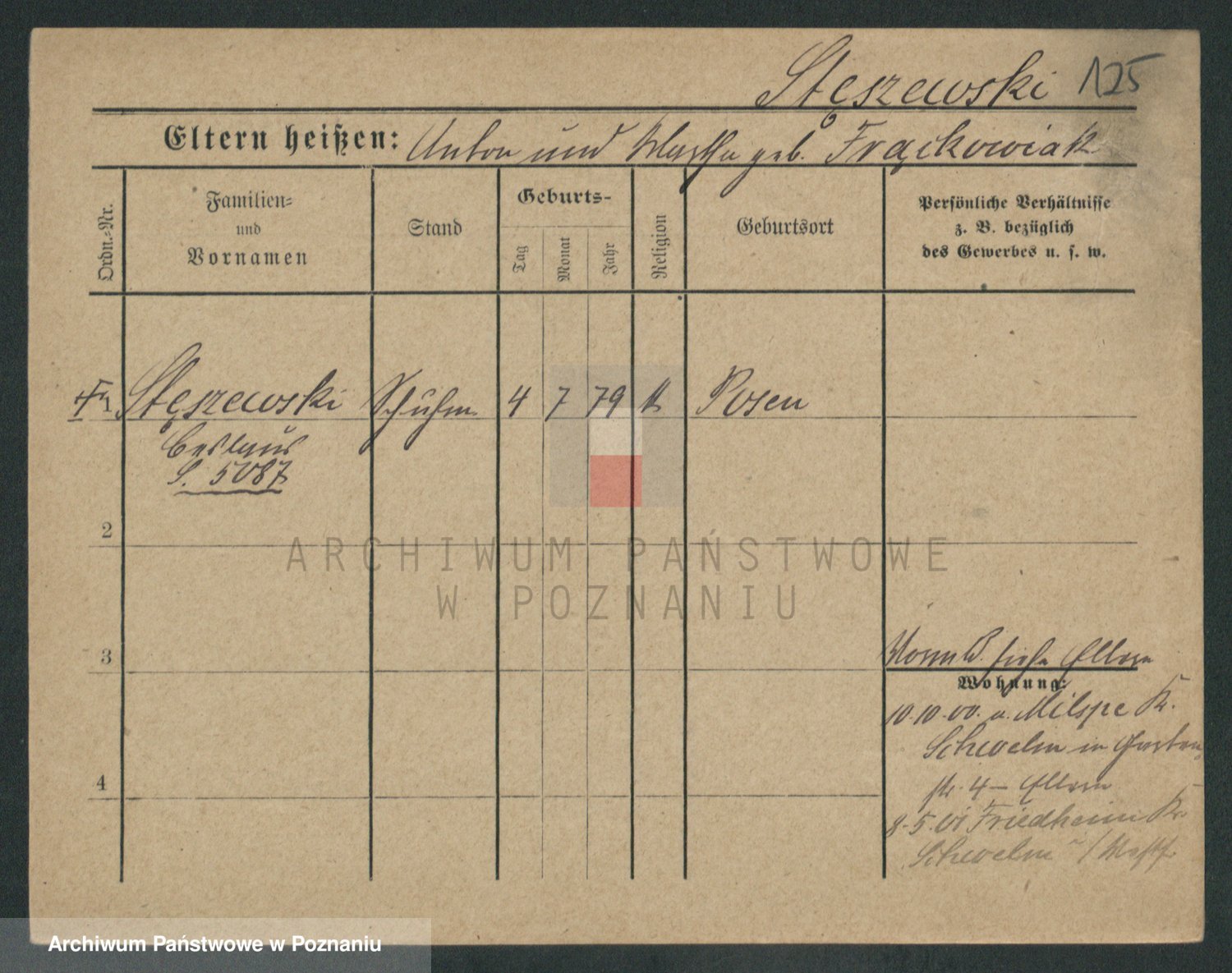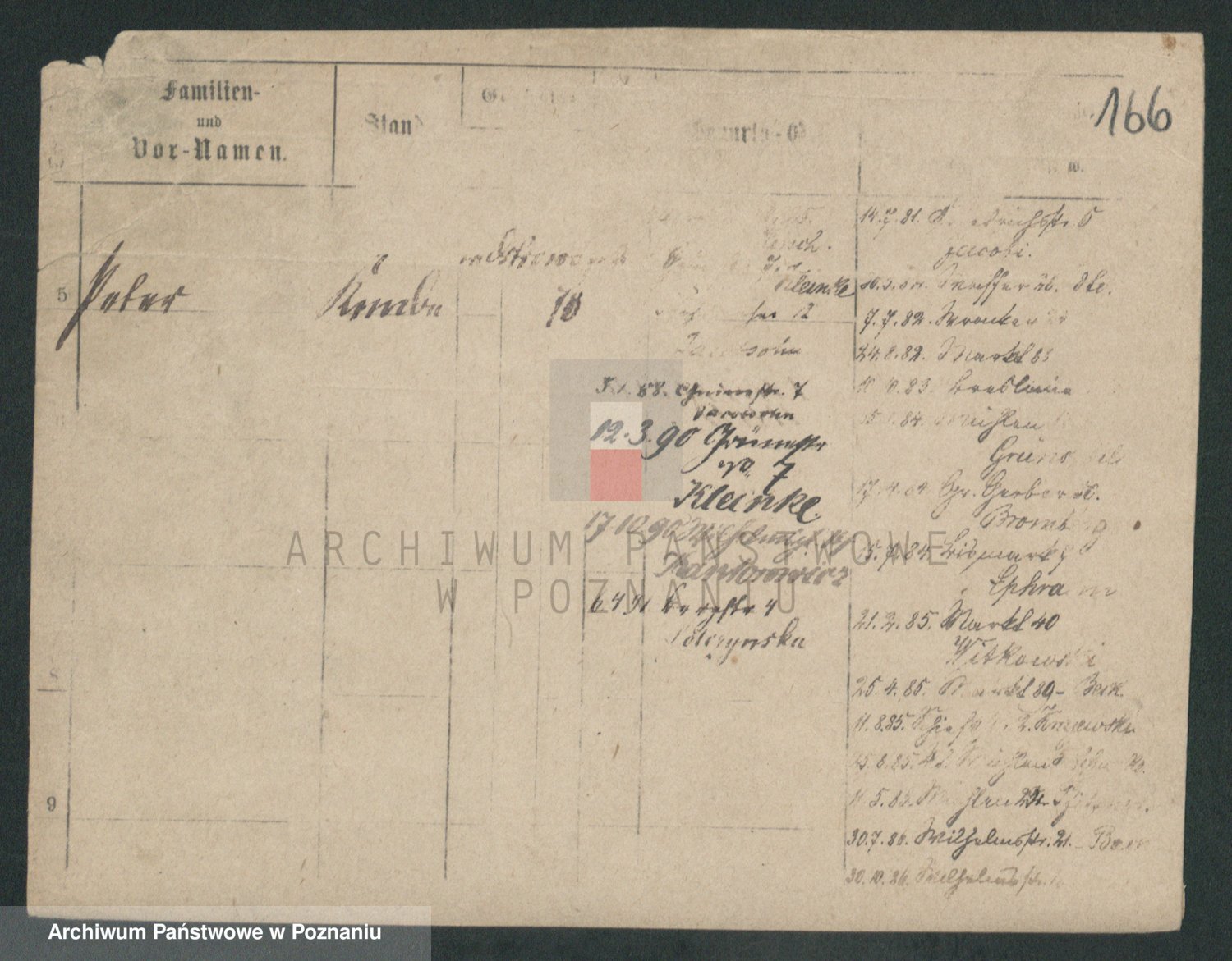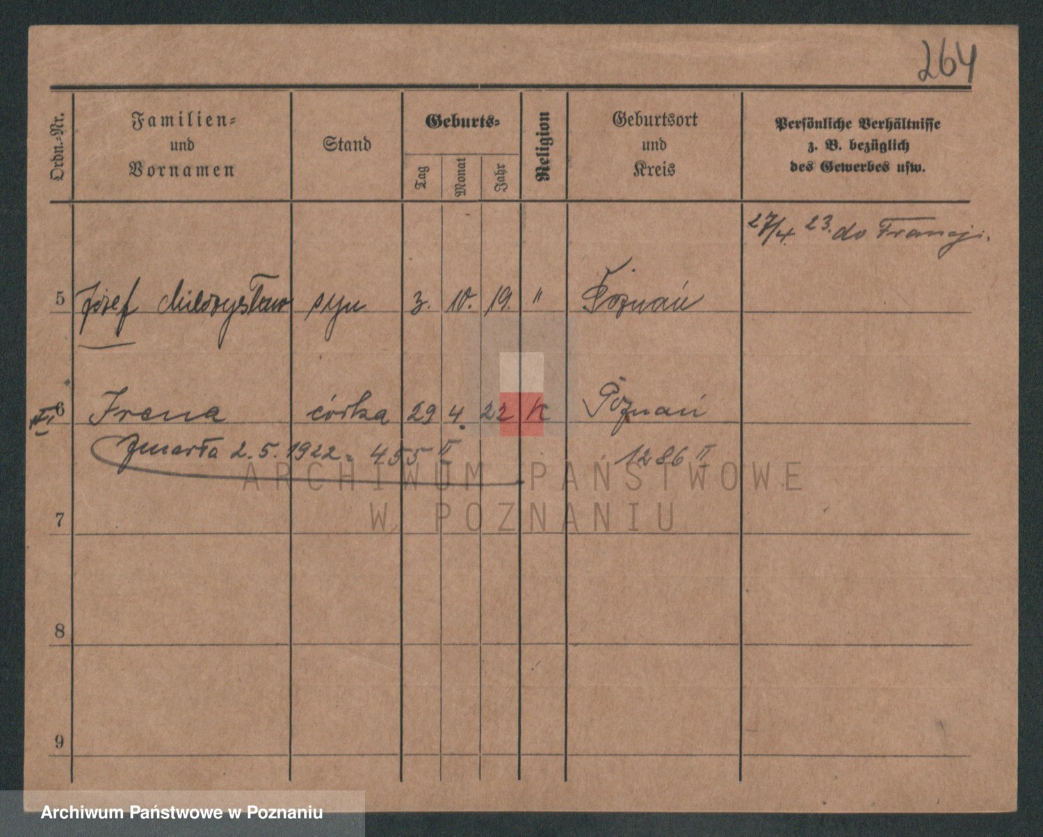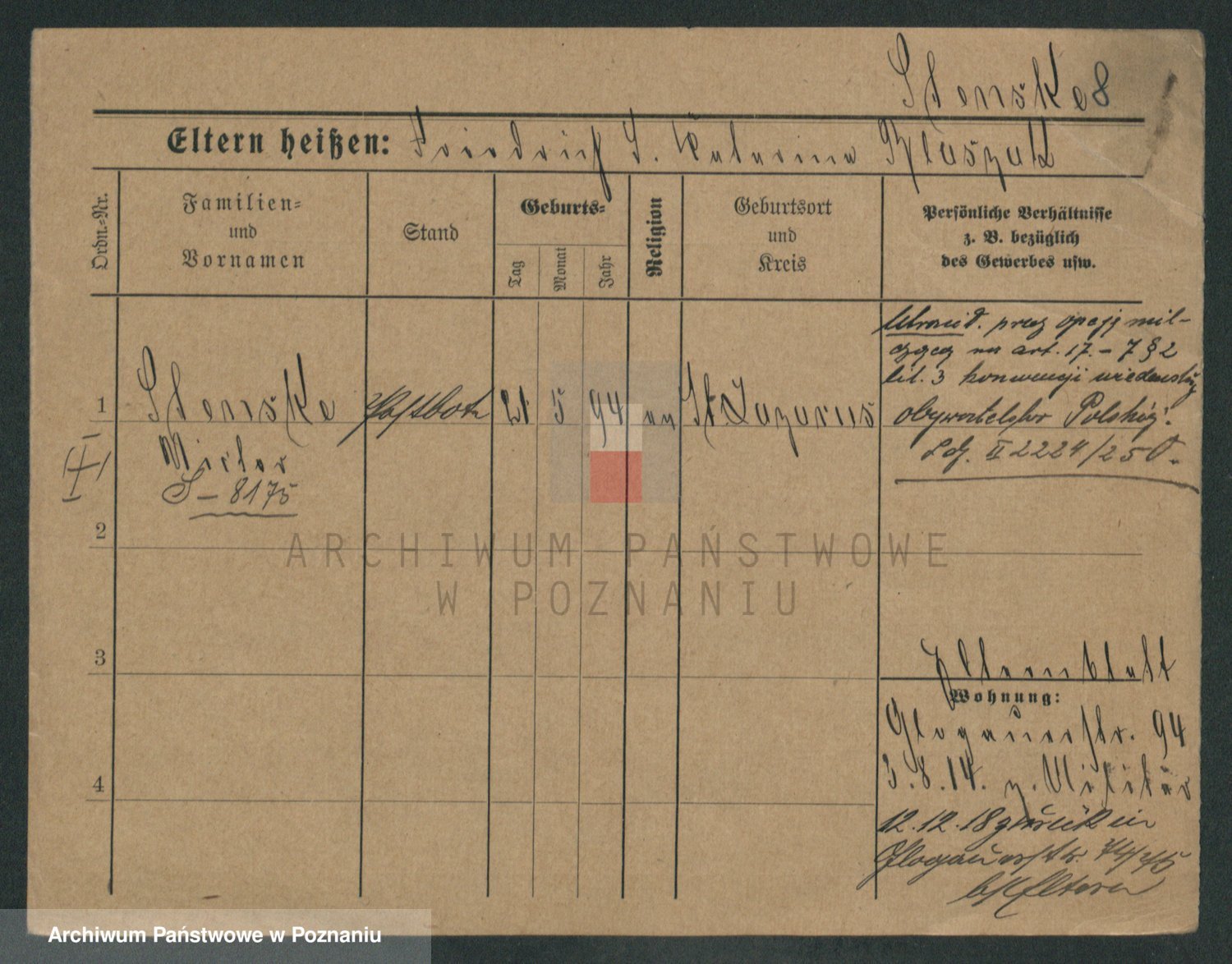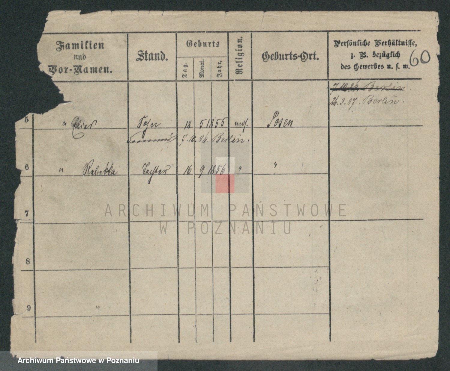 Podgląd karty osobowej dostępny jest po kliknięciu na nazwisko lub ikonkę karty. Można dokonywać powiększenia (ikony na górze) lub przechodzić między kolejnymi skanami (strzałki po bokach).