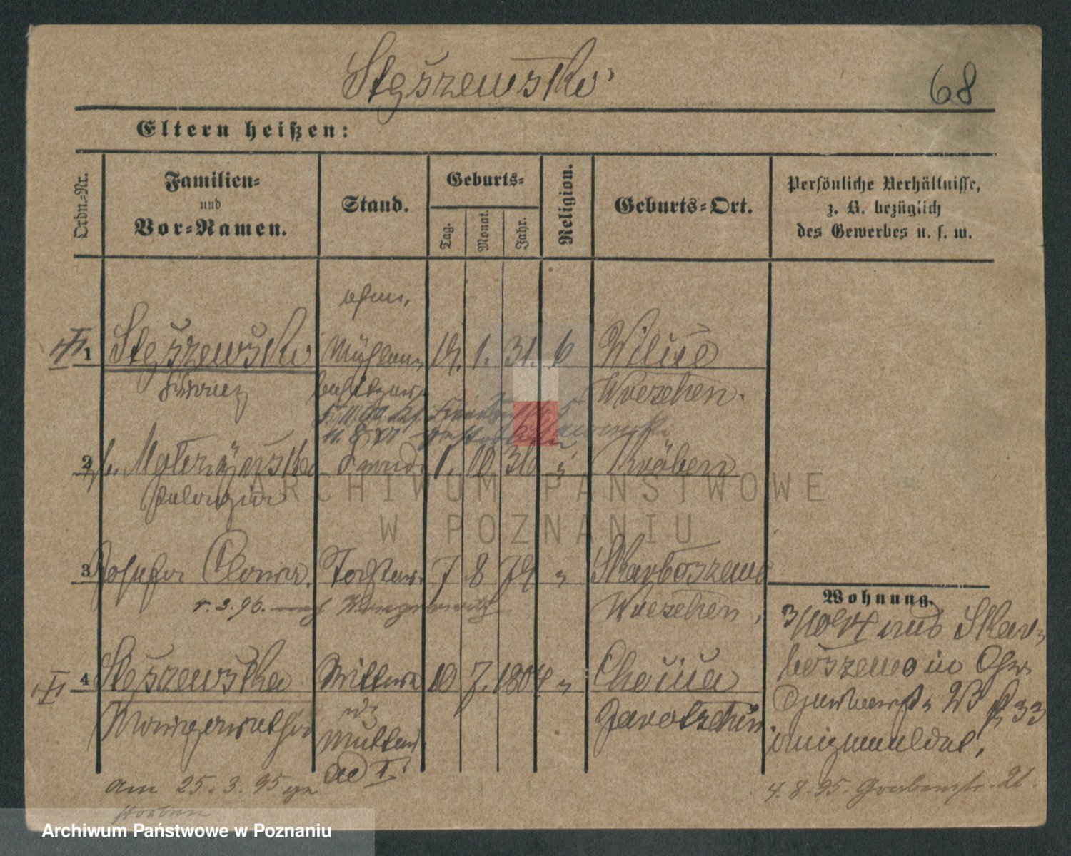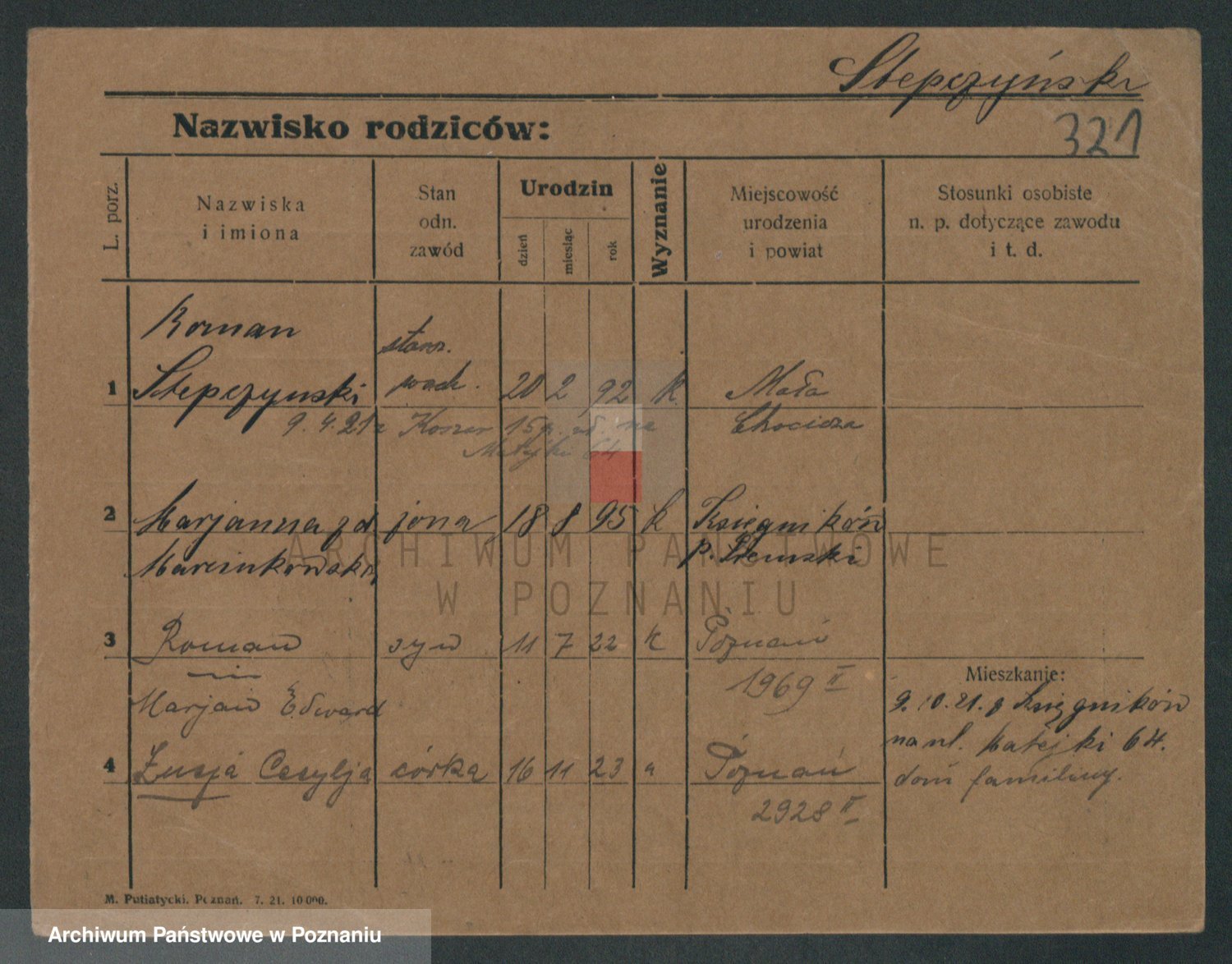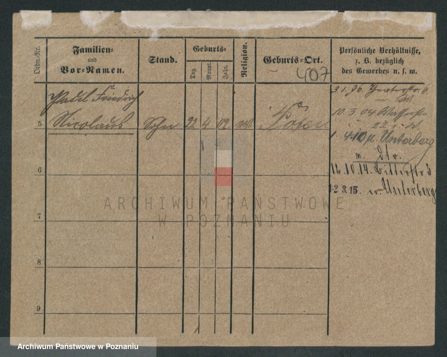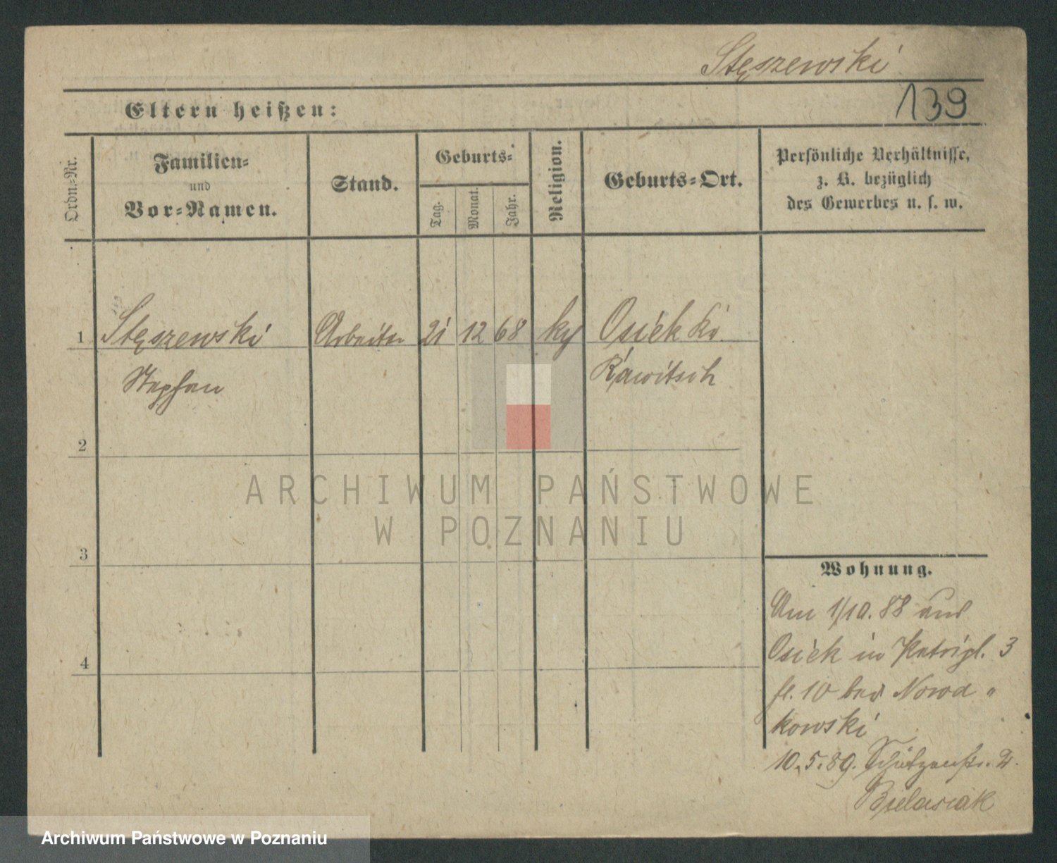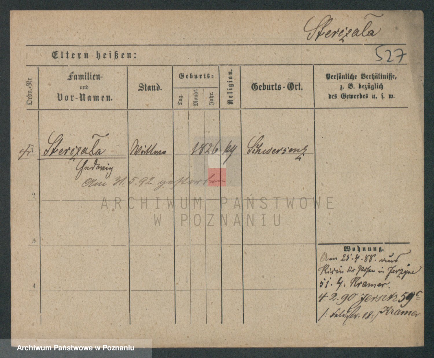 Podgląd karty osobowej dostępny jest po kliknięciu na nazwisko lub ikonkę karty. Można dokonywać powiększenia (ikony na górze) lub przechodzić między kolejnymi skanami (strzałki po bokach).