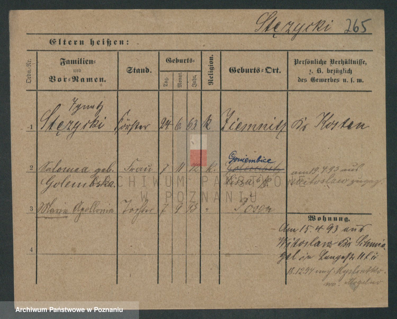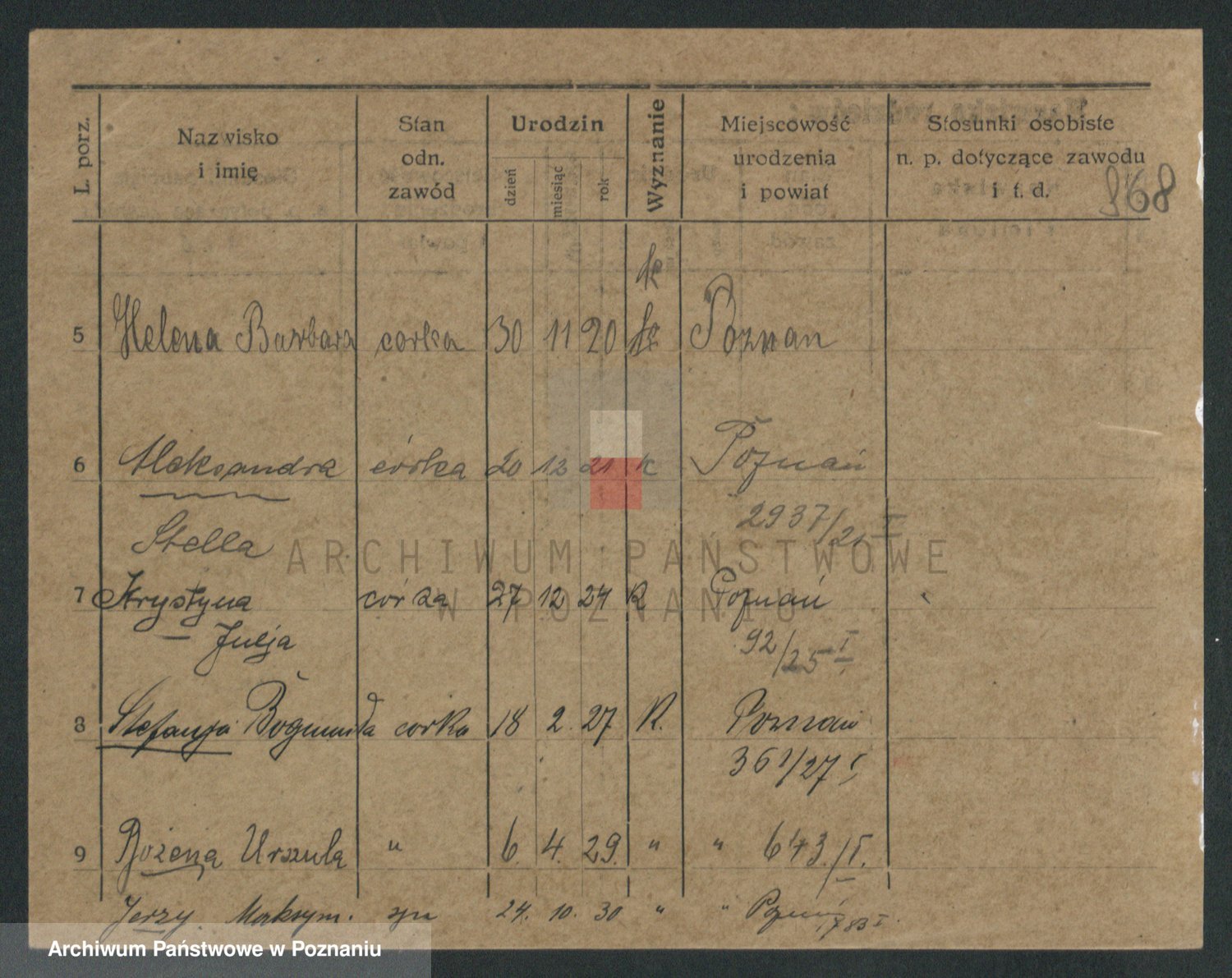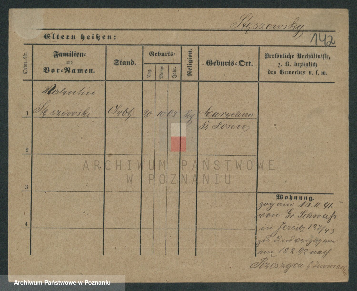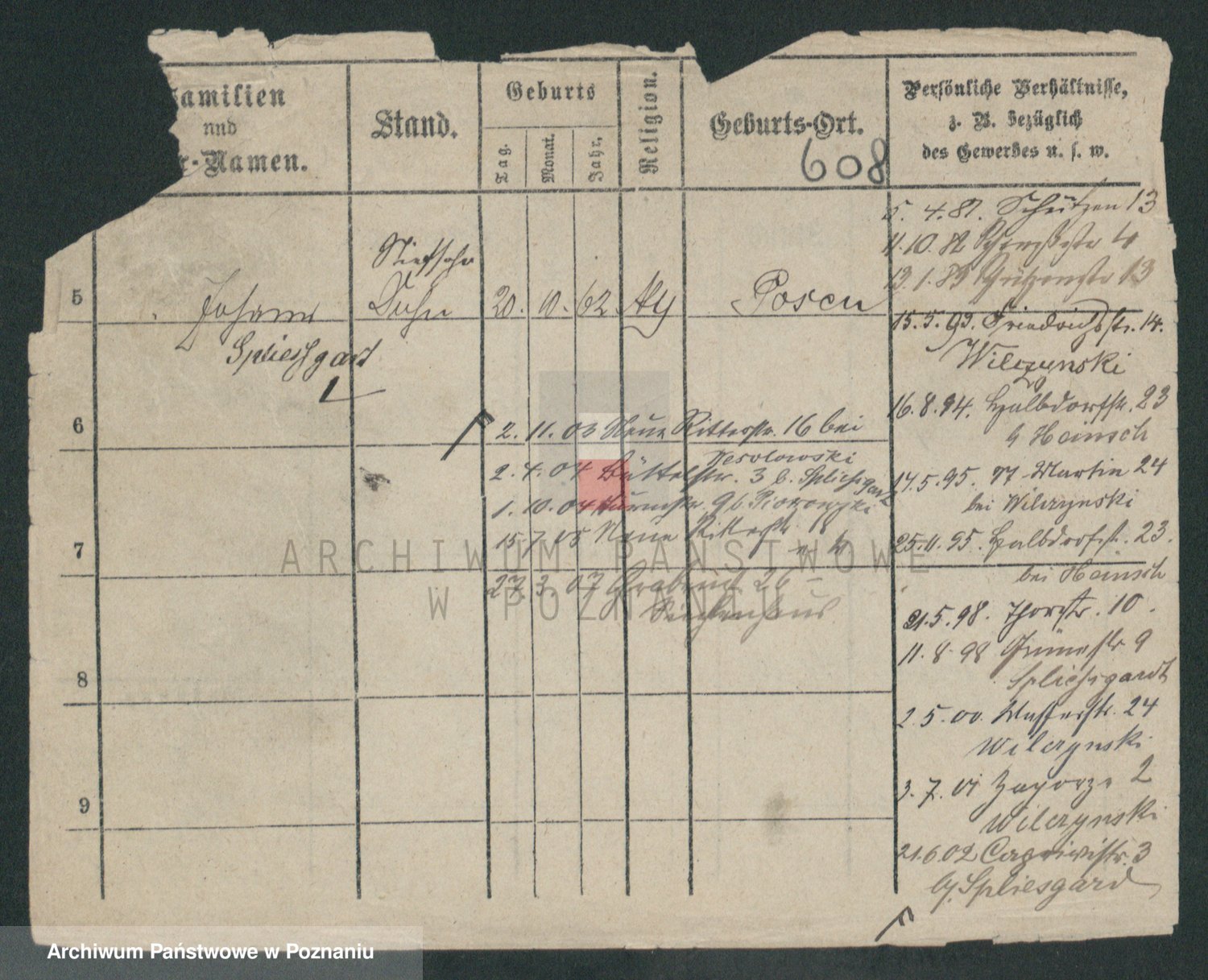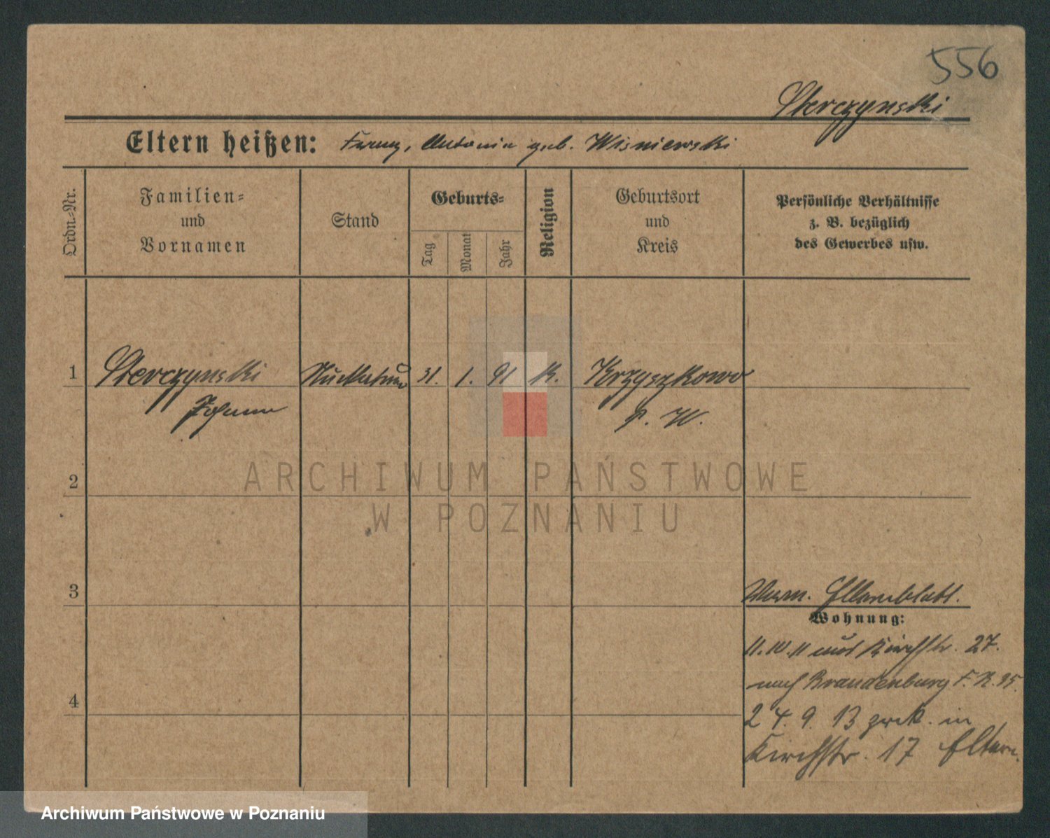 Podgląd karty osobowej dostępny jest po kliknięciu na nazwisko lub ikonkę karty. Można dokonywać powiększenia (ikony na górze) lub przechodzić między kolejnymi skanami (strzałki po bokach).