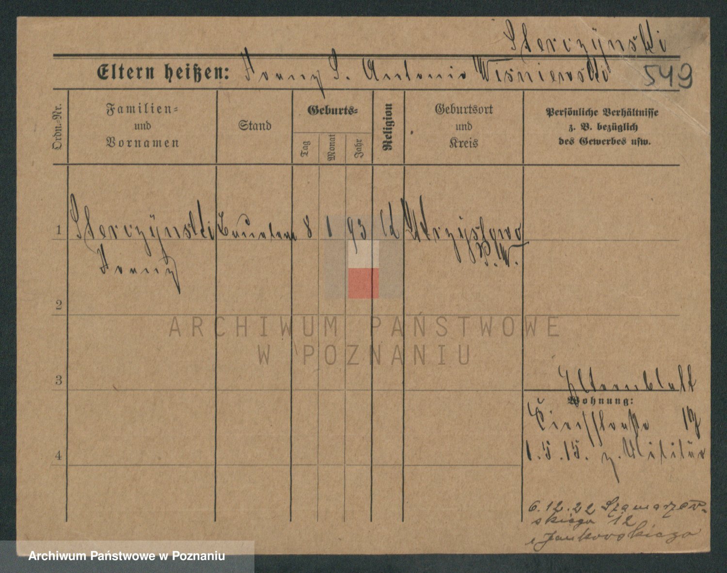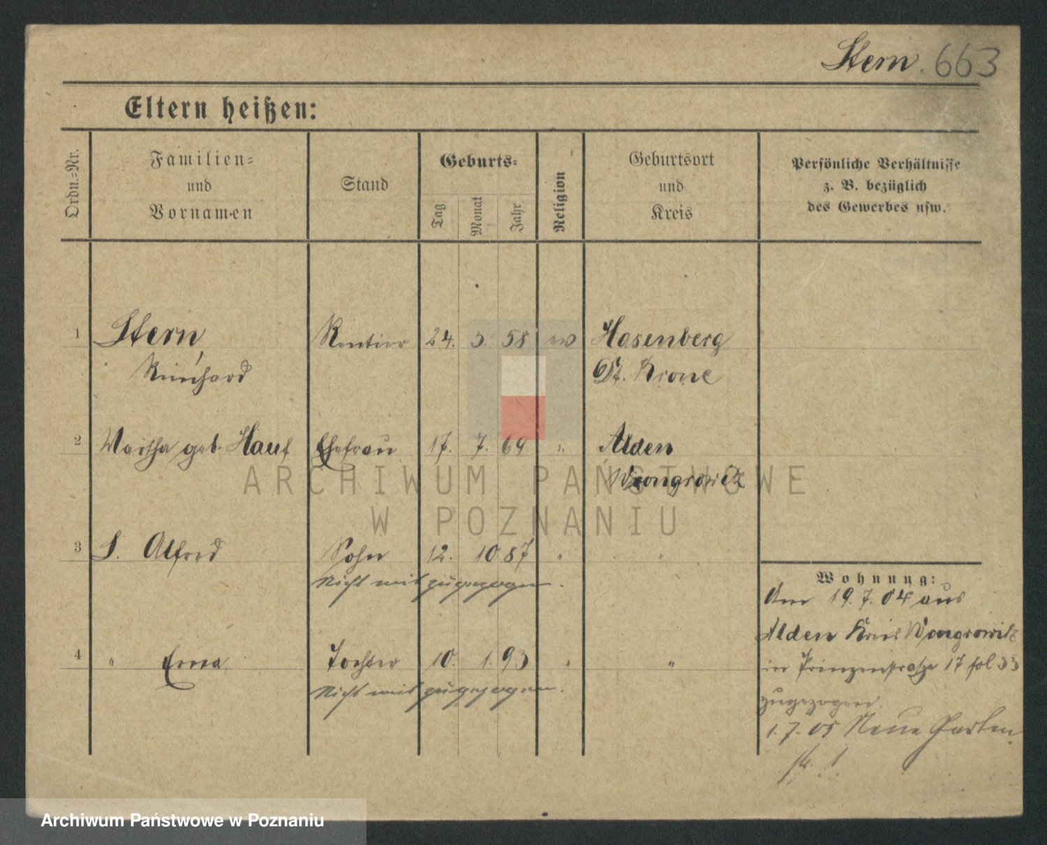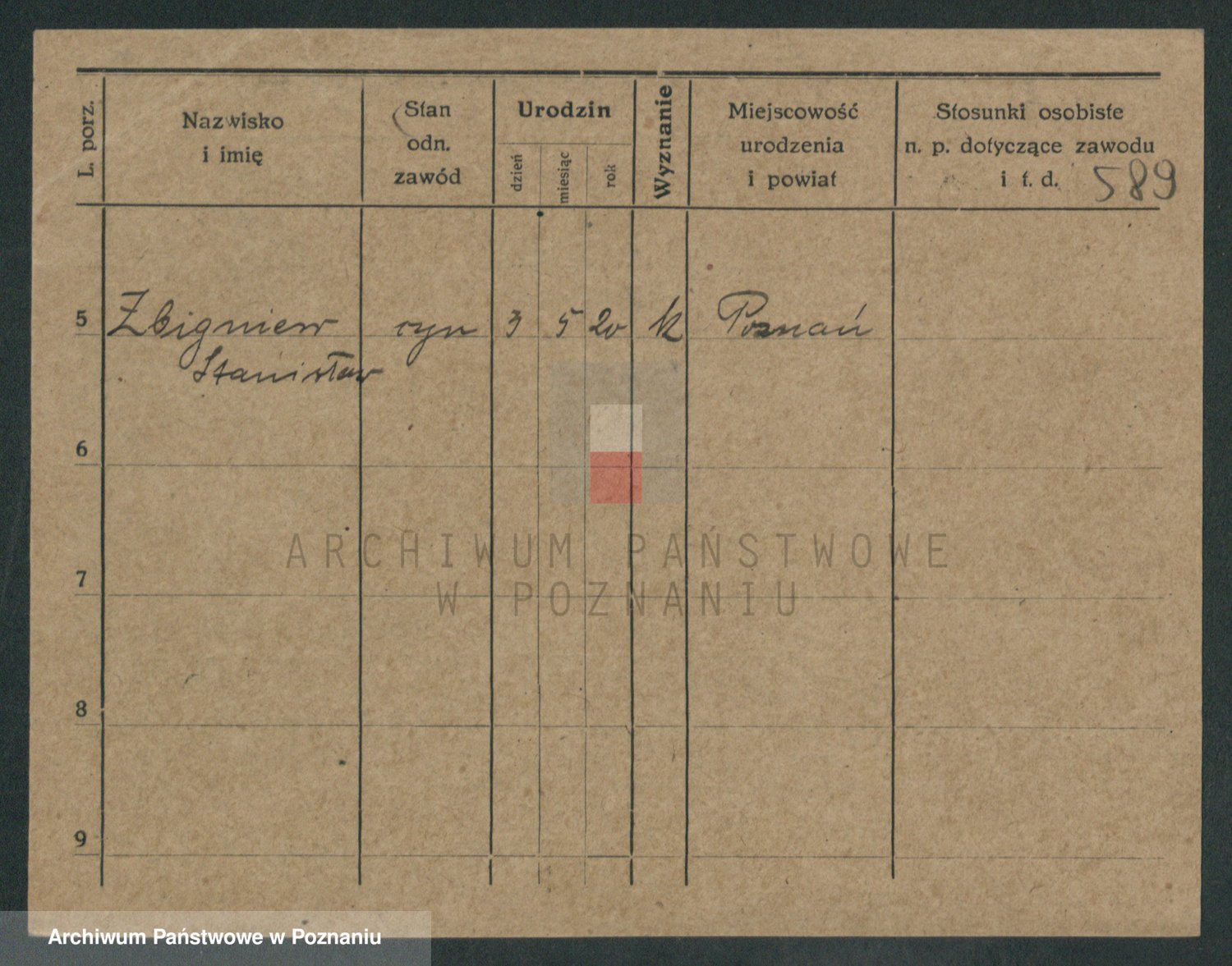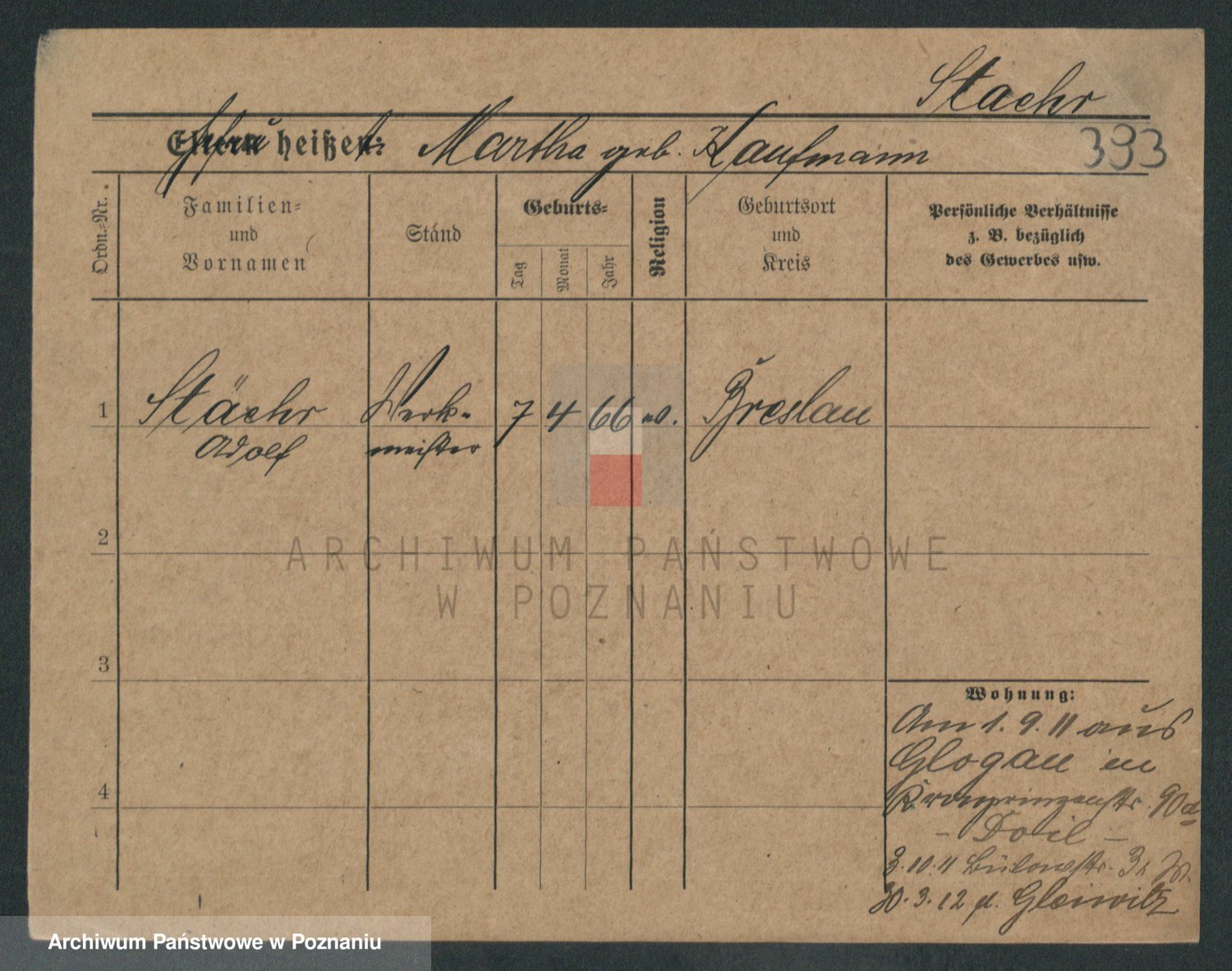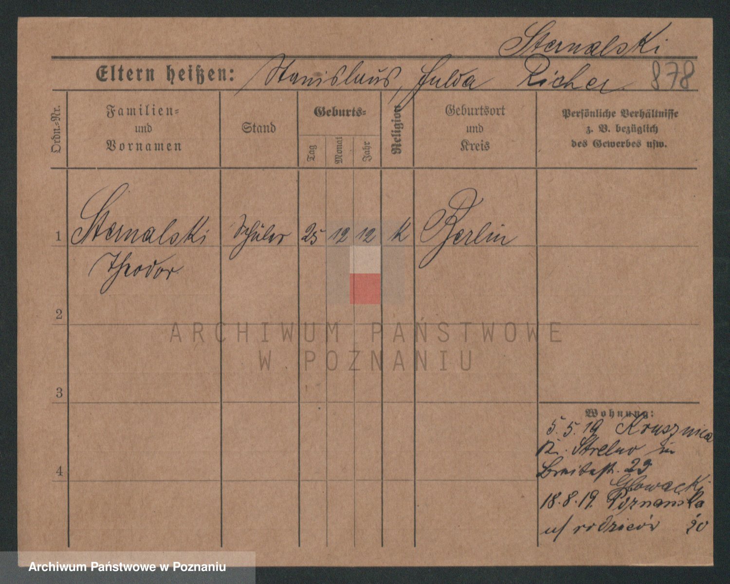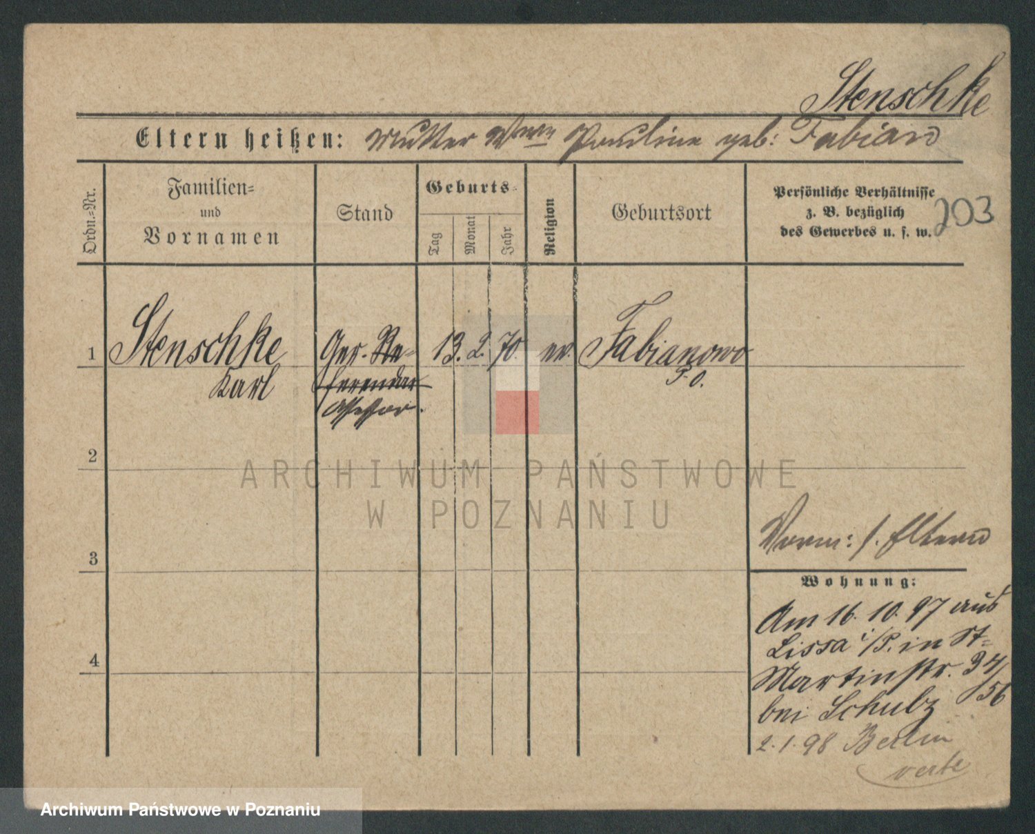 Podgląd karty osobowej dostępny jest po kliknięciu na nazwisko lub ikonkę karty. Można dokonywać powiększenia (ikony na górze) lub przechodzić między kolejnymi skanami (strzałki po bokach).