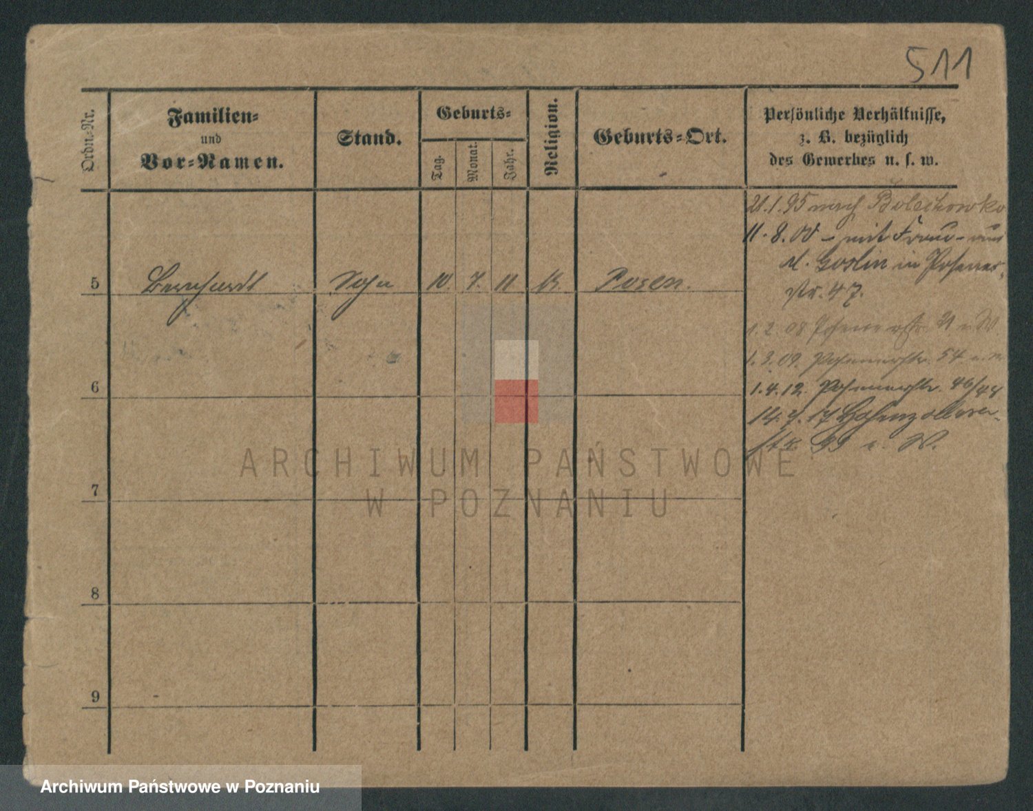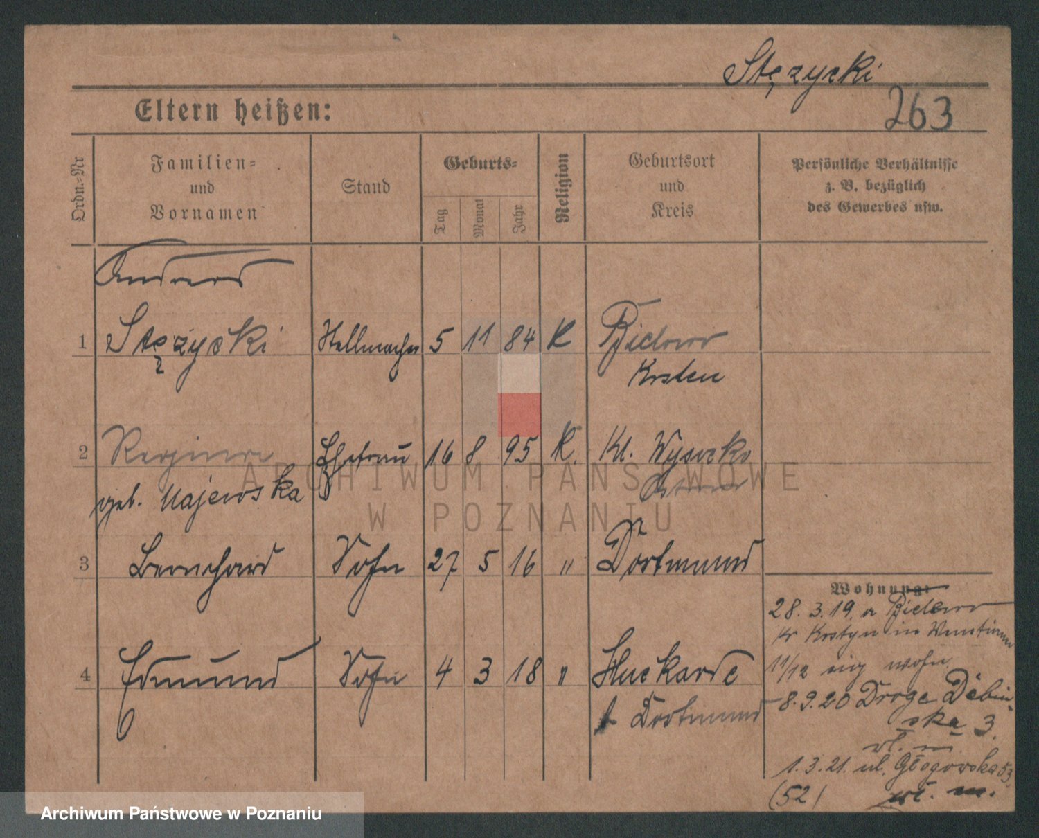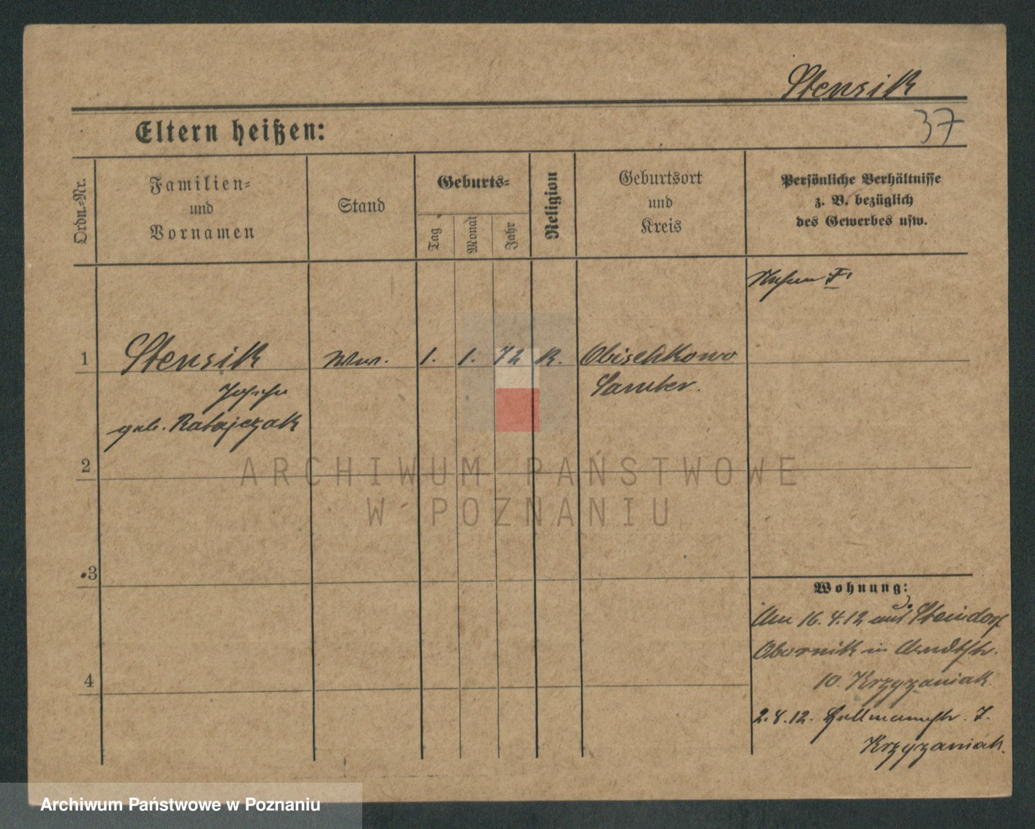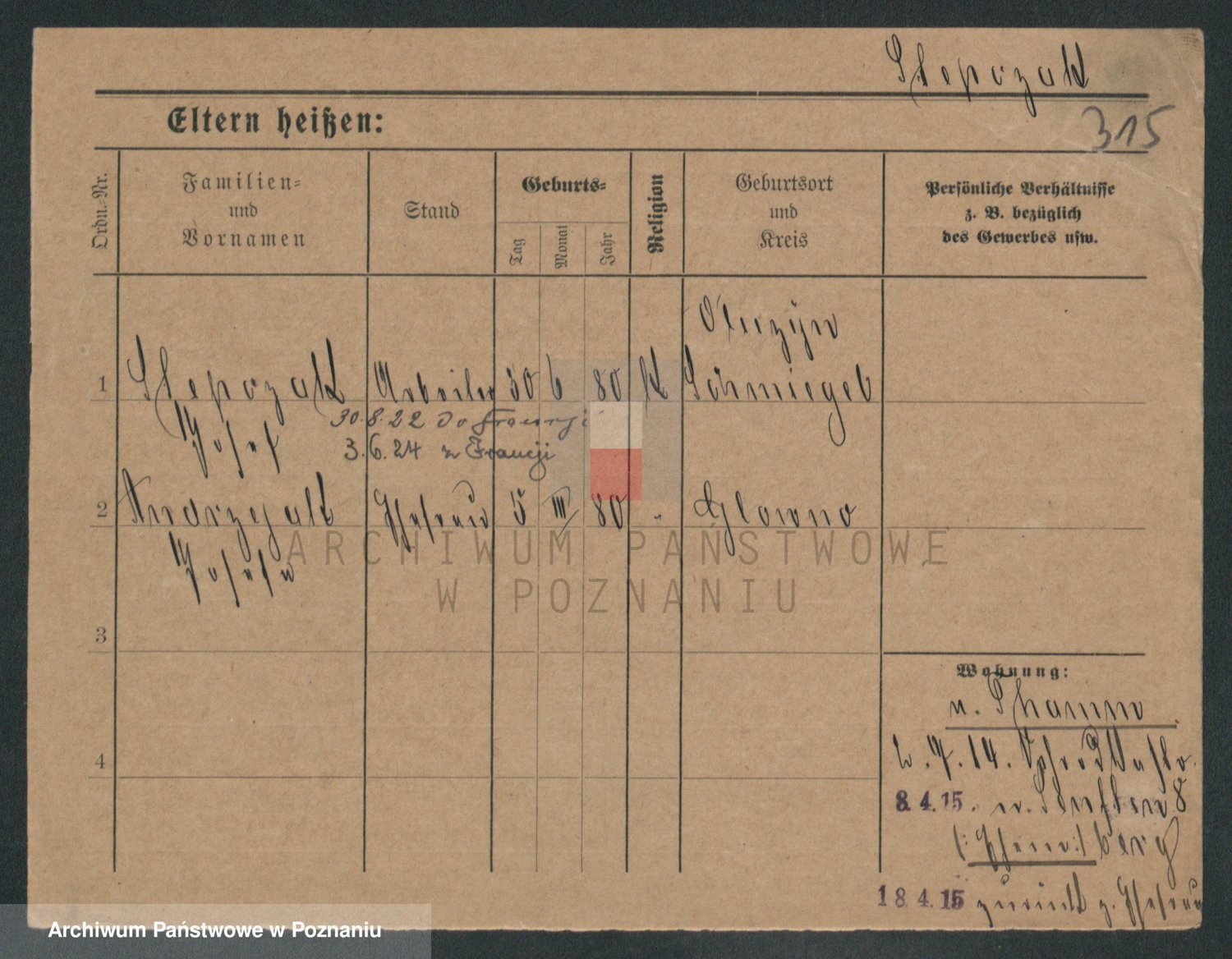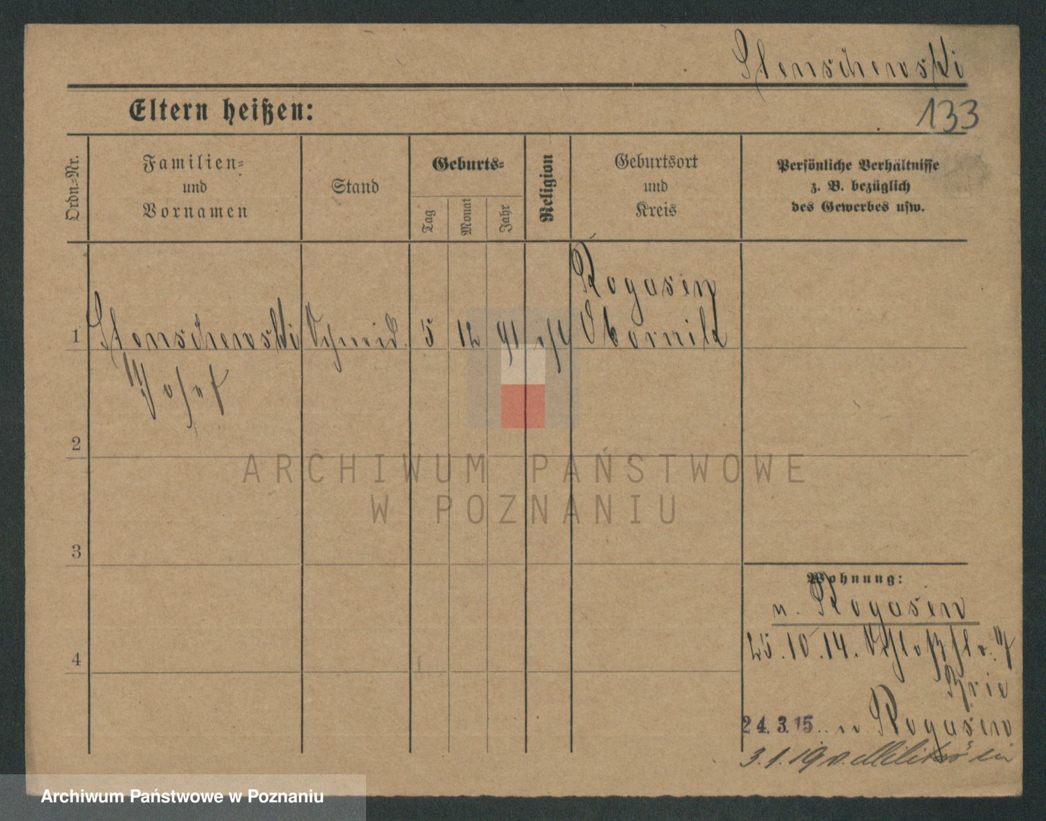 Podgląd karty osobowej dostępny jest po kliknięciu na nazwisko lub ikonkę karty. Można dokonywać powiększenia (ikony na górze) lub przechodzić między kolejnymi skanami (strzałki po bokach).