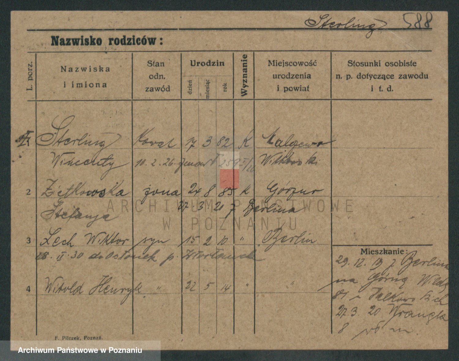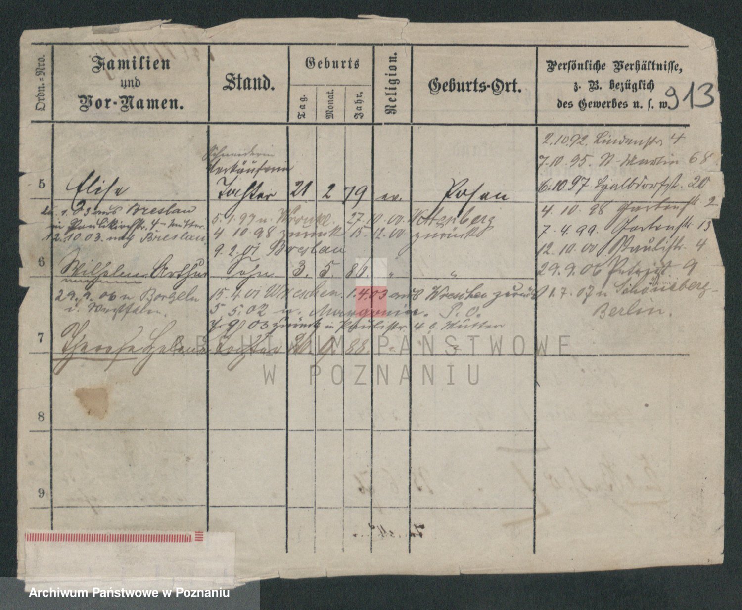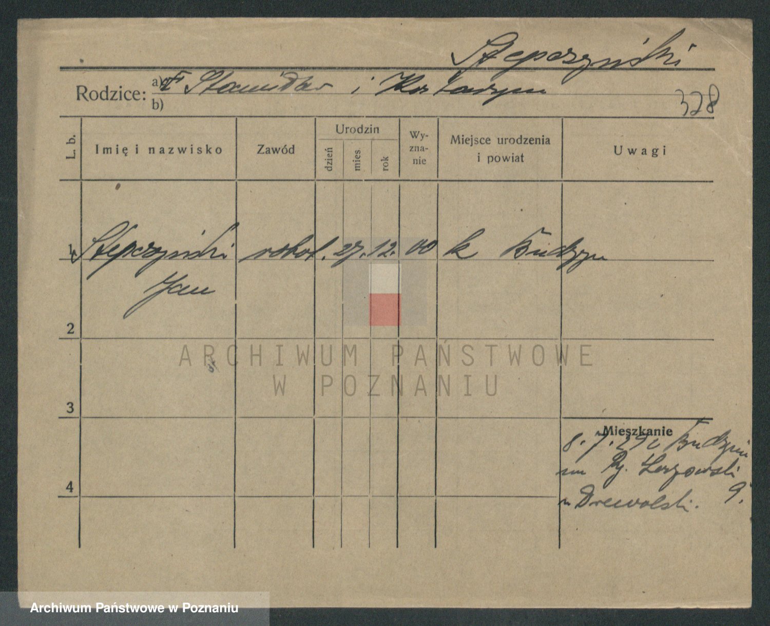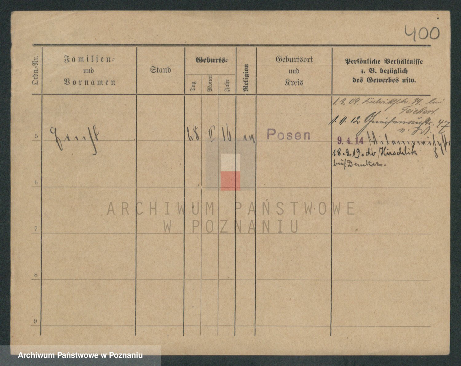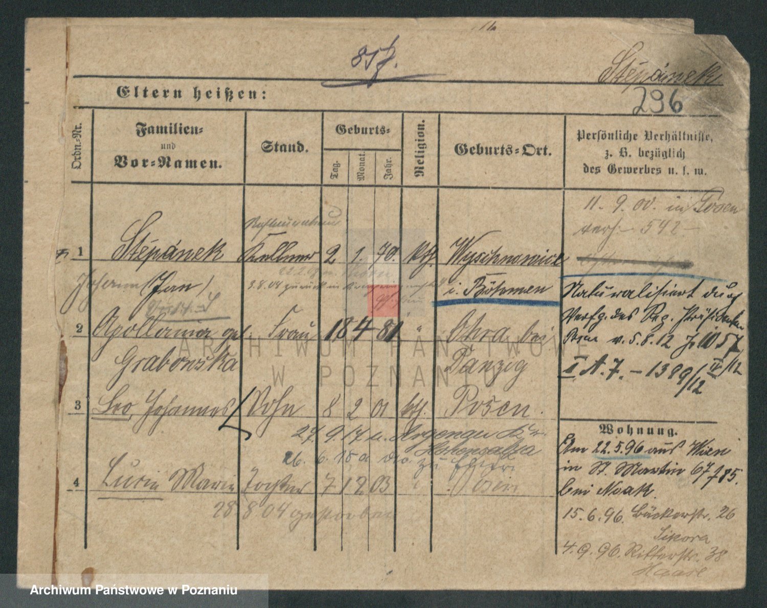 Podgląd karty osobowej dostępny jest po kliknięciu na nazwisko lub ikonkę karty. Można dokonywać powiększenia (ikony na górze) lub przechodzić między kolejnymi skanami (strzałki po bokach).