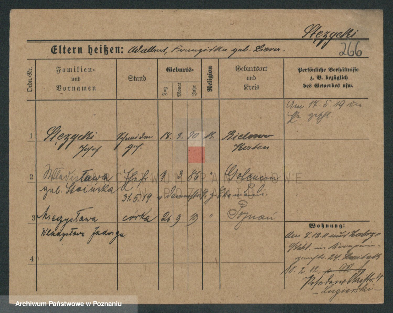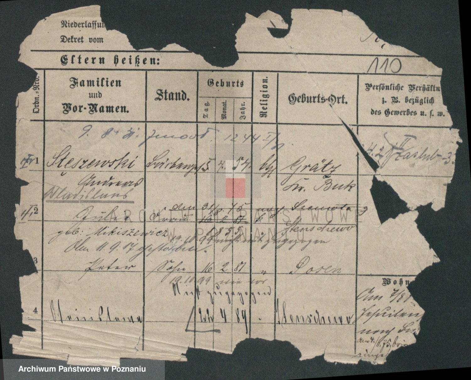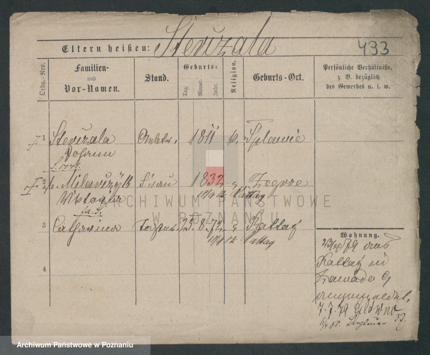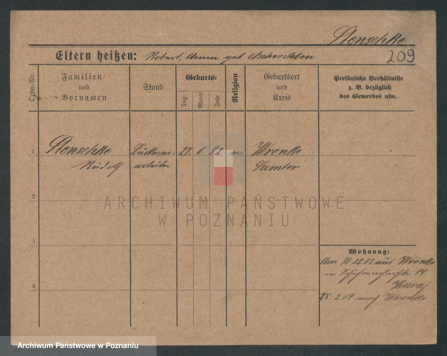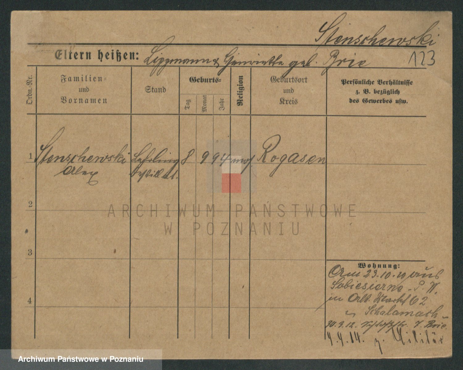 Podgląd karty osobowej dostępny jest po kliknięciu na nazwisko lub ikonkę karty. Można dokonywać powiększenia (ikony na górze) lub przechodzić między kolejnymi skanami (strzałki po bokach).