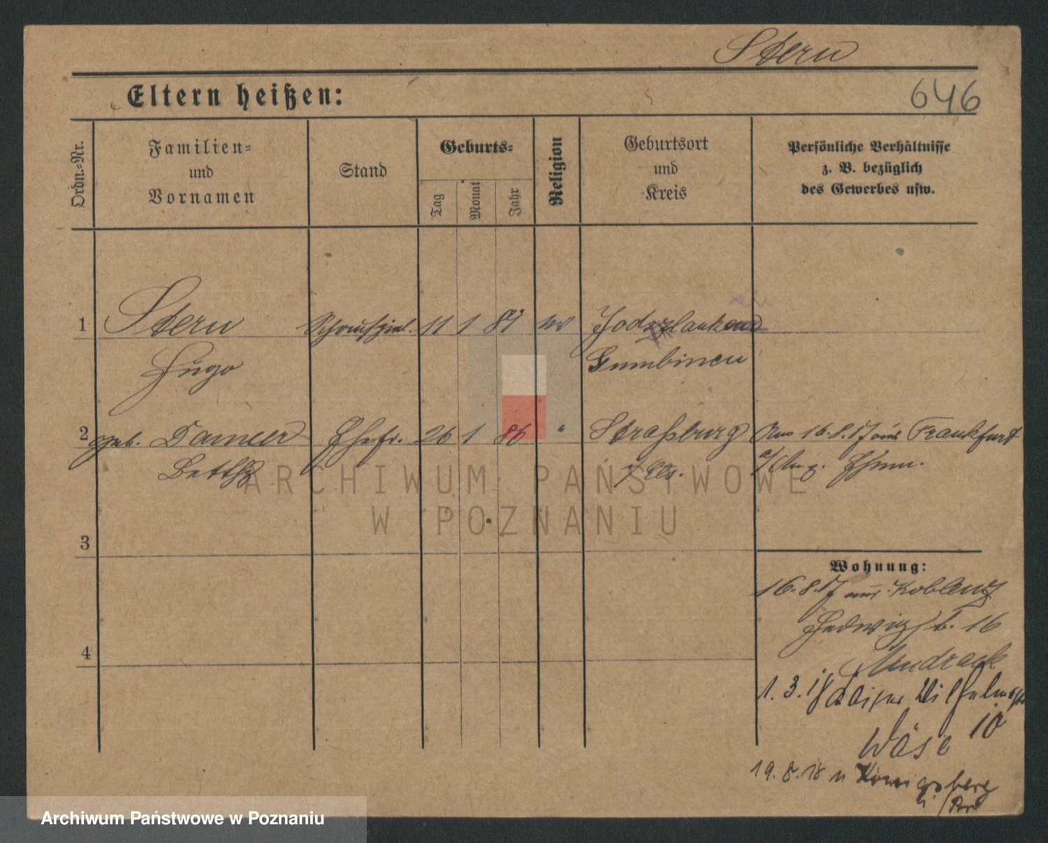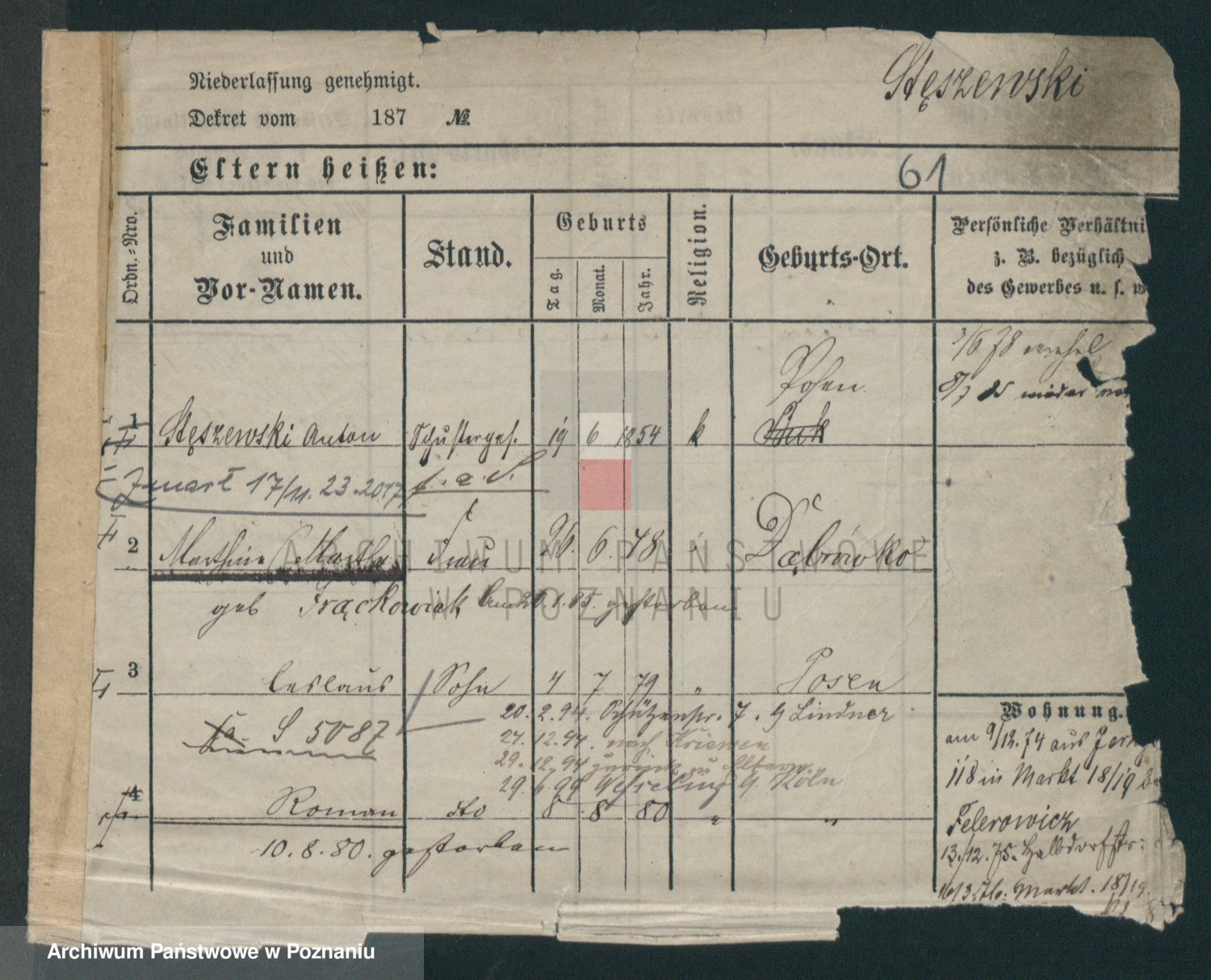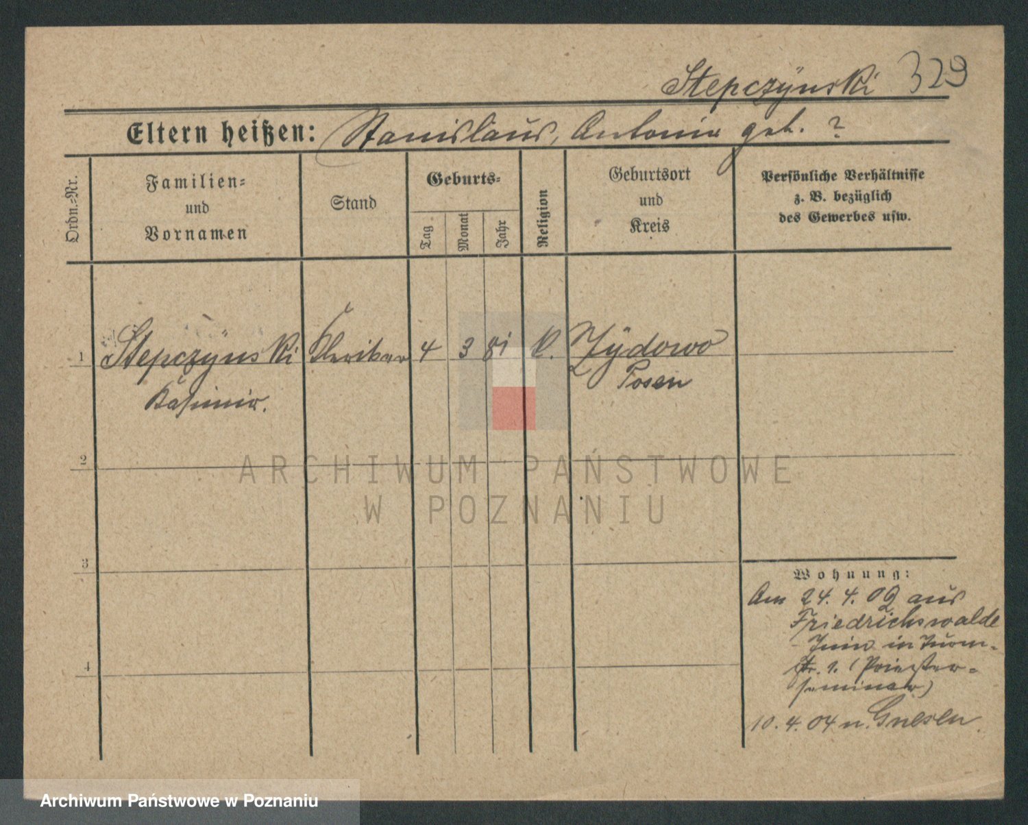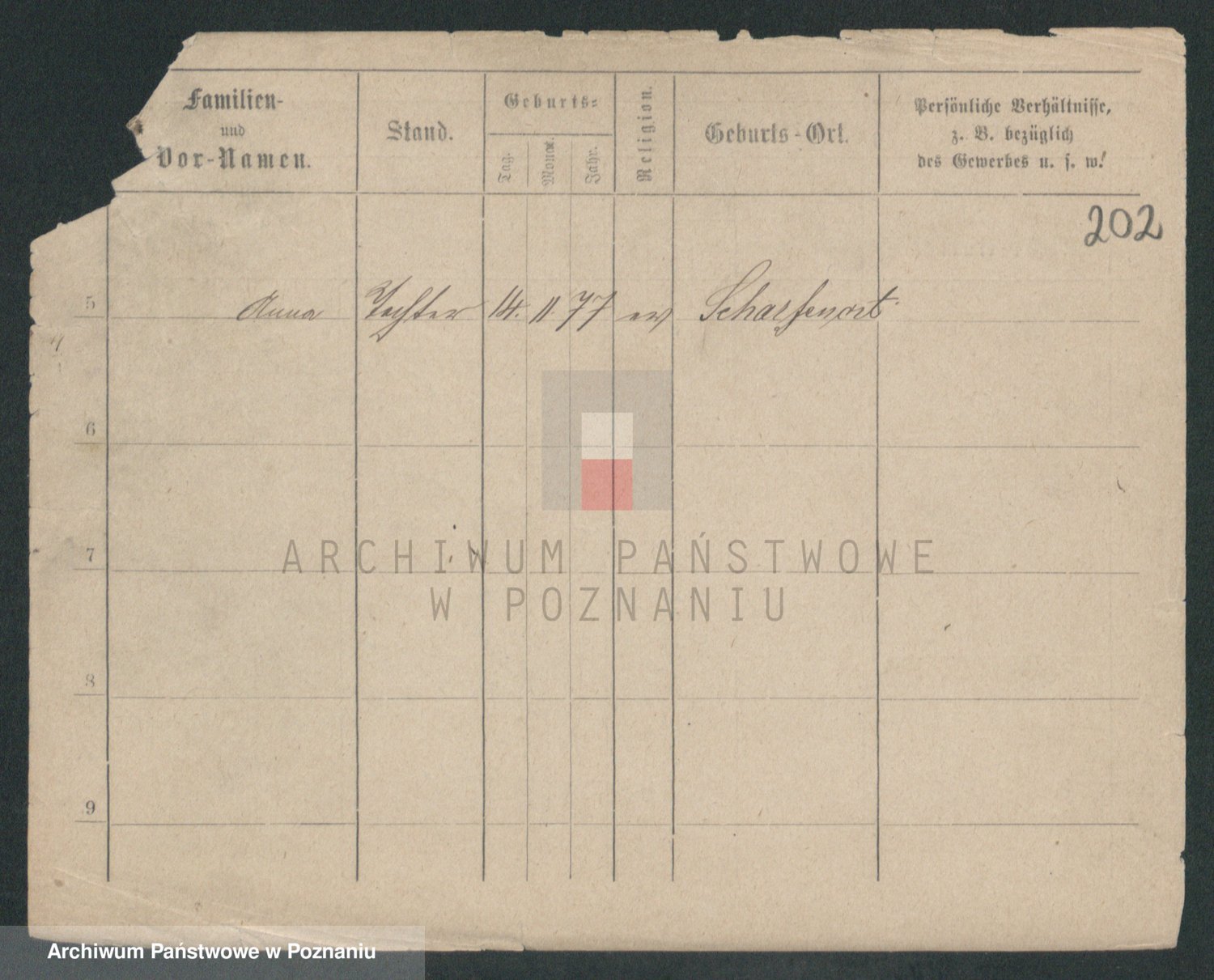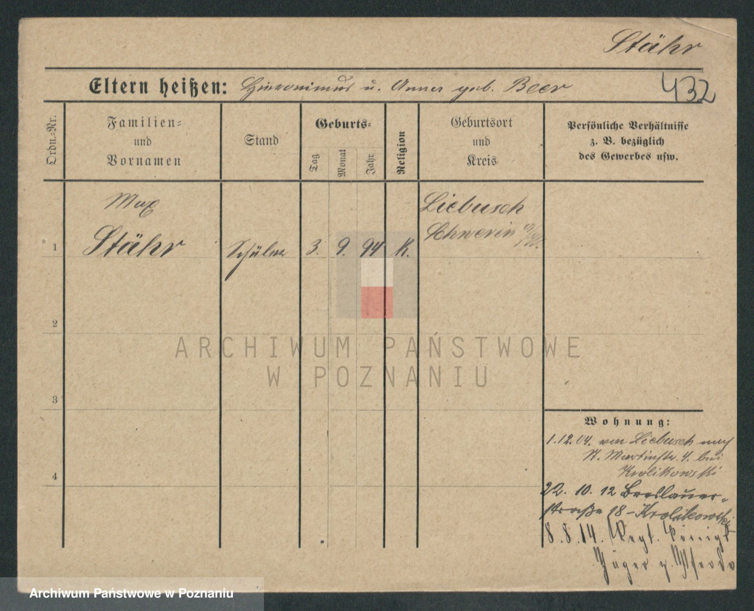 Podgląd karty osobowej dostępny jest po kliknięciu na nazwisko lub ikonkę karty. Można dokonywać powiększenia (ikony na górze) lub przechodzić między kolejnymi skanami (strzałki po bokach).
