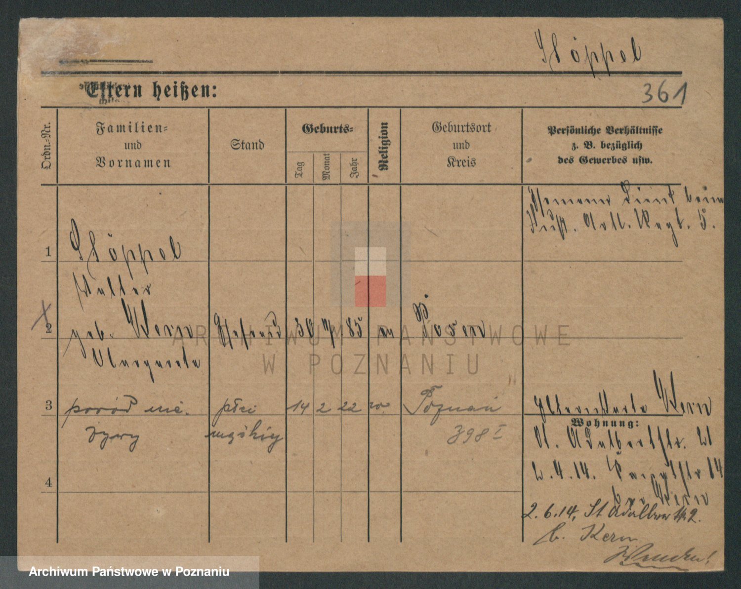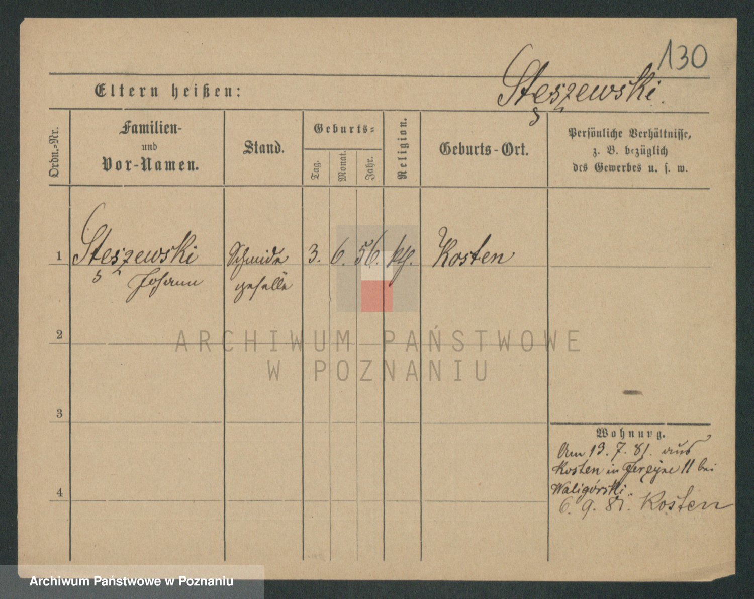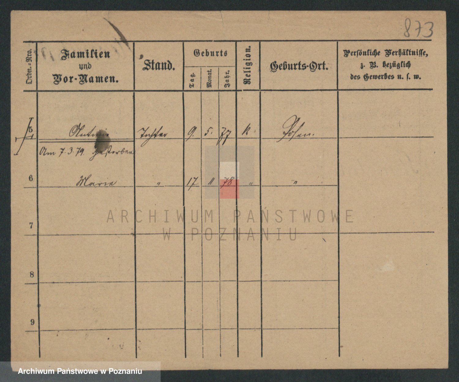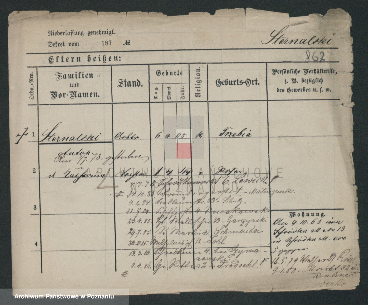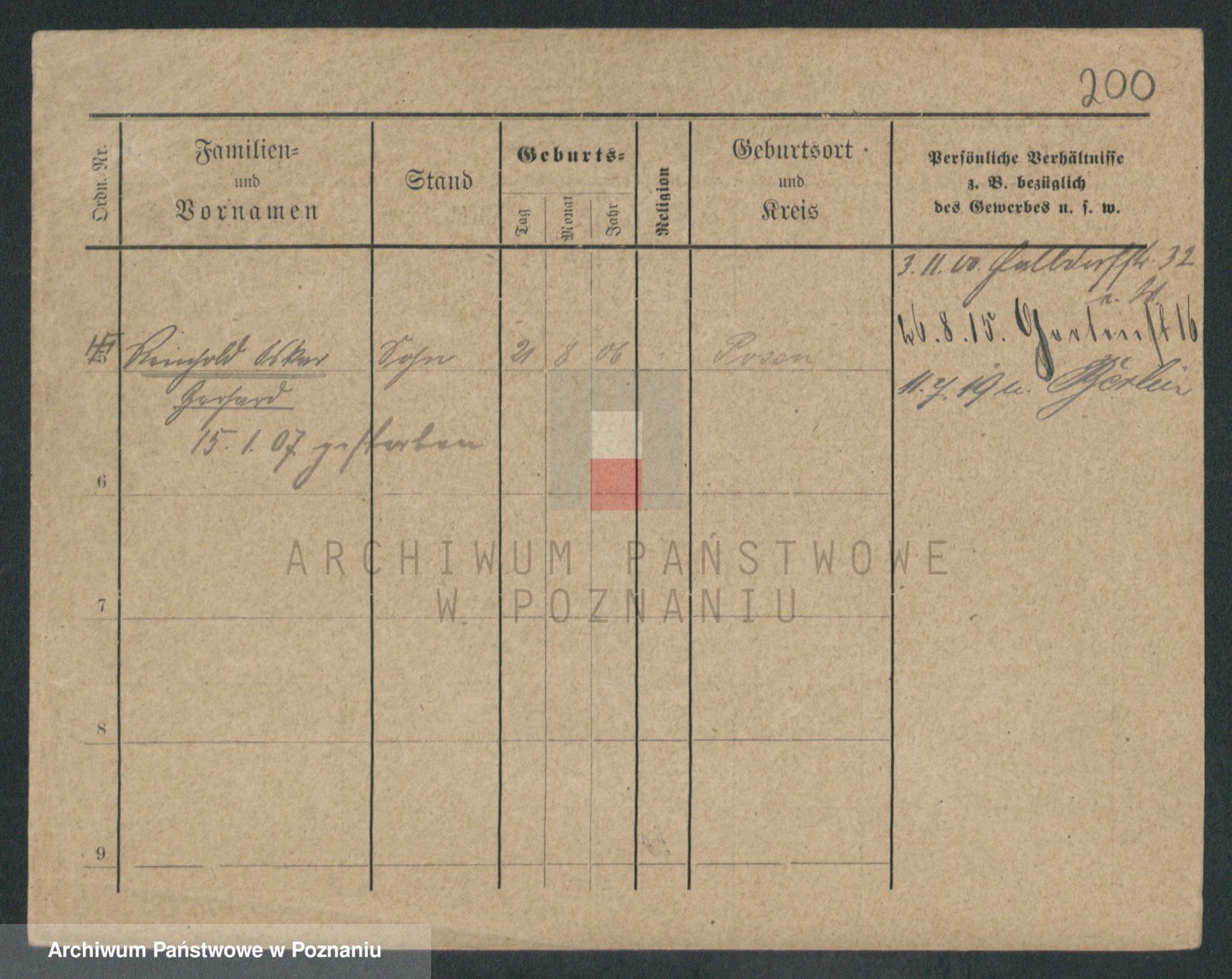 Podgląd karty osobowej dostępny jest po kliknięciu na nazwisko lub ikonkę karty. Można dokonywać powiększenia (ikony na górze) lub przechodzić między kolejnymi skanami (strzałki po bokach).