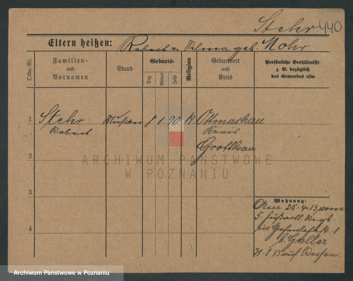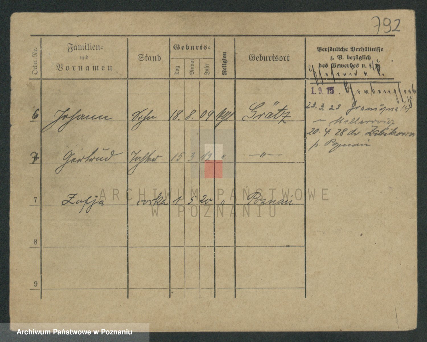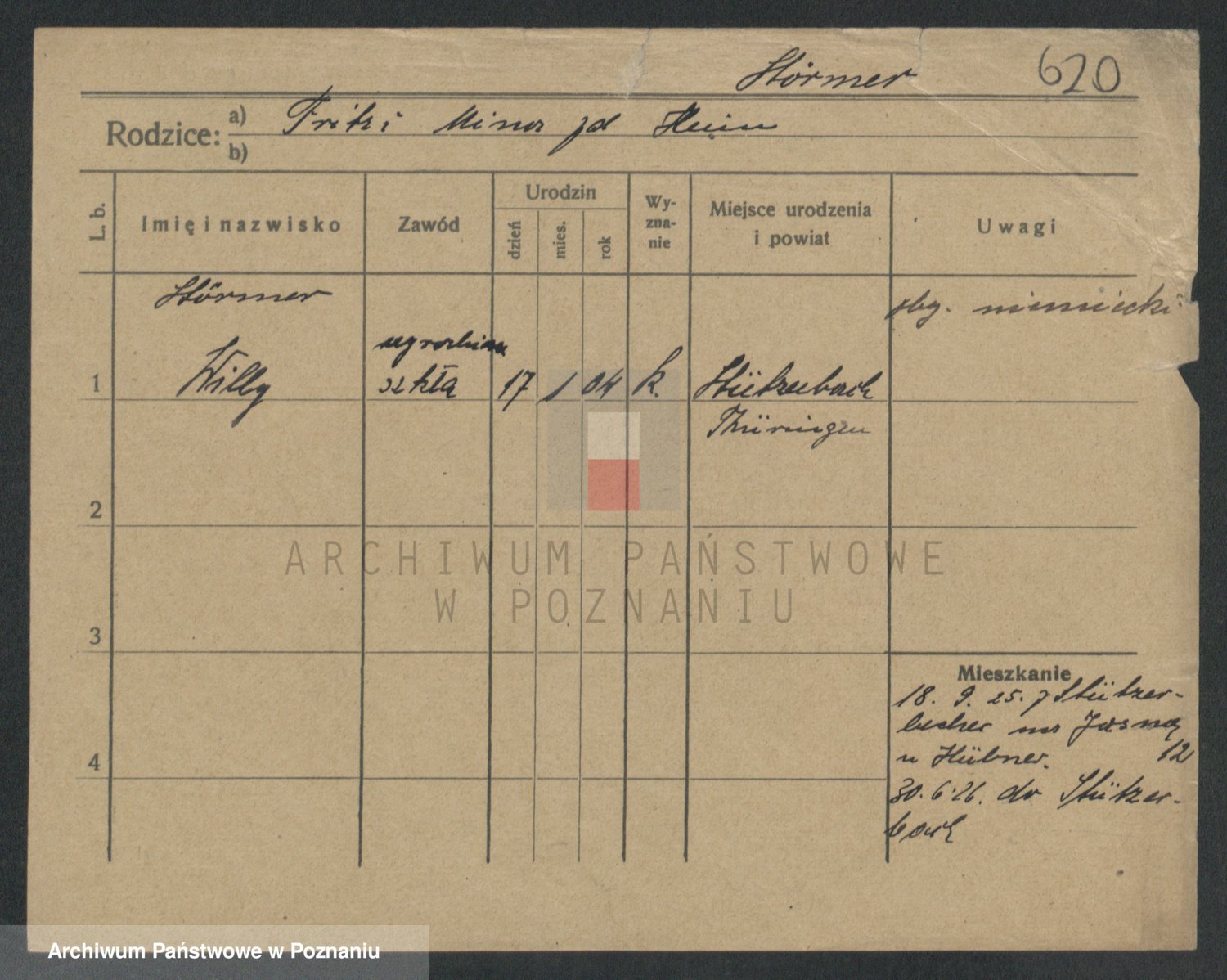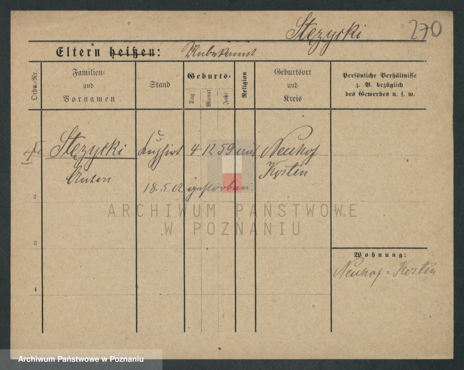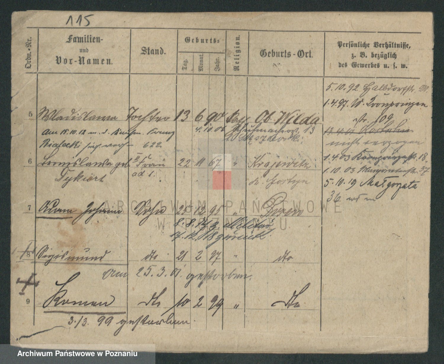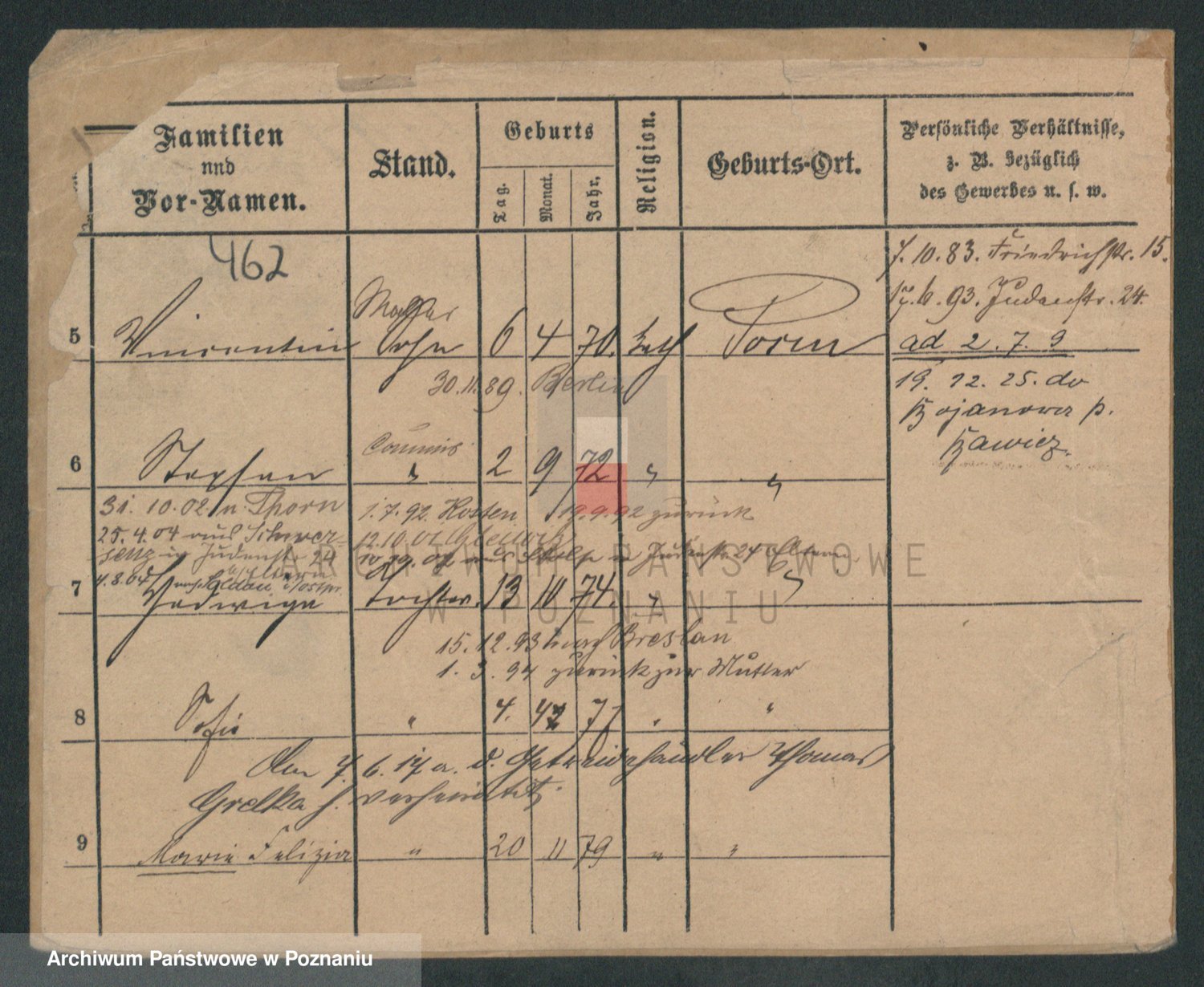 Podgląd karty osobowej dostępny jest po kliknięciu na nazwisko lub ikonkę karty. Można dokonywać powiększenia (ikony na górze) lub przechodzić między kolejnymi skanami (strzałki po bokach).