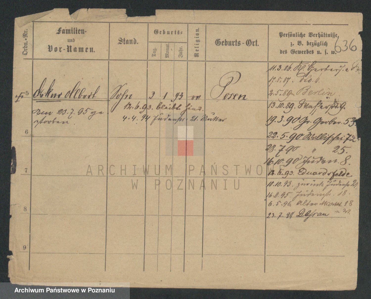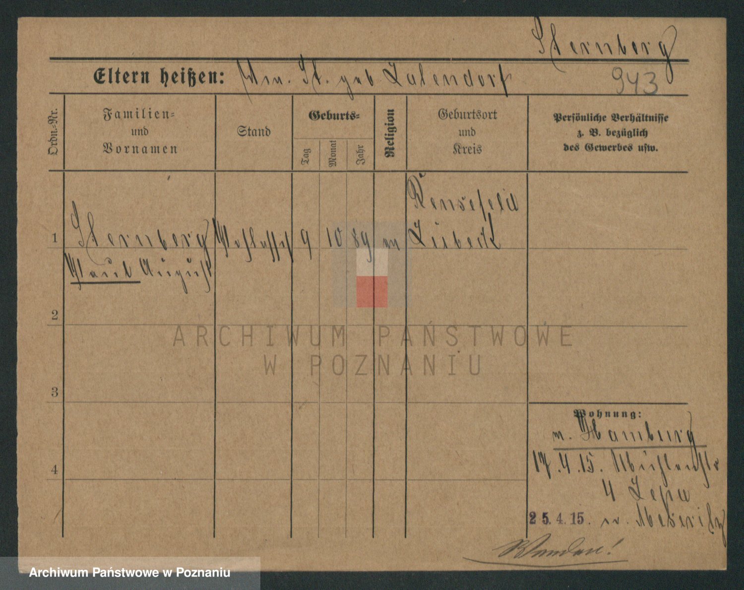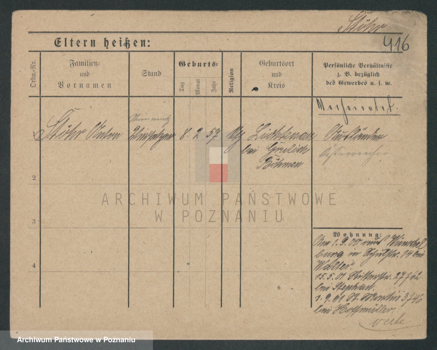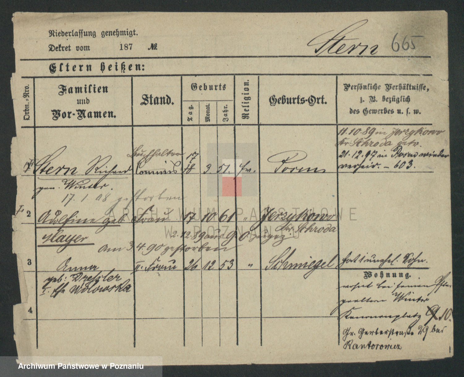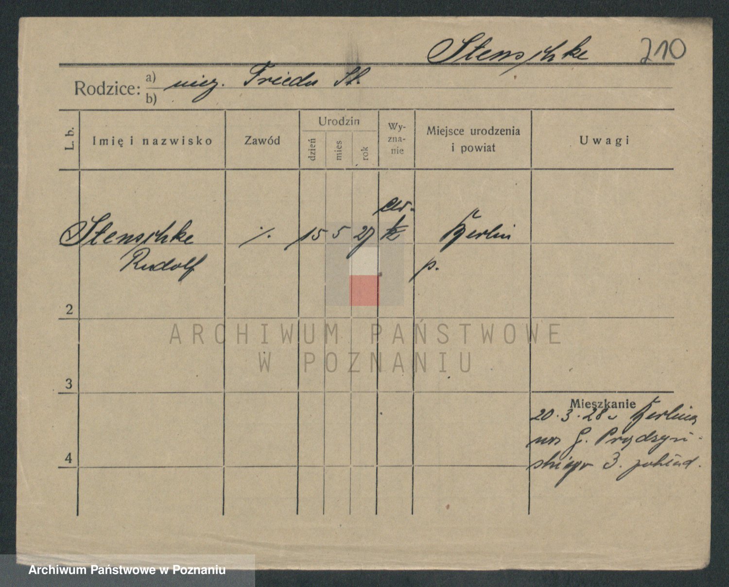 Podgląd karty osobowej dostępny jest po kliknięciu na nazwisko lub ikonkę karty. Można dokonywać powiększenia (ikony na górze) lub przechodzić między kolejnymi skanami (strzałki po bokach).