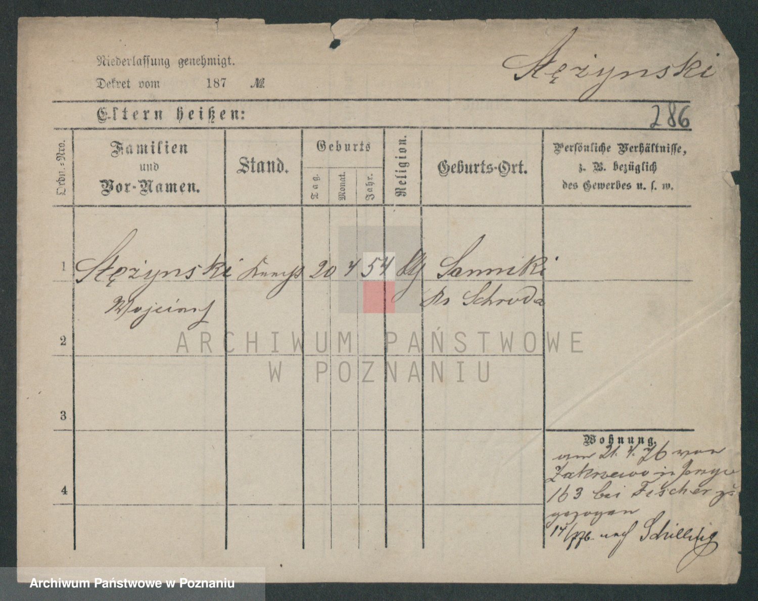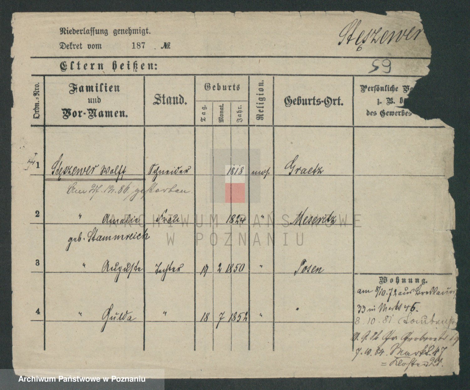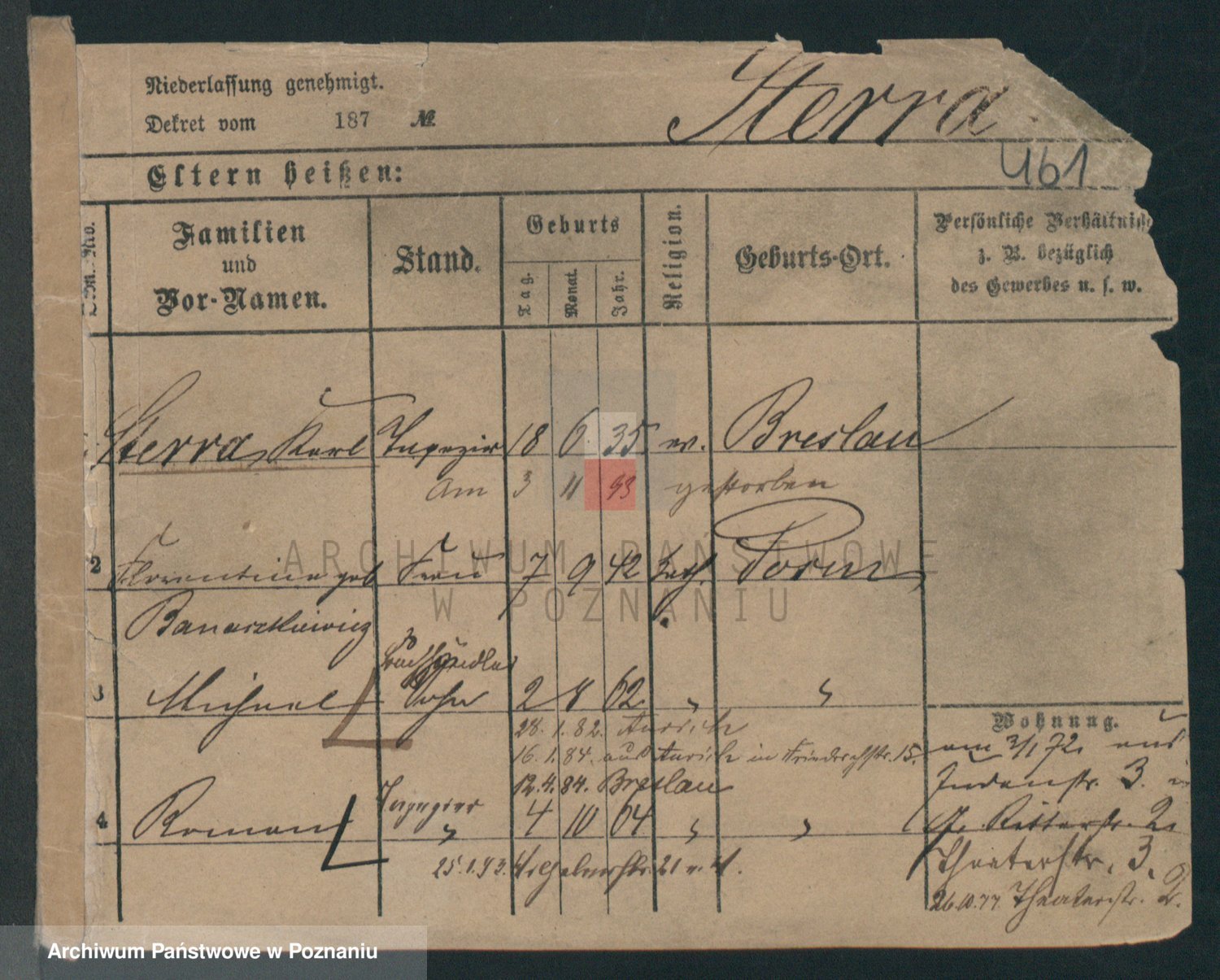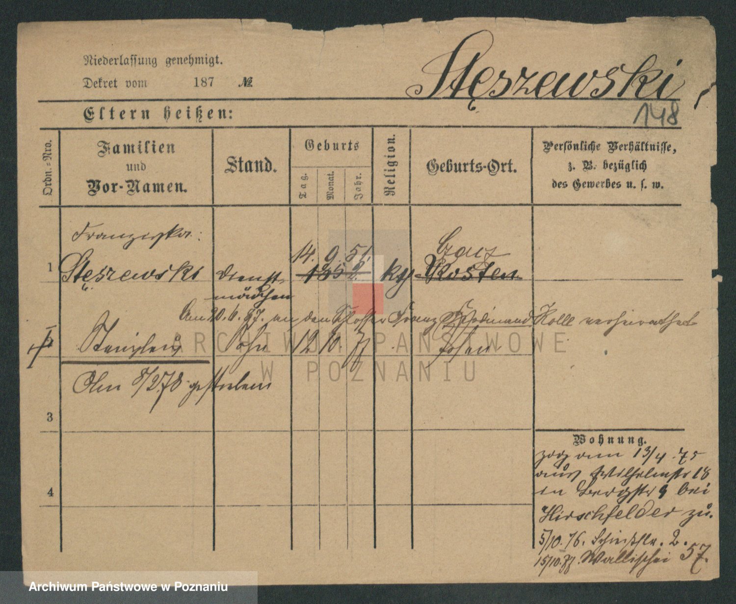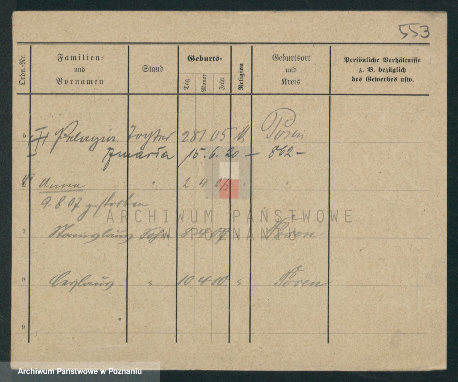 Podgląd karty osobowej dostępny jest po kliknięciu na nazwisko lub ikonkę karty. Można dokonywać powiększenia (ikony na górze) lub przechodzić między kolejnymi skanami (strzałki po bokach).