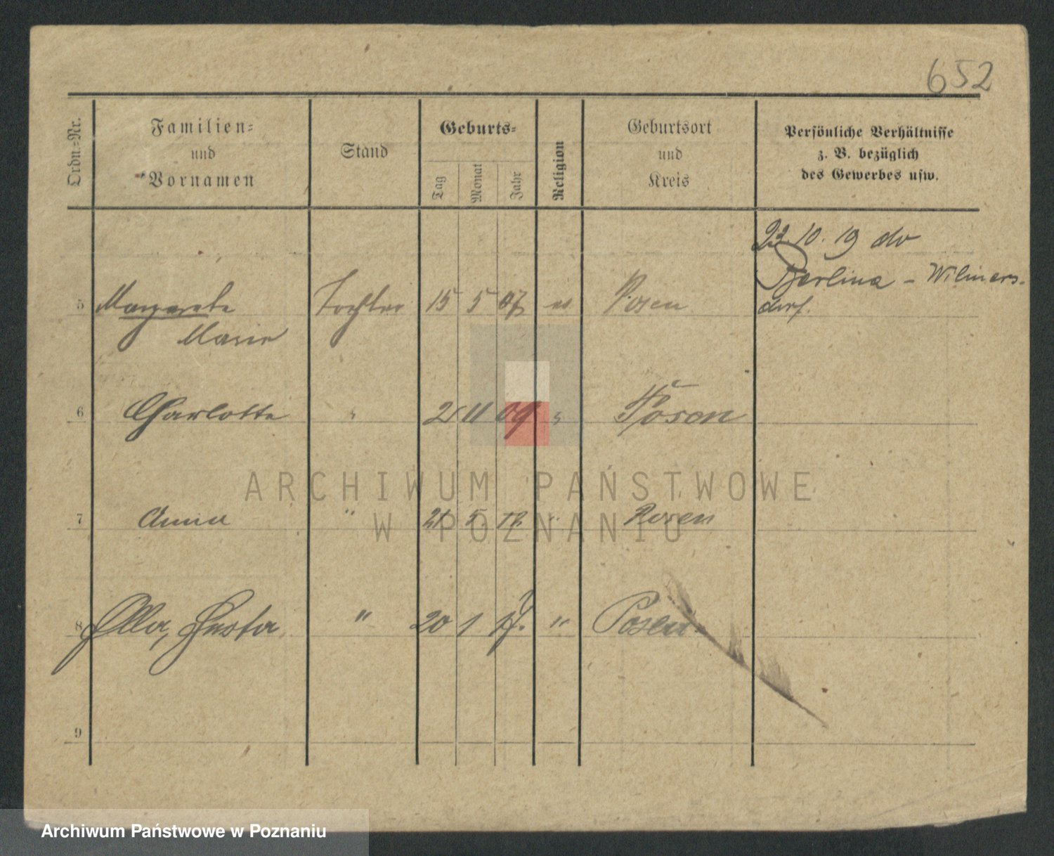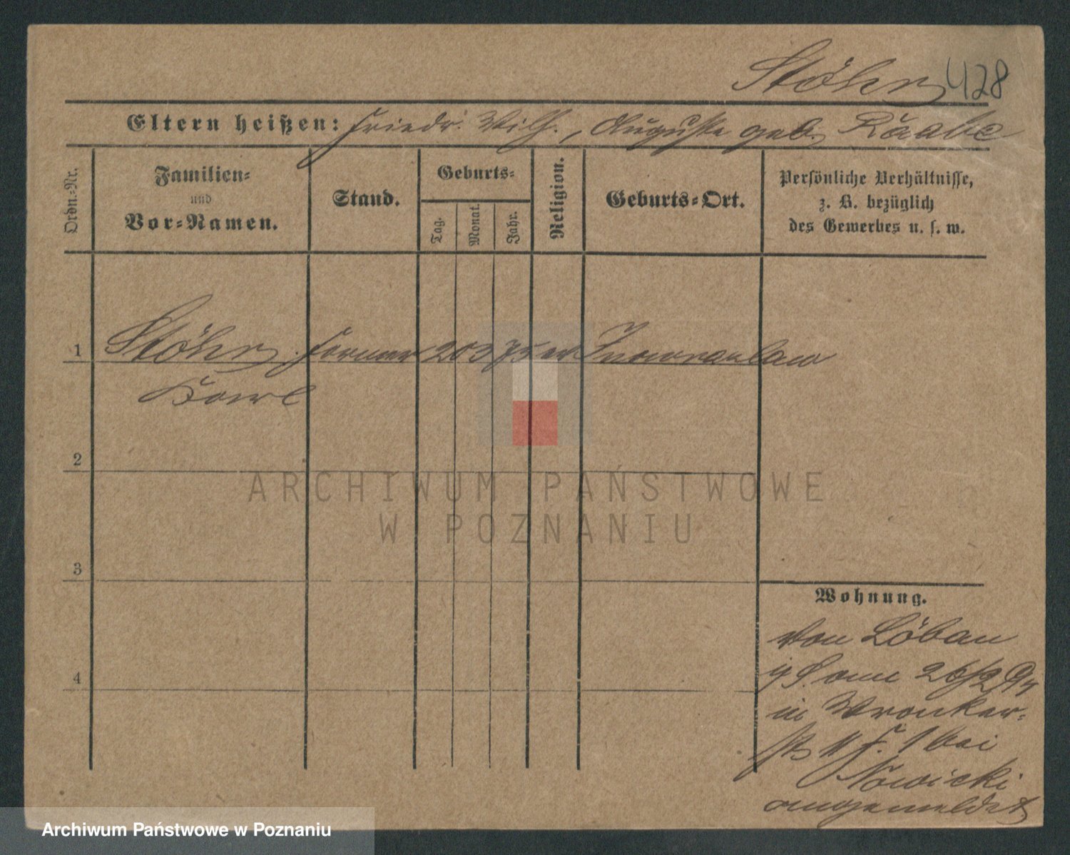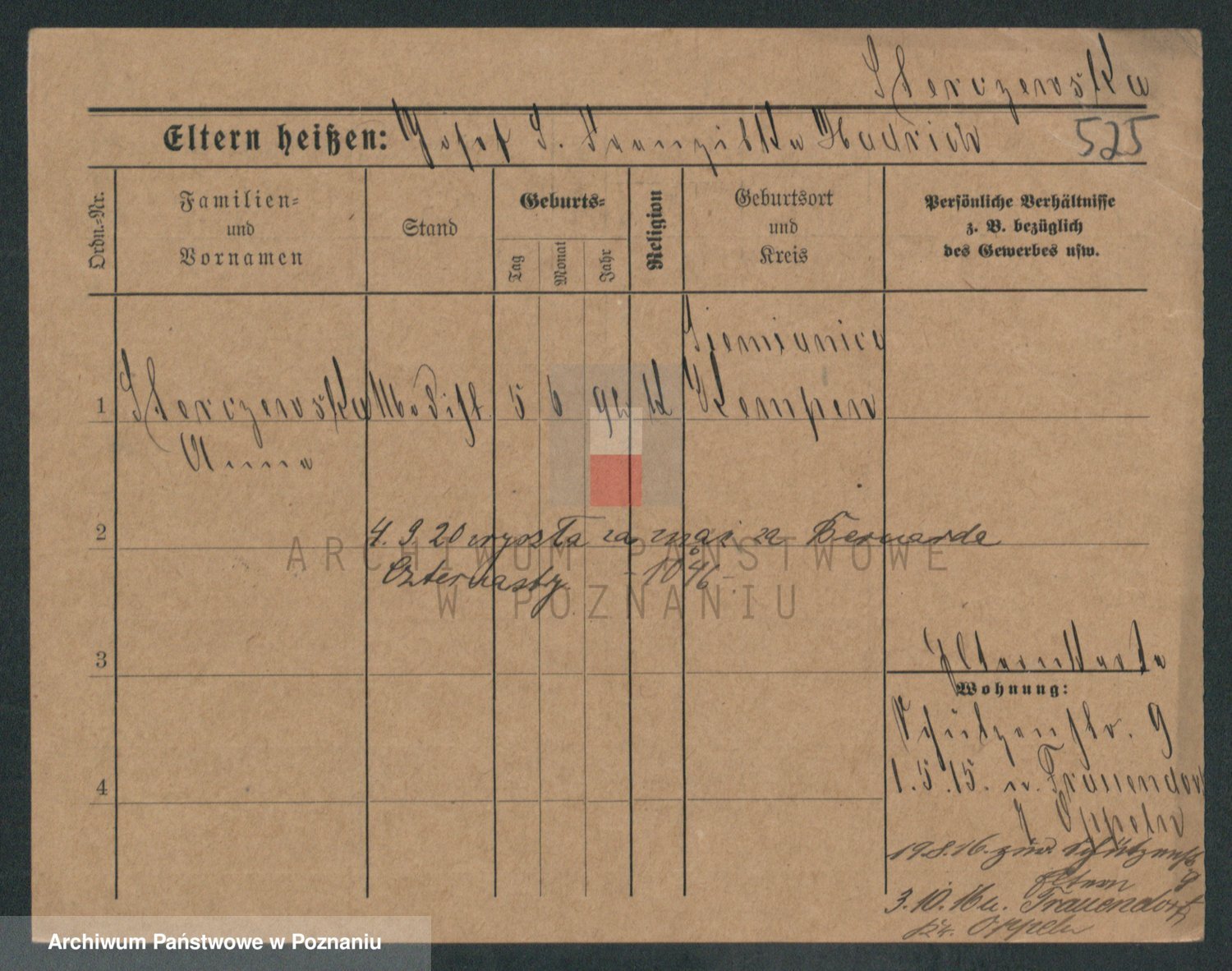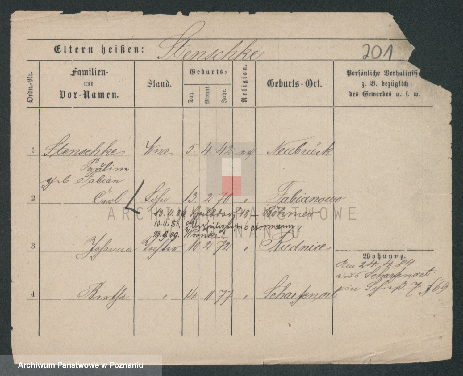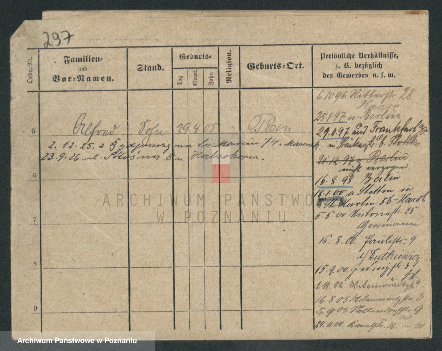 Podgląd karty osobowej dostępny jest po kliknięciu na nazwisko lub ikonkę karty. Można dokonywać powiększenia (ikony na górze) lub przechodzić między kolejnymi skanami (strzałki po bokach).