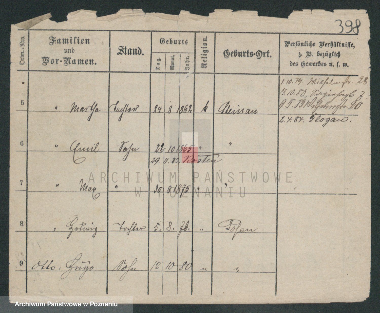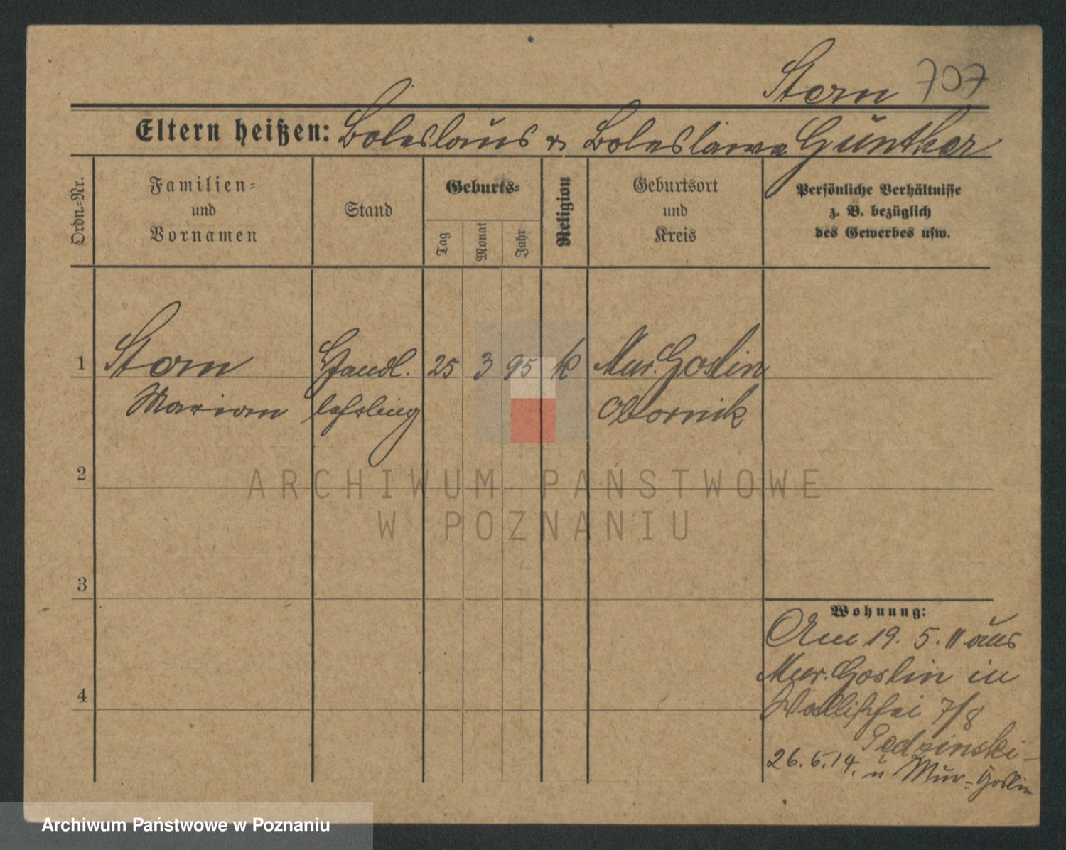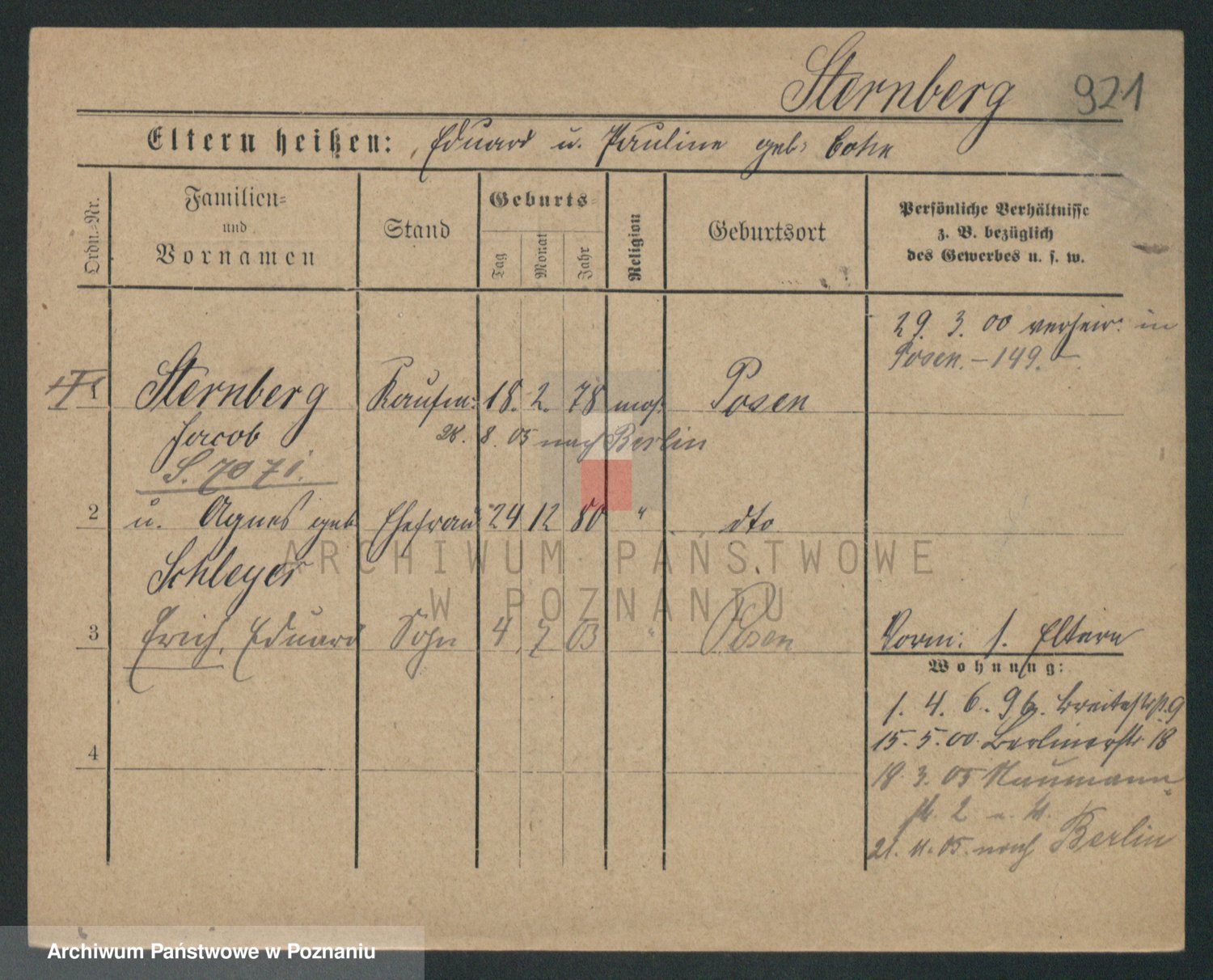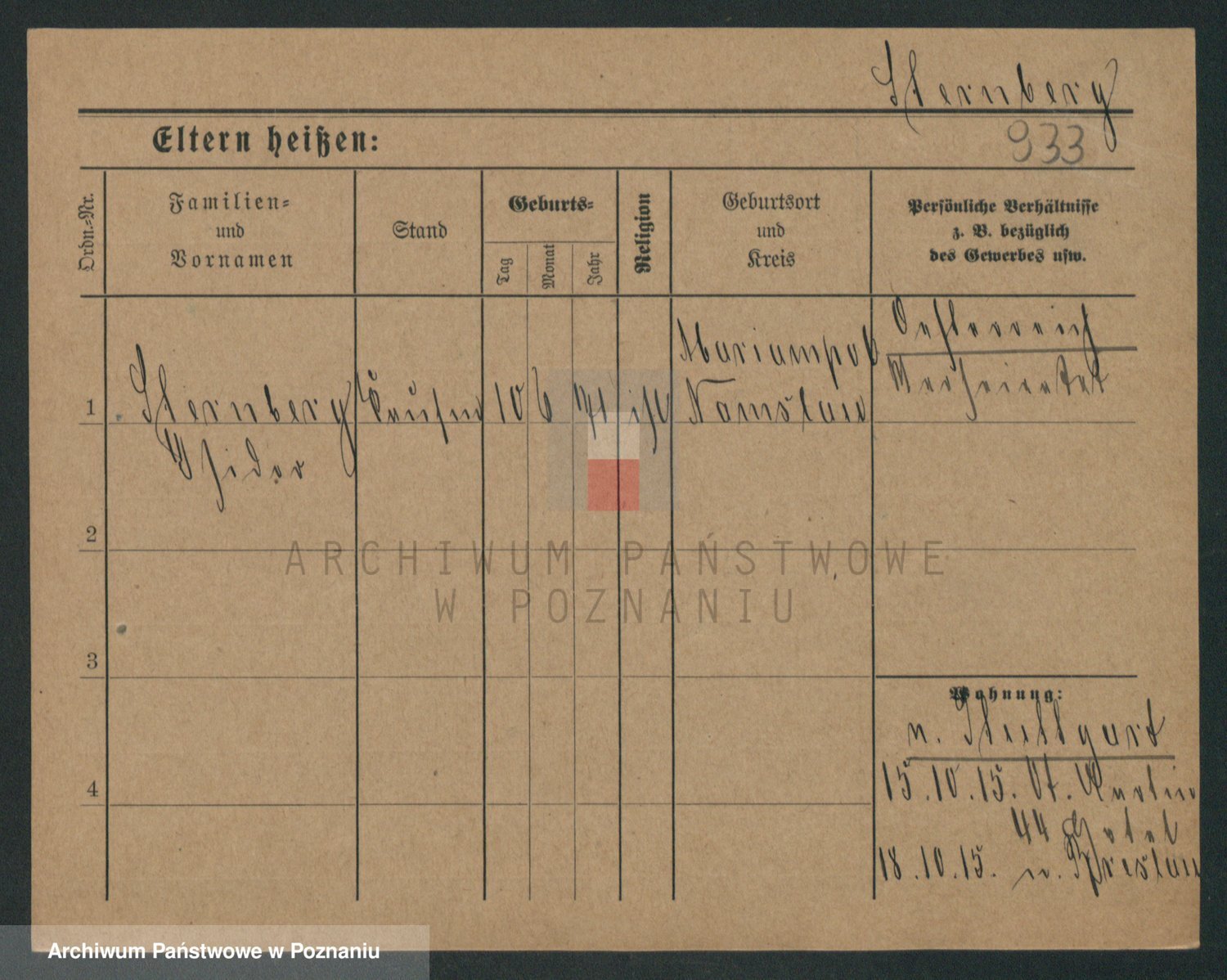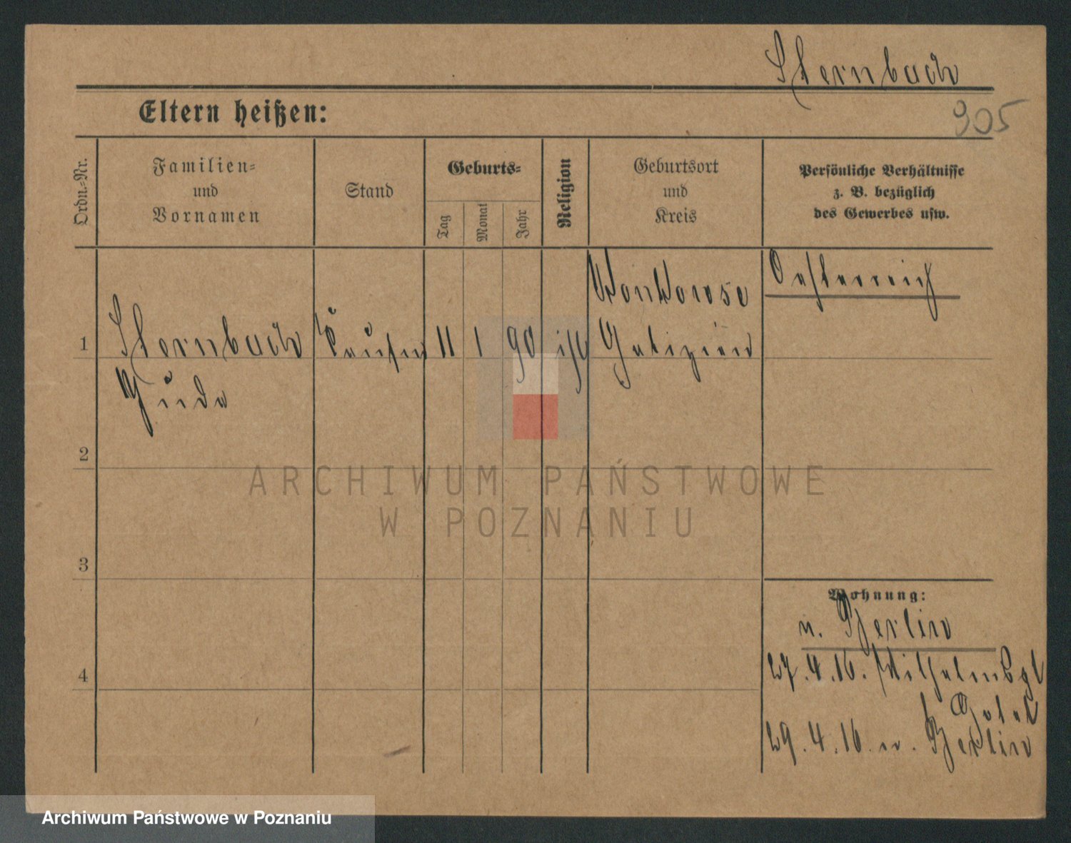 Podgląd karty osobowej dostępny jest po kliknięciu na nazwisko lub ikonkę karty. Można dokonywać powiększenia (ikony na górze) lub przechodzić między kolejnymi skanami (strzałki po bokach).