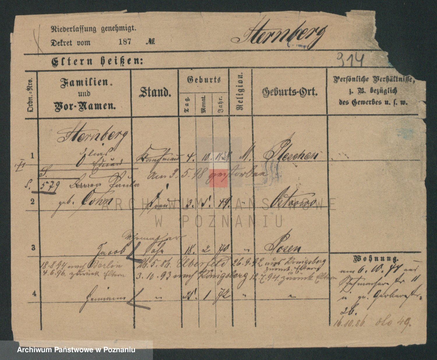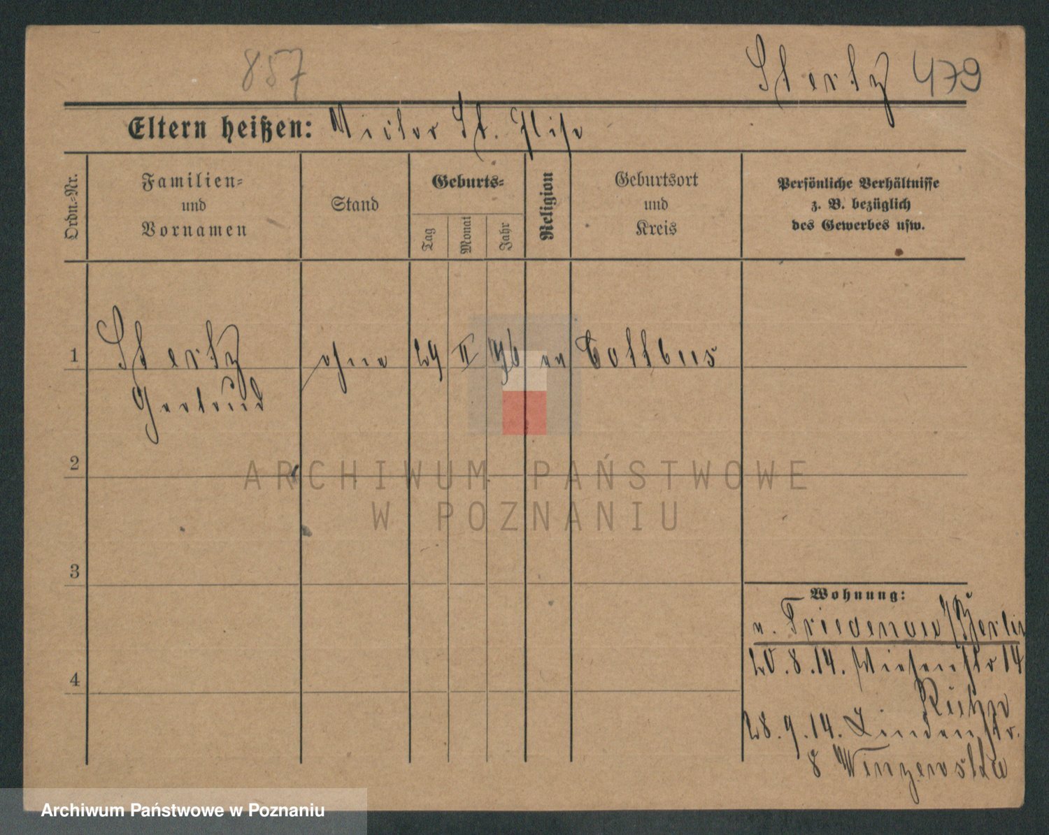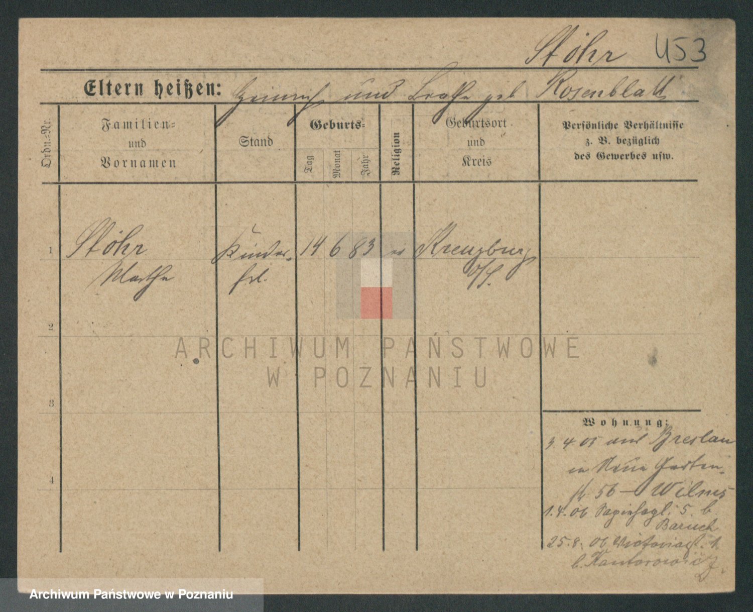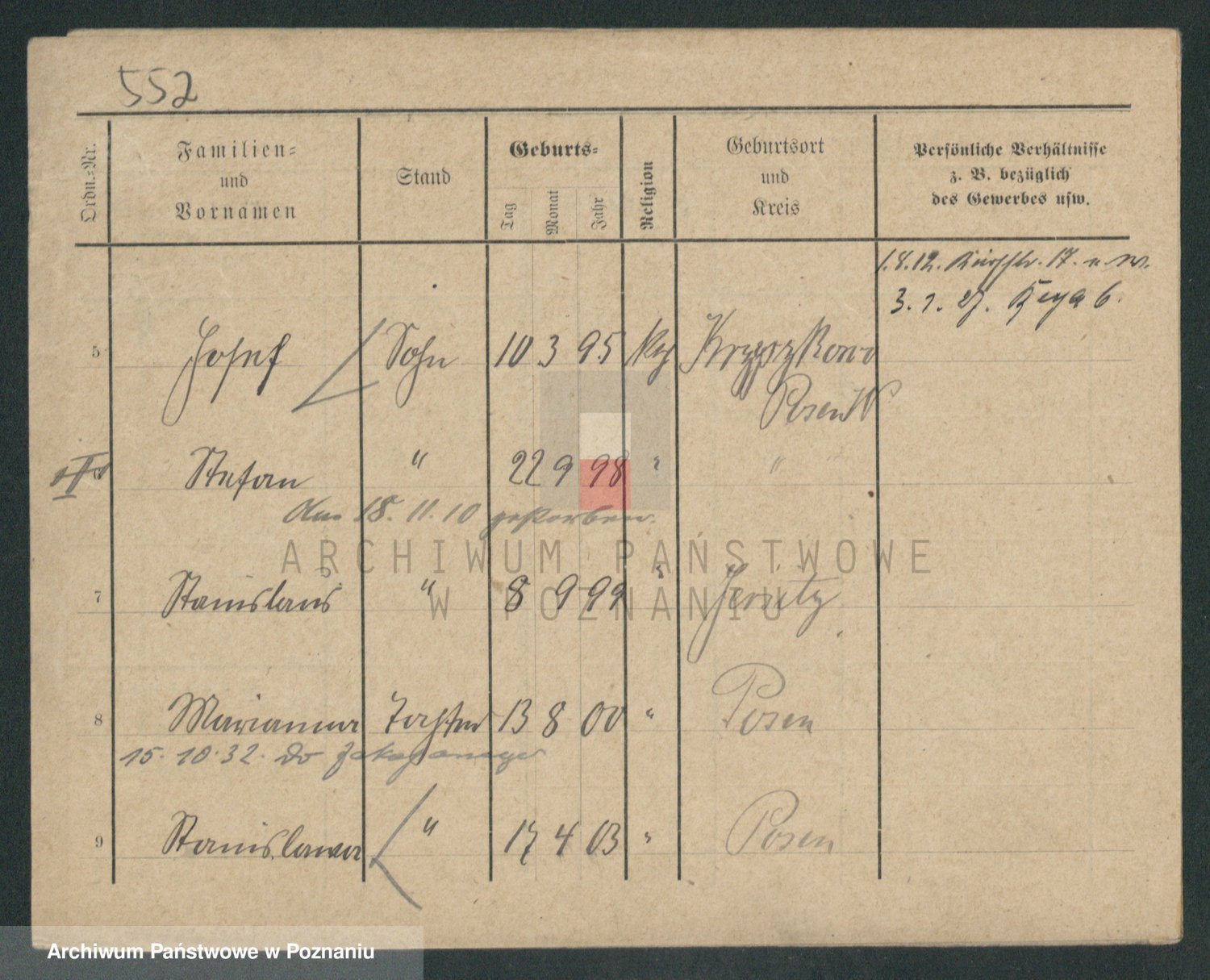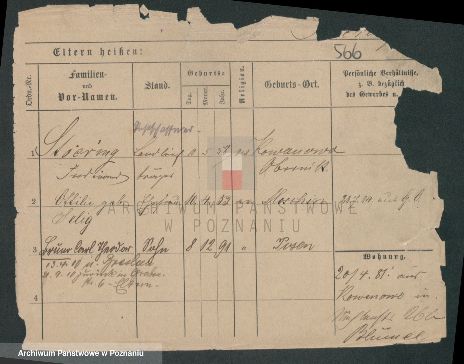 Podgląd karty osobowej dostępny jest po kliknięciu na nazwisko lub ikonkę karty. Można dokonywać powiększenia (ikony na górze) lub przechodzić między kolejnymi skanami (strzałki po bokach).