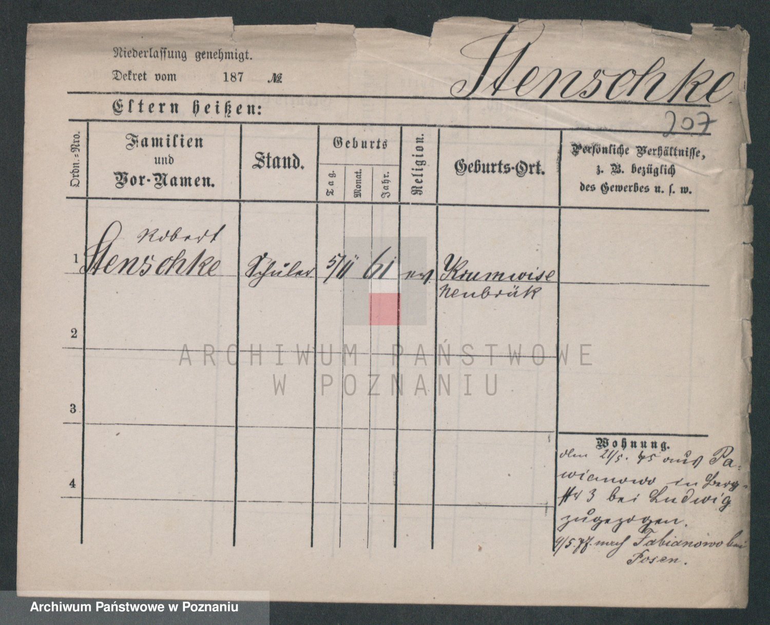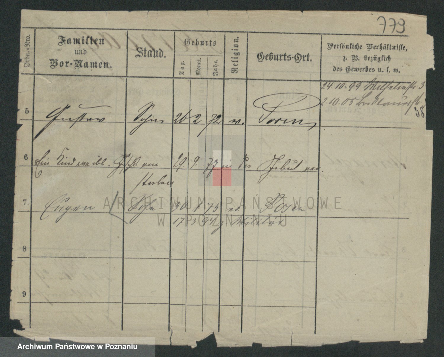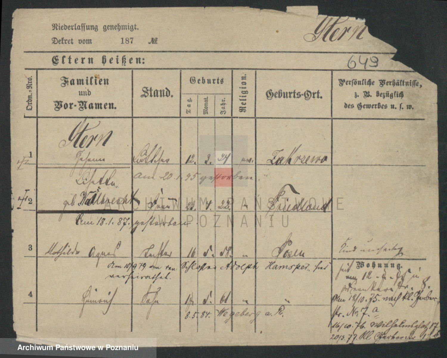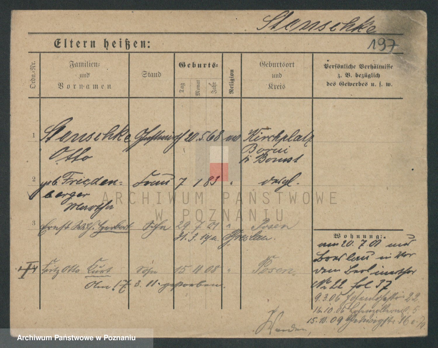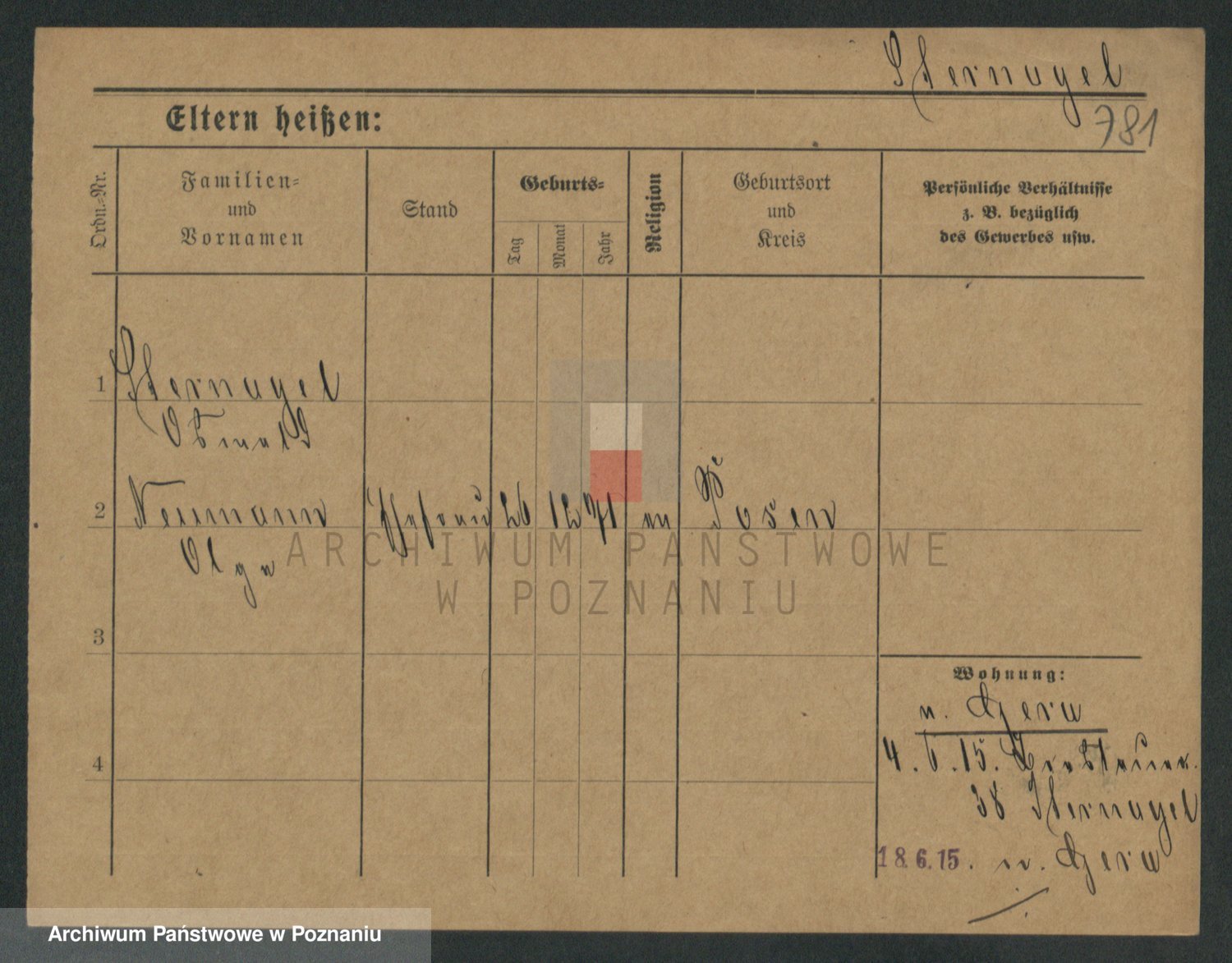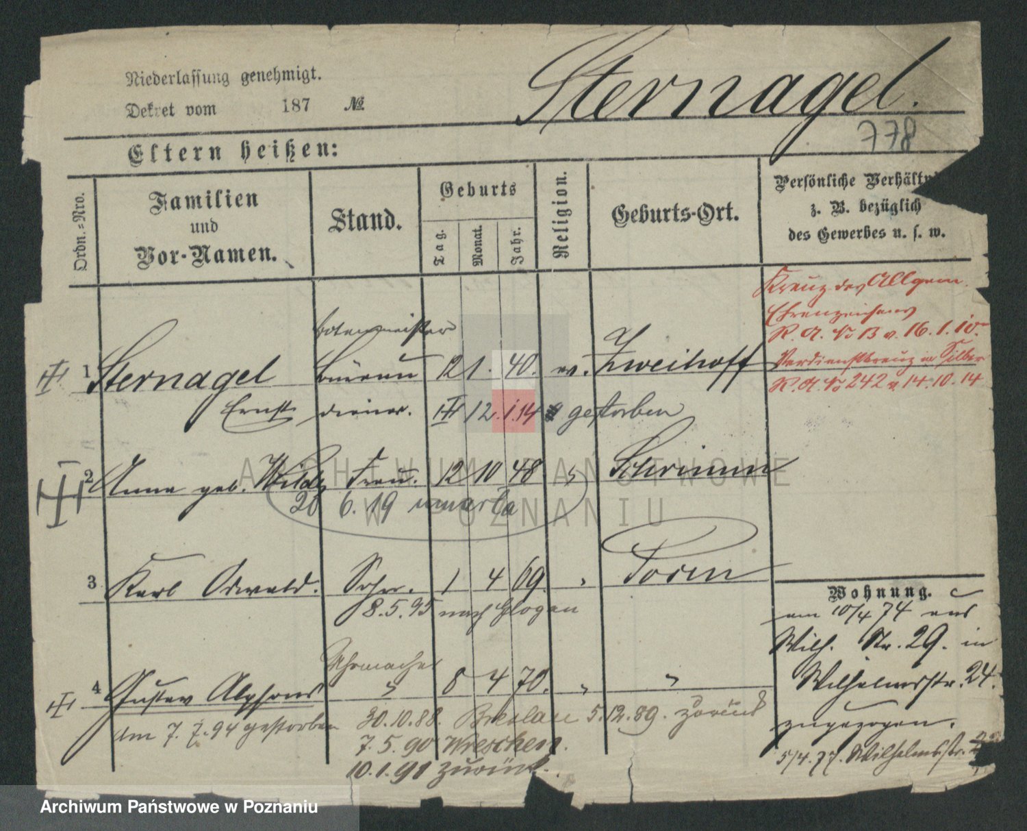 Podgląd karty osobowej dostępny jest po kliknięciu na nazwisko lub ikonkę karty. Można dokonywać powiększenia (ikony na górze) lub przechodzić między kolejnymi skanami (strzałki po bokach).