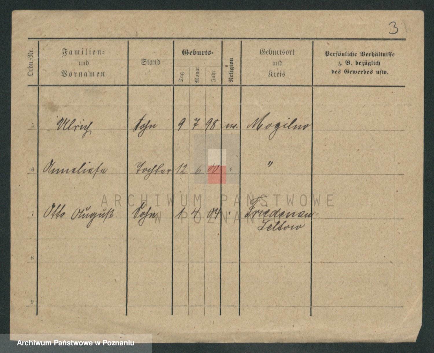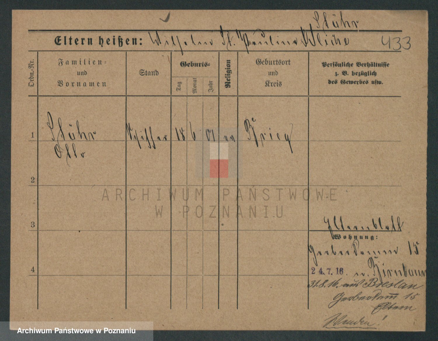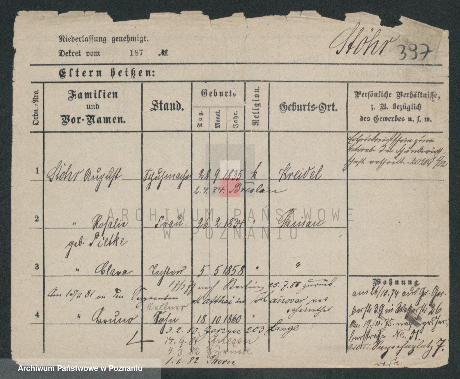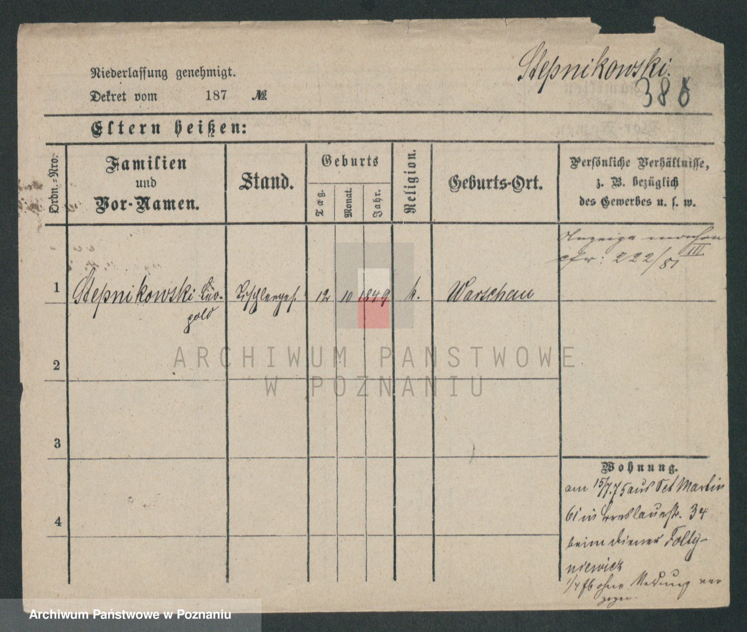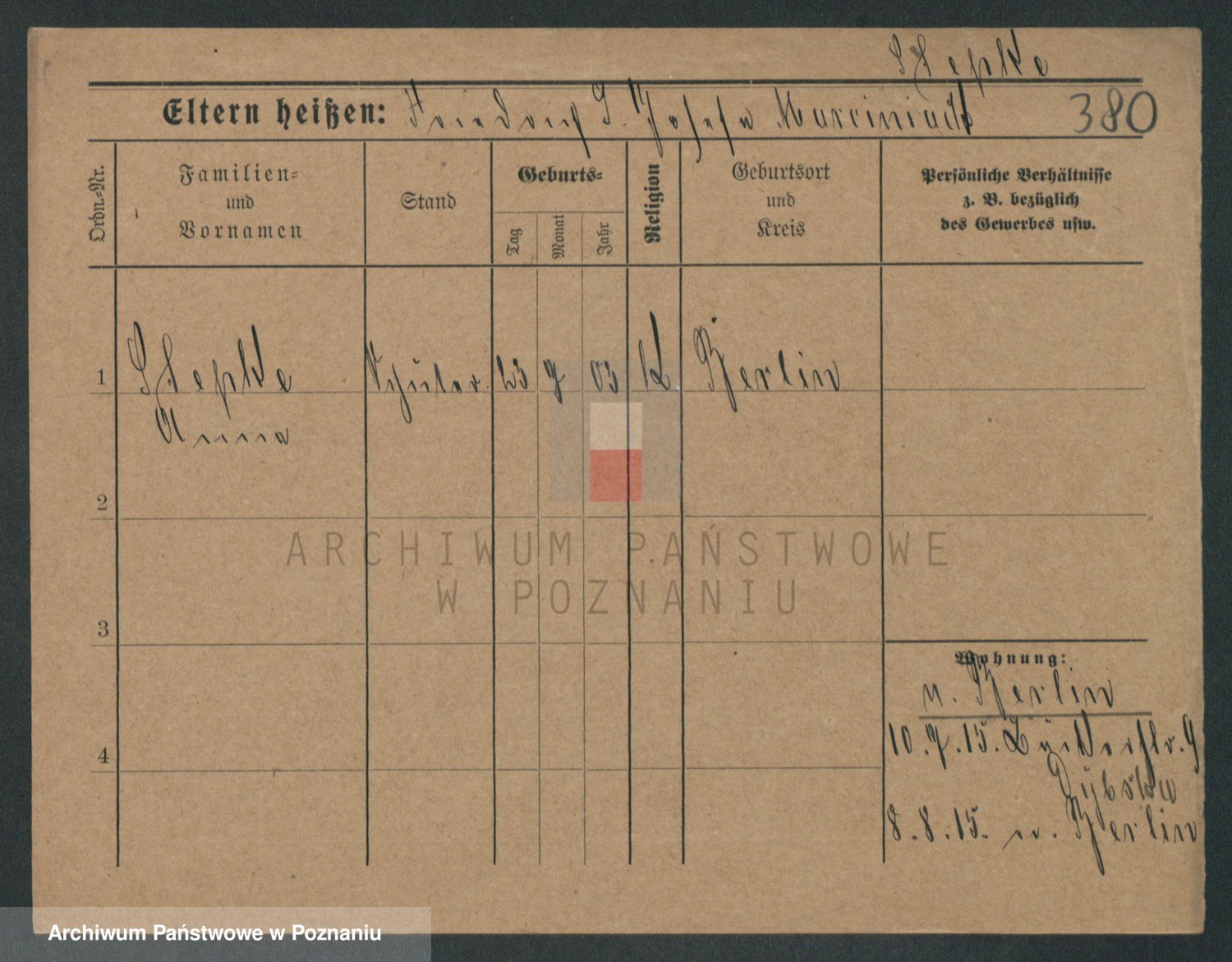 Podgląd karty osobowej dostępny jest po kliknięciu na nazwisko lub ikonkę karty. Można dokonywać powiększenia (ikony na górze) lub przechodzić między kolejnymi skanami (strzałki po bokach).