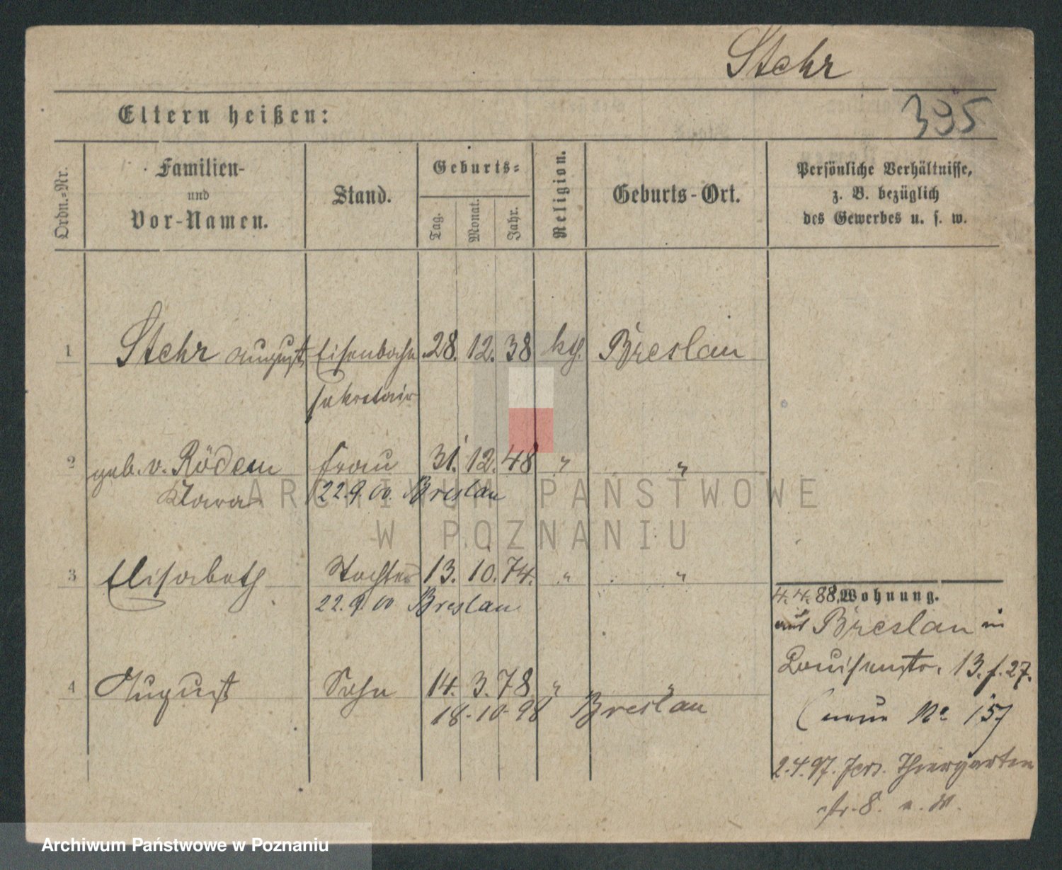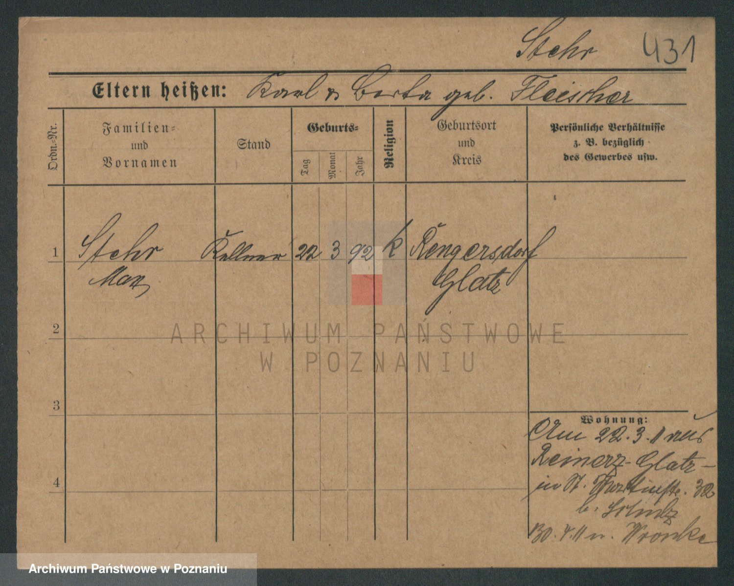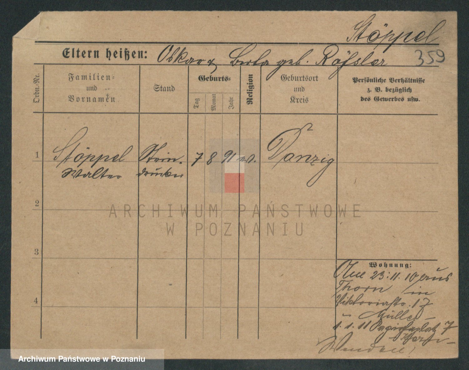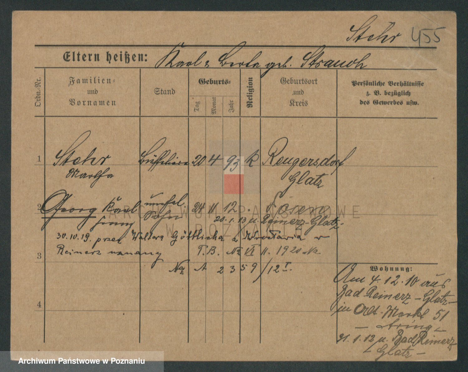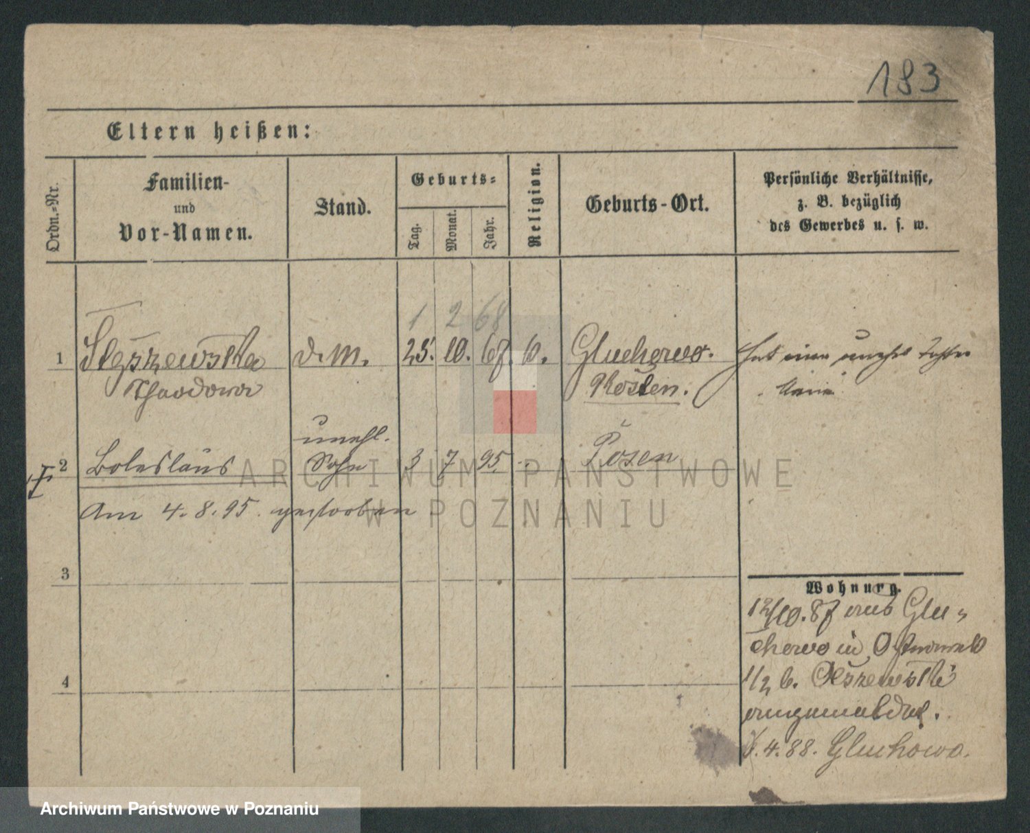 Podgląd karty osobowej dostępny jest po kliknięciu na nazwisko lub ikonkę karty. Można dokonywać powiększenia (ikony na górze) lub przechodzić między kolejnymi skanami (strzałki po bokach).