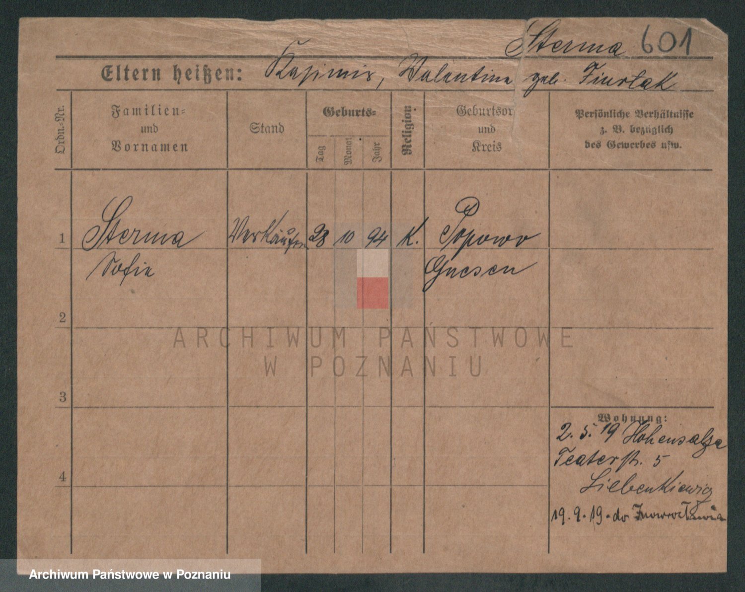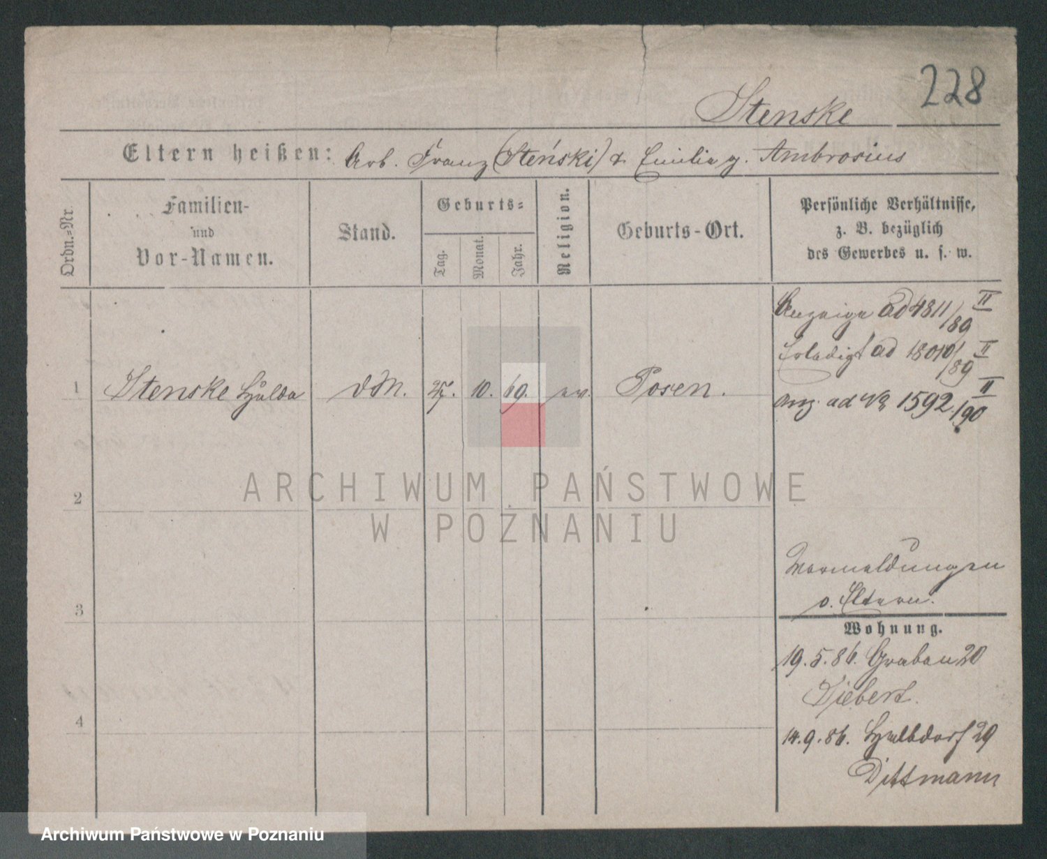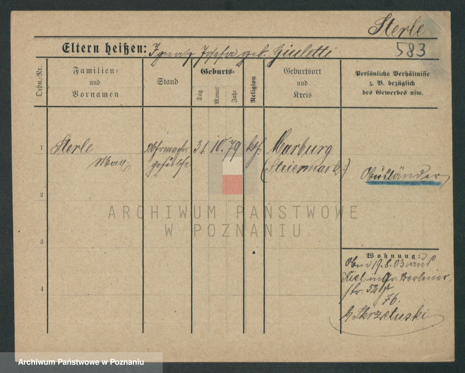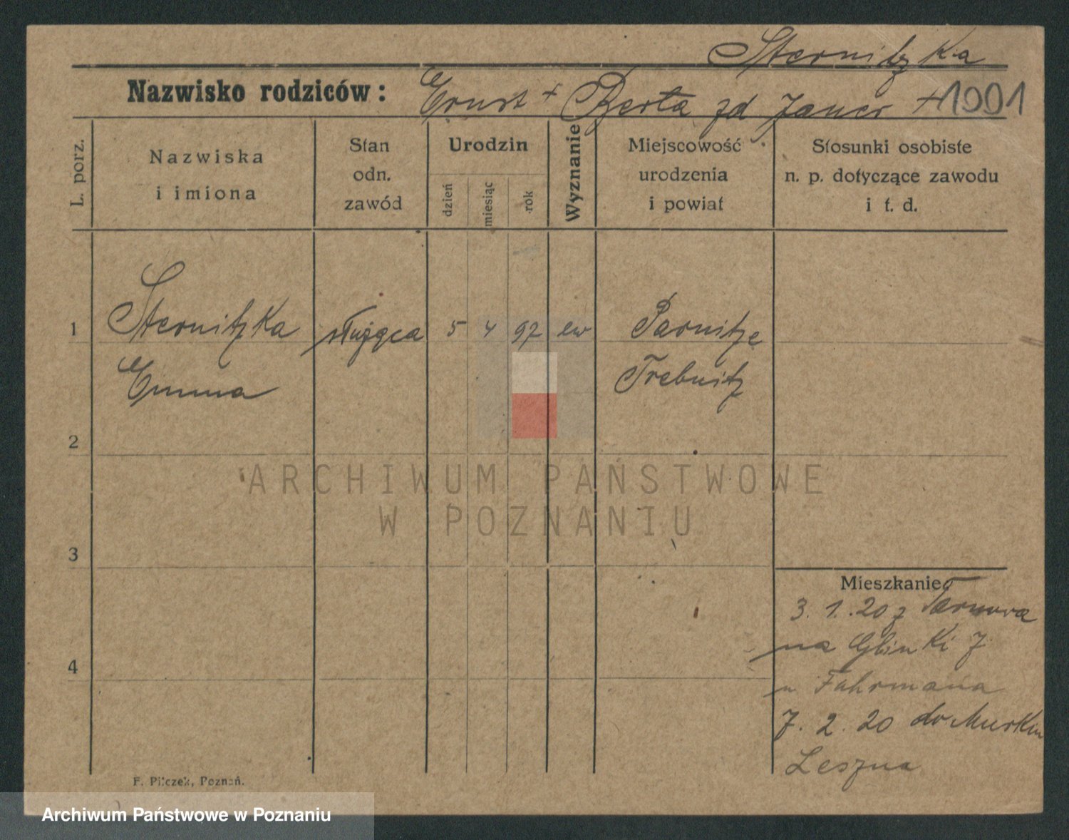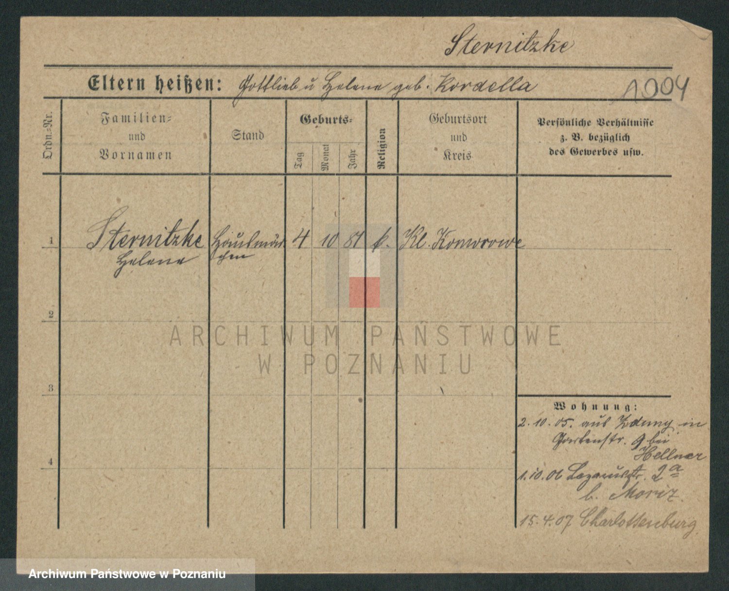 Sternitzke zd. Kamieniczna, Julie