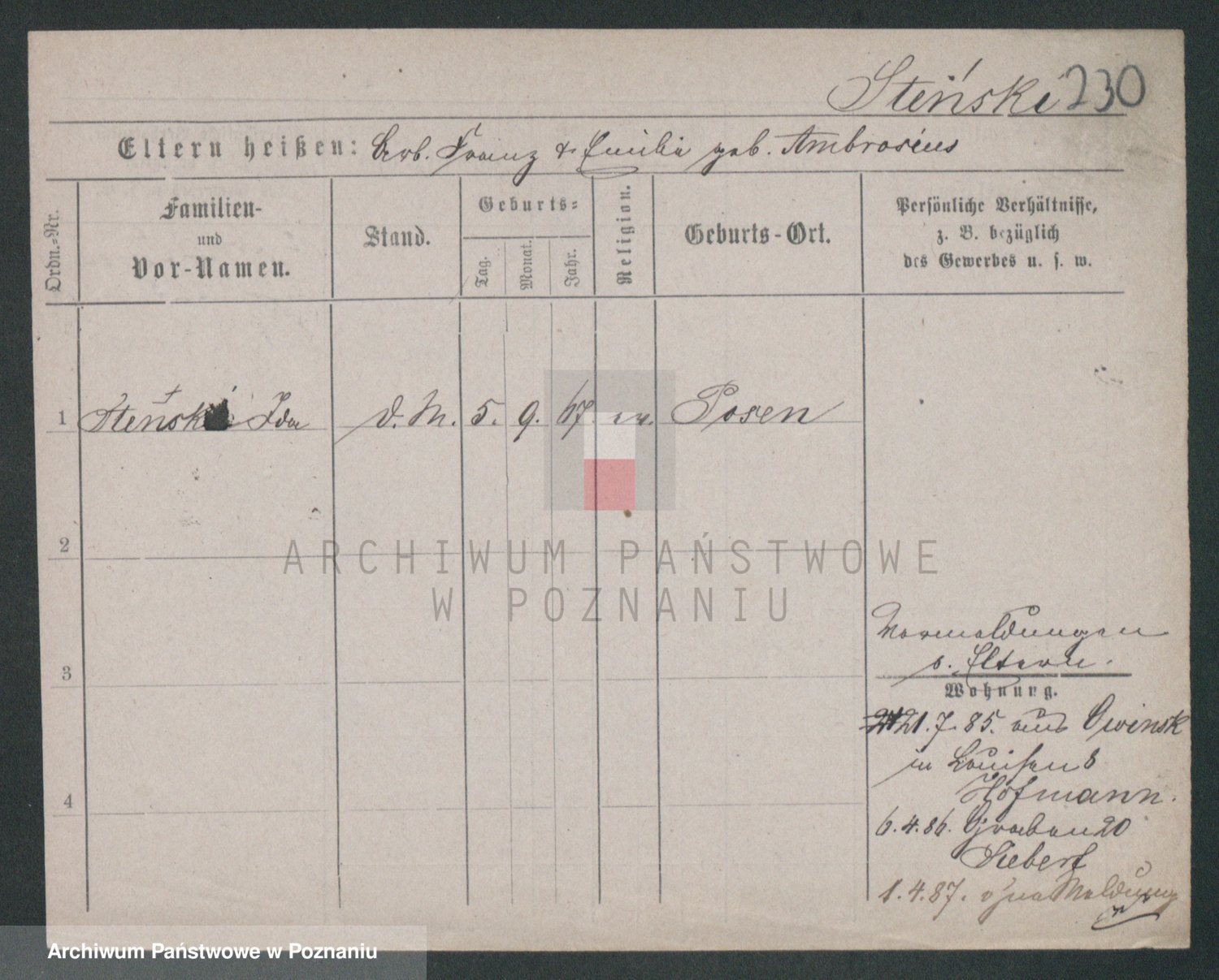Stens zd. Ostermann, Marie