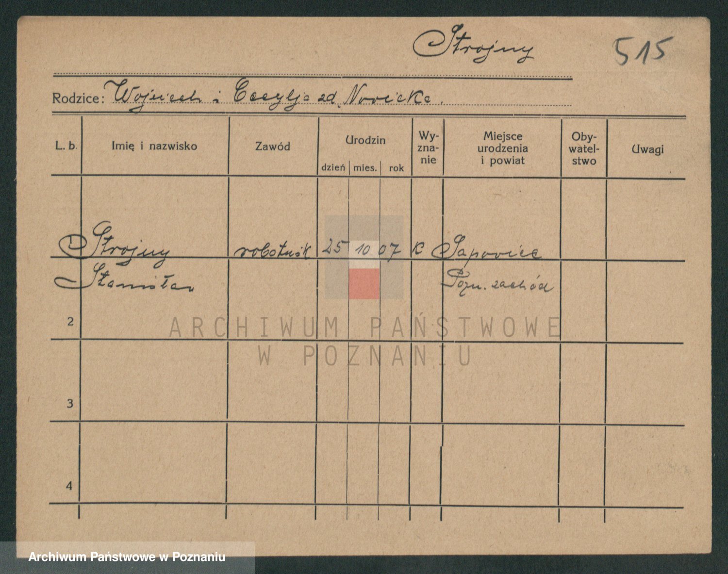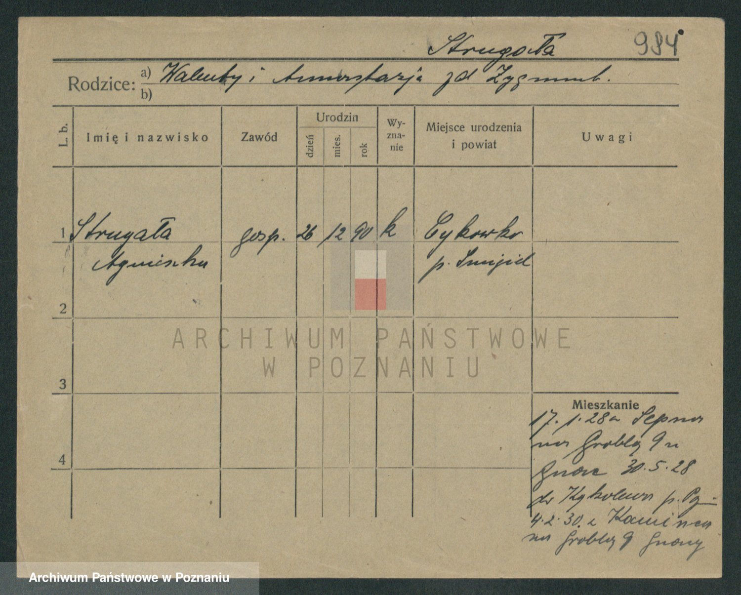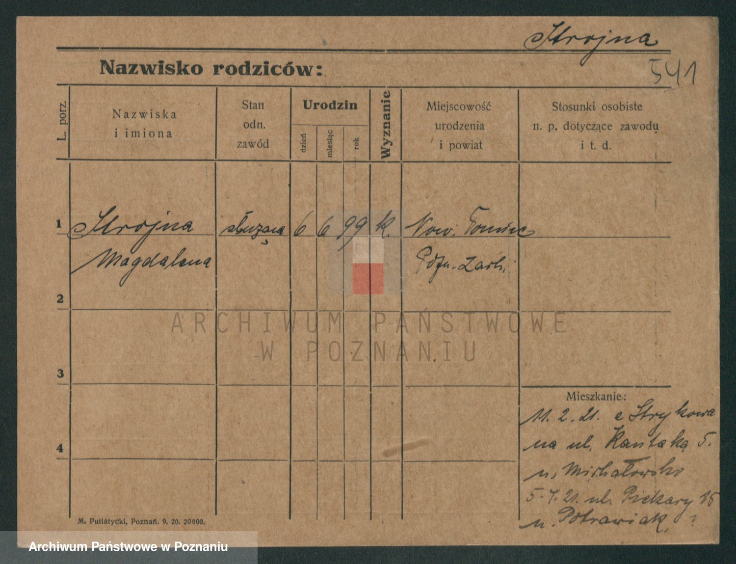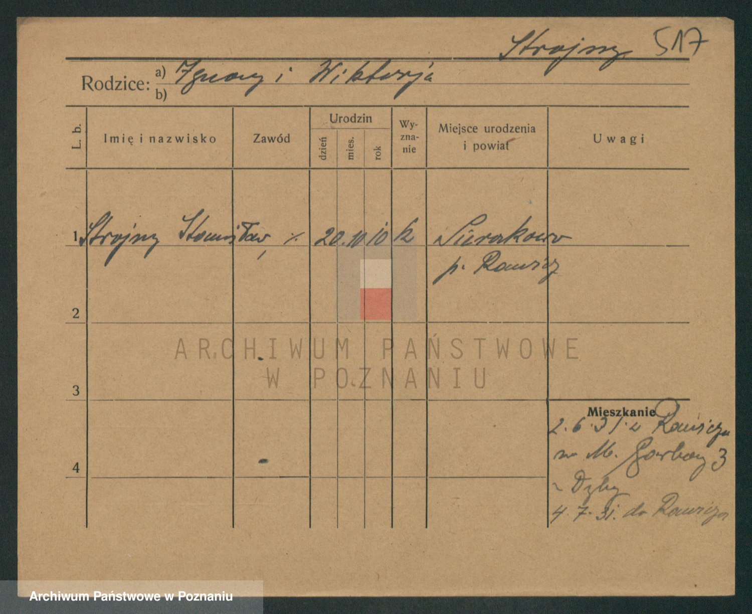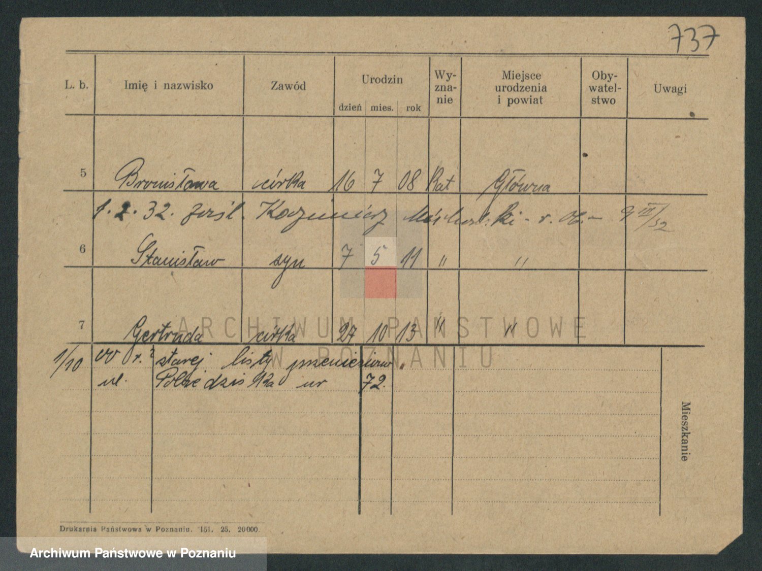 Podgląd karty osobowej dostępny jest po kliknięciu na nazwisko lub ikonkę karty. Można dokonywać powiększenia (ikony na górze) lub przechodzić między kolejnymi skanami (strzałki po bokach).