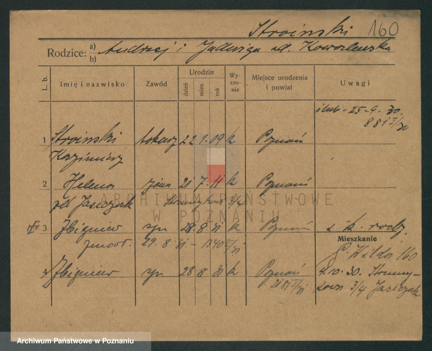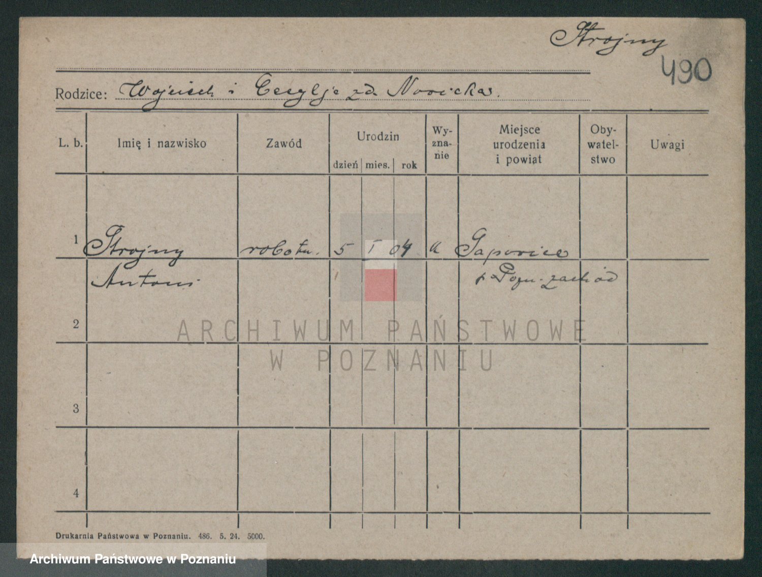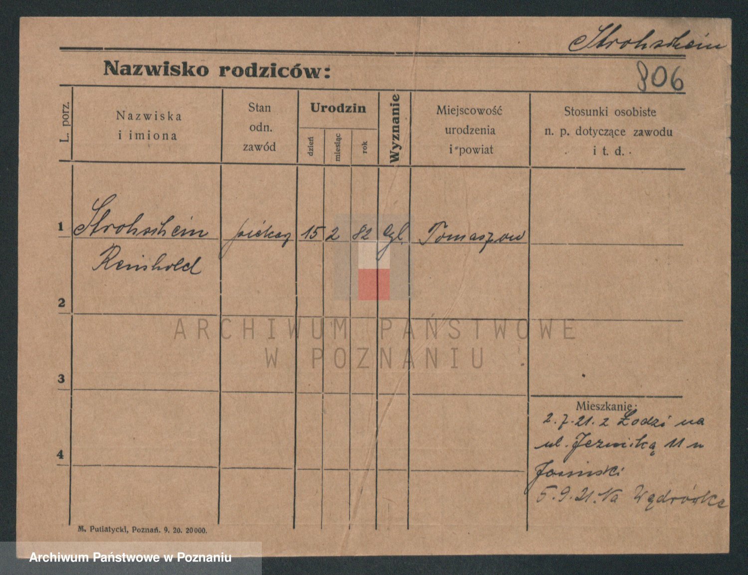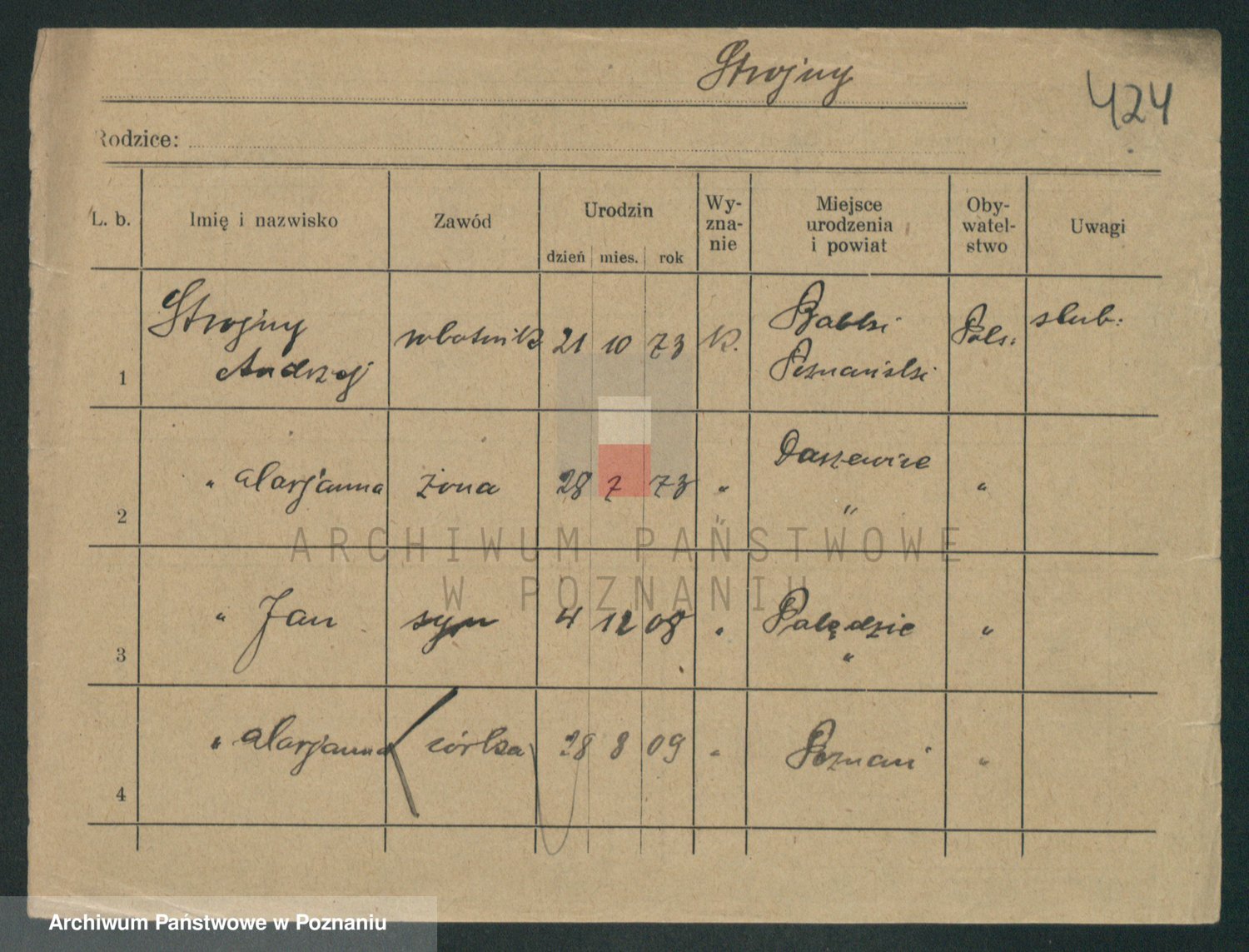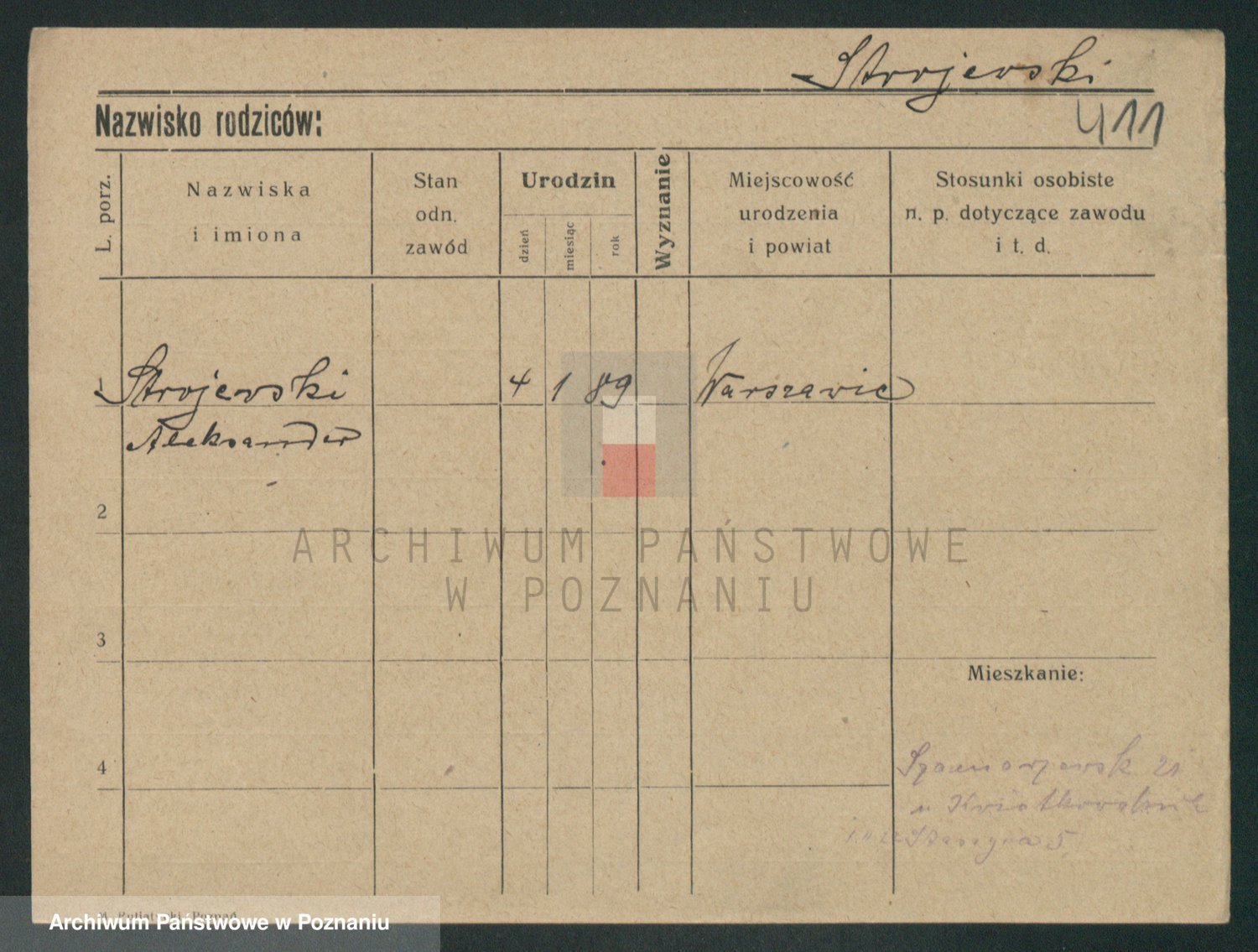 Podgląd karty osobowej dostępny jest po kliknięciu na nazwisko lub ikonkę karty. Można dokonywać powiększenia (ikony na górze) lub przechodzić między kolejnymi skanami (strzałki po bokach).