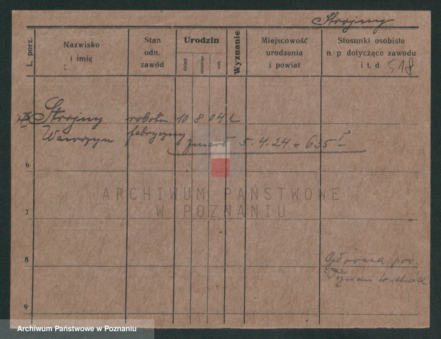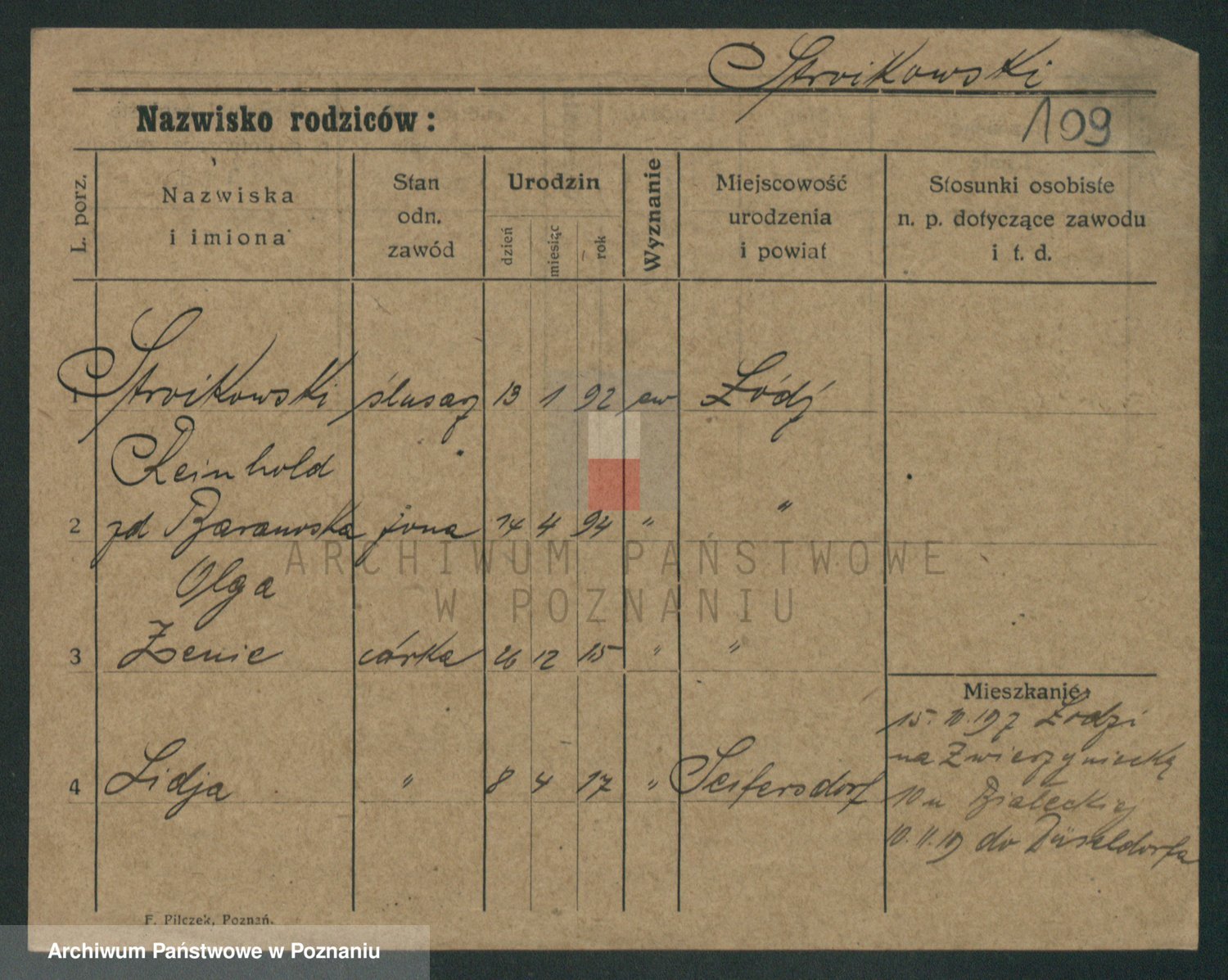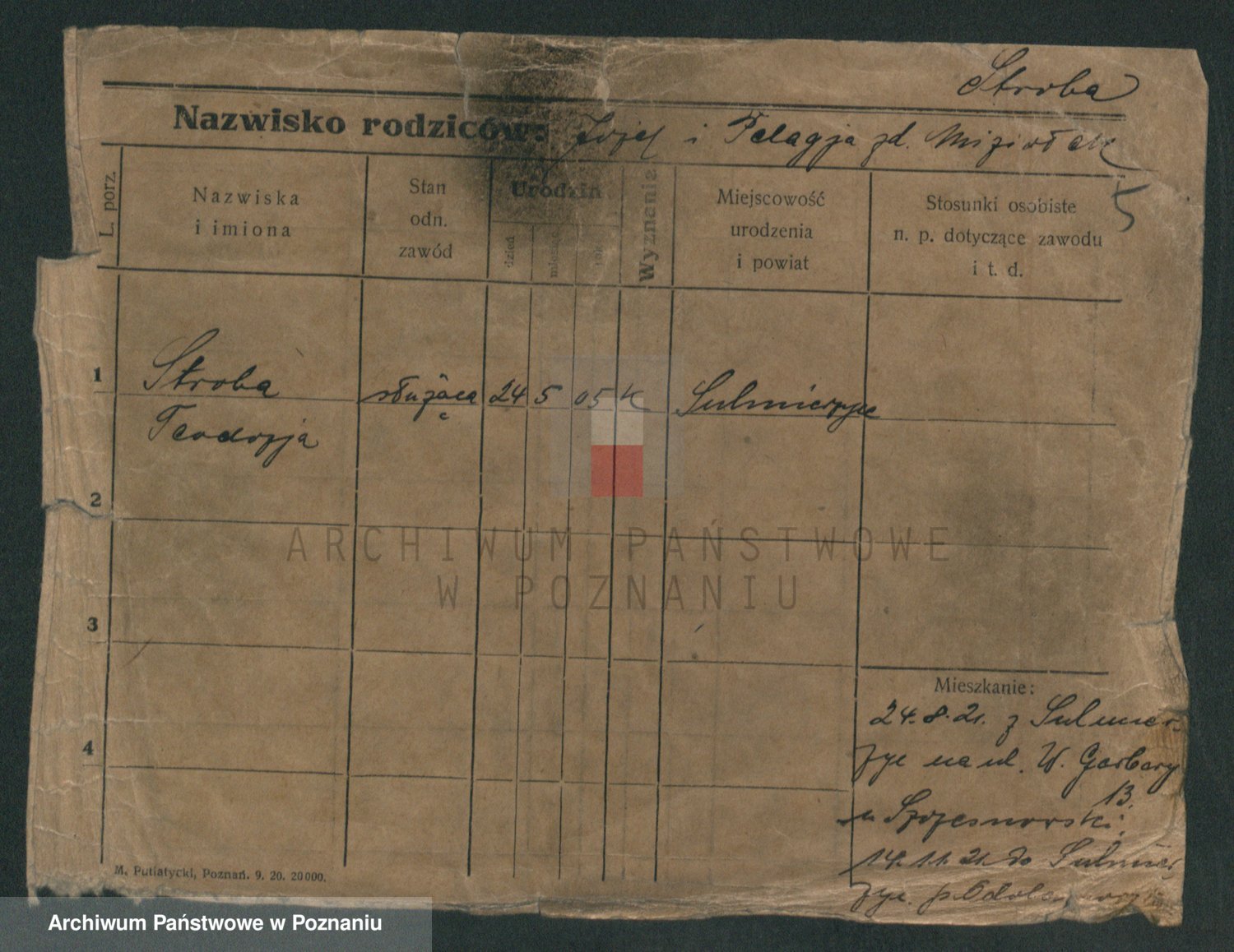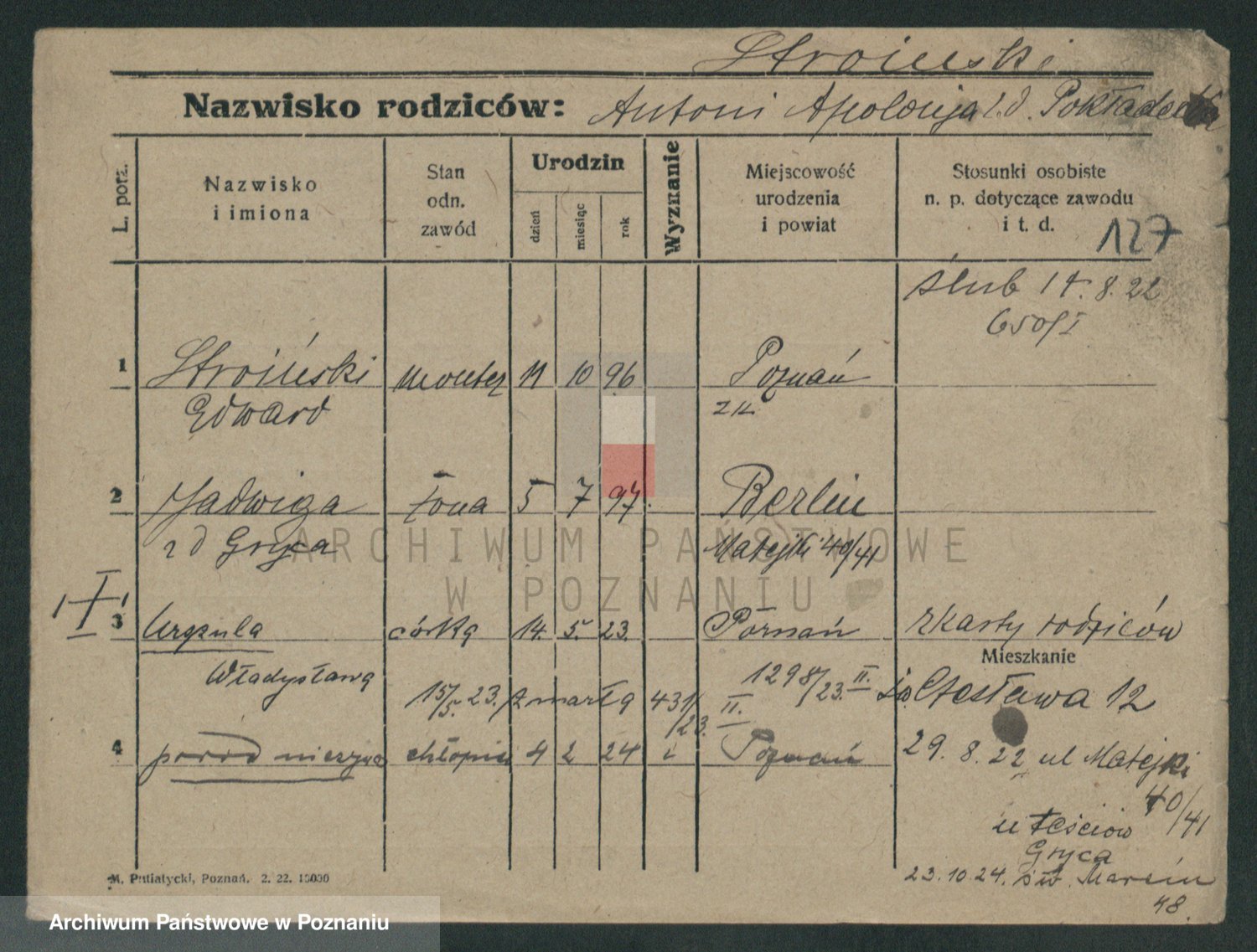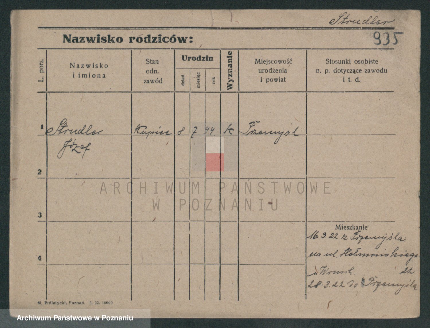 Podgląd karty osobowej dostępny jest po kliknięciu na nazwisko lub ikonkę karty. Można dokonywać powiększenia (ikony na górze) lub przechodzić między kolejnymi skanami (strzałki po bokach).