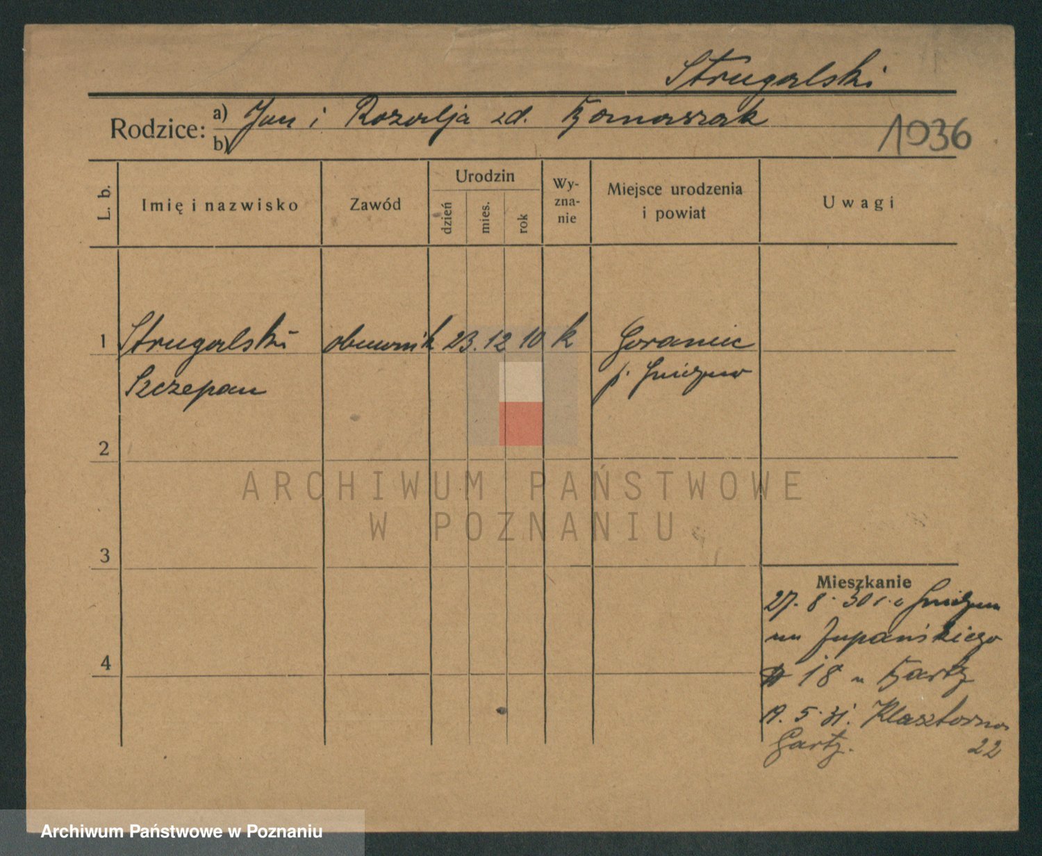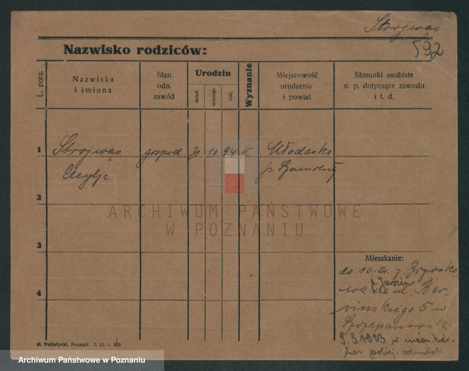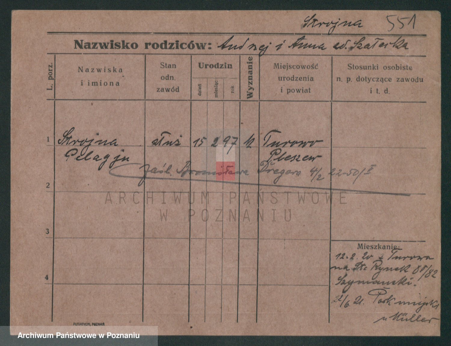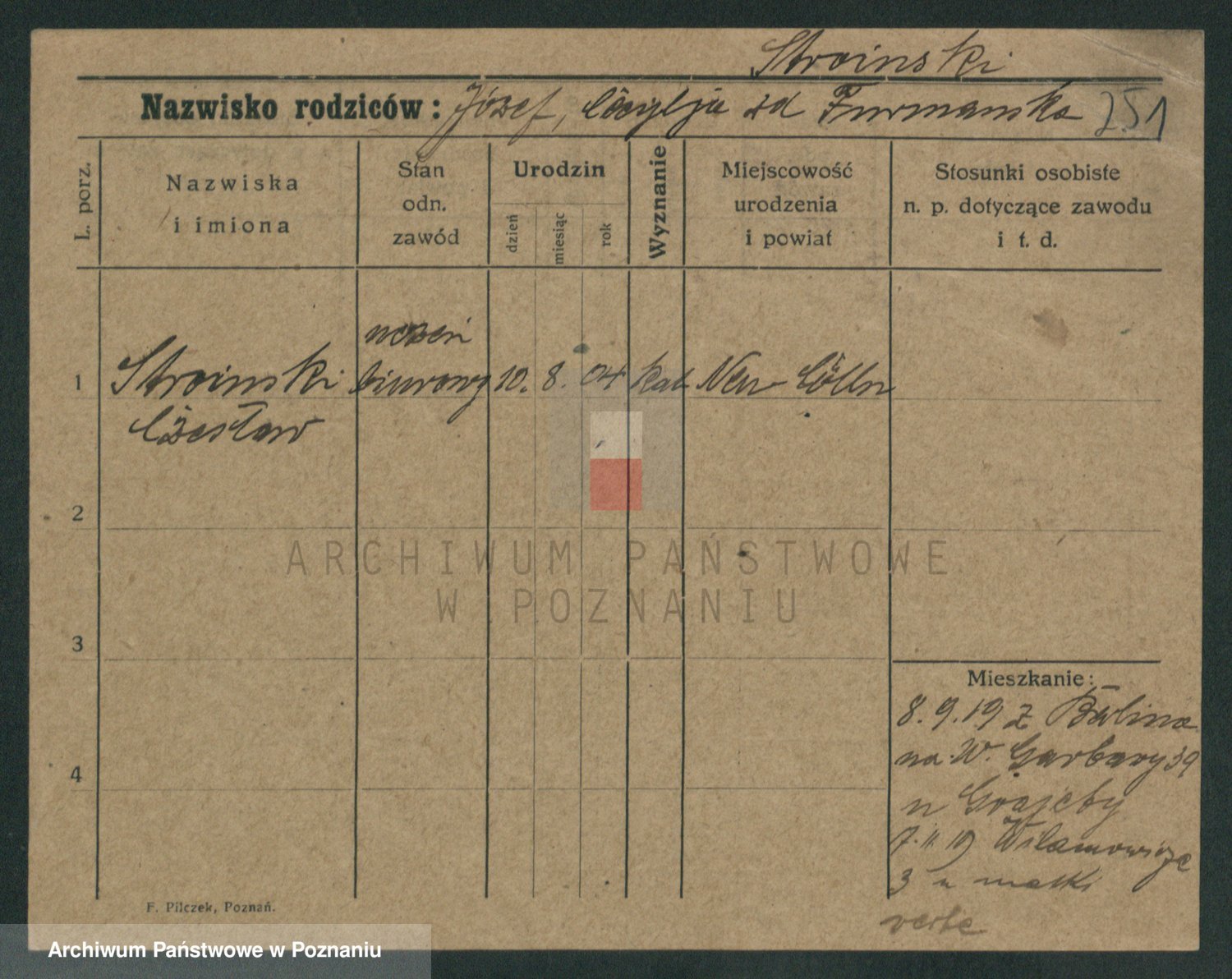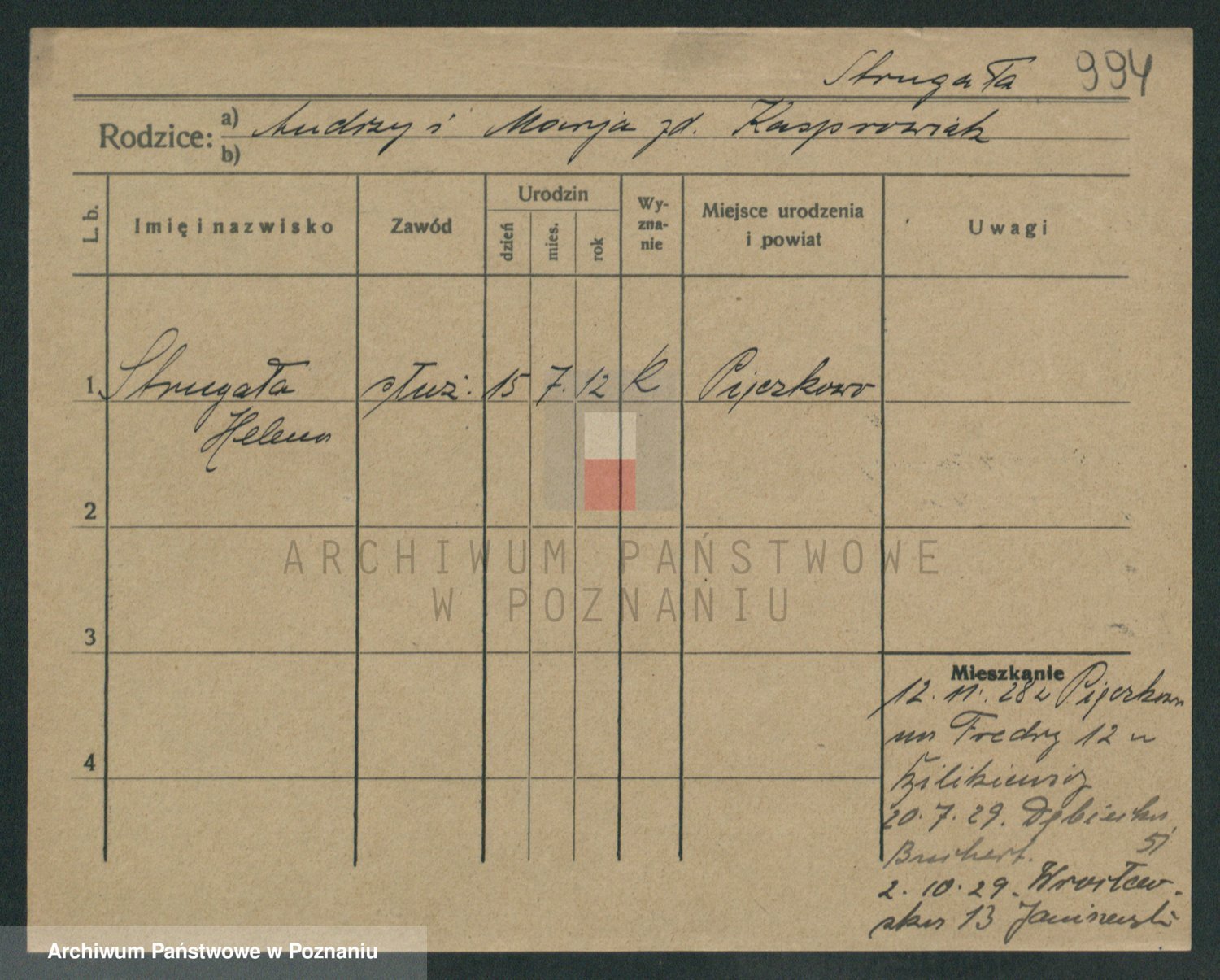 Podgląd karty osobowej dostępny jest po kliknięciu na nazwisko lub ikonkę karty. Można dokonywać powiększenia (ikony na górze) lub przechodzić między kolejnymi skanami (strzałki po bokach).