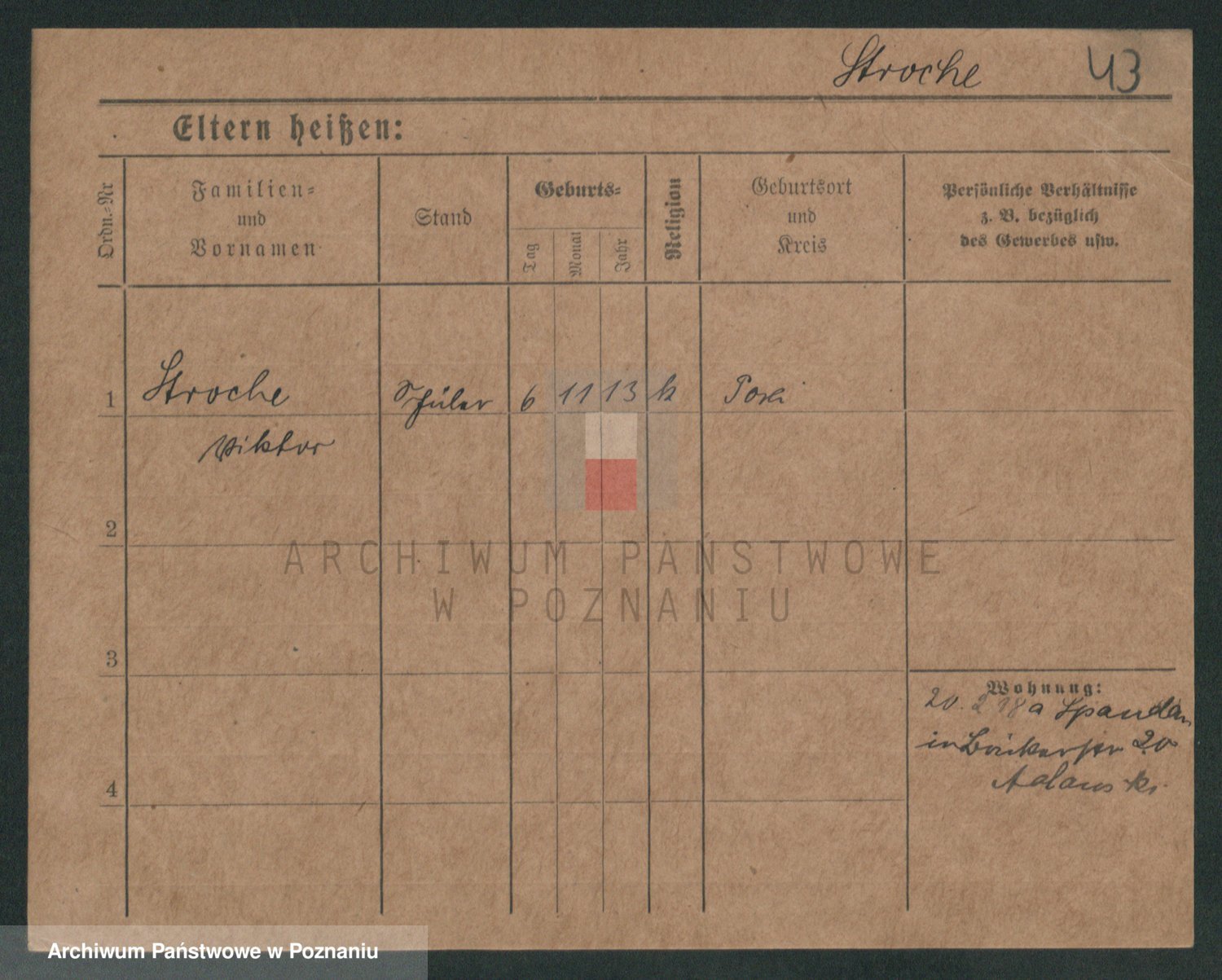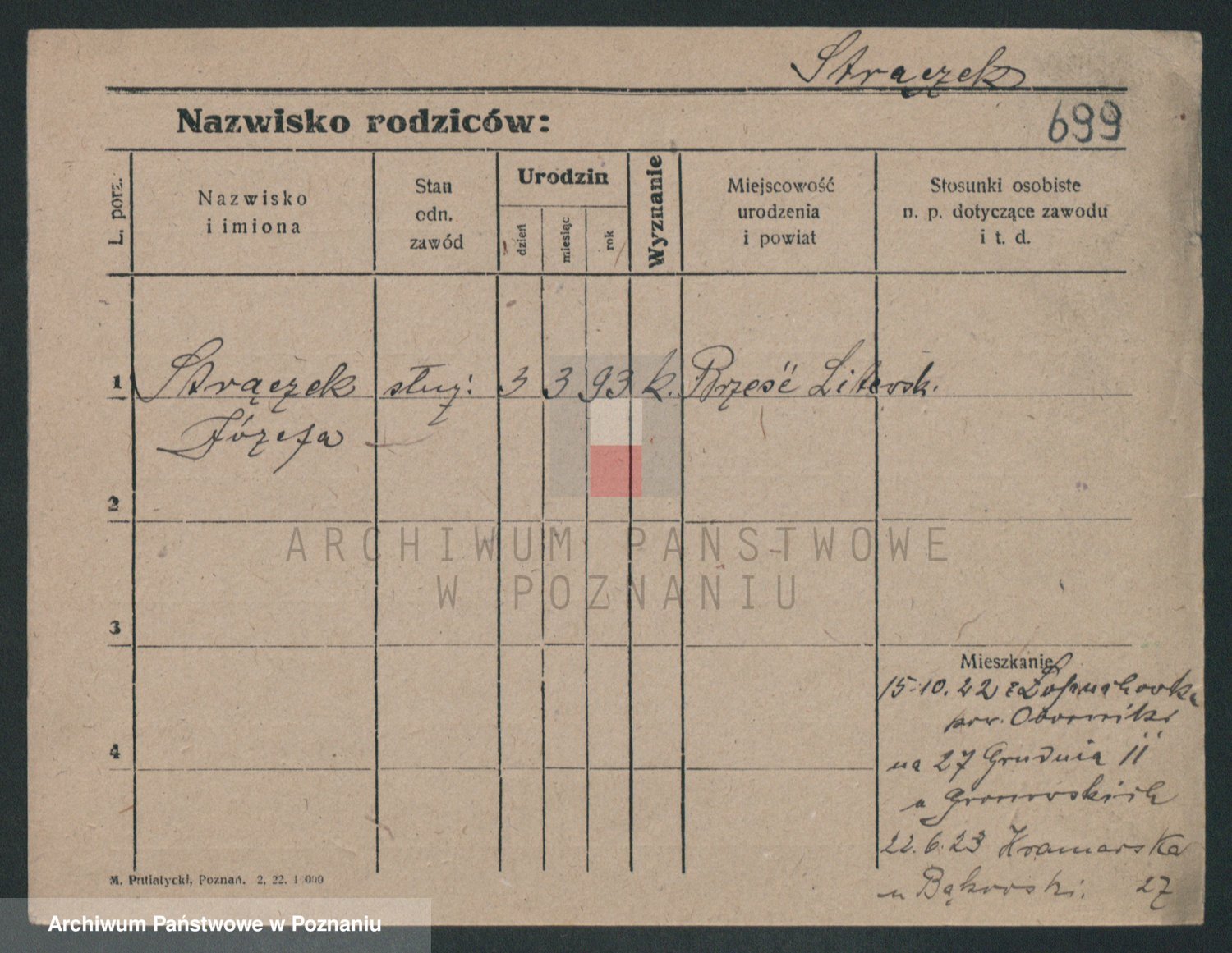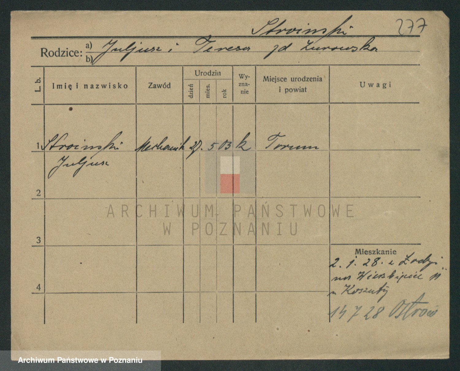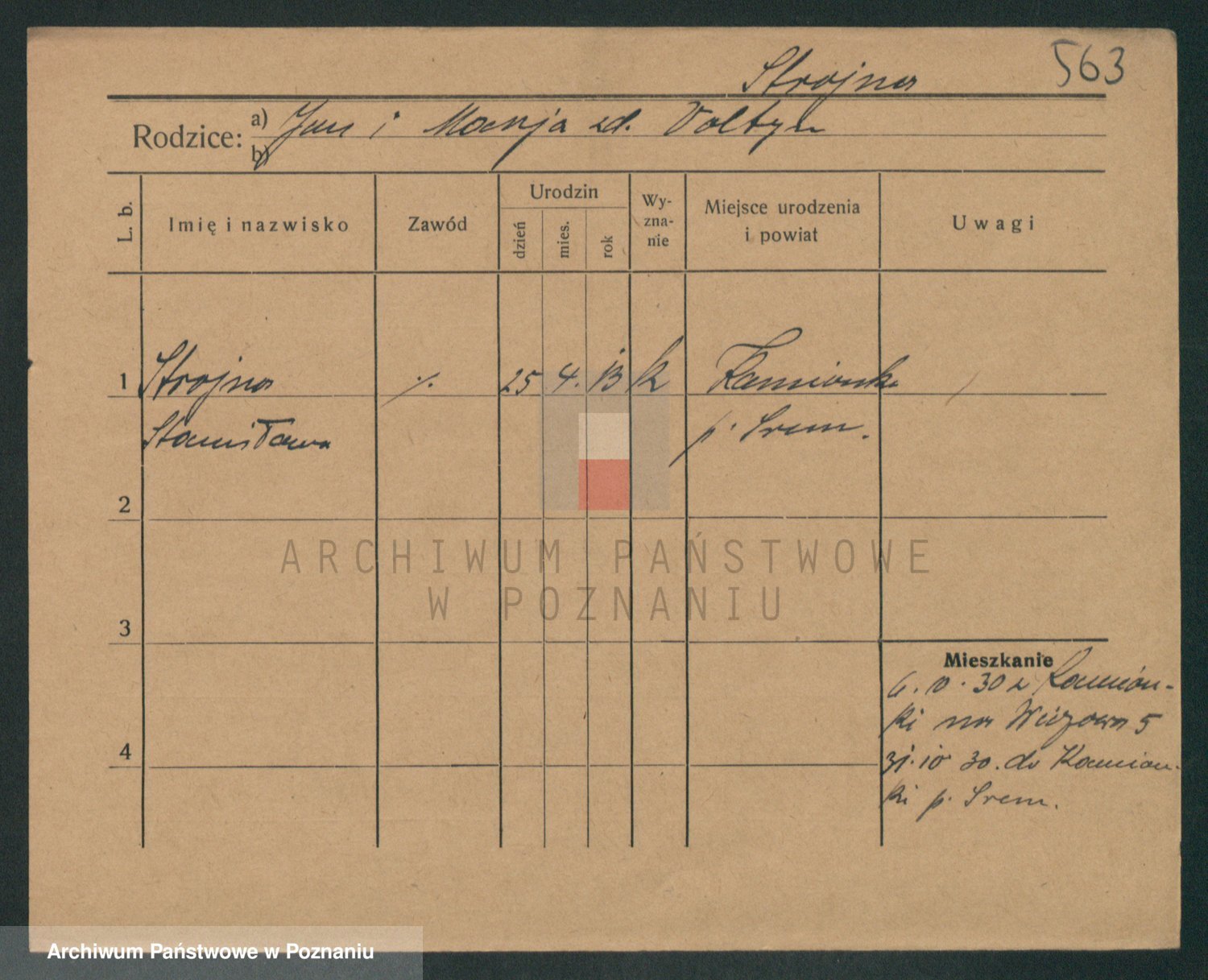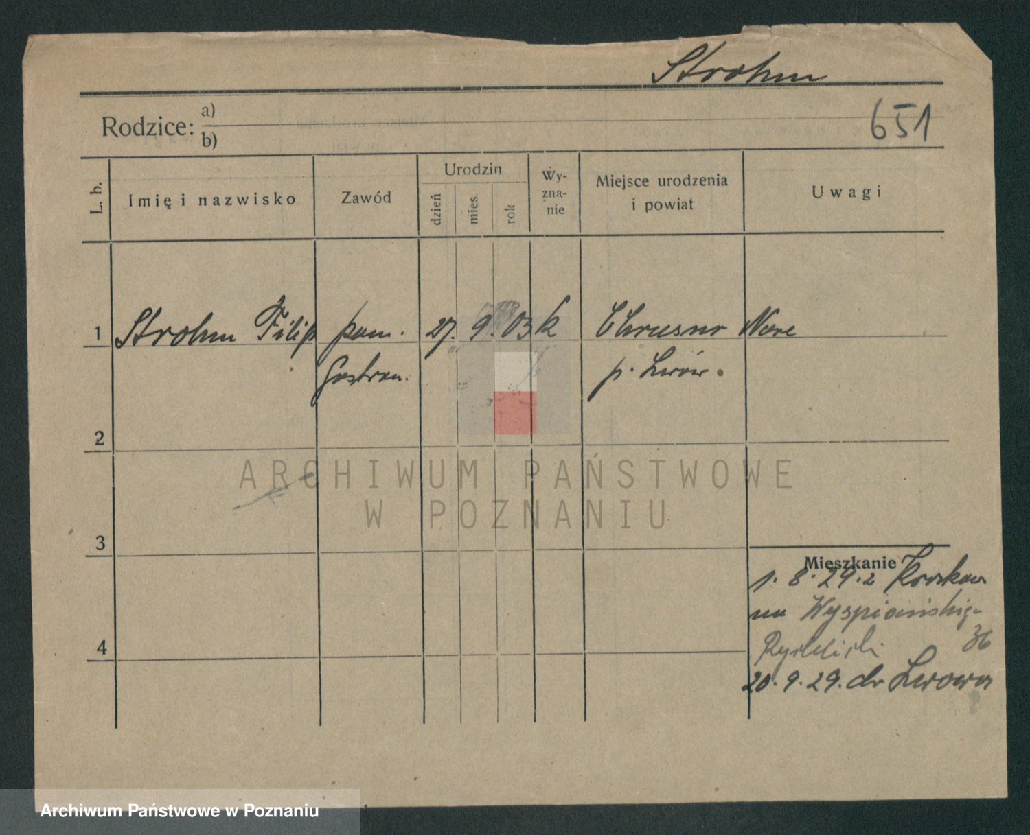 Podgląd karty osobowej dostępny jest po kliknięciu na nazwisko lub ikonkę karty. Można dokonywać powiększenia (ikony na górze) lub przechodzić między kolejnymi skanami (strzałki po bokach).