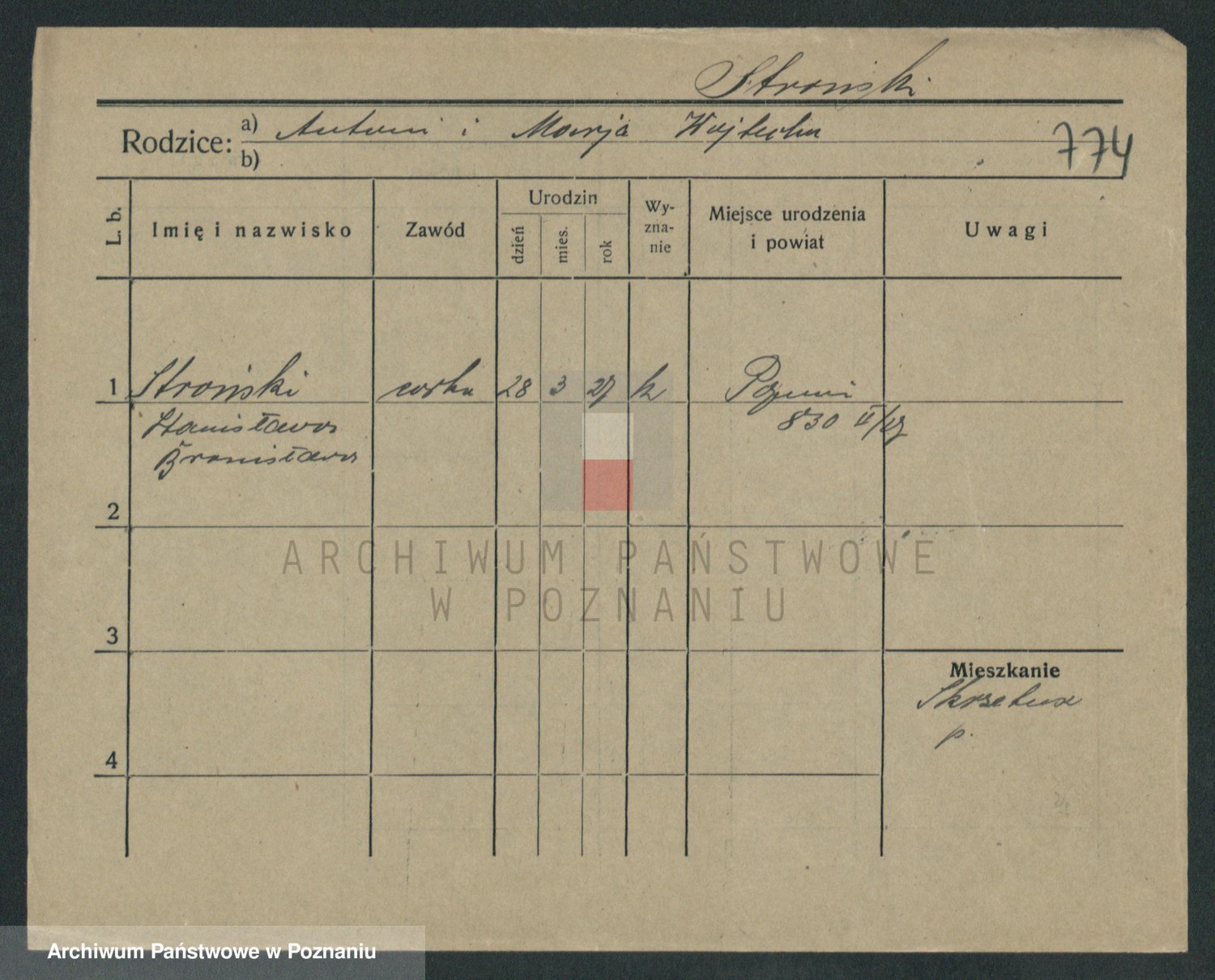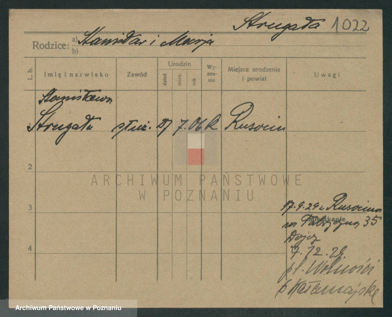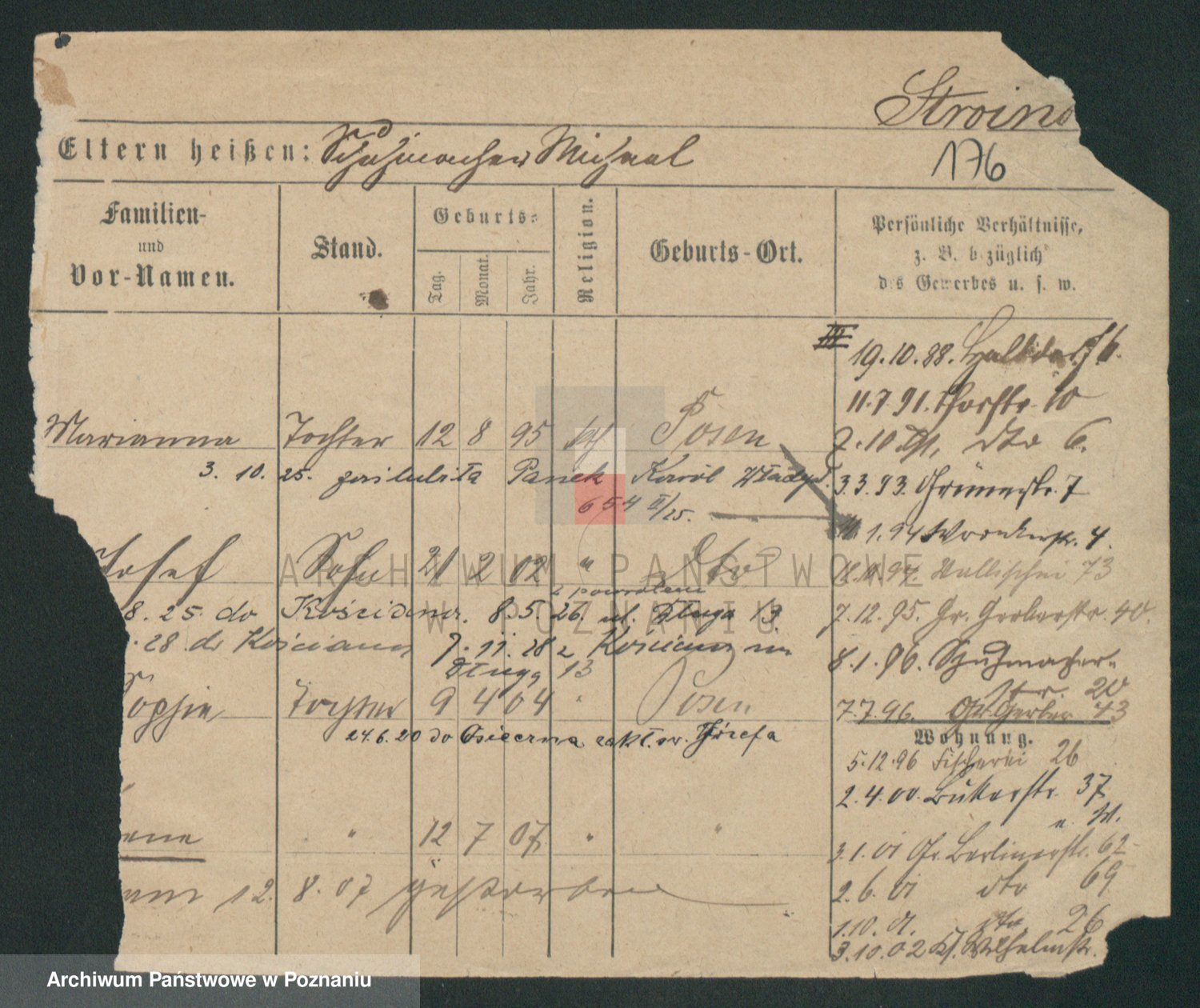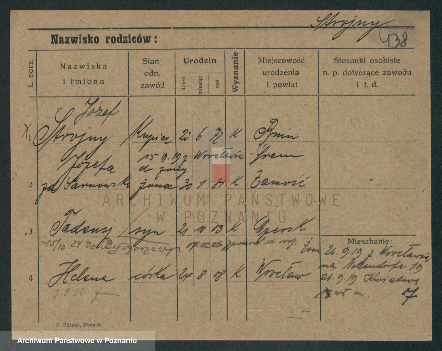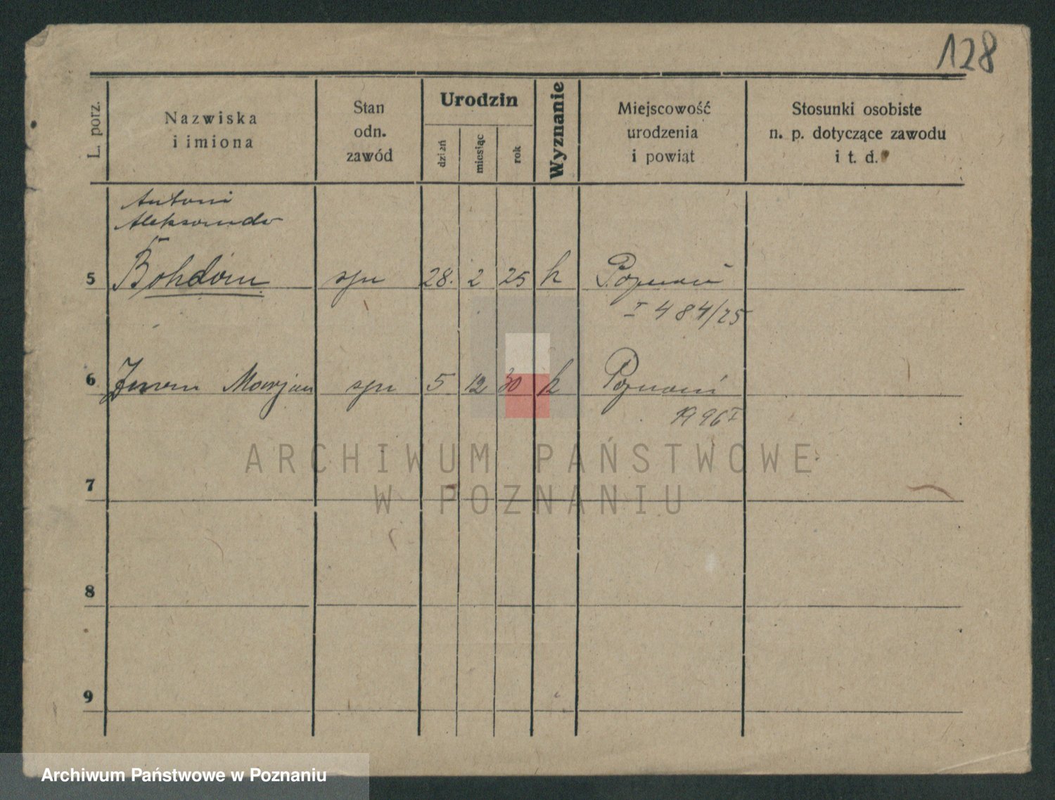 Podgląd karty osobowej dostępny jest po kliknięciu na nazwisko lub ikonkę karty. Można dokonywać powiększenia (ikony na górze) lub przechodzić między kolejnymi skanami (strzałki po bokach).