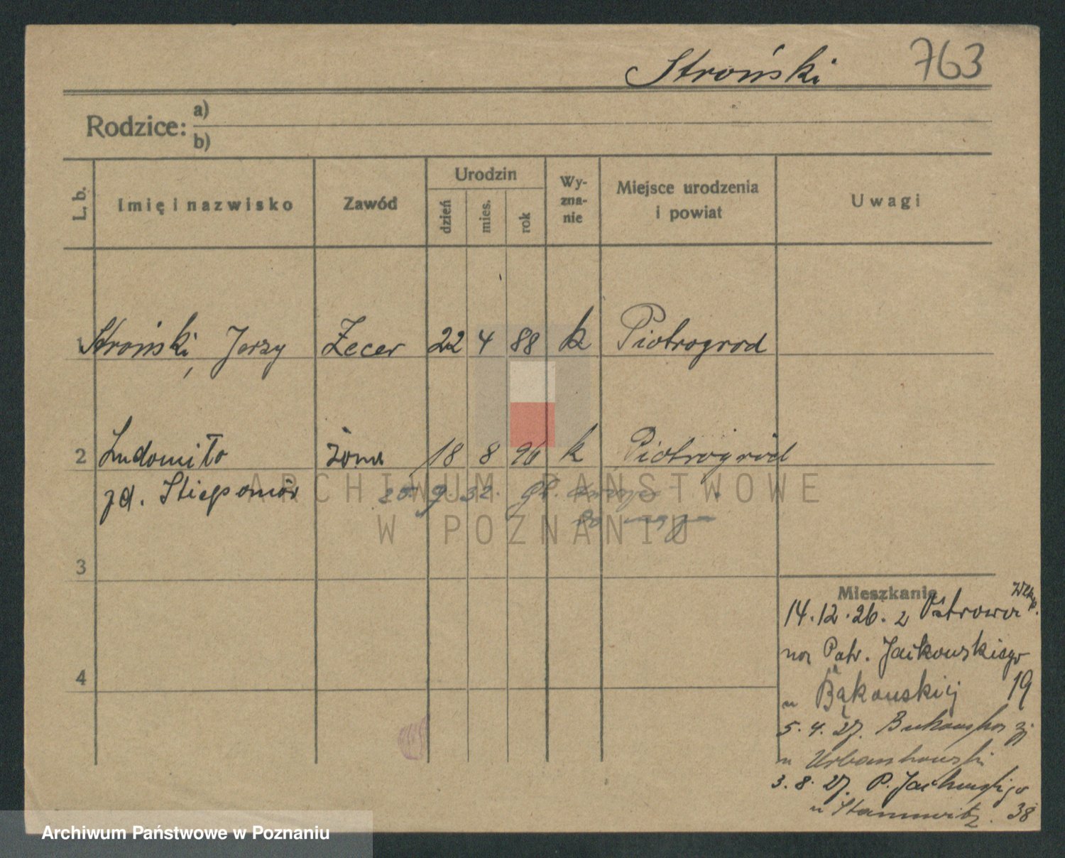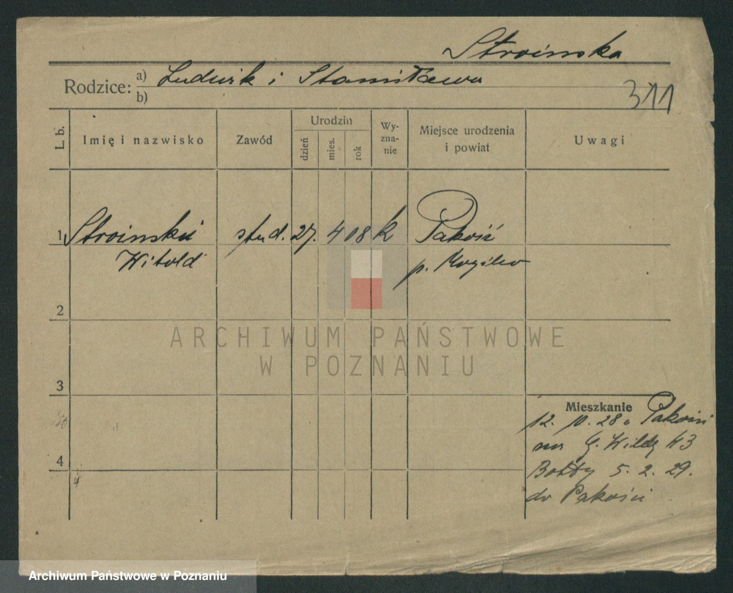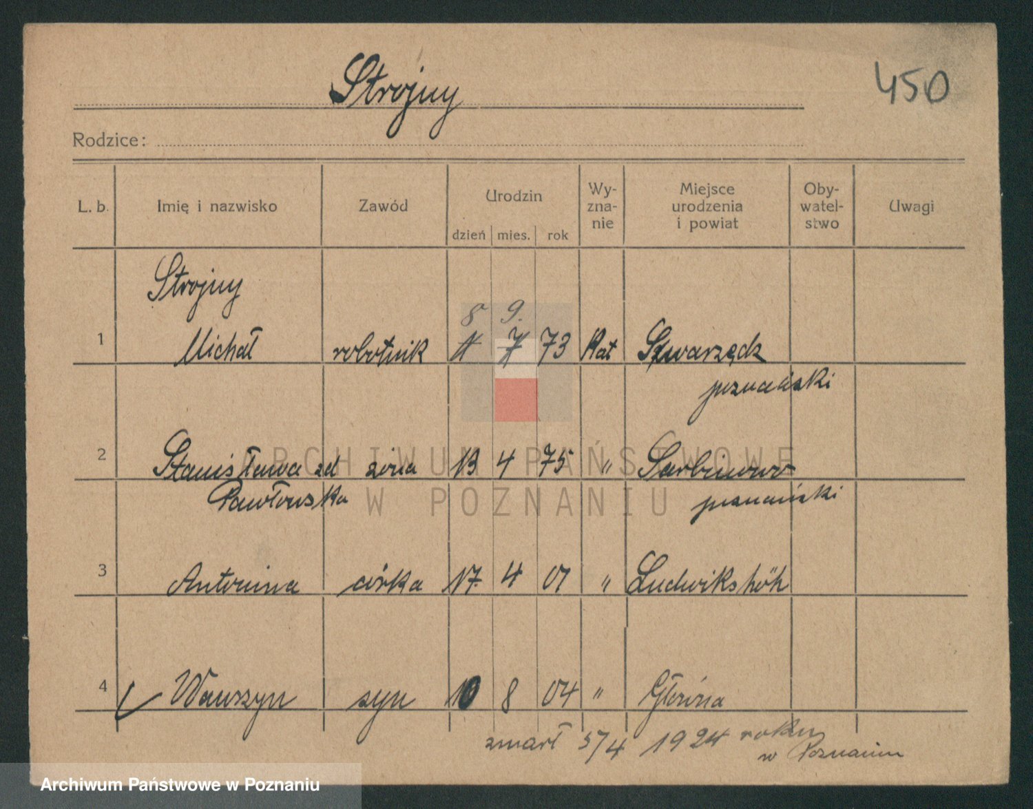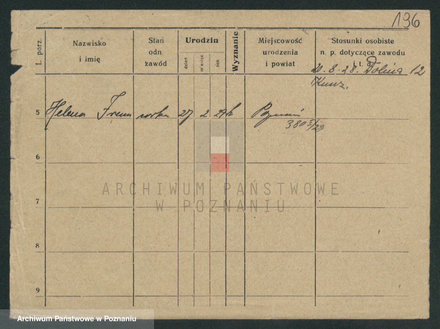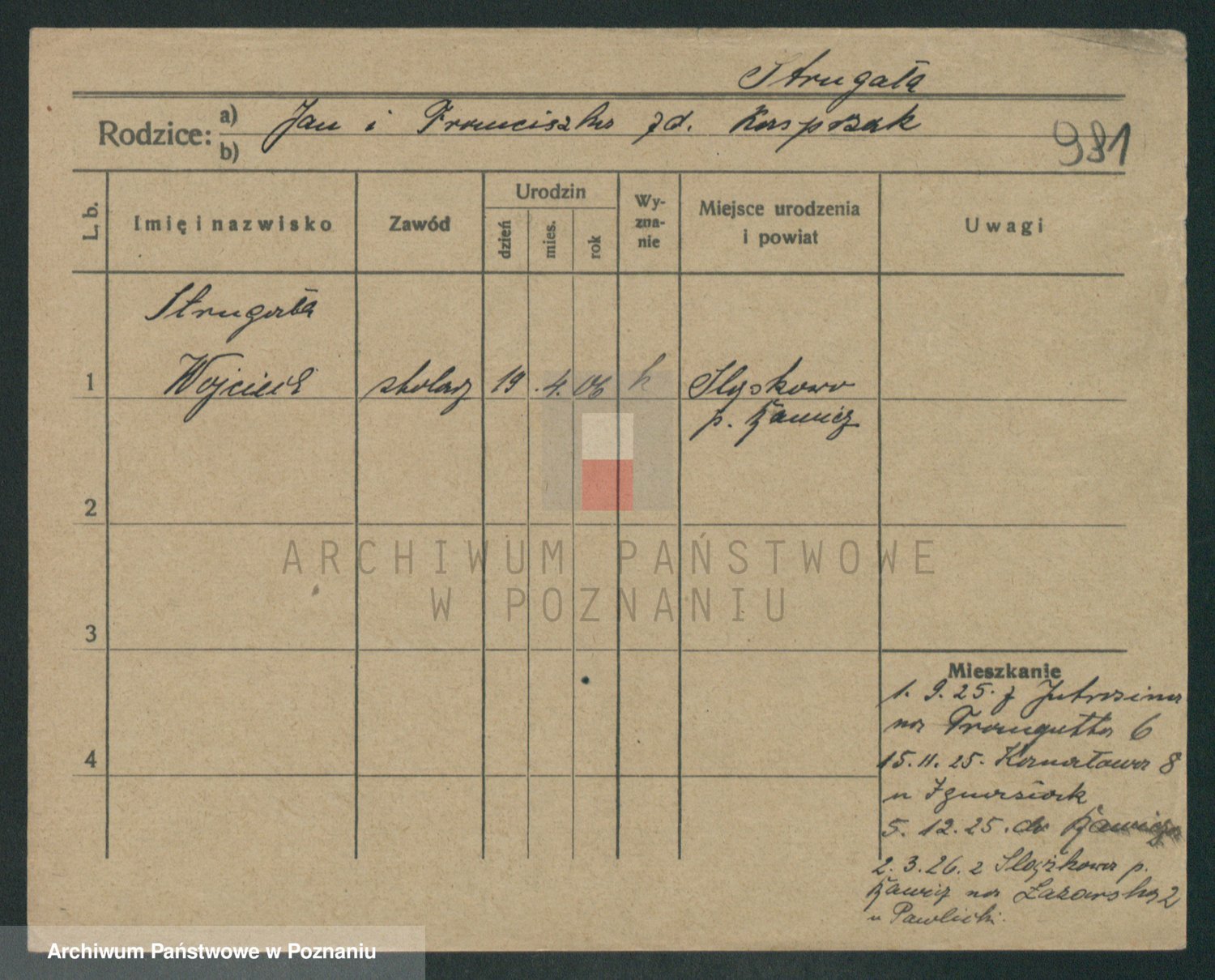 Podgląd karty osobowej dostępny jest po kliknięciu na nazwisko lub ikonkę karty. Można dokonywać powiększenia (ikony na górze) lub przechodzić między kolejnymi skanami (strzałki po bokach).